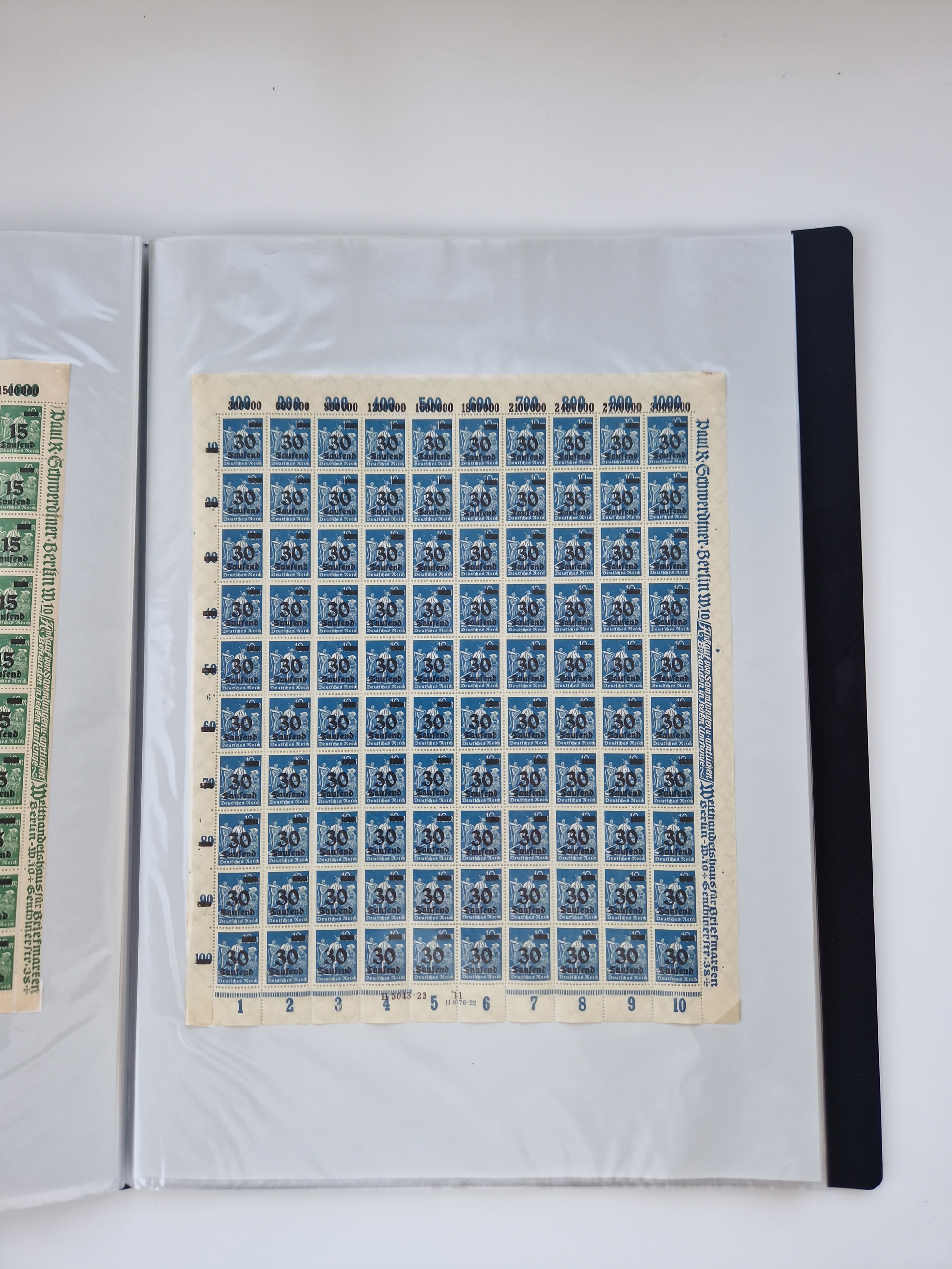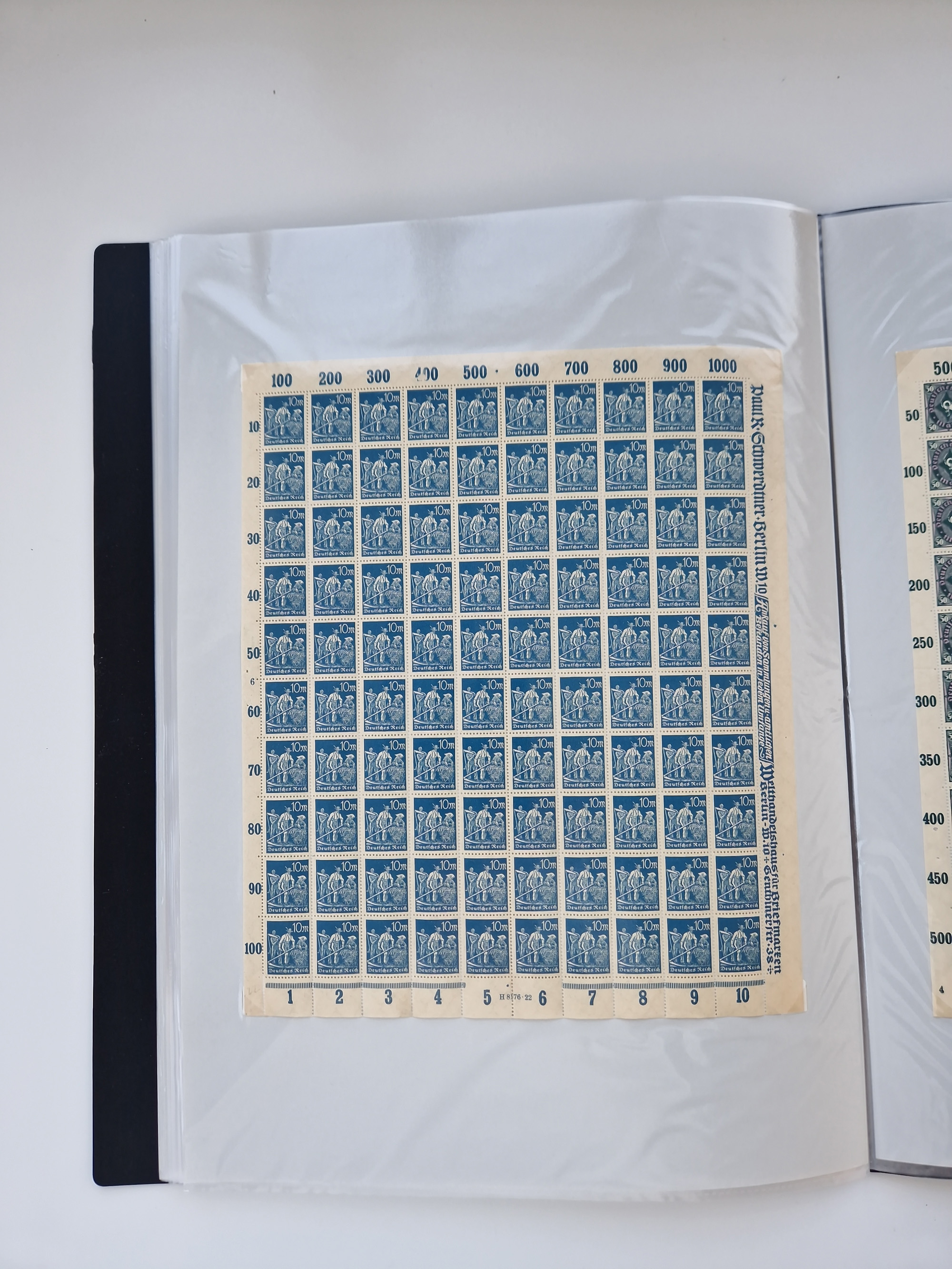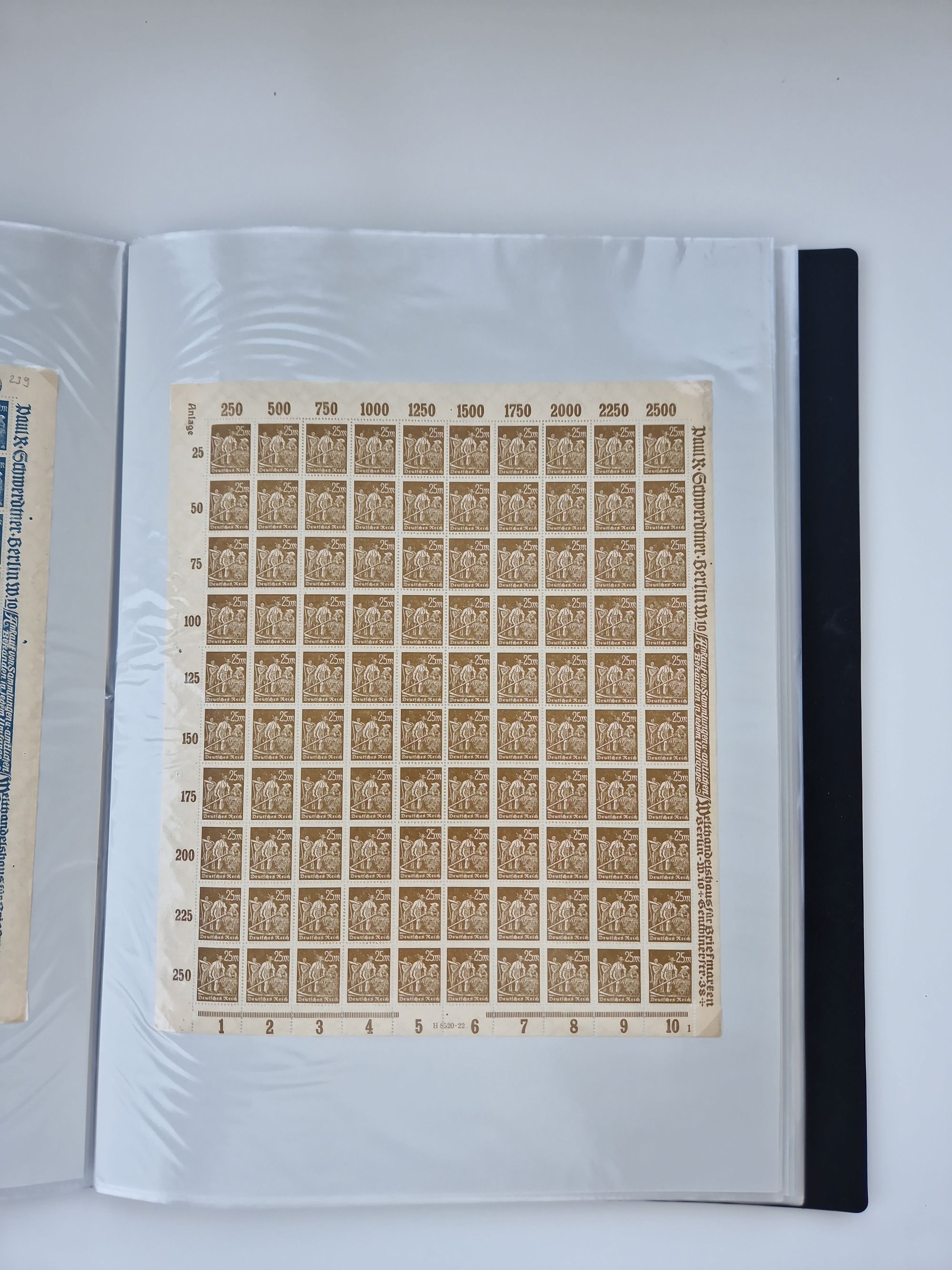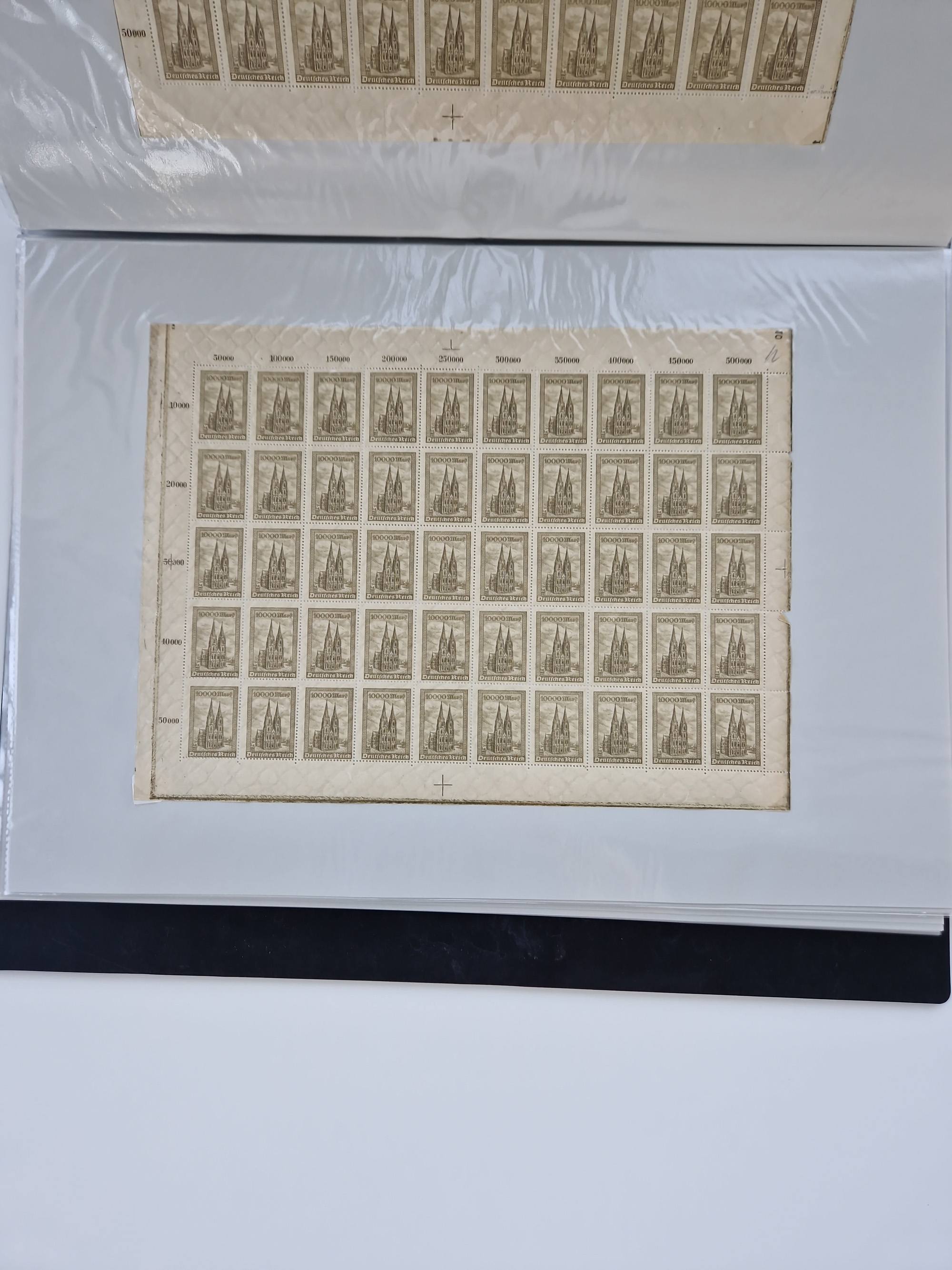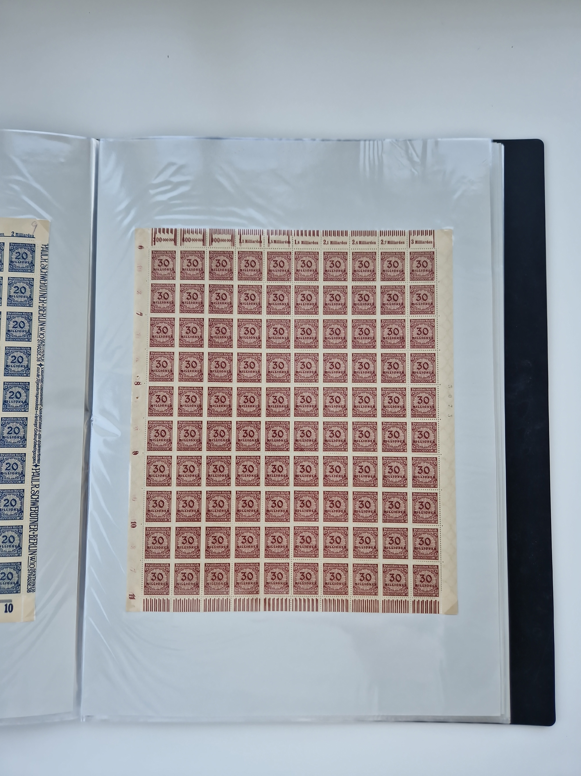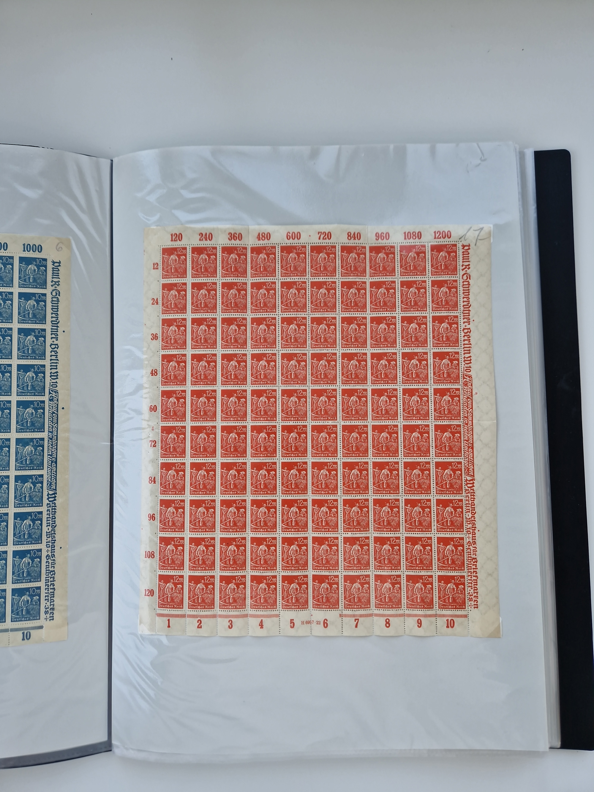 1921/22, postfrischer und ungebrauchter Bestand mit etwas über 200 Bogen und Bogenteilen, dabei Walzen- und Plattenbogen, HAN, Druckereizeichen, Pl.-Nr., auch Wz. Waffeln und Bogentaschen, teils sign. INFLA Berlin, etwas unterschiedliche Erhaltung, in zwei Ordnern