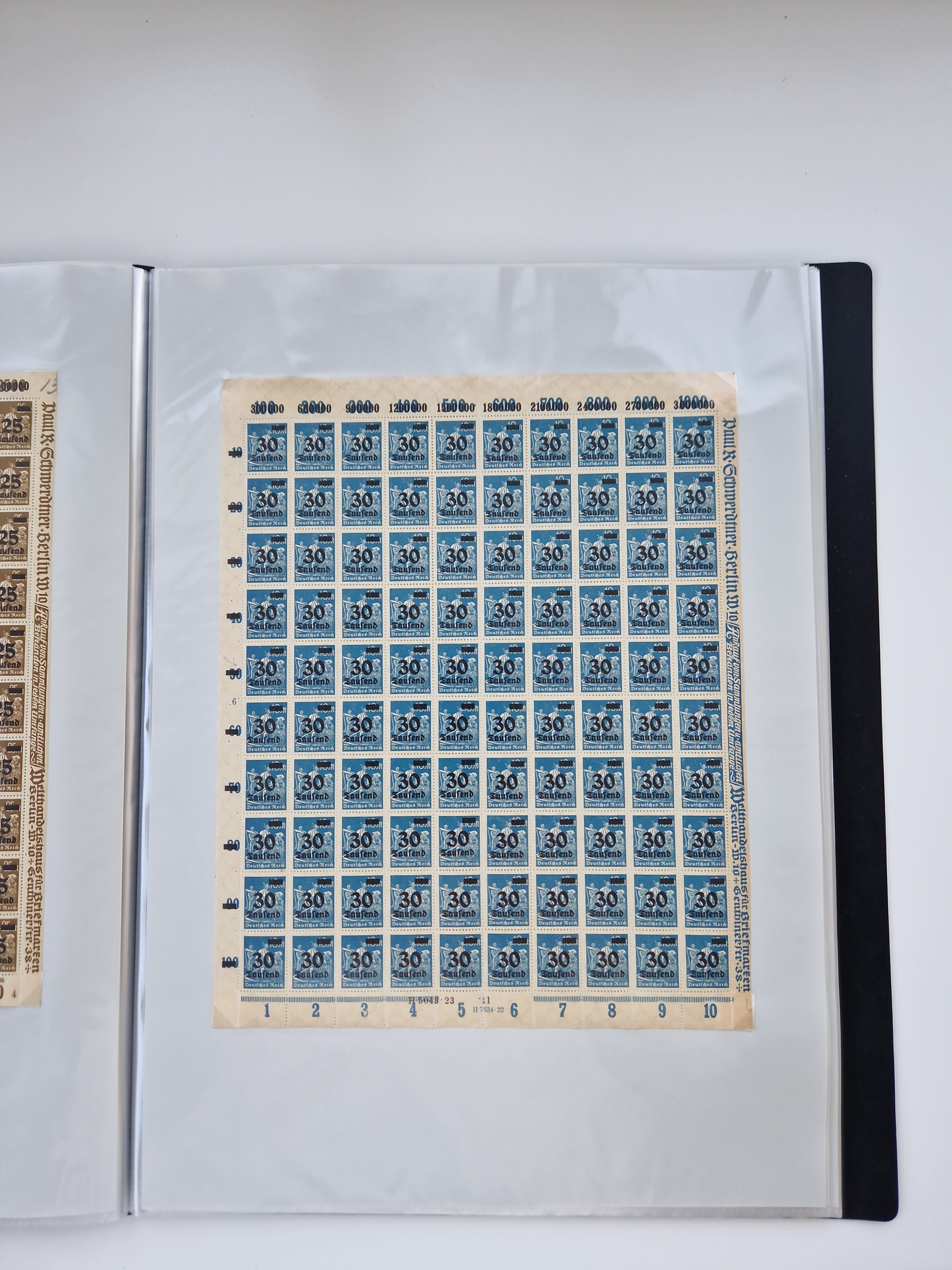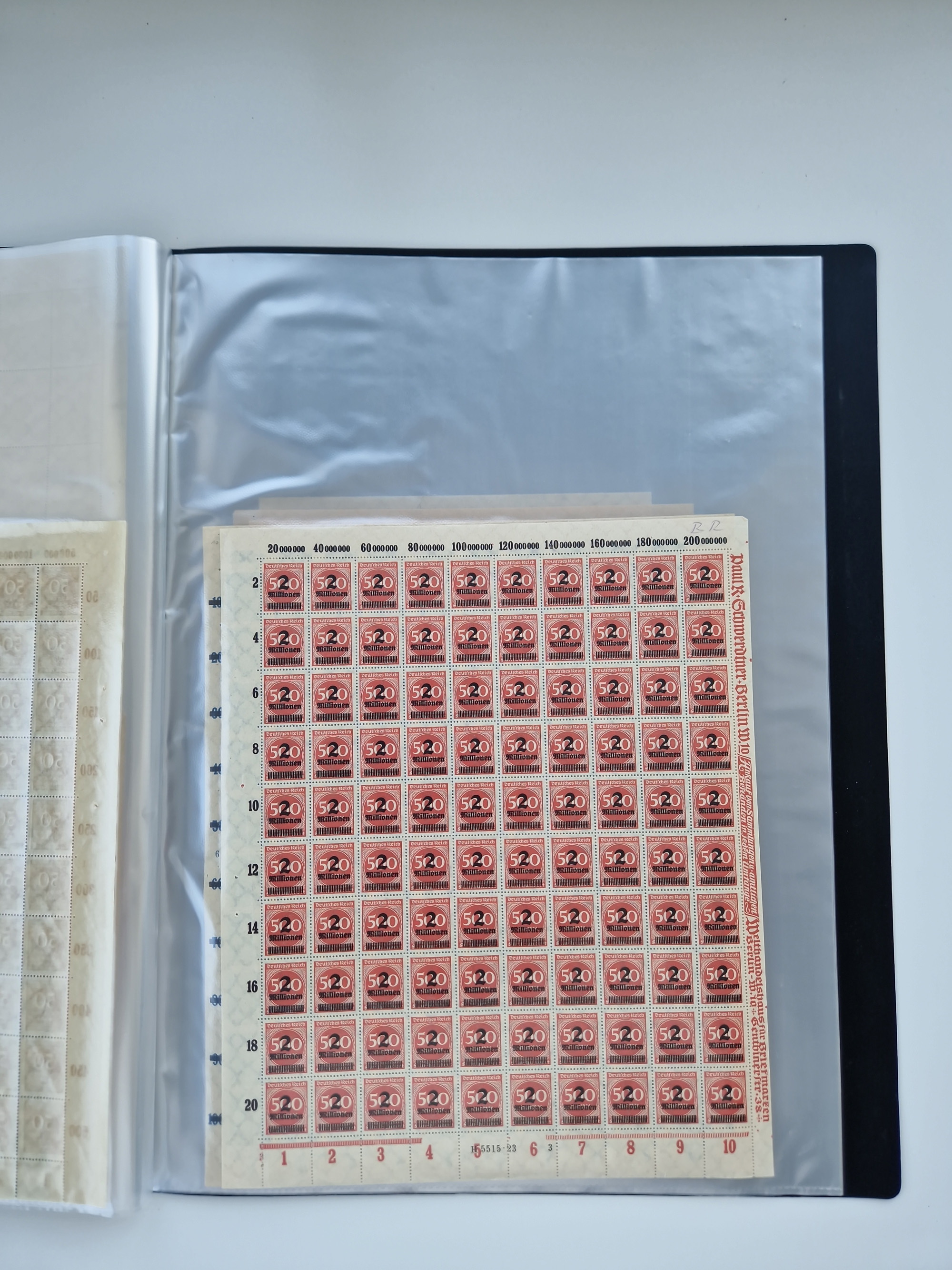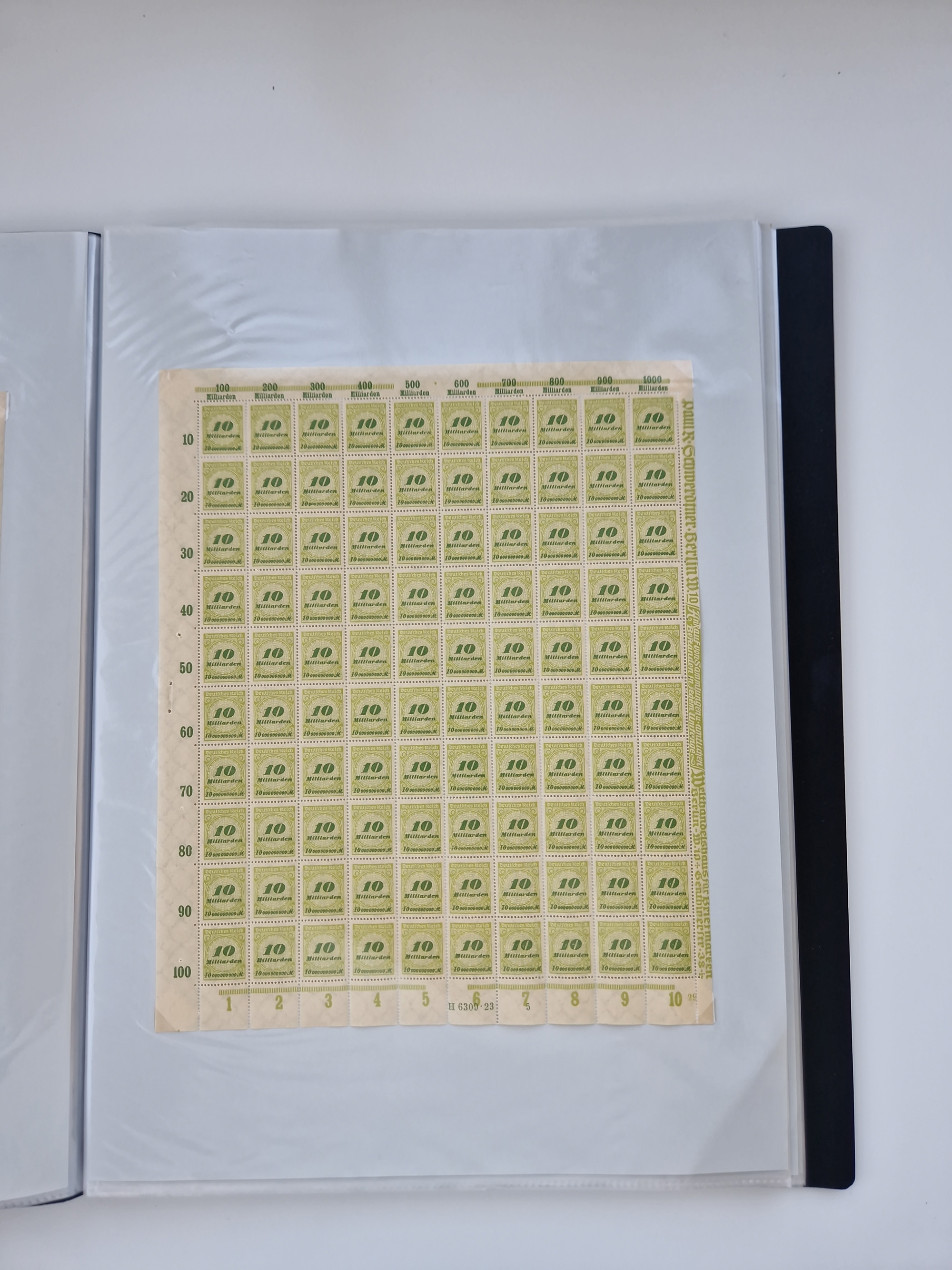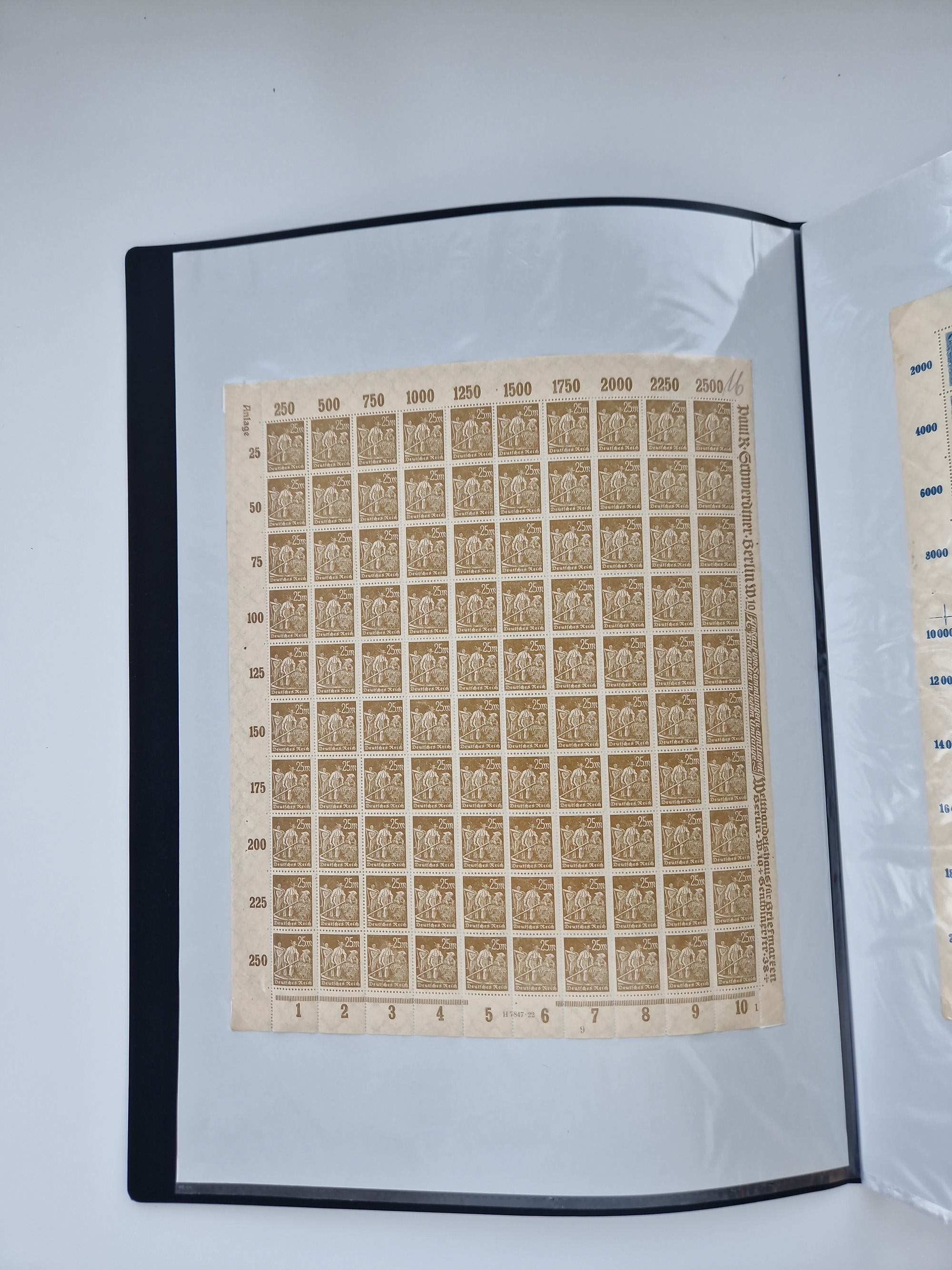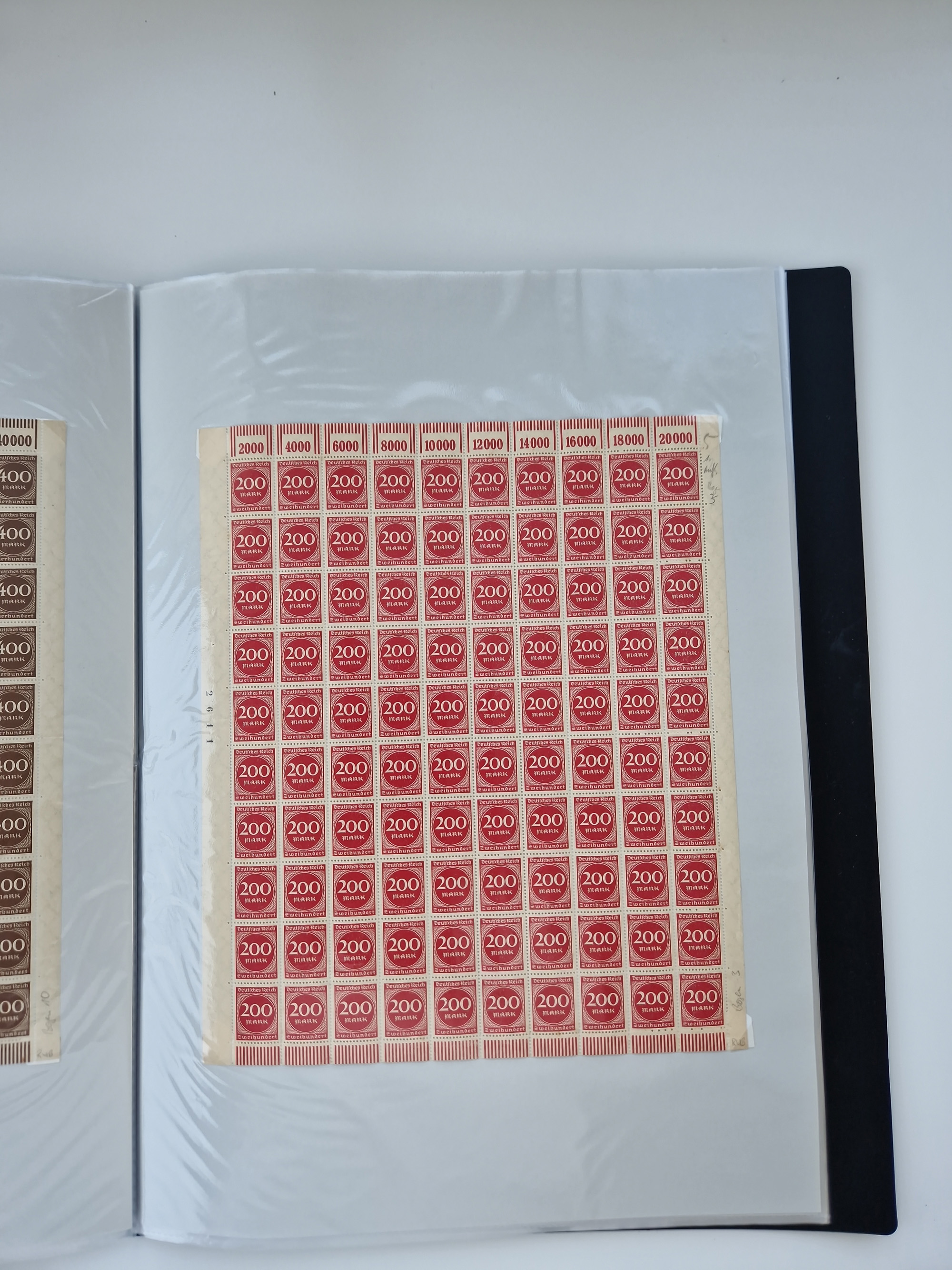 1921/22, postfrischer und ungebrauchter Bestand mit etwas über 200 Bogen und Bogenteilen, dabei Walzen- und Plattenbogen, HAN, Druckereizeichen, Pl.-Nr., auch Wz. Waffeln und Bogentaschen, teils sign. INFLA Berlin, etwas unterschiedliche Erhaltung, in zwei Ordnern