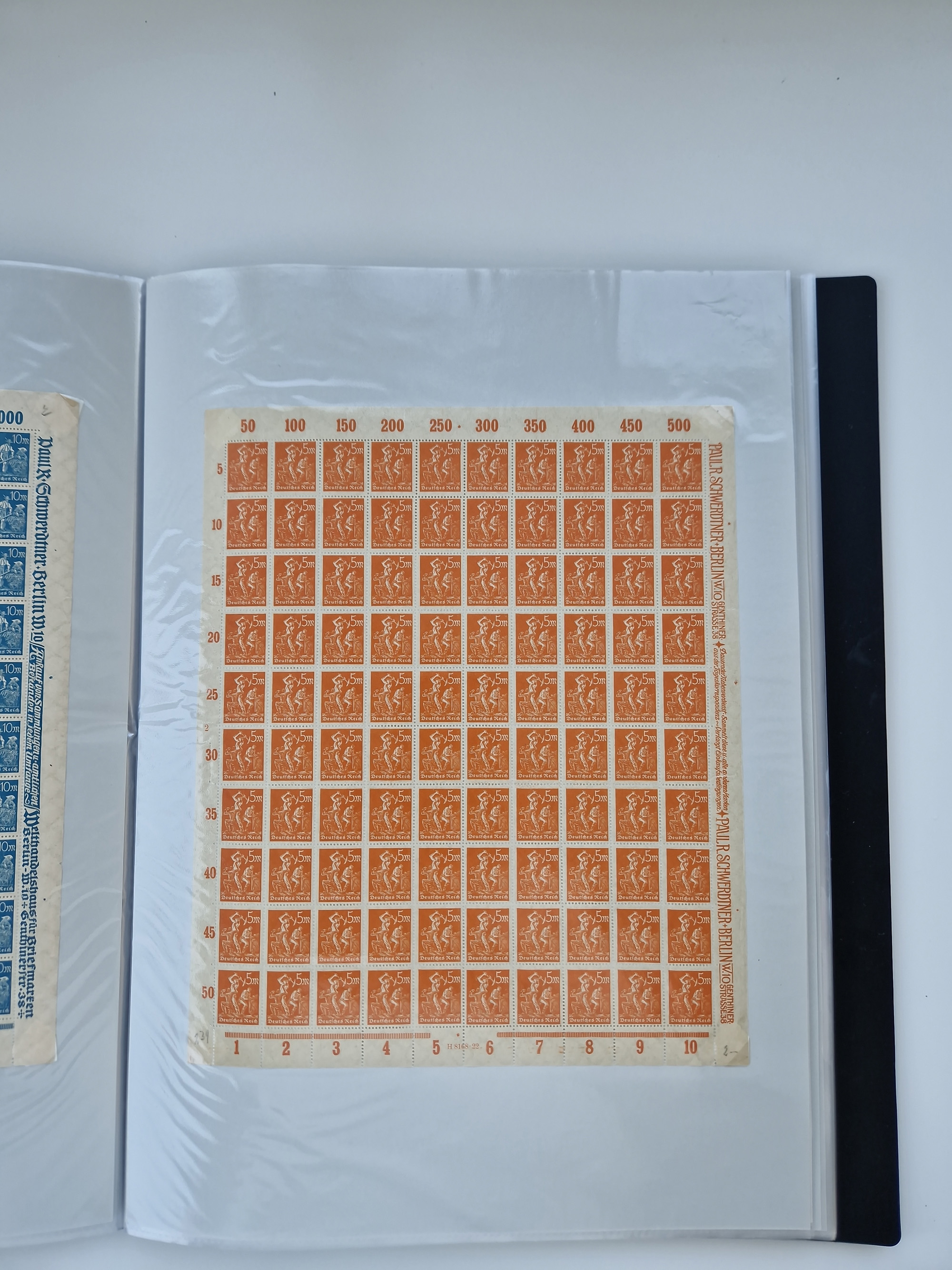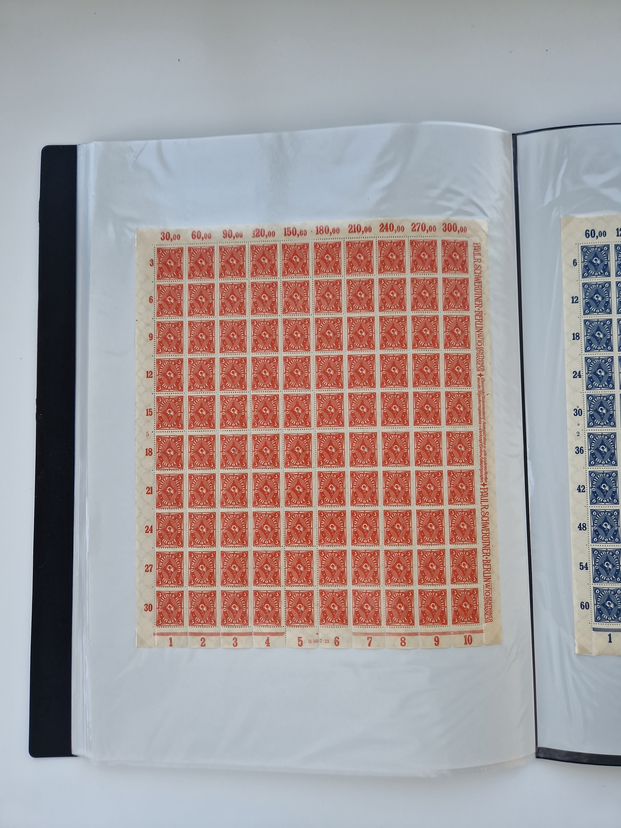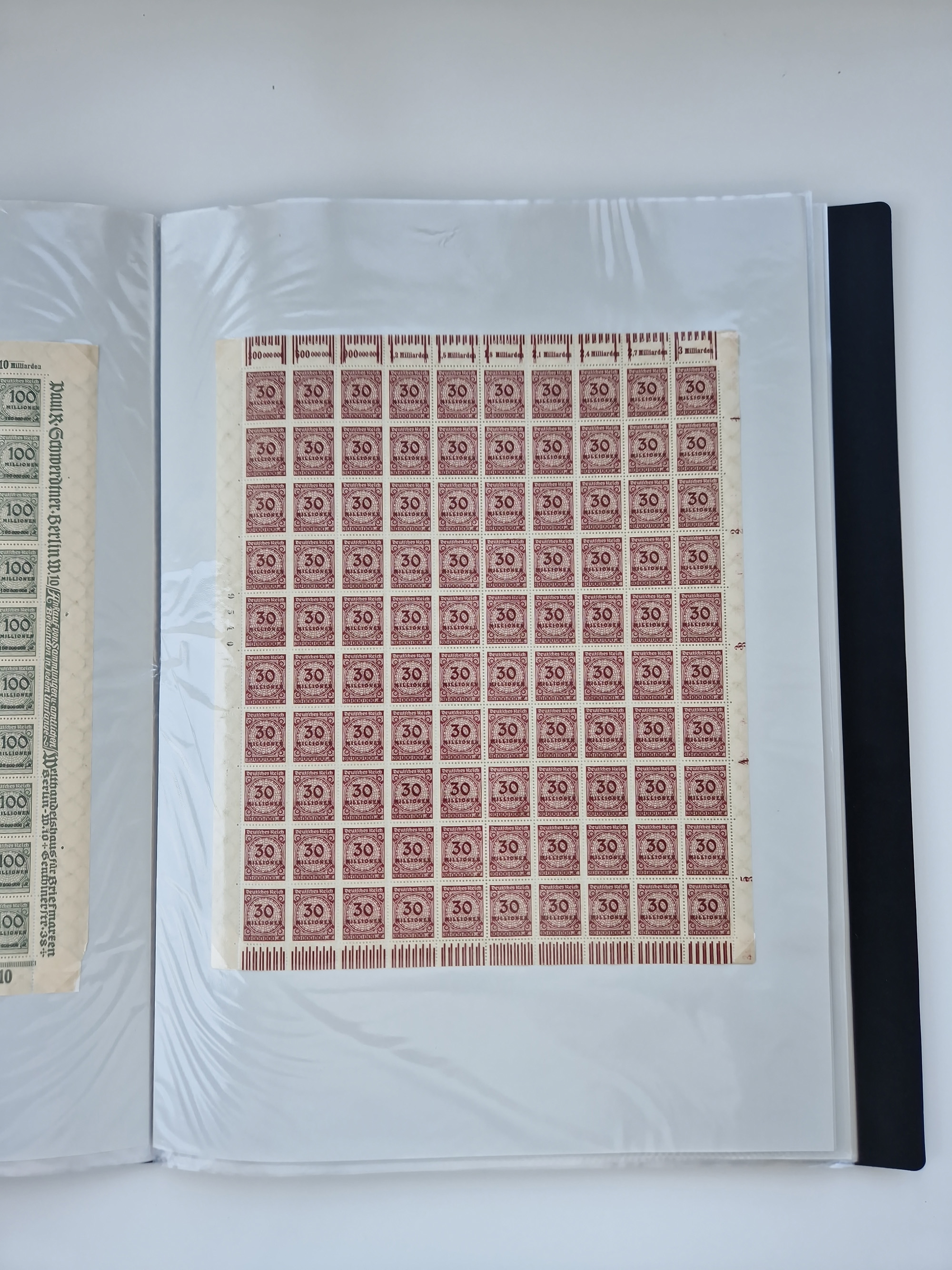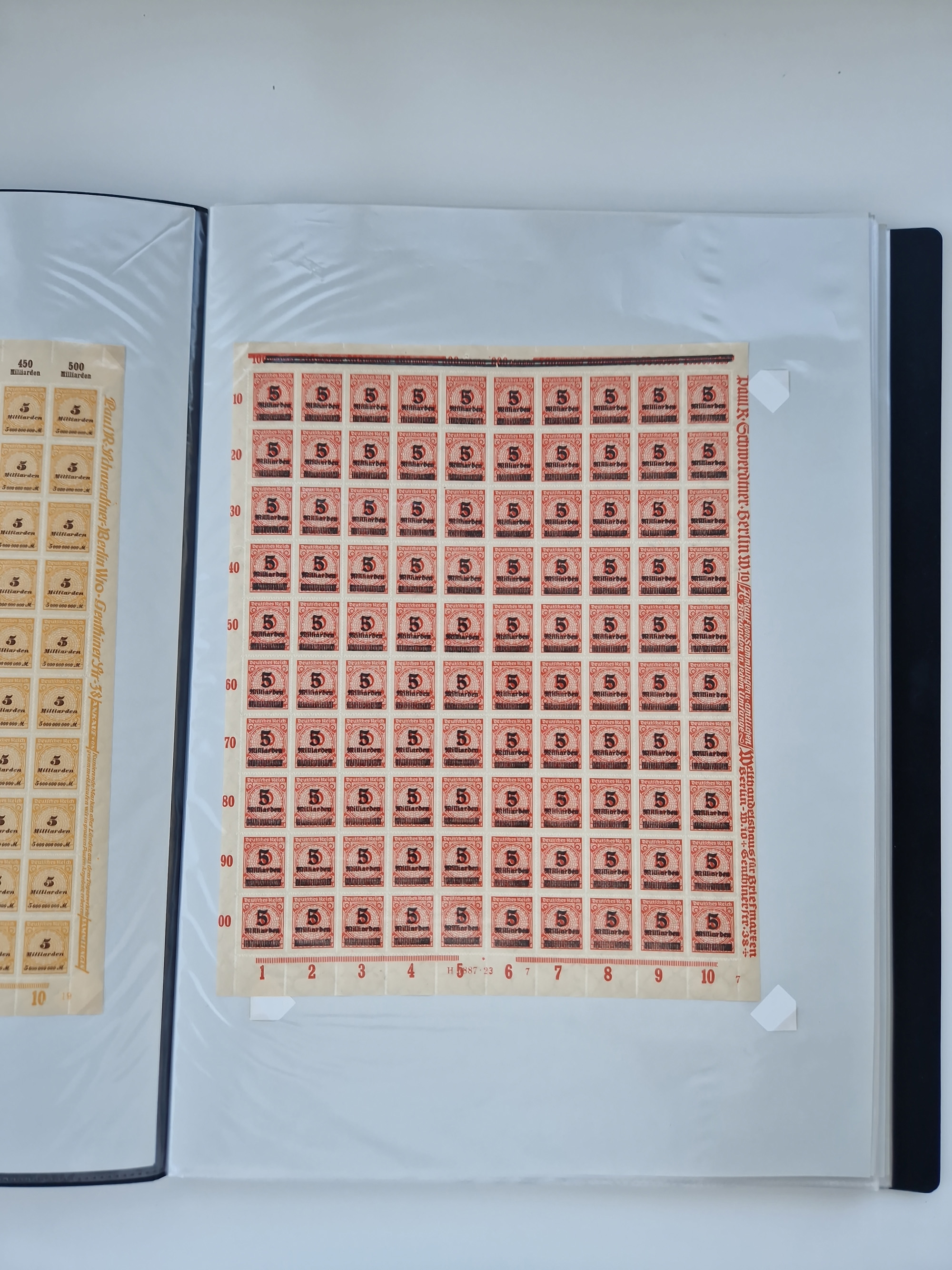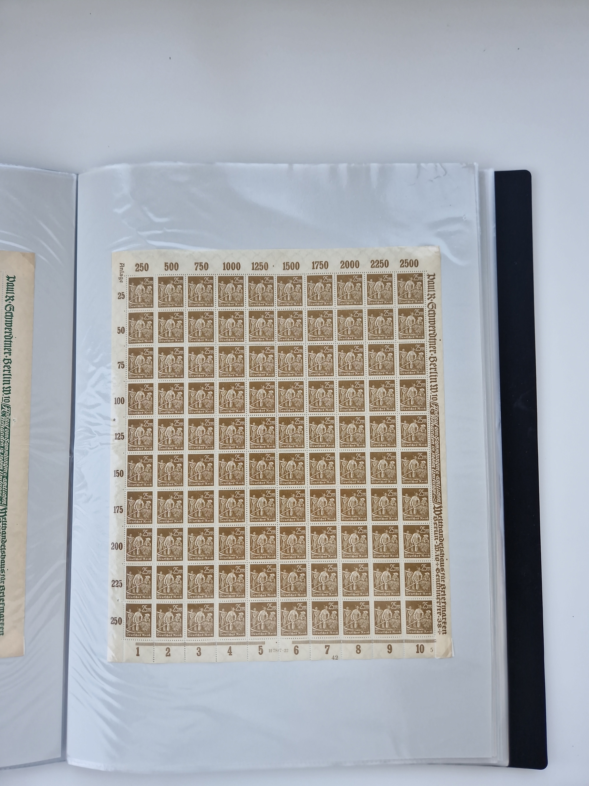 1921/22, postfrischer und ungebrauchter Bestand mit etwas über 200 Bogen und Bogenteilen, dabei Walzen- und Plattenbogen, HAN, Druckereizeichen, Pl.-Nr., auch Wz. Waffeln und Bogentaschen, teils sign. INFLA Berlin, etwas unterschiedliche Erhaltung, in zwei Ordnern