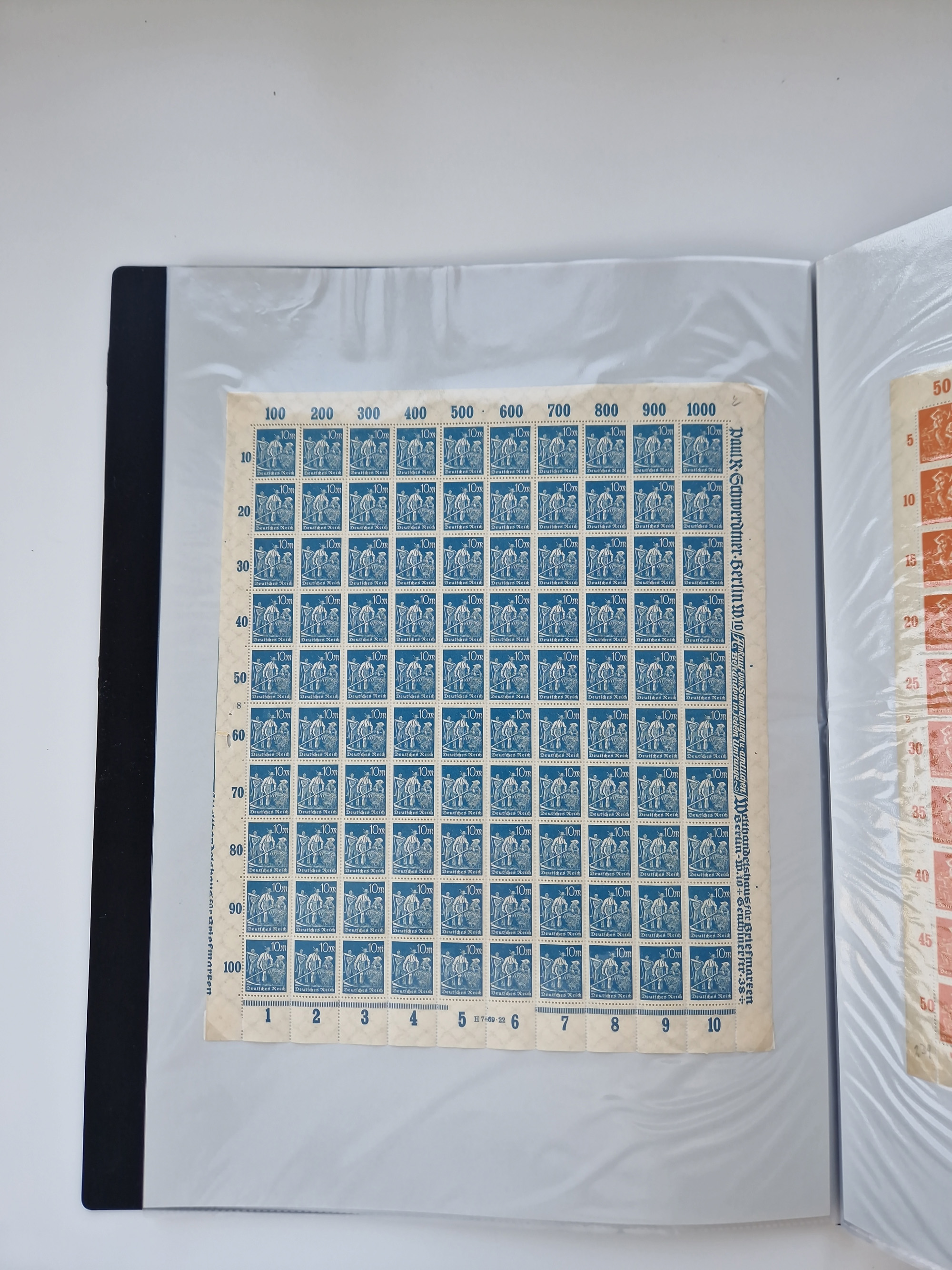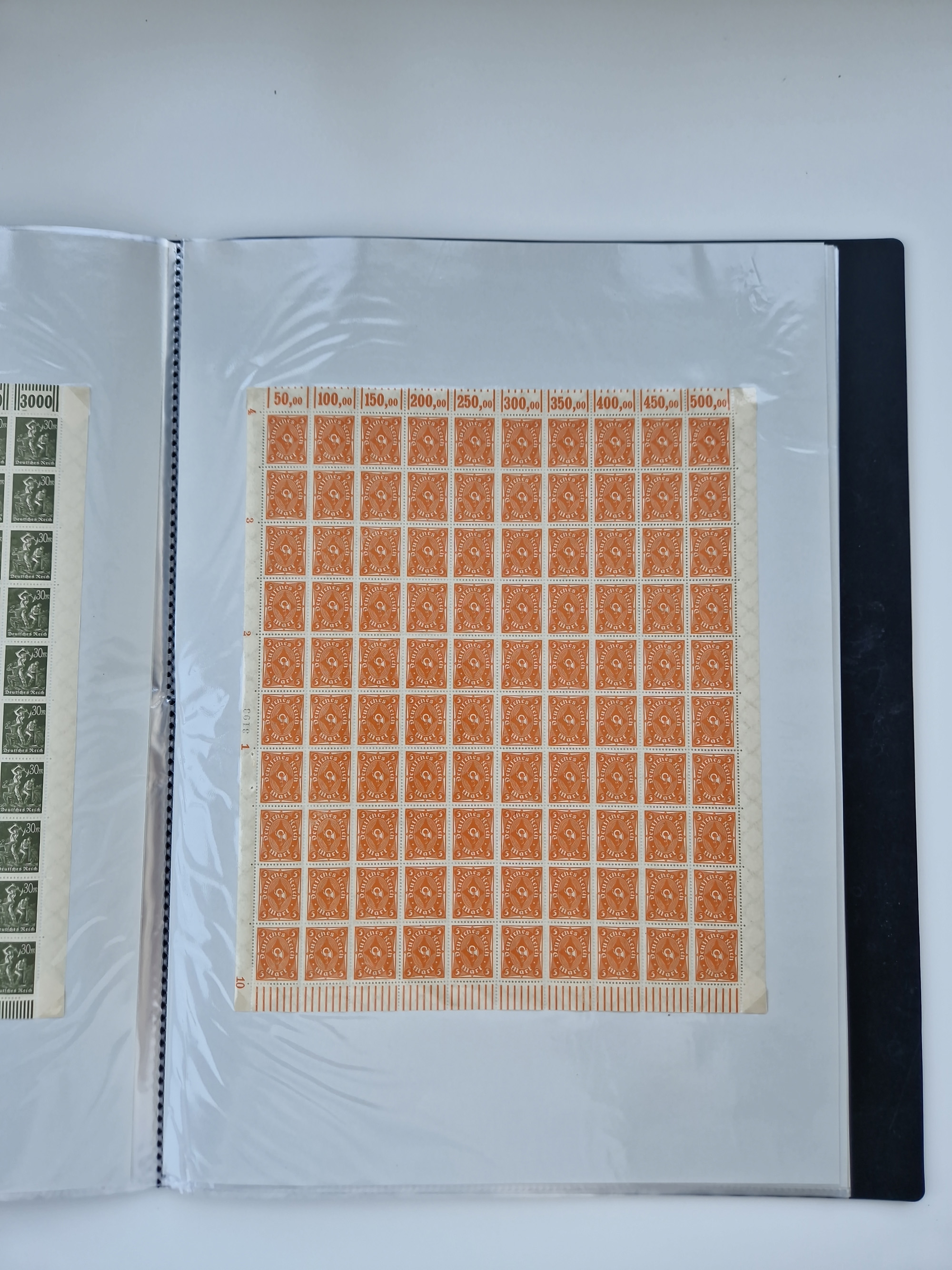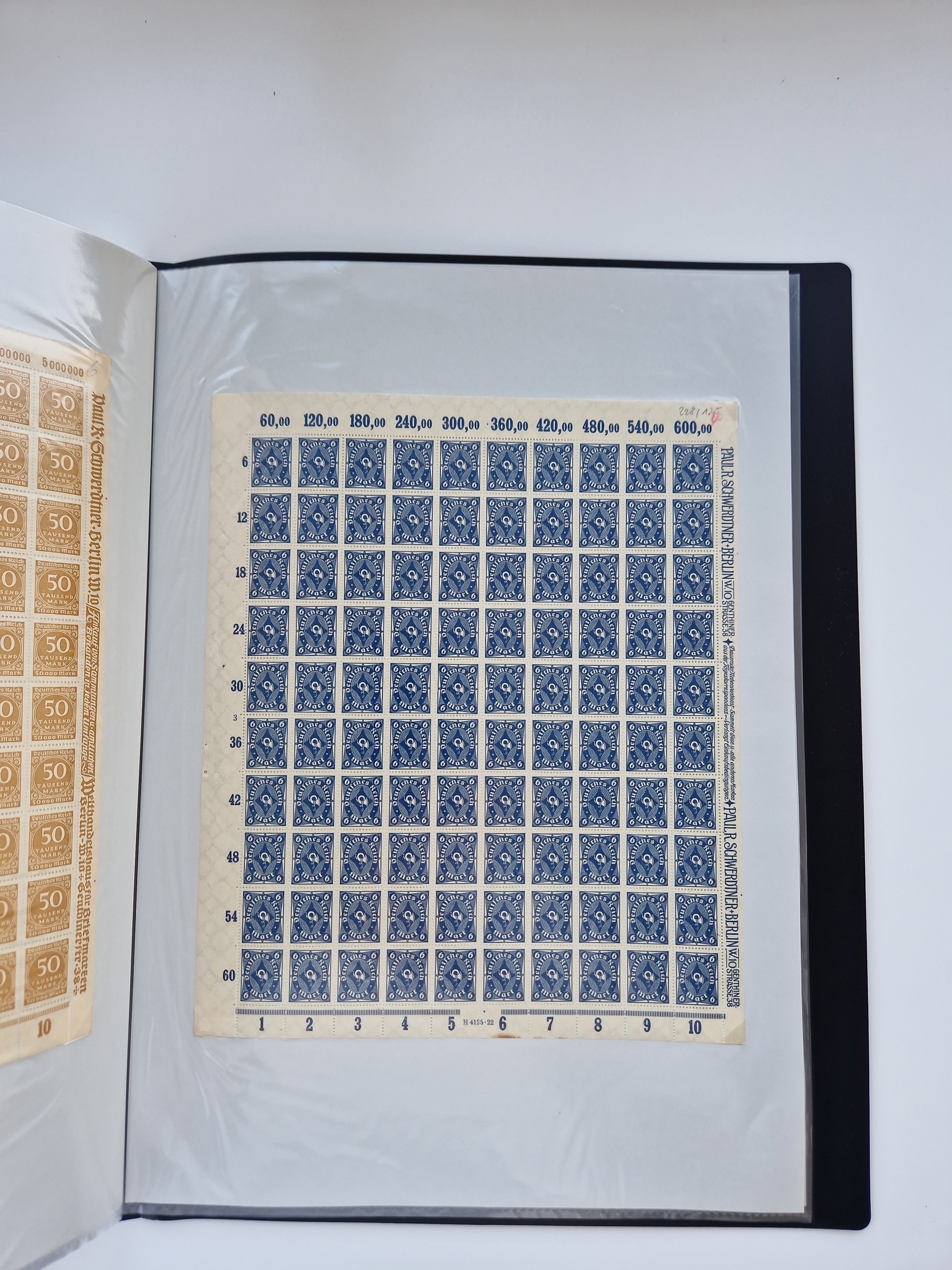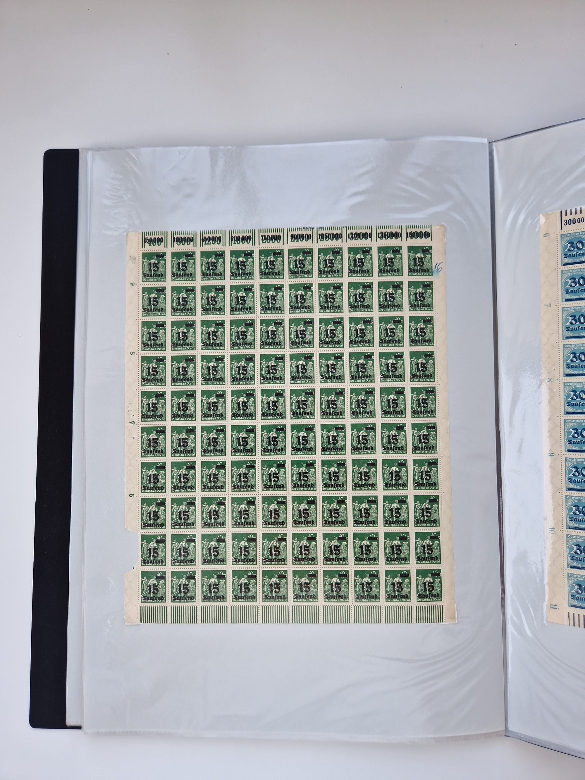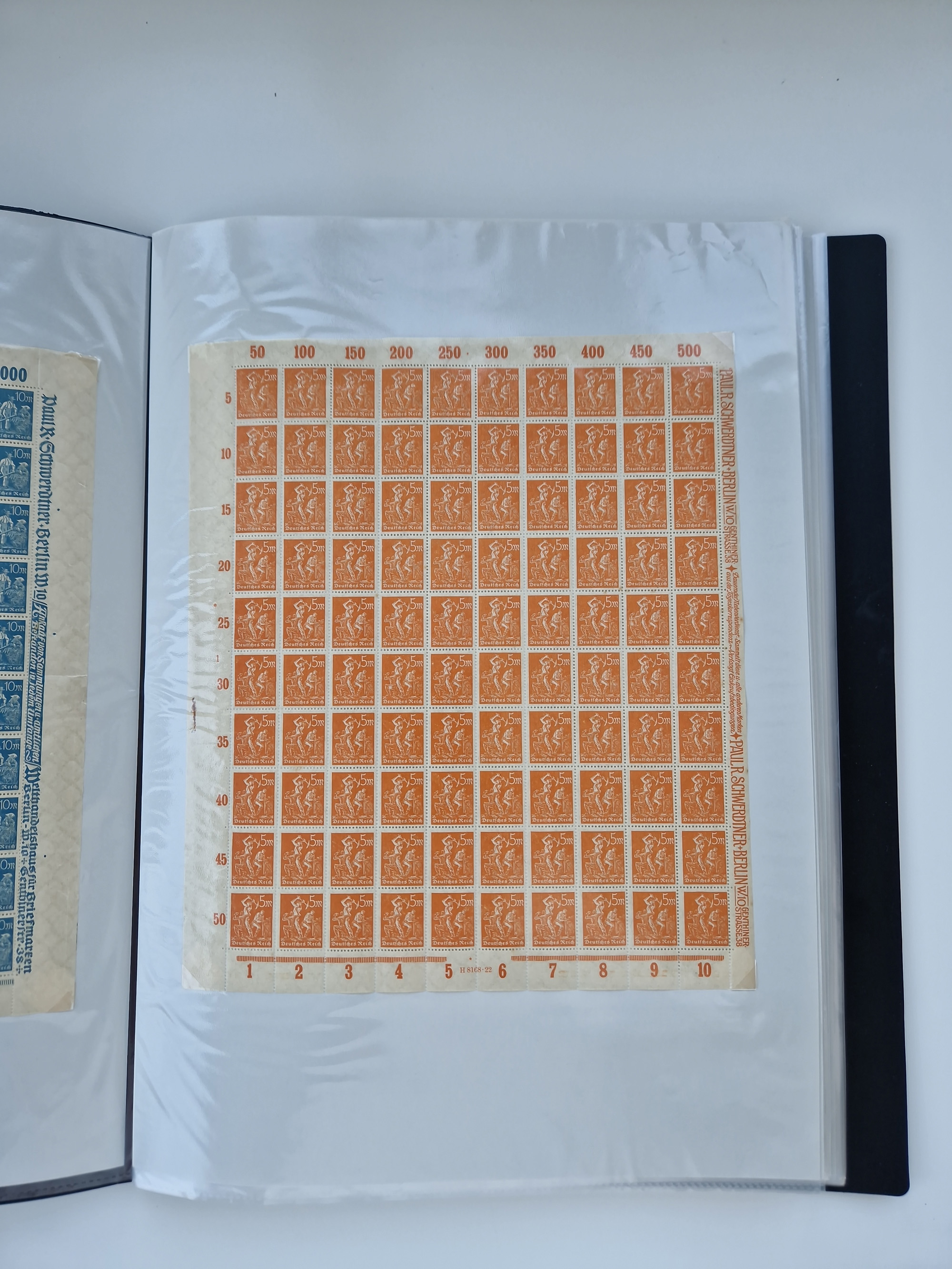 1921/22, postfrischer und ungebrauchter Bestand mit etwas über 200 Bogen und Bogenteilen, dabei Walzen- und Plattenbogen, HAN, Druckereizeichen, Pl.-Nr., auch Wz. Waffeln und Bogentaschen, teils sign. INFLA Berlin, etwas unterschiedliche Erhaltung, in zwei Ordnern