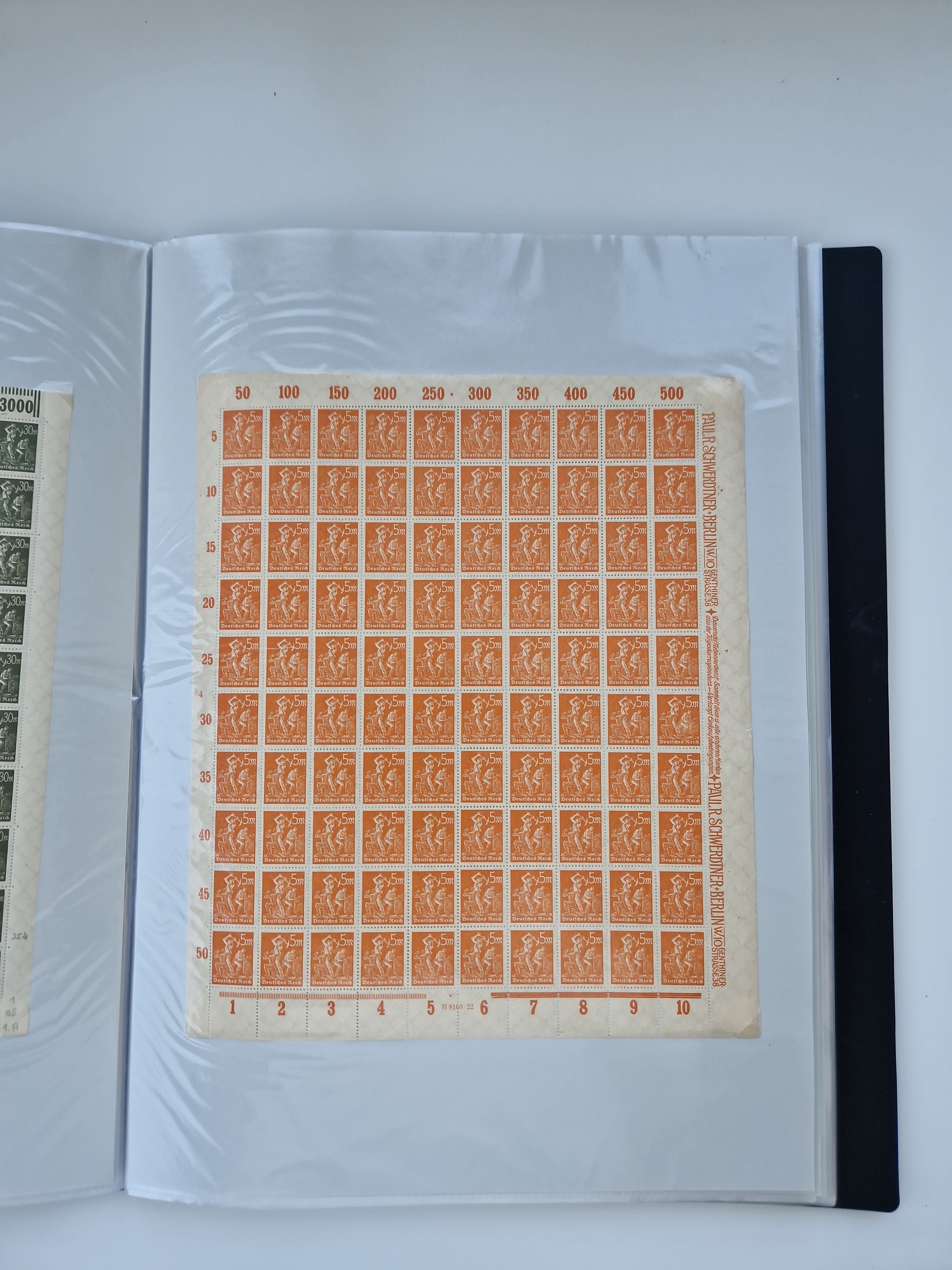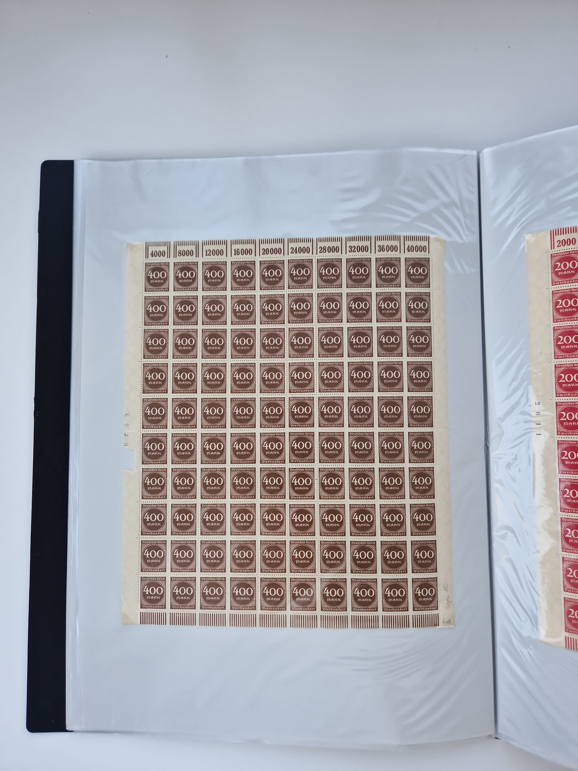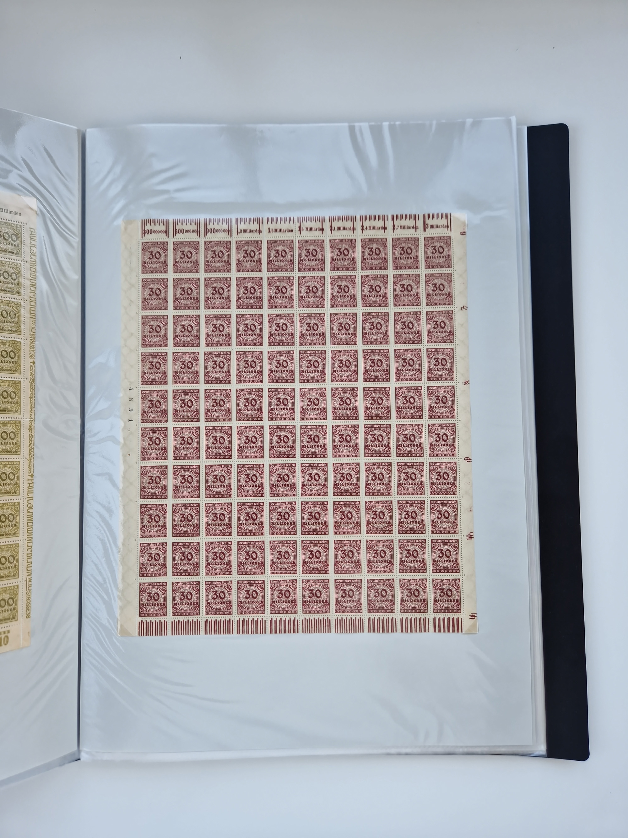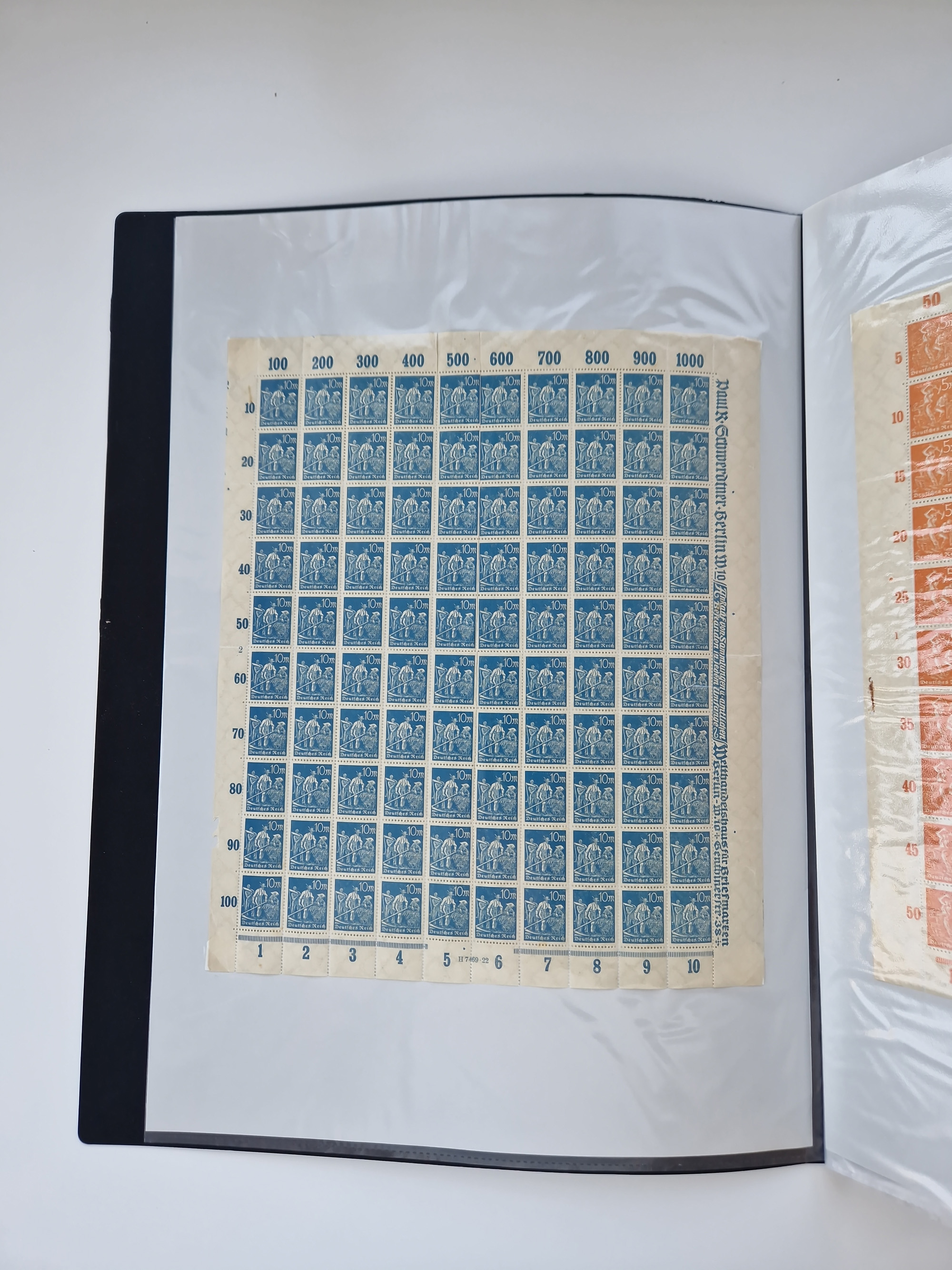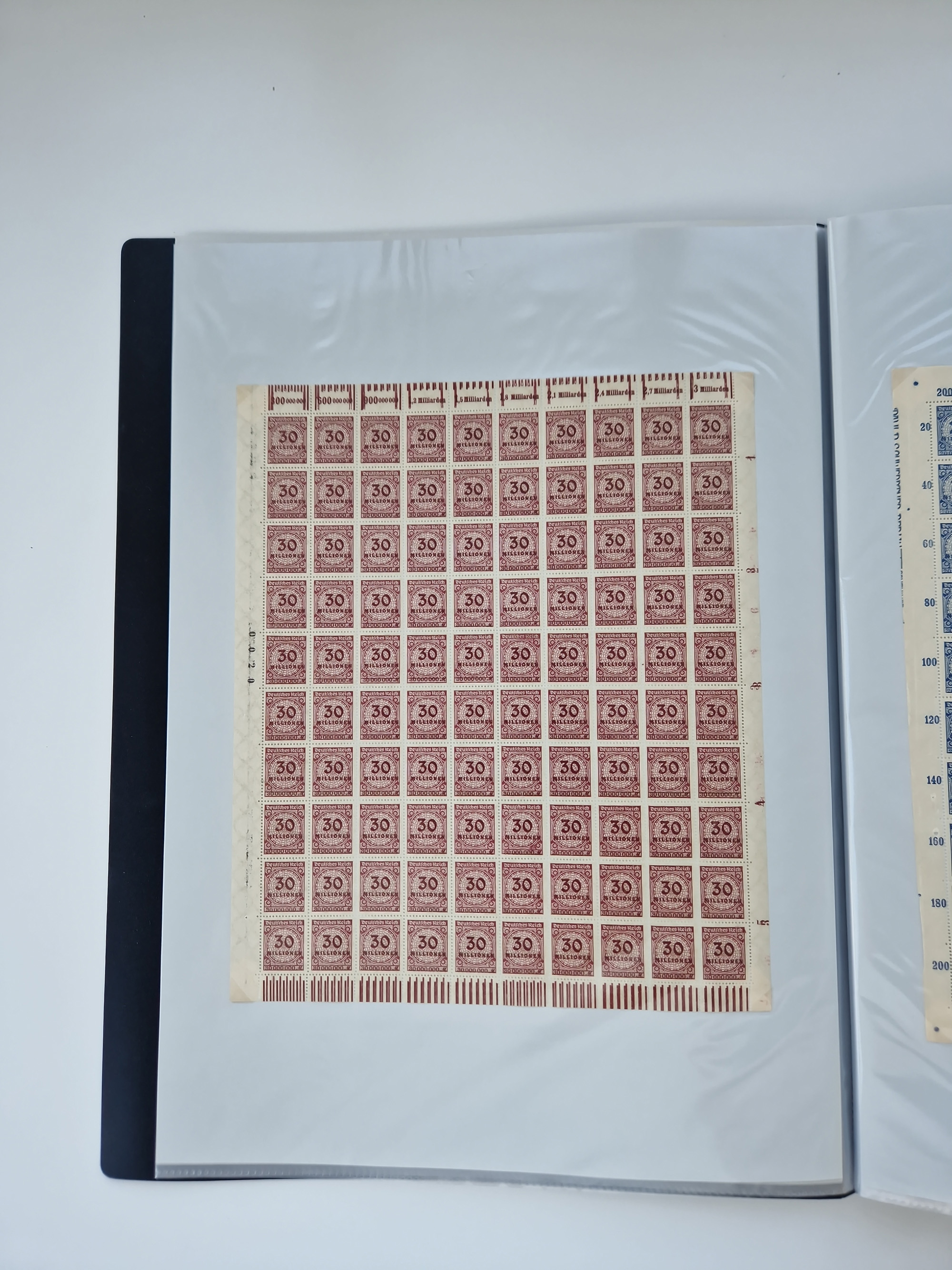 1921/22, postfrischer und ungebrauchter Bestand mit etwas über 200 Bogen und Bogenteilen, dabei Walzen- und Plattenbogen, HAN, Druckereizeichen, Pl.-Nr., auch Wz. Waffeln und Bogentaschen, teils sign. INFLA Berlin, etwas unterschiedliche Erhaltung, in zwei Ordnern