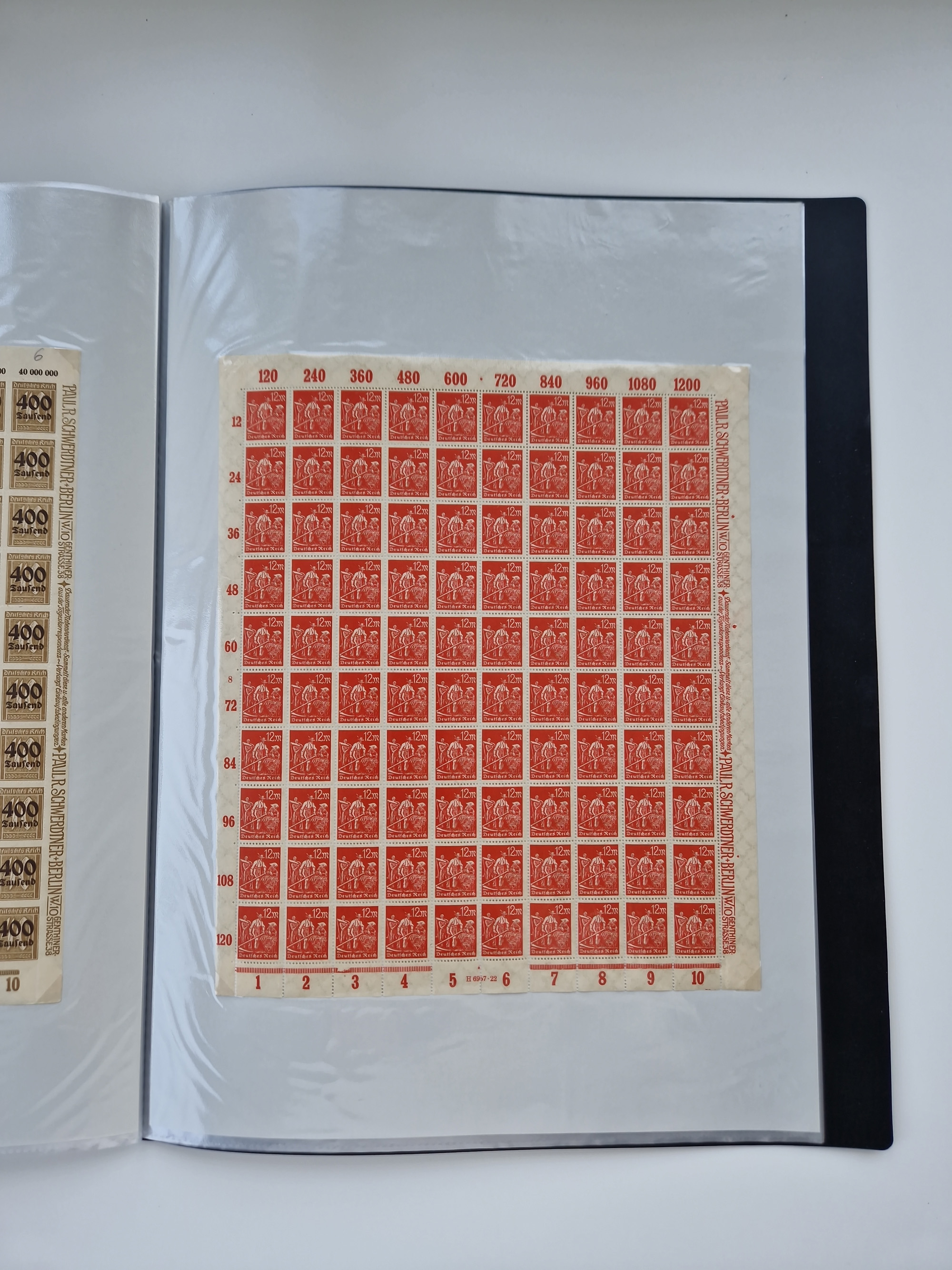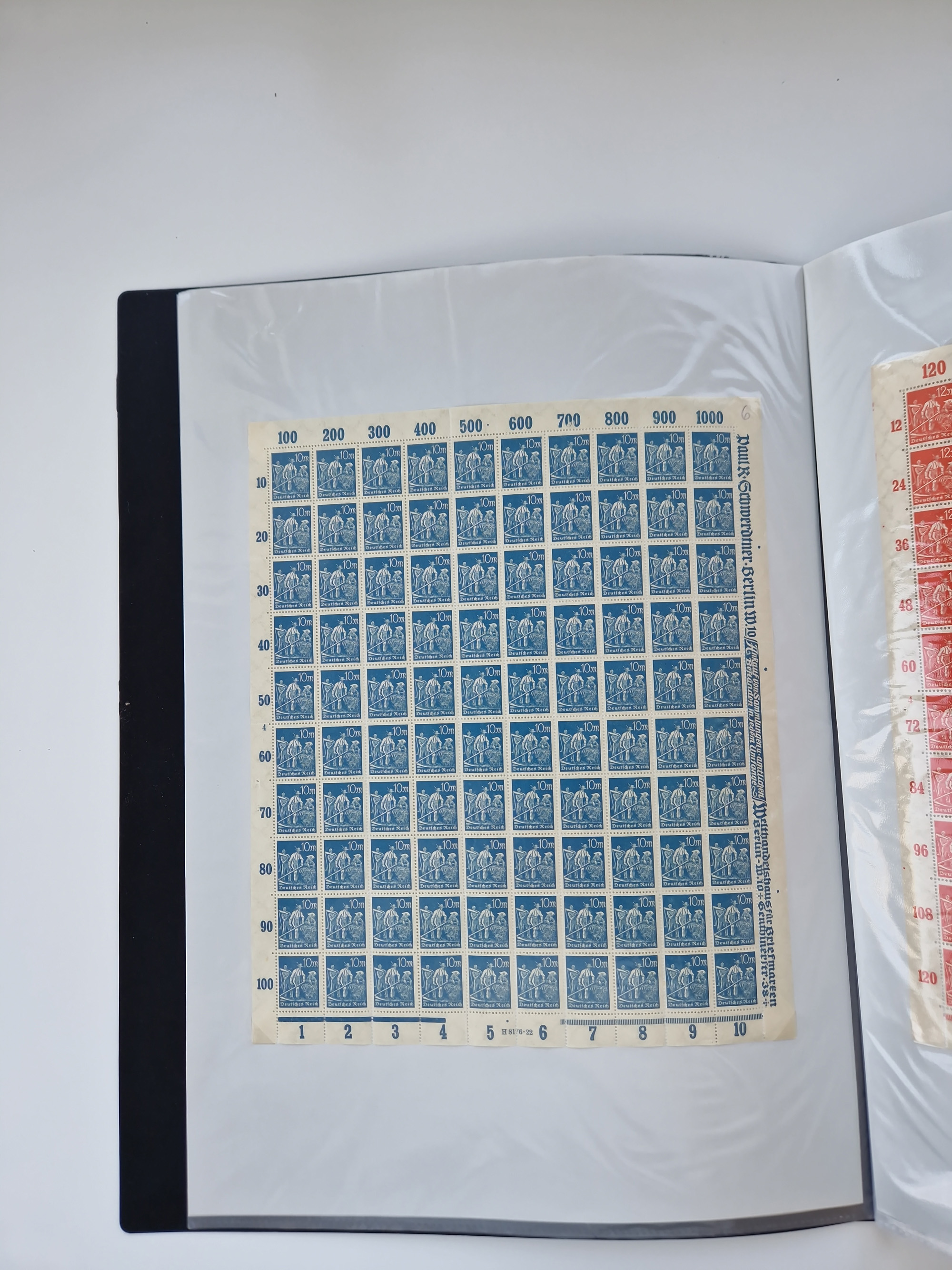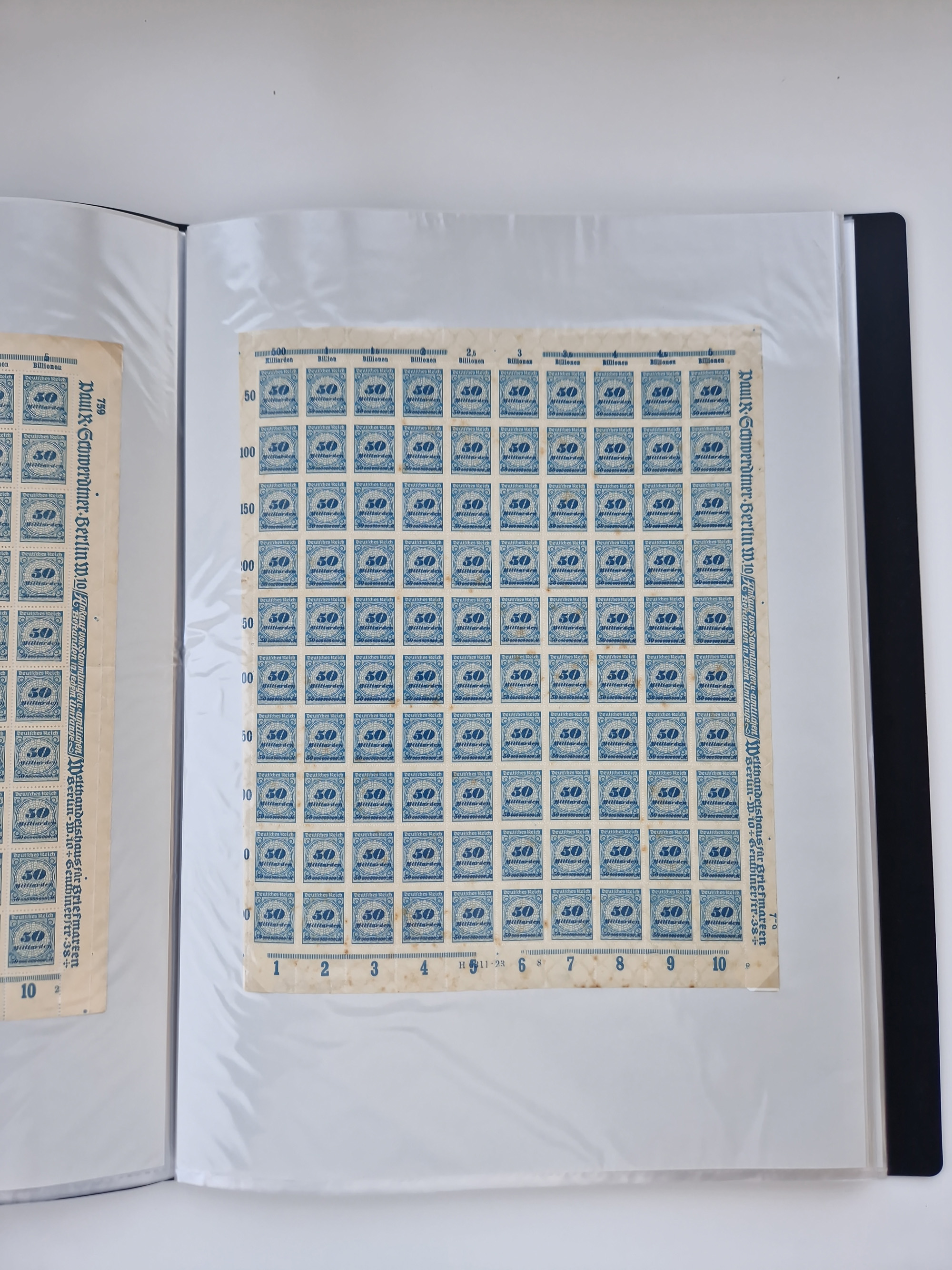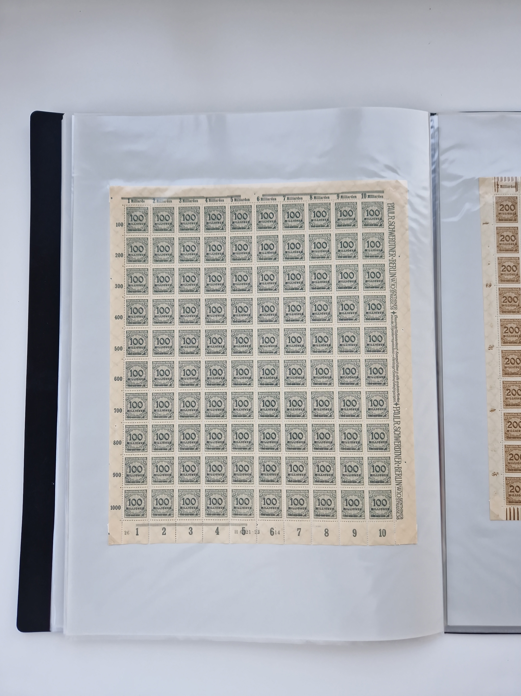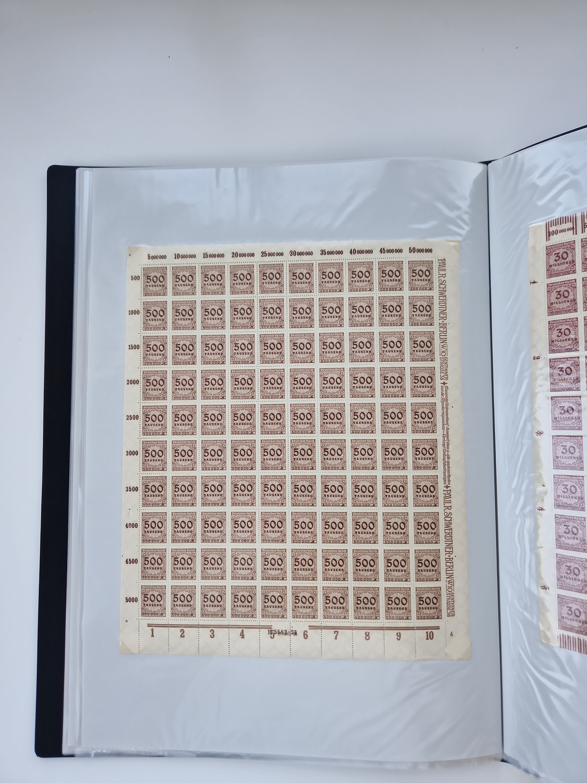 1921/22, postfrischer und ungebrauchter Bestand mit etwas über 200 Bogen und Bogenteilen, dabei Walzen- und Plattenbogen, HAN, Druckereizeichen, Pl.-Nr., auch Wz. Waffeln und Bogentaschen, teils sign. INFLA Berlin, etwas unterschiedliche Erhaltung, in zwei Ordnern