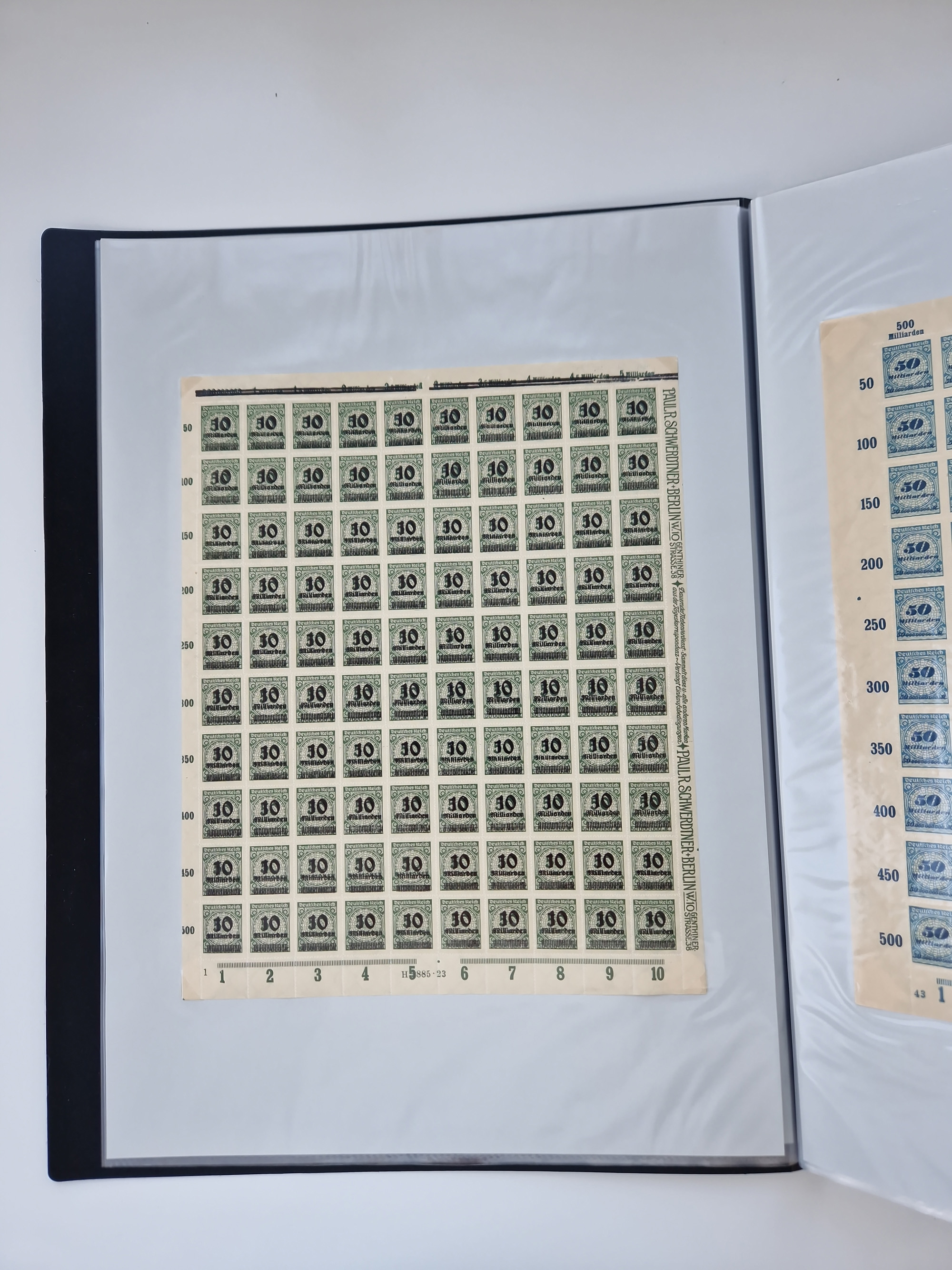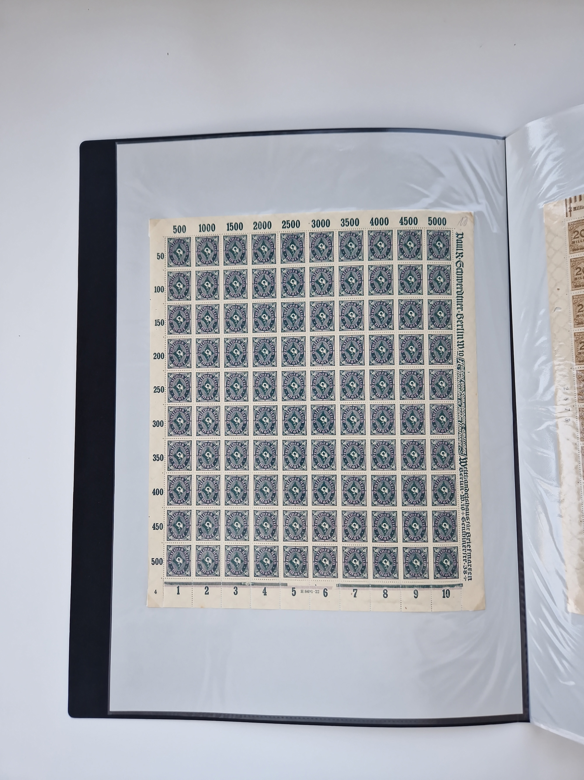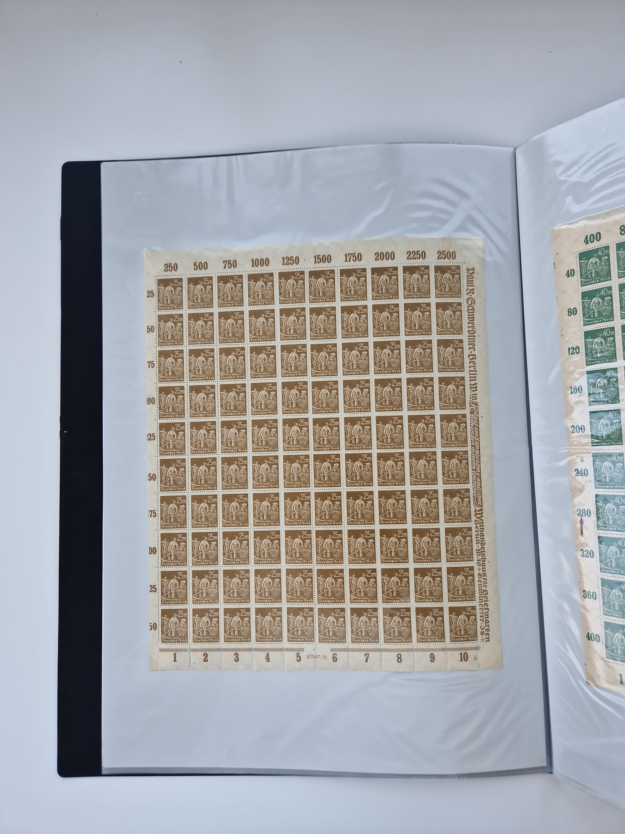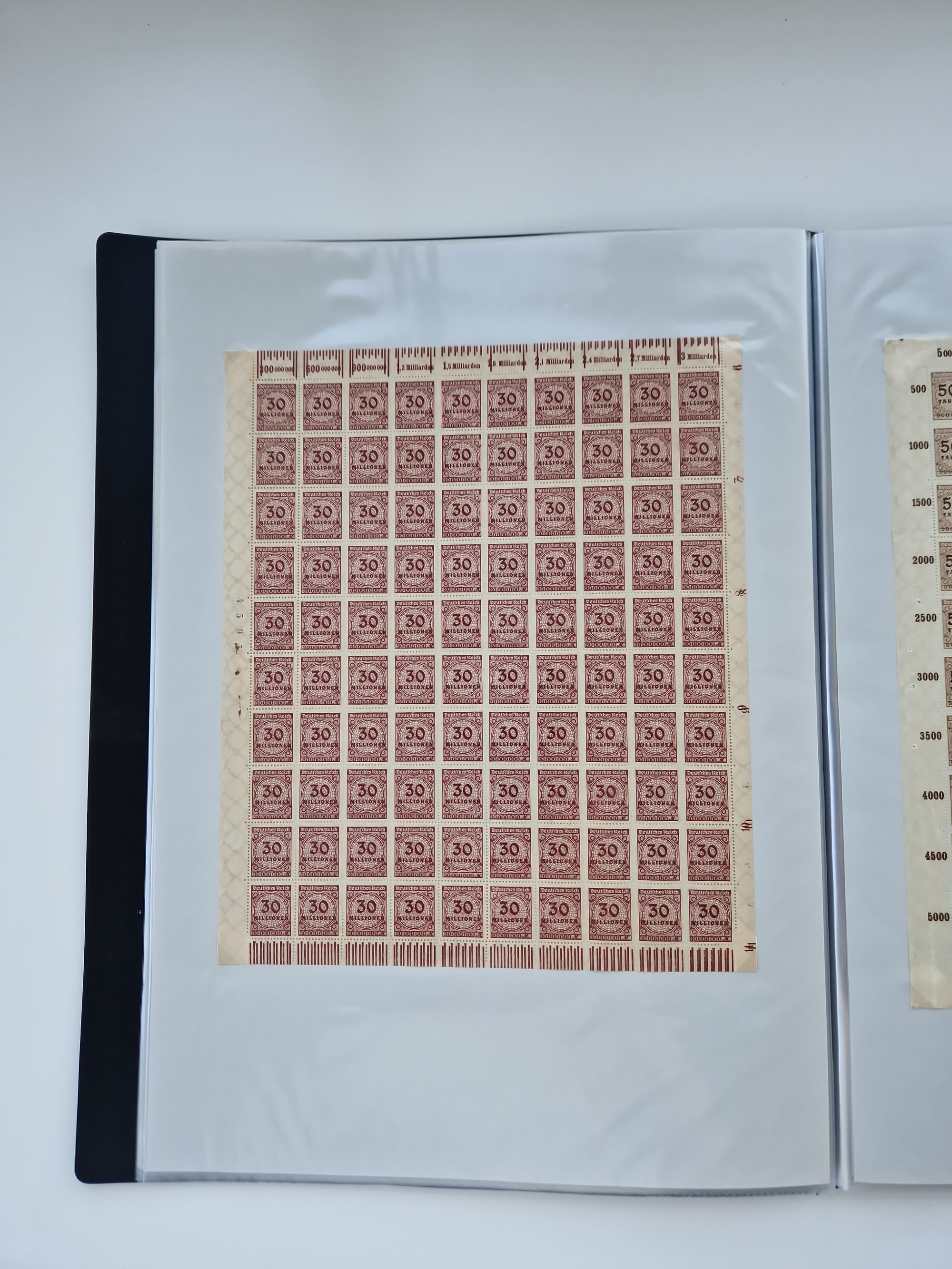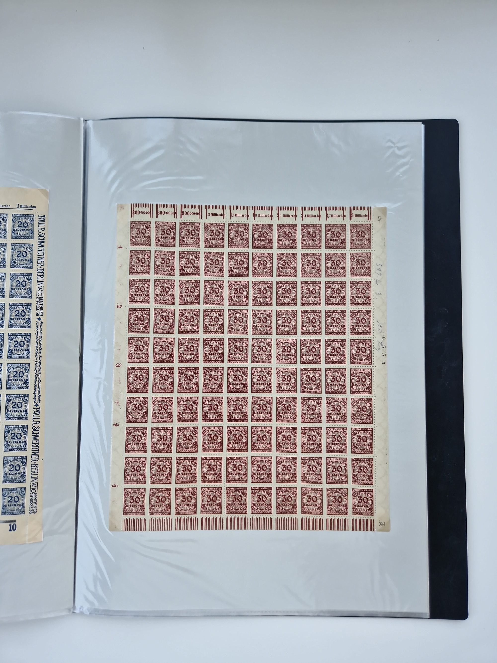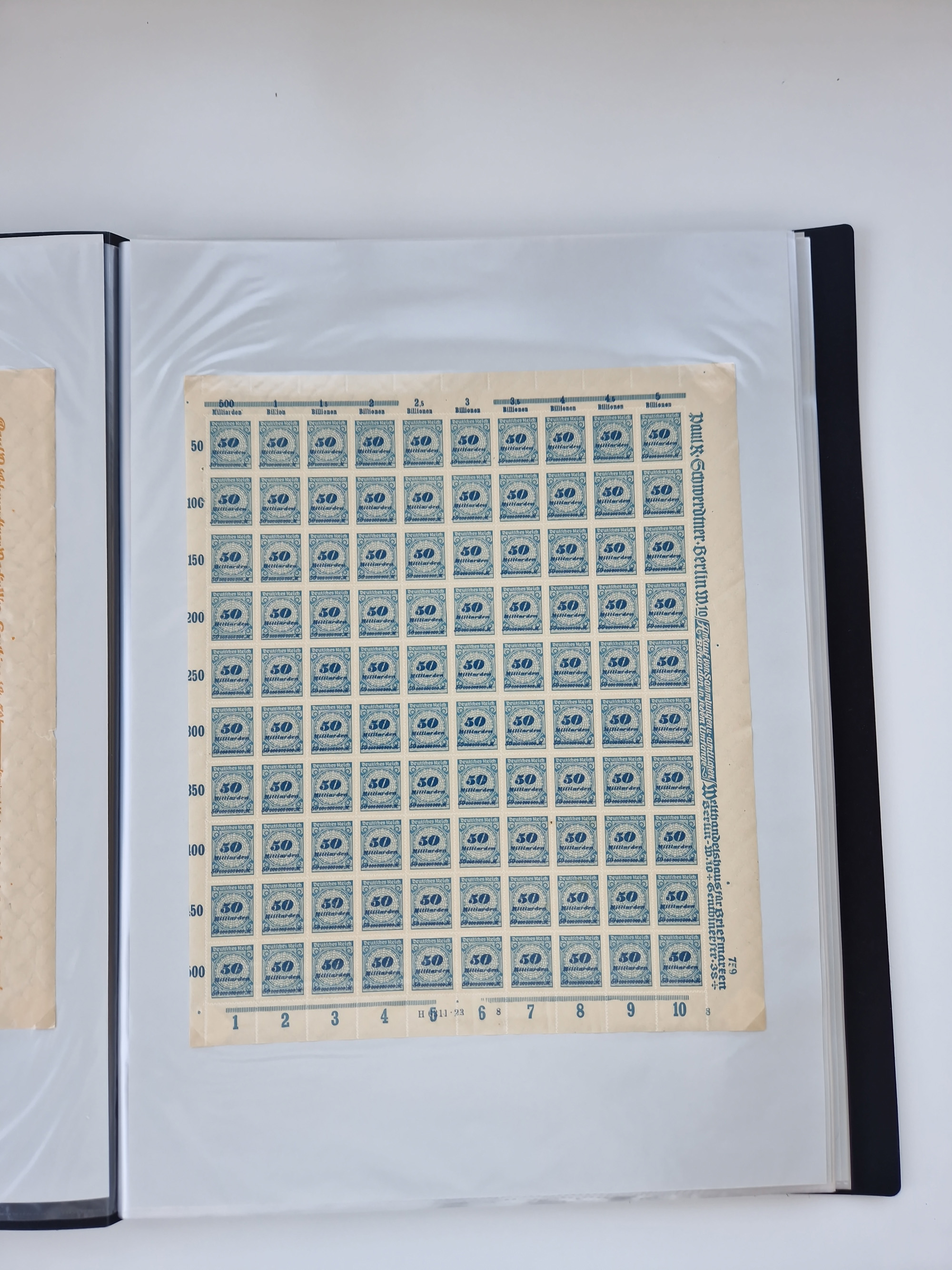1921/22, postfrischer und ungebrauchter Bestand mit etwas über 200 Bogen und Bogenteilen, dabei Walzen- und Plattenbogen, HAN, Druckereizeichen, Pl.-Nr., auch Wz. Waffeln und Bogentaschen, teils sign. INFLA Berlin, etwas unterschiedliche Erhaltung, in zwei Ordnern