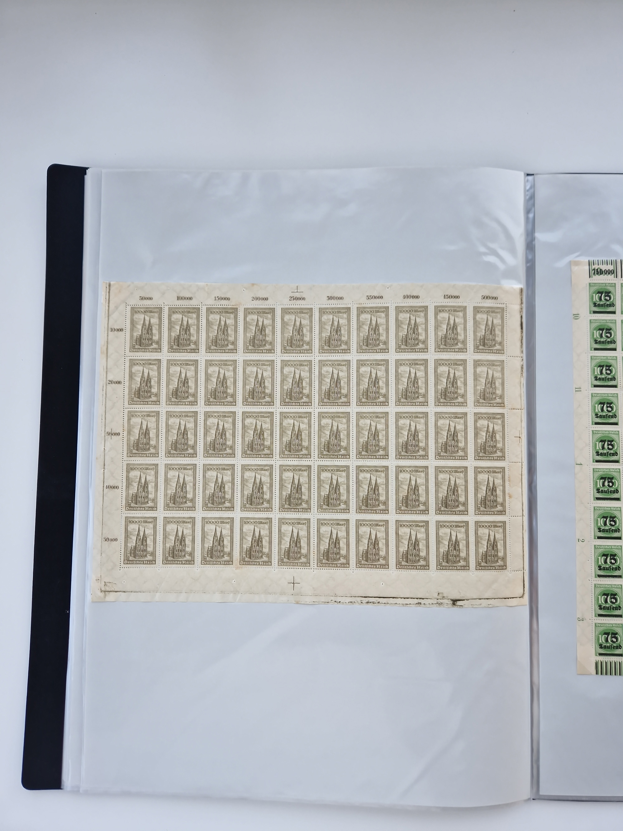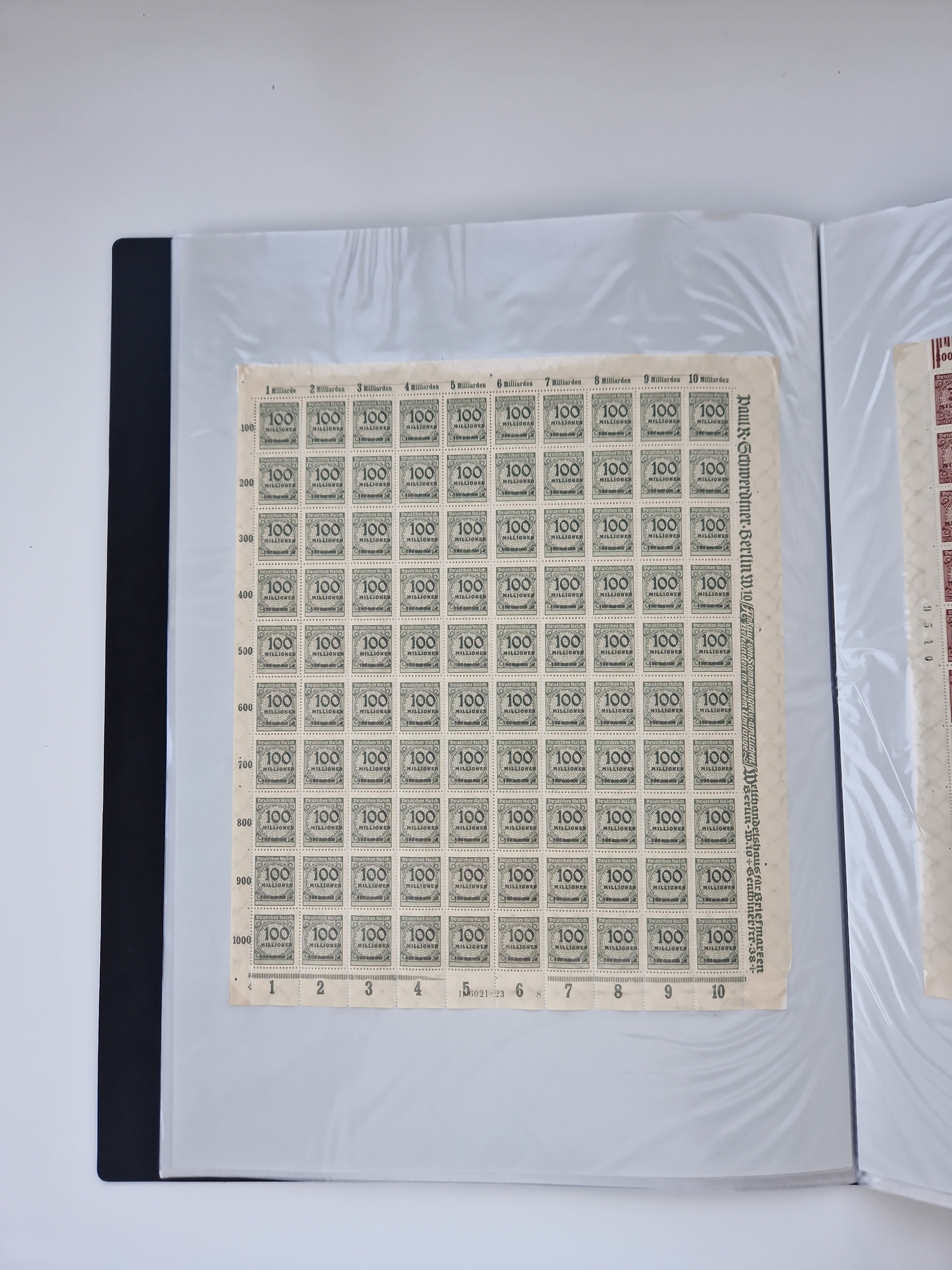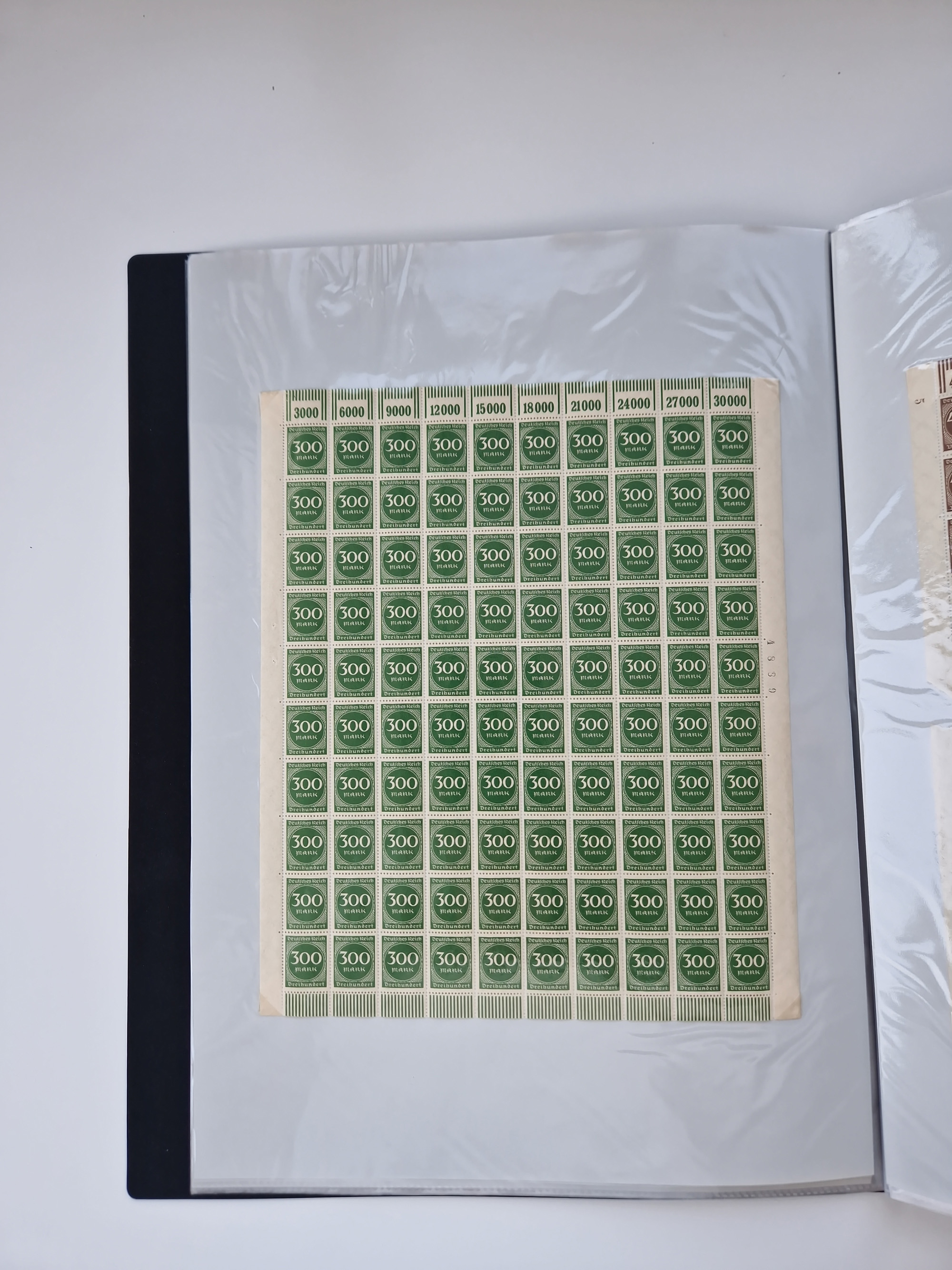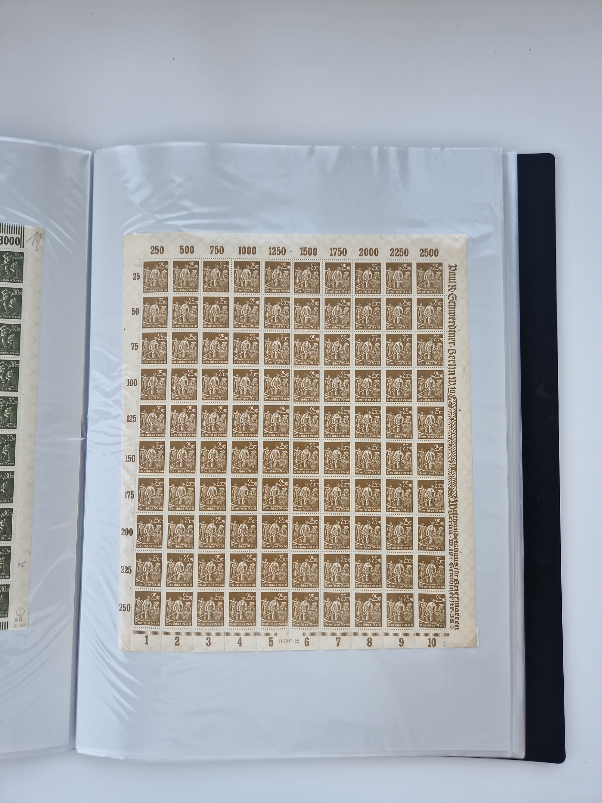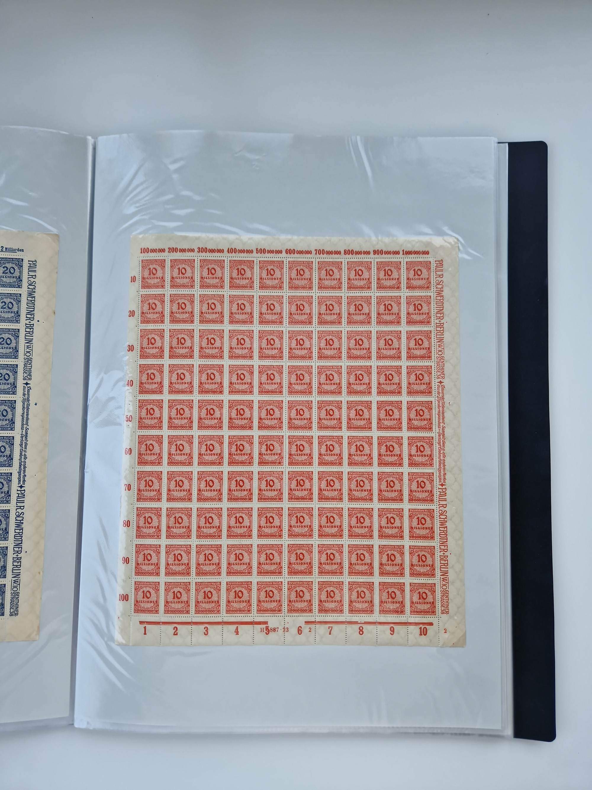1921/22, postfrischer und ungebrauchter Bestand mit etwas über 200 Bogen und Bogenteilen, dabei Walzen- und Plattenbogen, HAN, Druckereizeichen, Pl.-Nr., auch Wz. Waffeln und Bogentaschen, teils sign. INFLA Berlin, etwas unterschiedliche Erhaltung, in zwei Ordnern