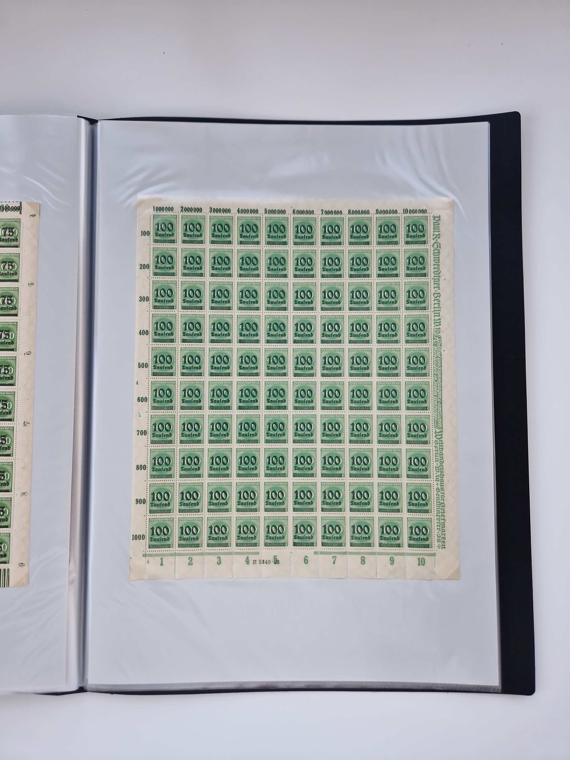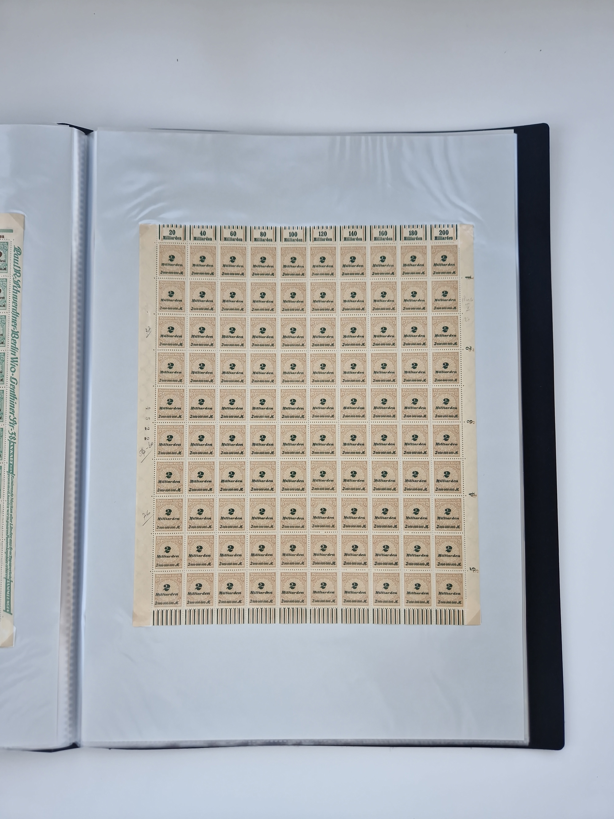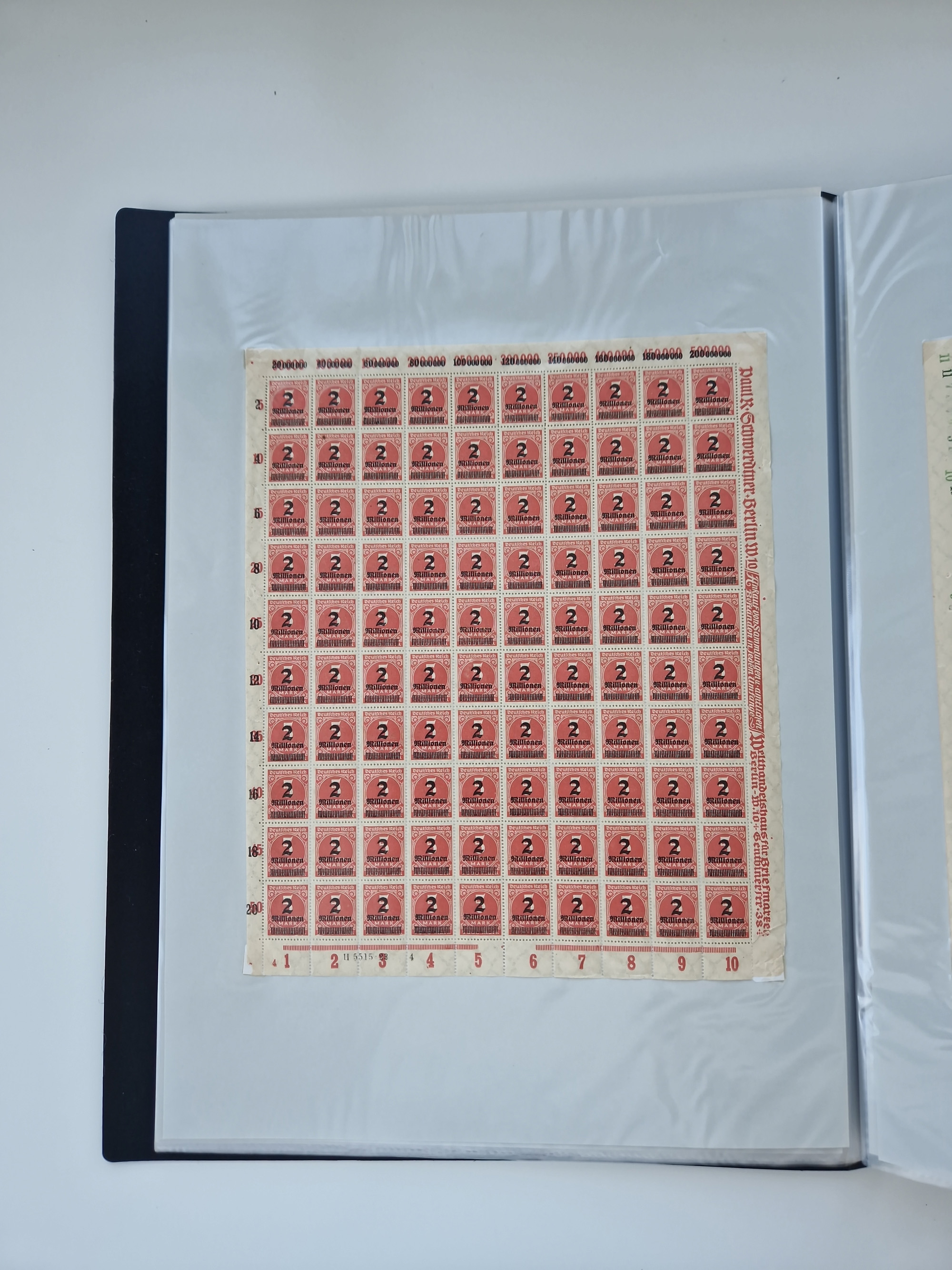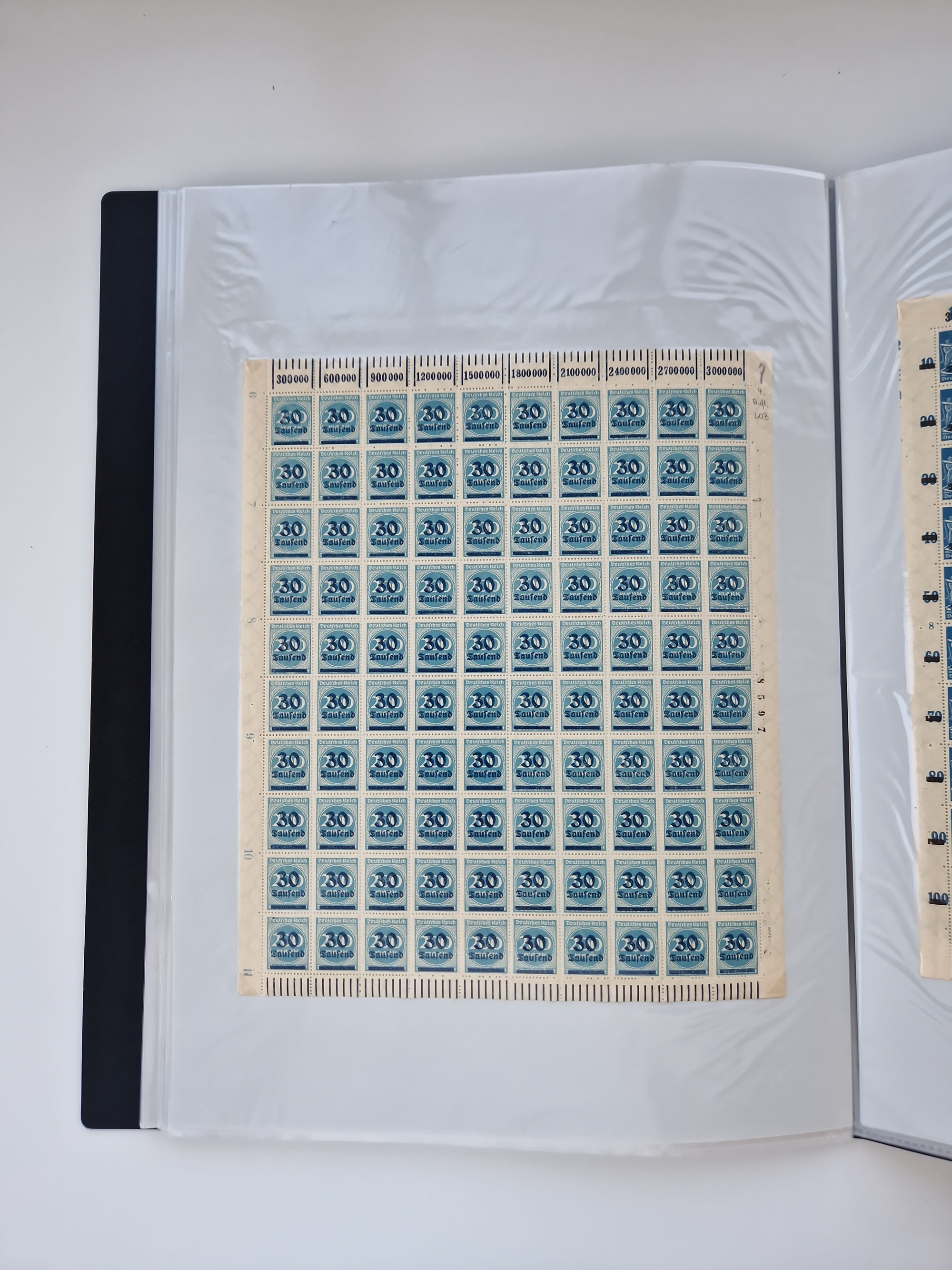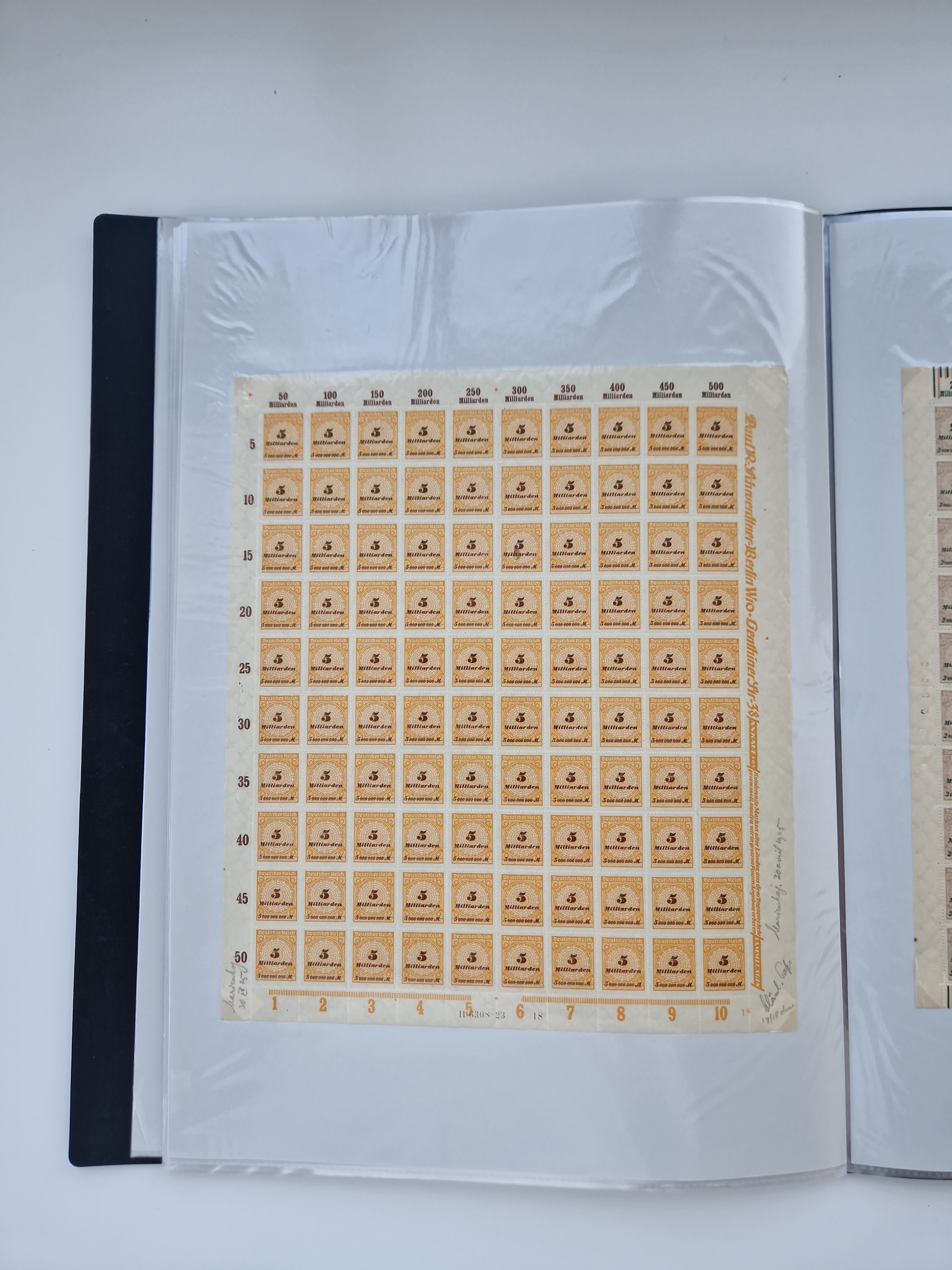 1921/22, postfrischer und ungebrauchter Bestand mit etwas über 200 Bogen und Bogenteilen, dabei Walzen- und Plattenbogen, HAN, Druckereizeichen, Pl.-Nr., auch Wz. Waffeln und Bogentaschen, teils sign. INFLA Berlin, etwas unterschiedliche Erhaltung, in zwei Ordnern