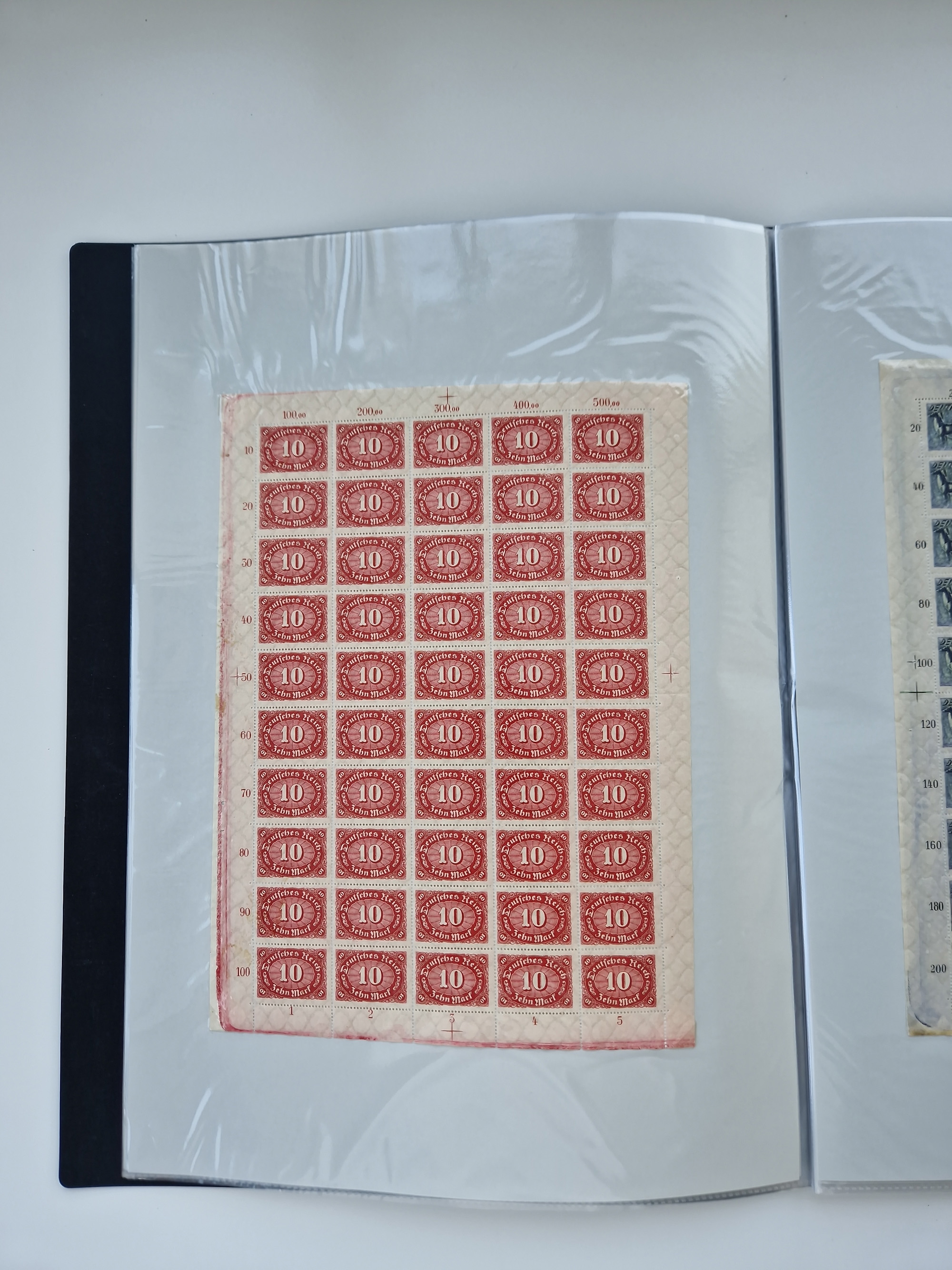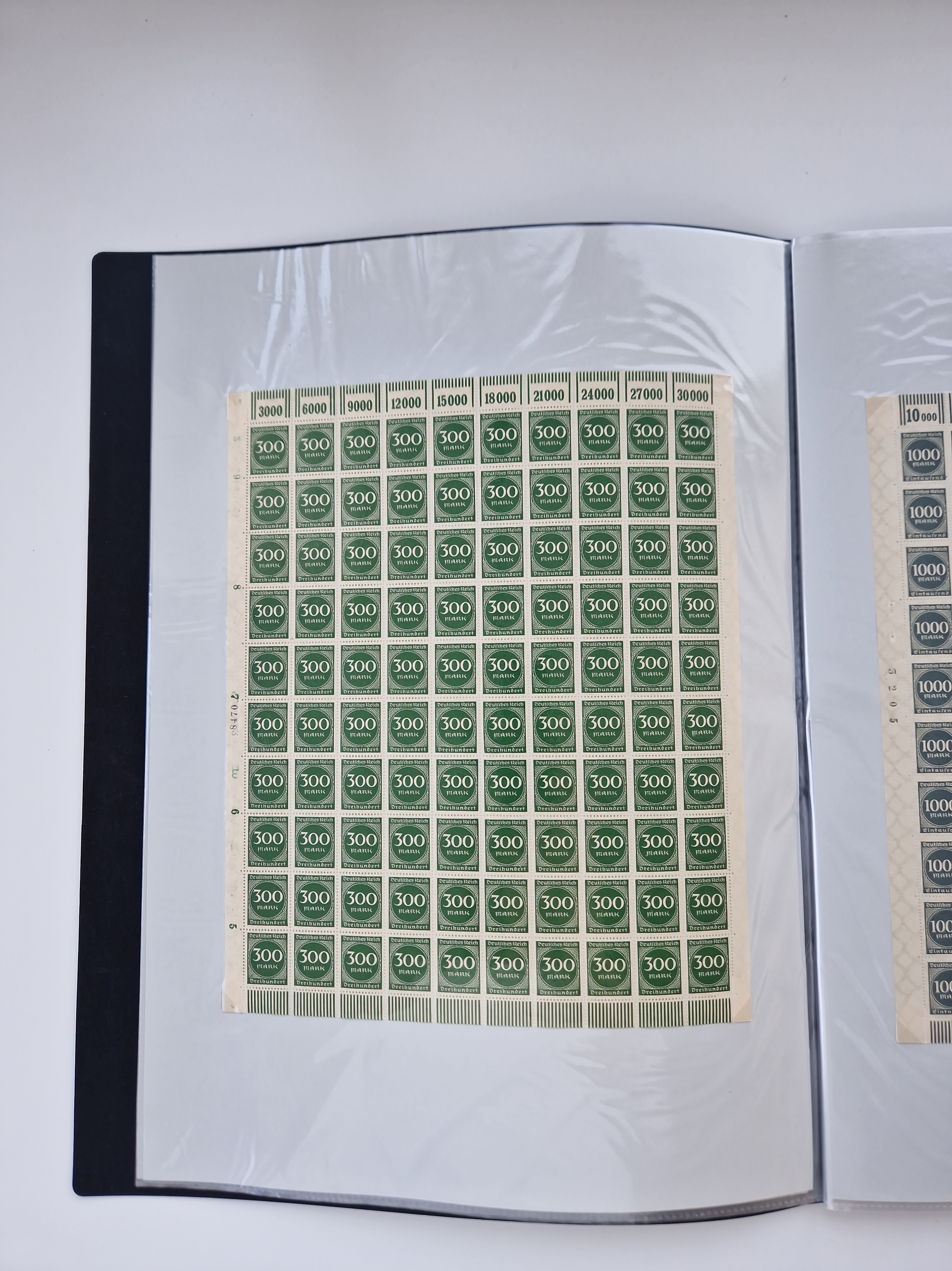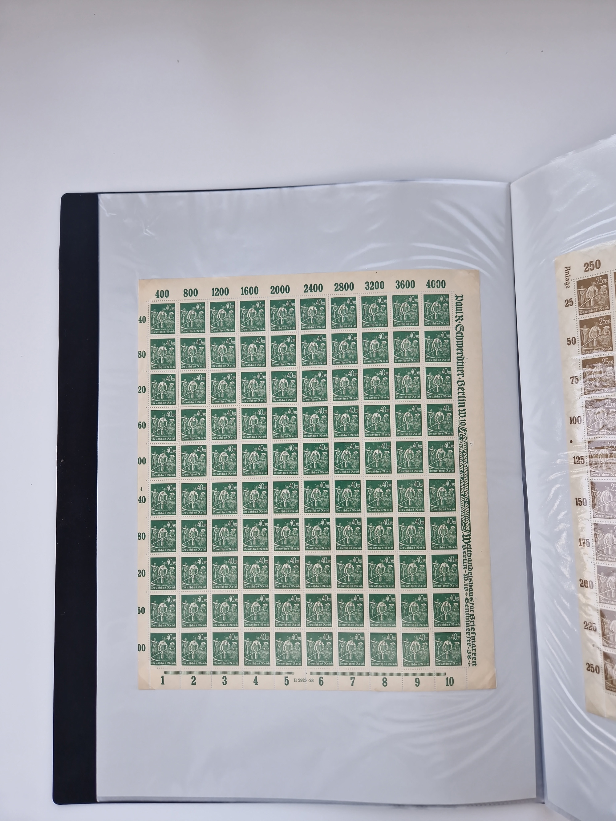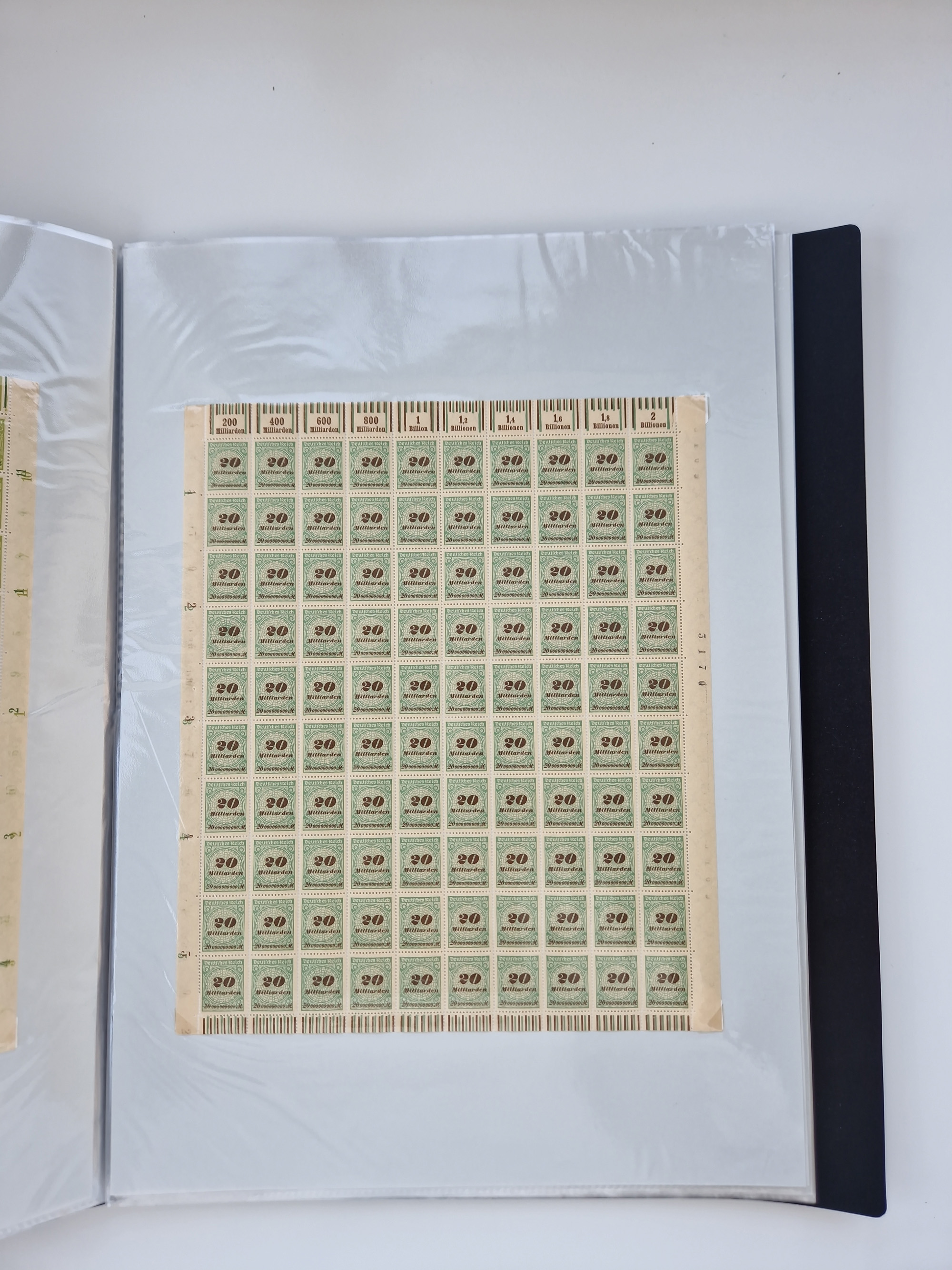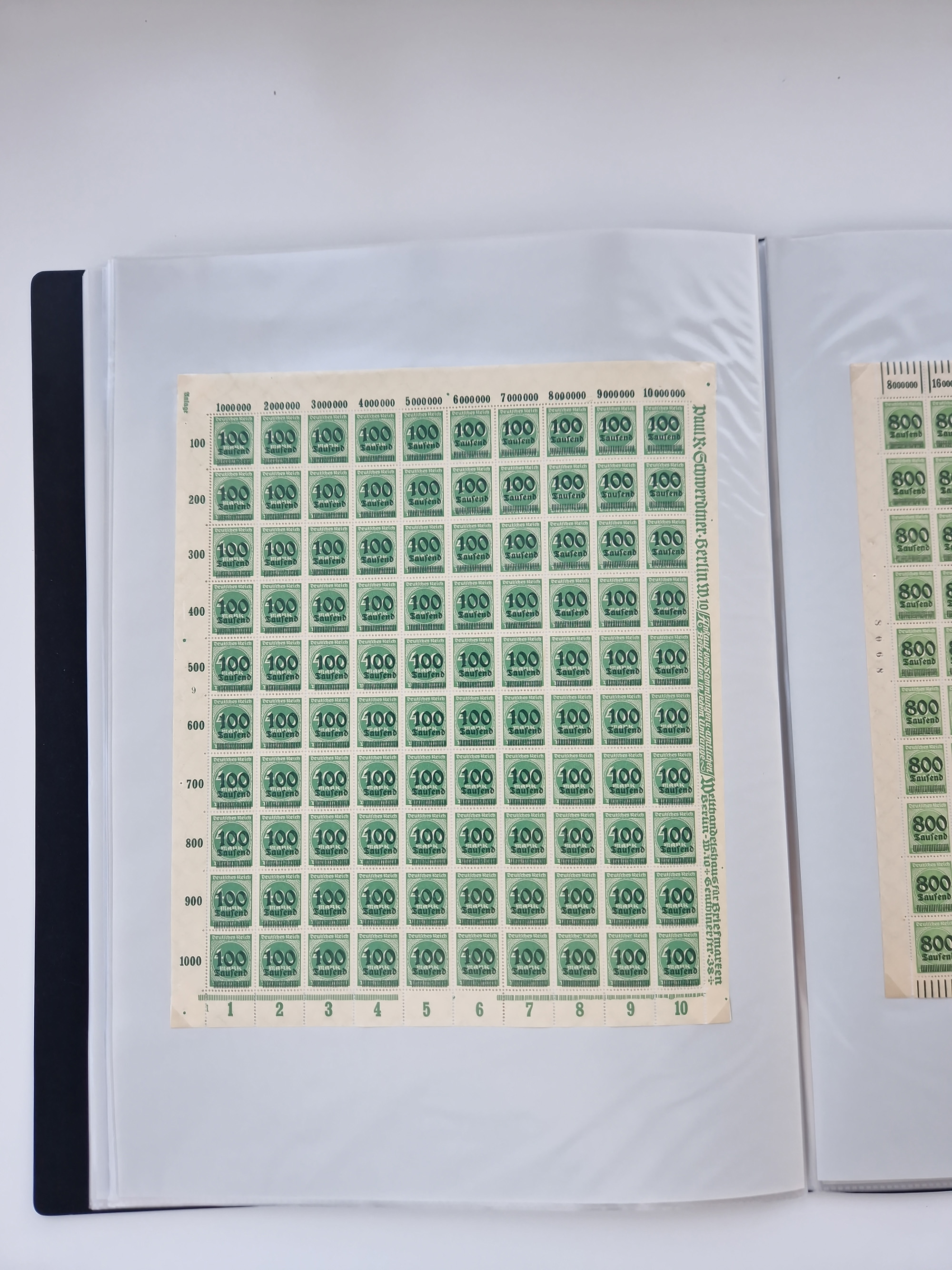 1921/22, postfrischer und ungebrauchter Bestand mit etwas über 200 Bogen und Bogenteilen, dabei Walzen- und Plattenbogen, HAN, Druckereizeichen, Pl.-Nr., auch Wz. Waffeln und Bogentaschen, teils sign. INFLA Berlin, etwas unterschiedliche Erhaltung, in zwei Ordnern