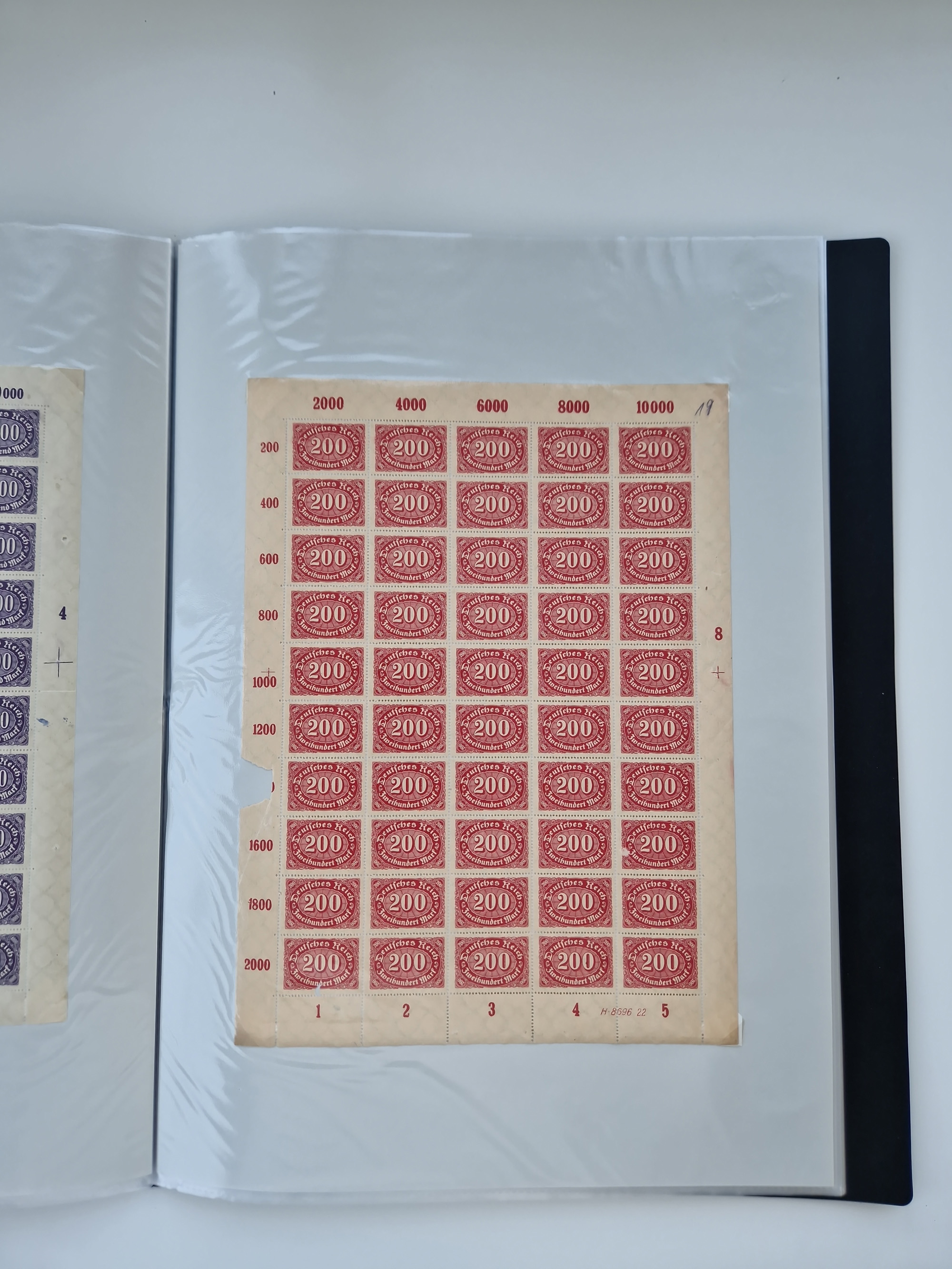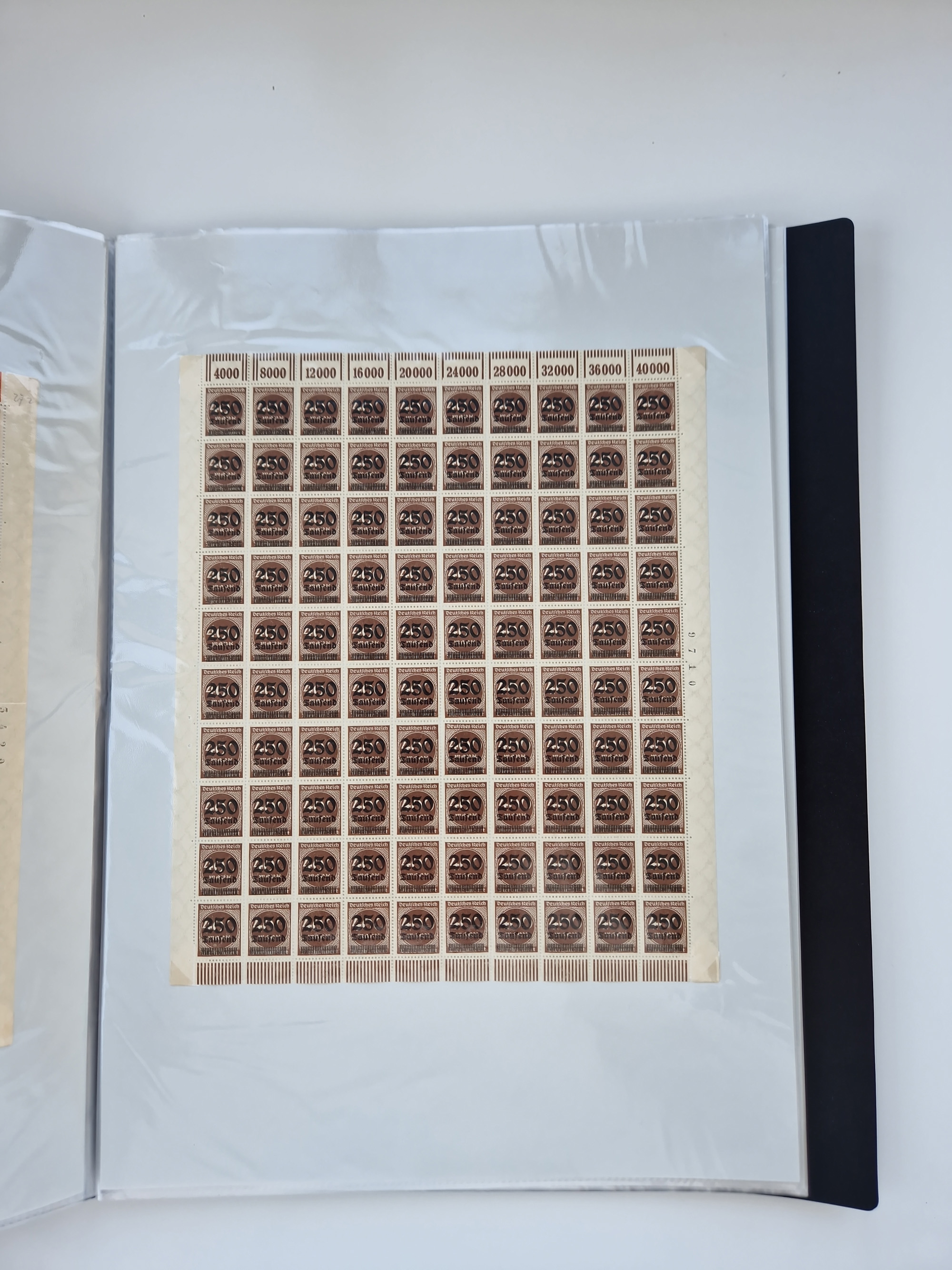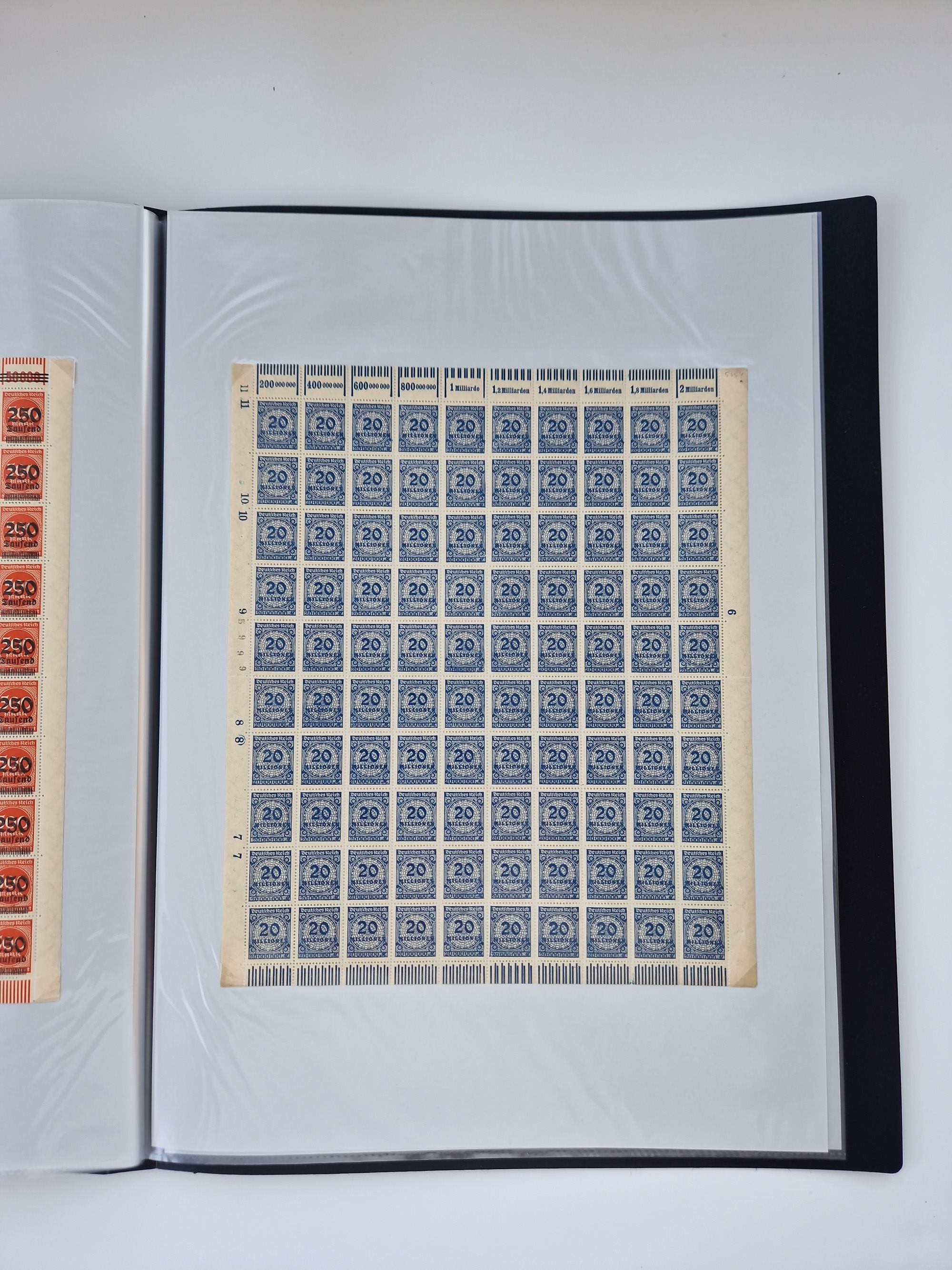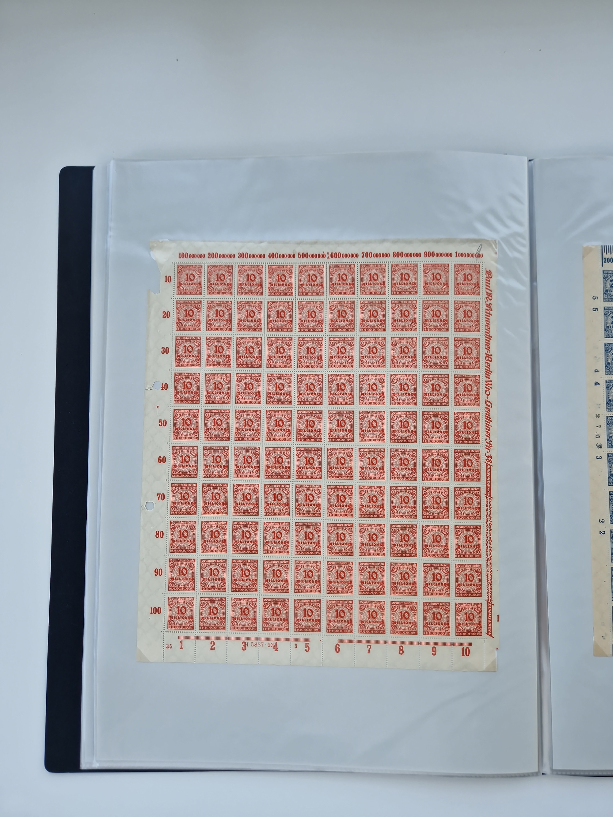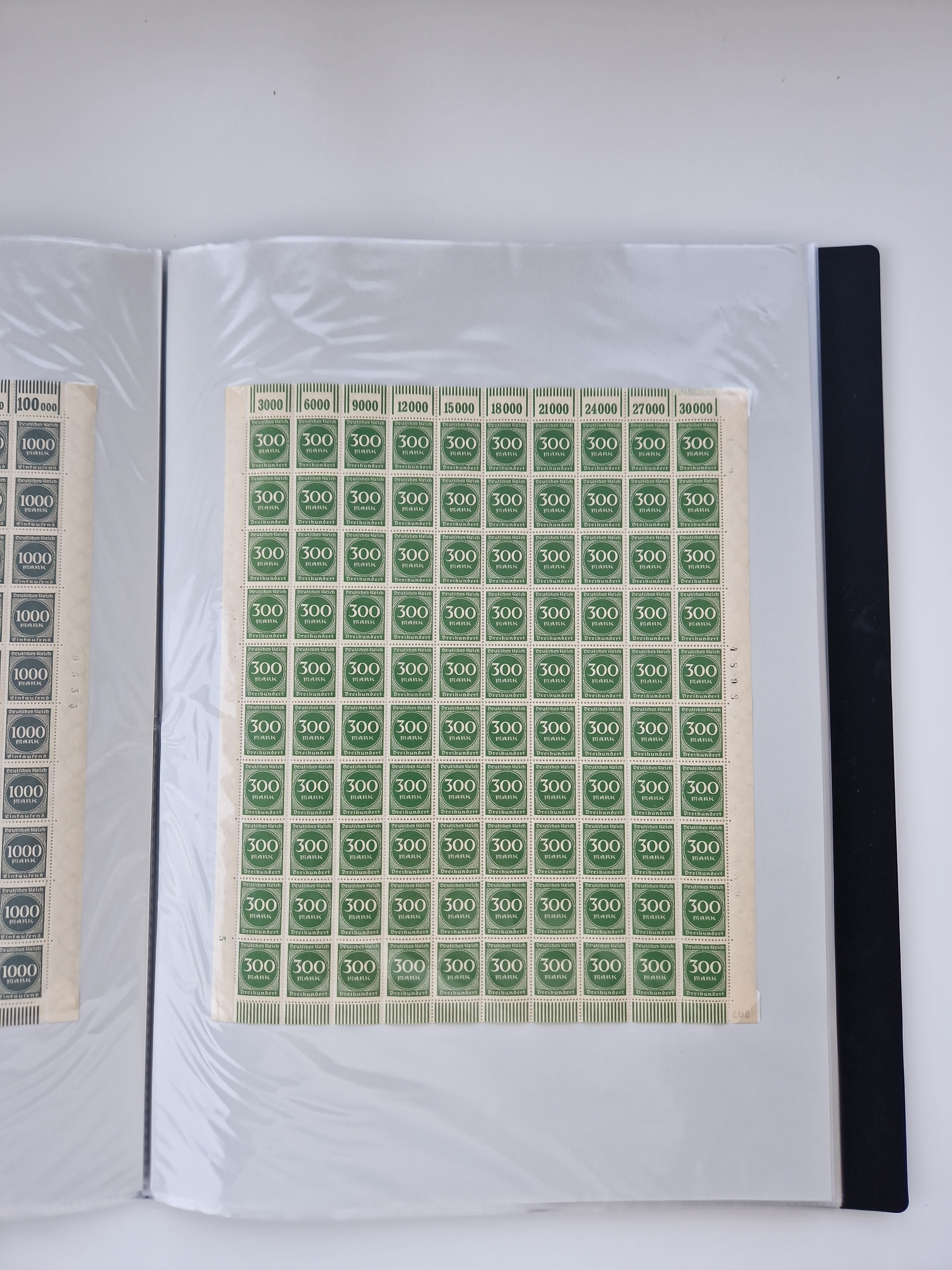 1921/22, postfrischer und ungebrauchter Bestand mit etwas über 200 Bogen und Bogenteilen, dabei Walzen- und Plattenbogen, HAN, Druckereizeichen, Pl.-Nr., auch Wz. Waffeln und Bogentaschen, teils sign. INFLA Berlin, etwas unterschiedliche Erhaltung, in zwei Ordnern