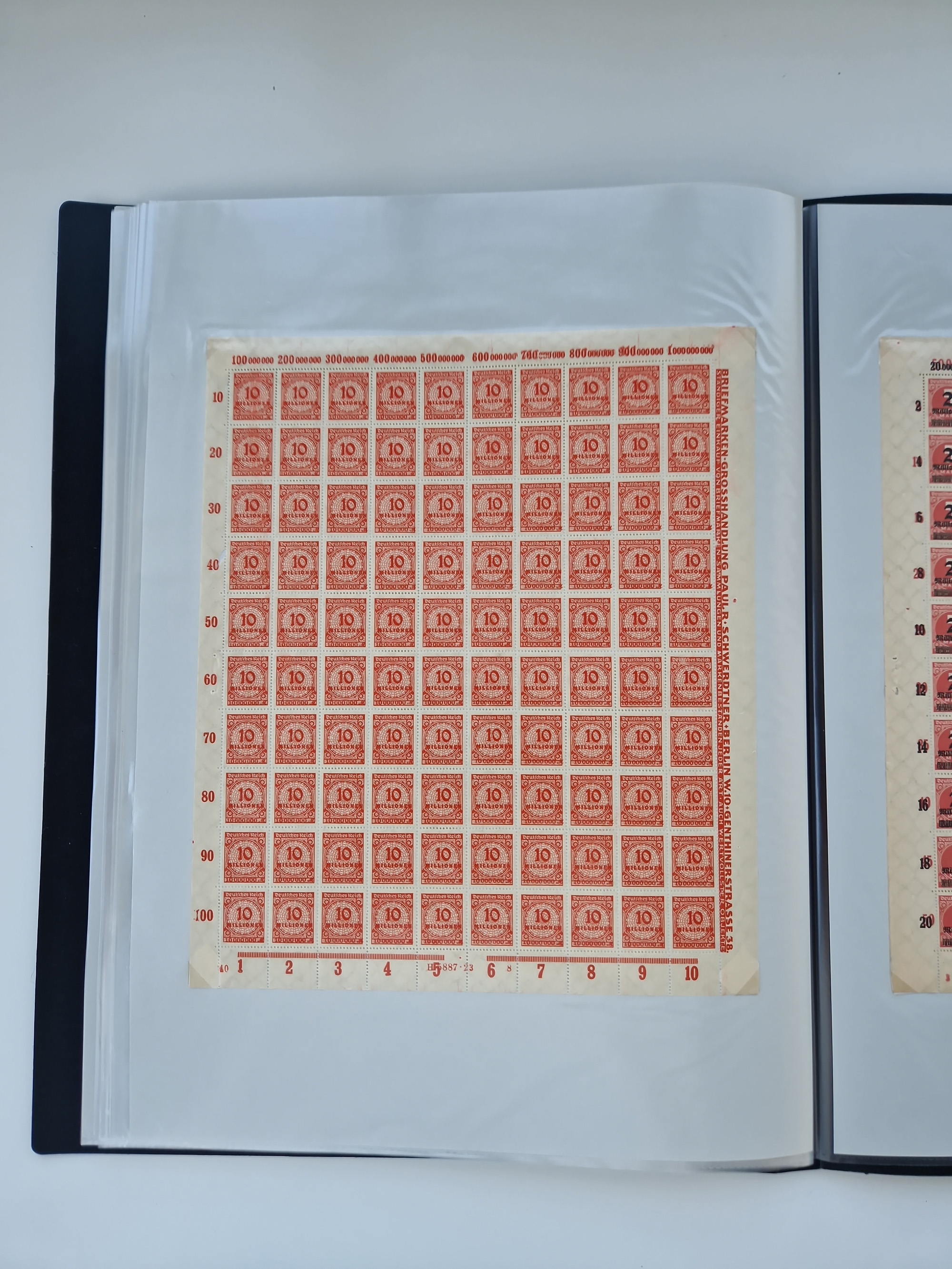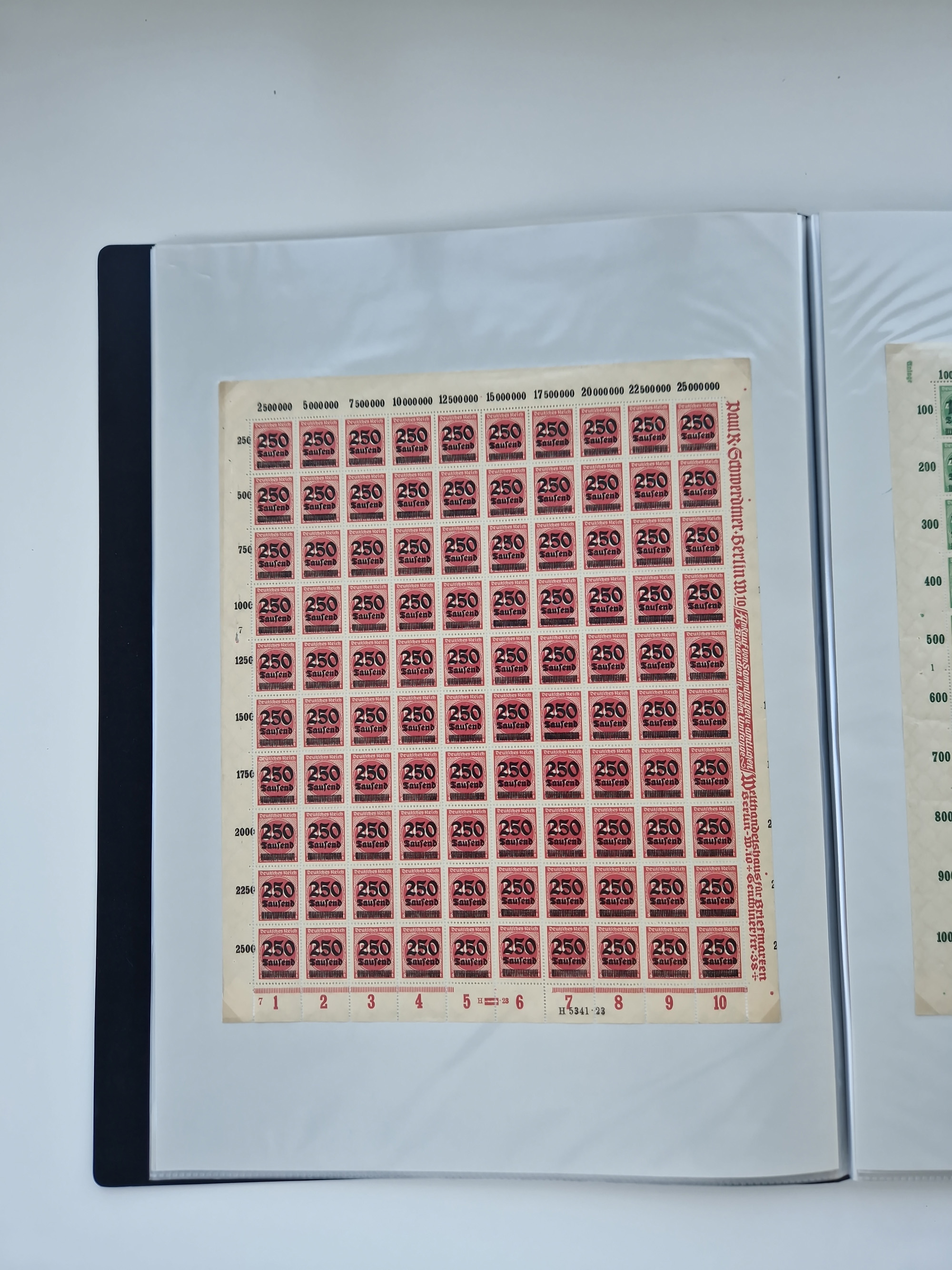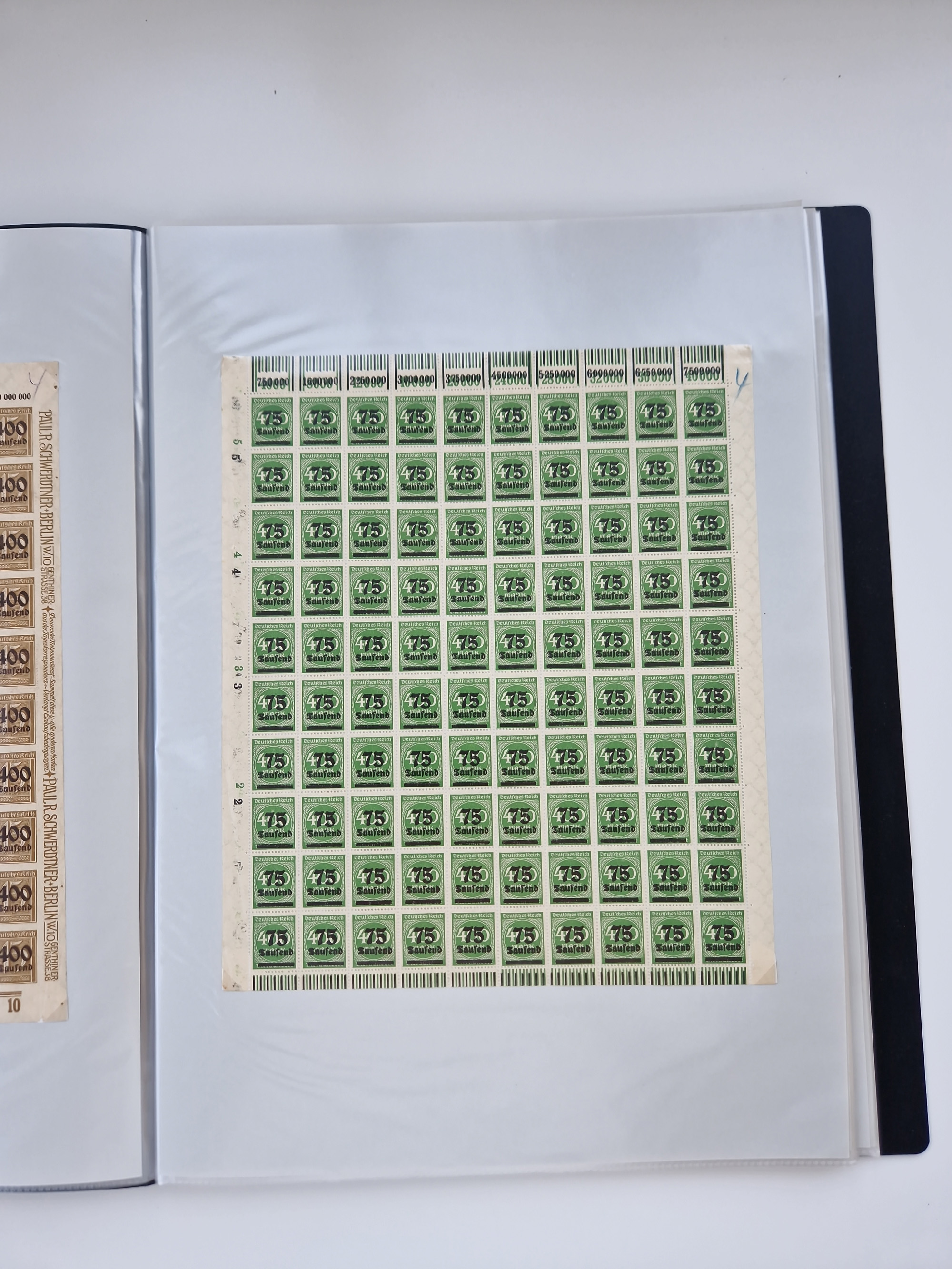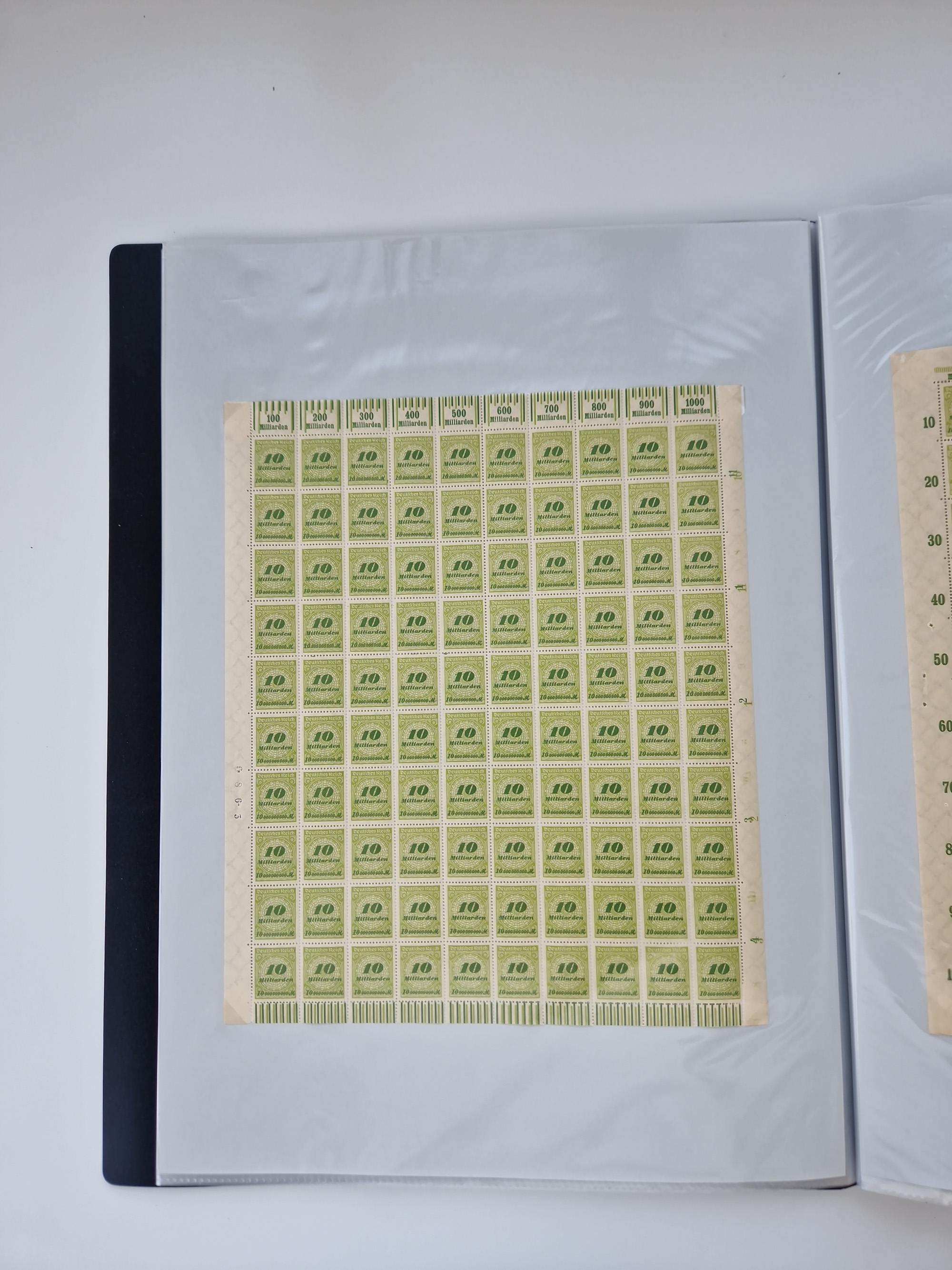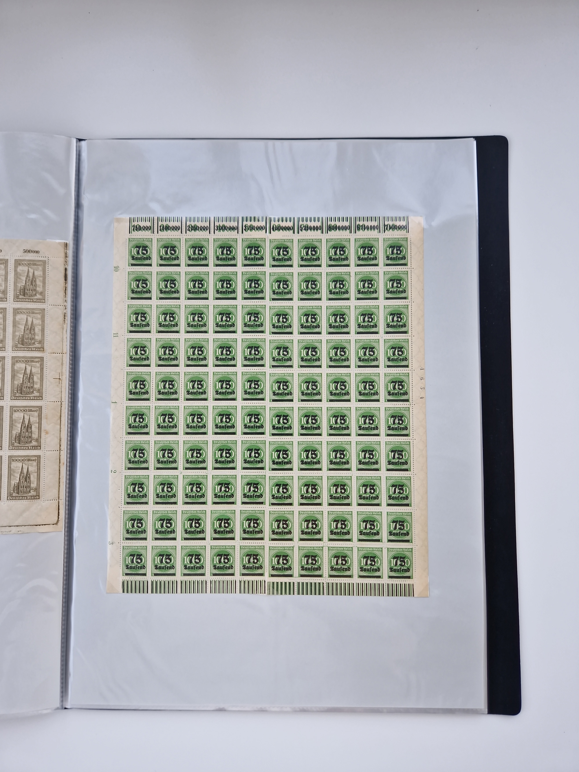 1921/22, postfrischer und ungebrauchter Bestand mit etwas über 200 Bogen und Bogenteilen, dabei Walzen- und Plattenbogen, HAN, Druckereizeichen, Pl.-Nr., auch Wz. Waffeln und Bogentaschen, teils sign. INFLA Berlin, etwas unterschiedliche Erhaltung, in zwei Ordnern
