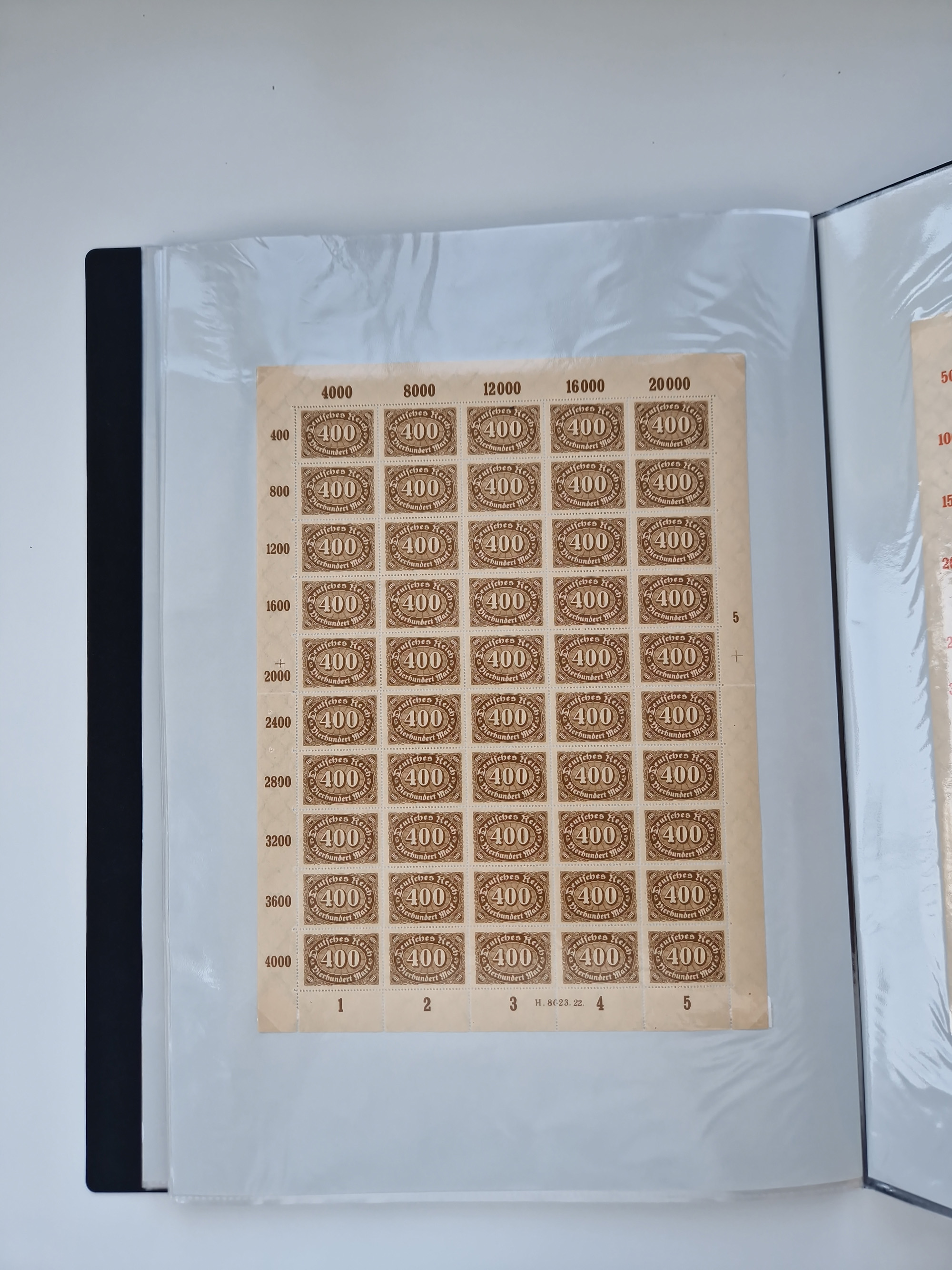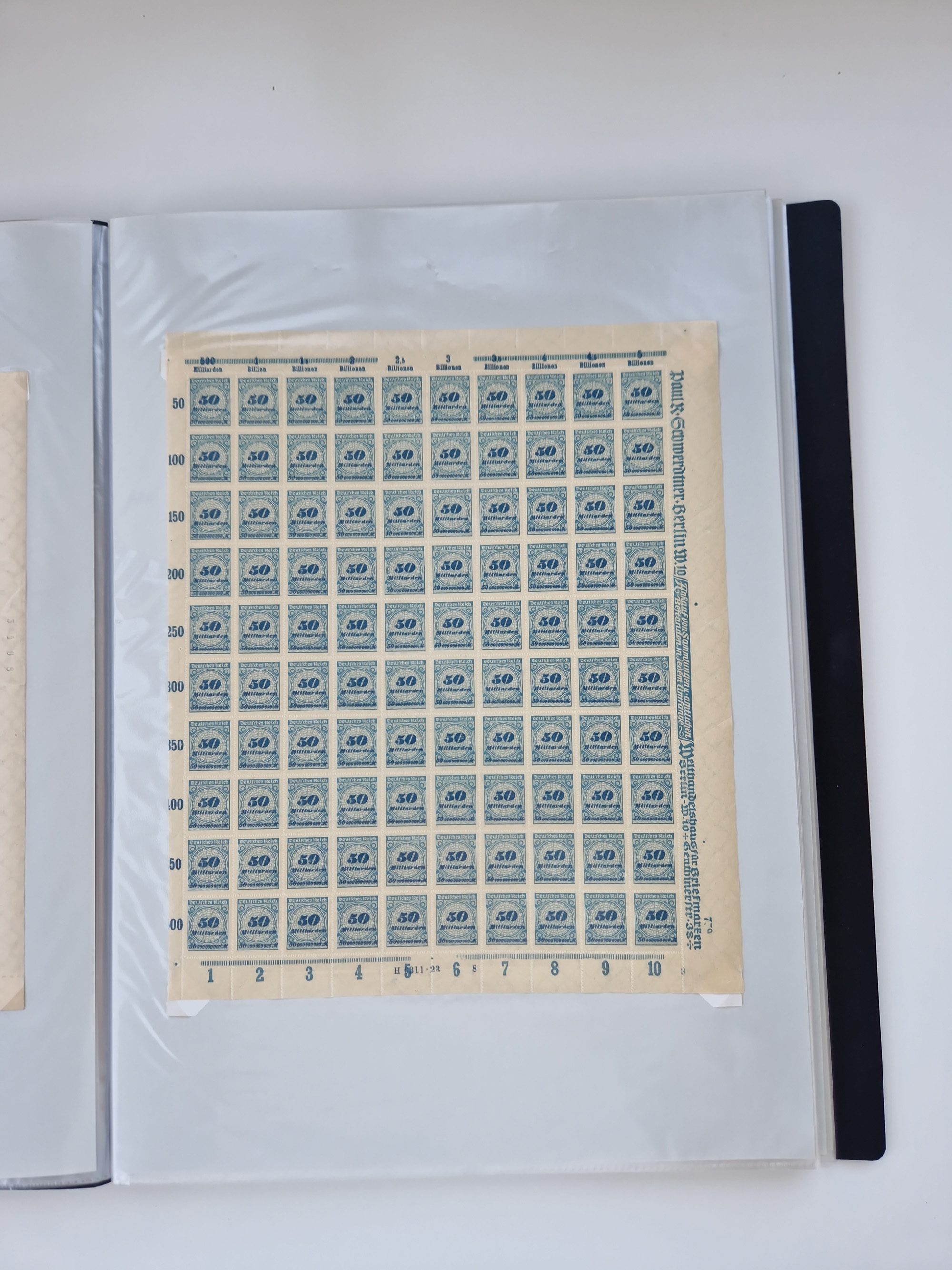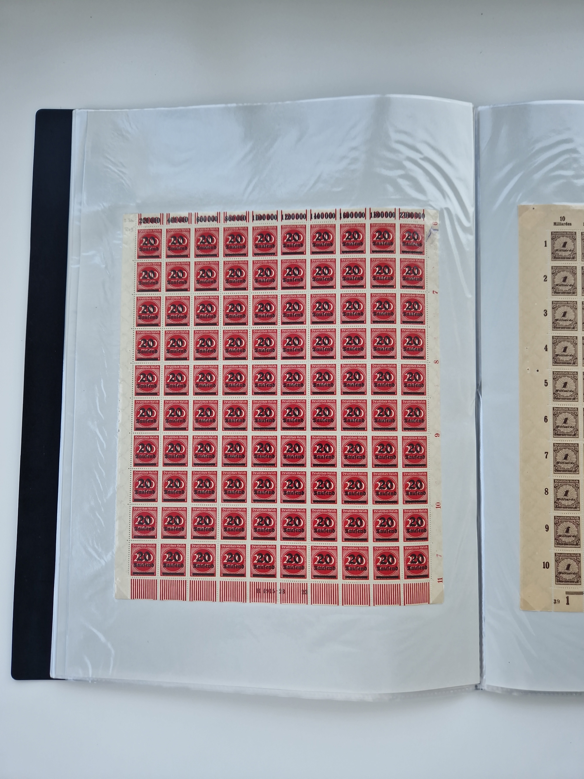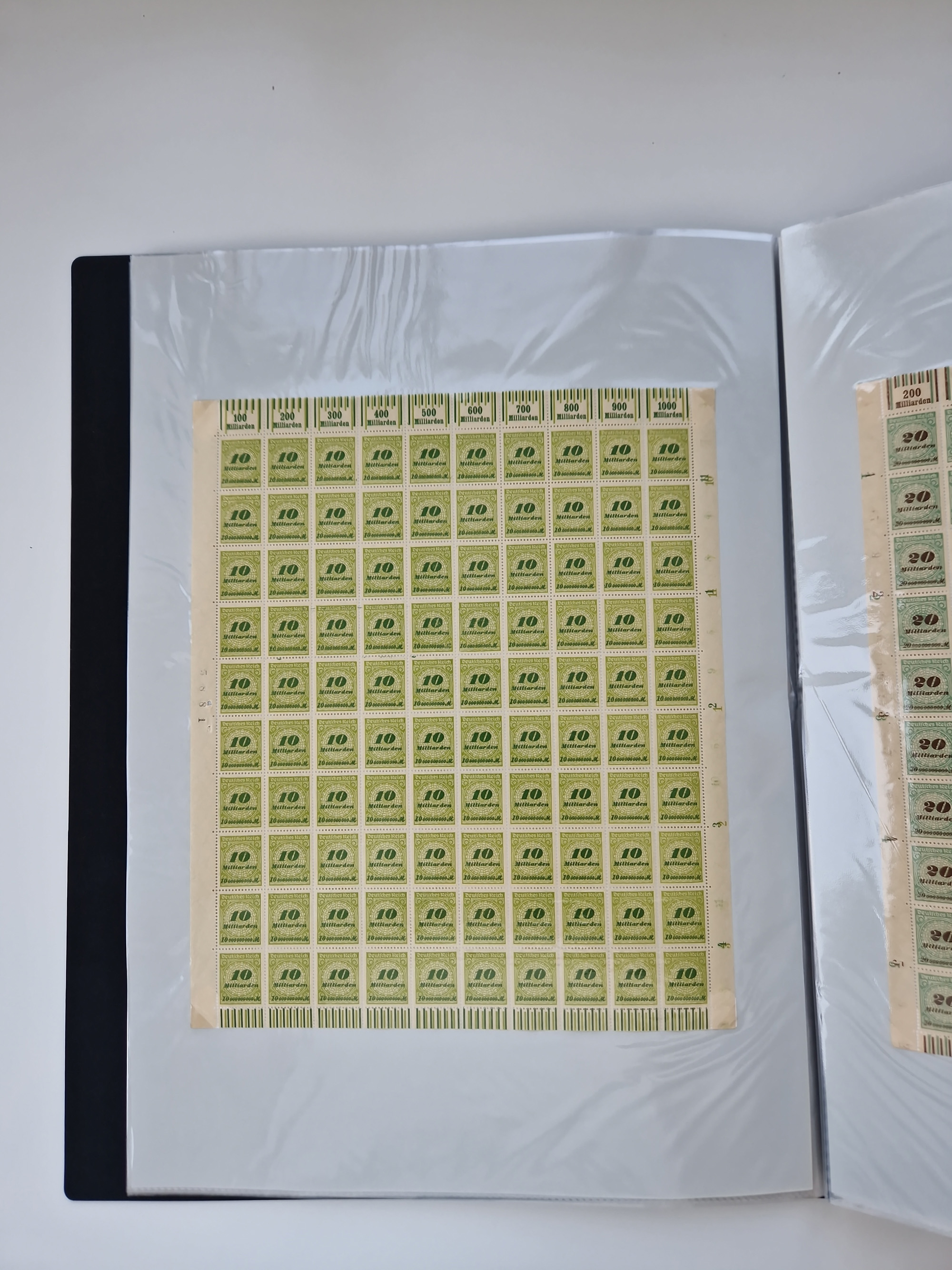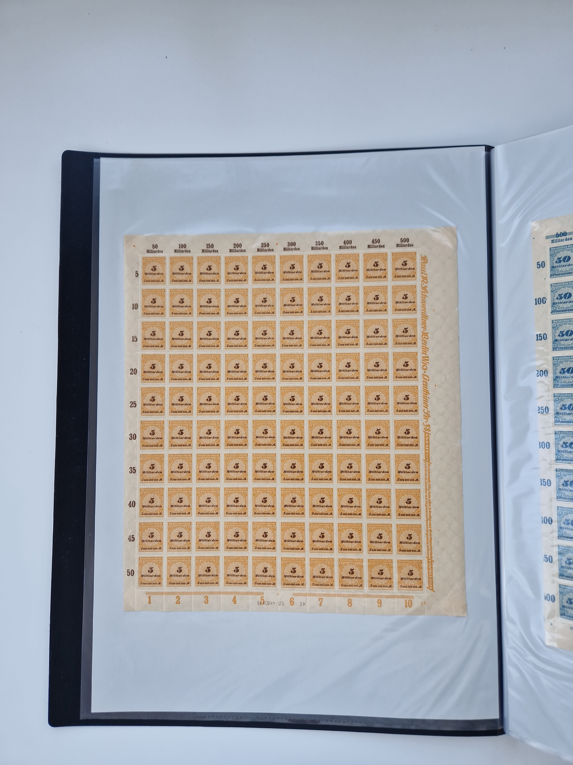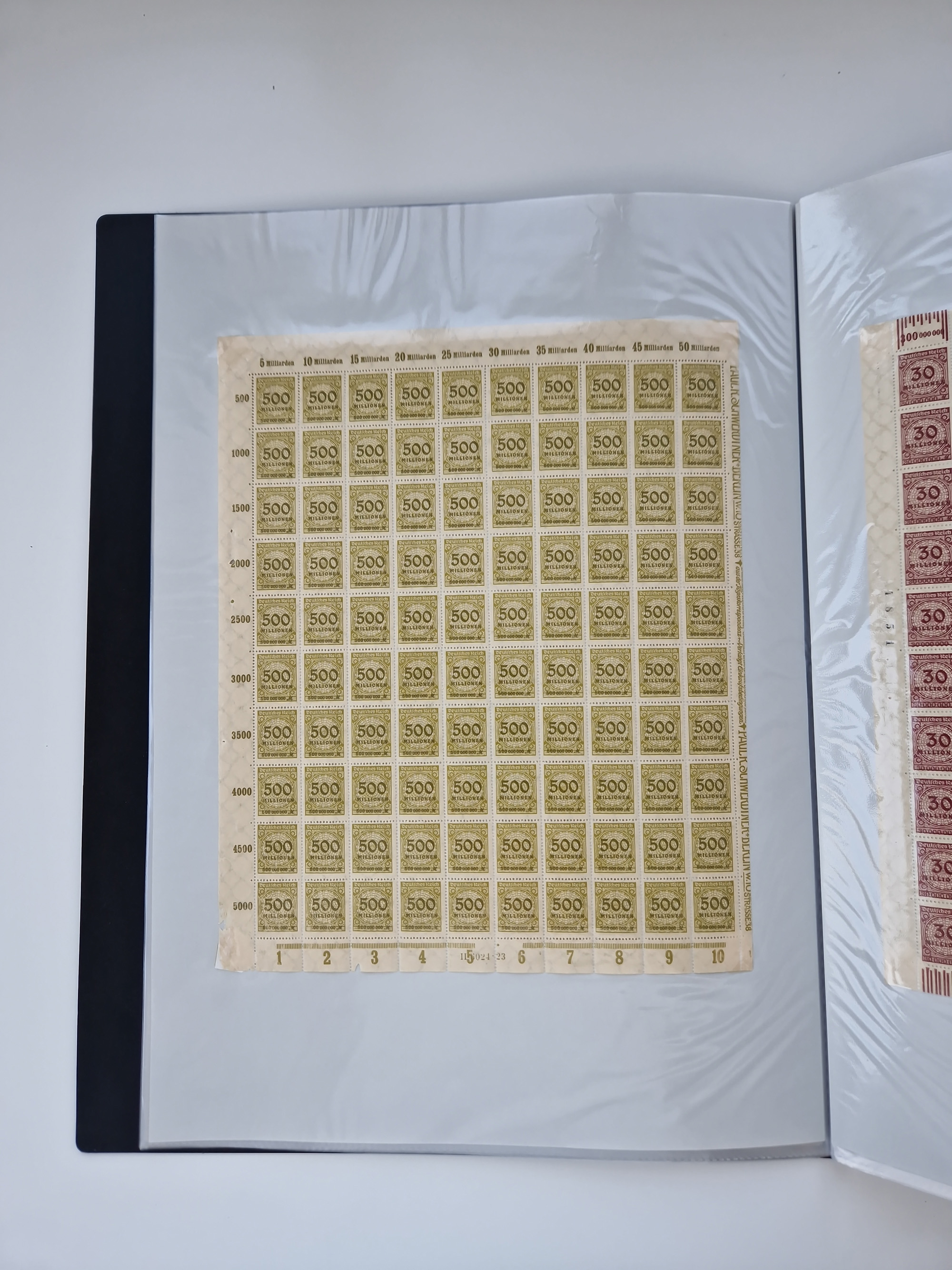 1921/22, postfrischer und ungebrauchter Bestand mit etwas über 200 Bogen und Bogenteilen, dabei Walzen- und Plattenbogen, HAN, Druckereizeichen, Pl.-Nr., auch Wz. Waffeln und Bogentaschen, teils sign. INFLA Berlin, etwas unterschiedliche Erhaltung, in zwei Ordnern