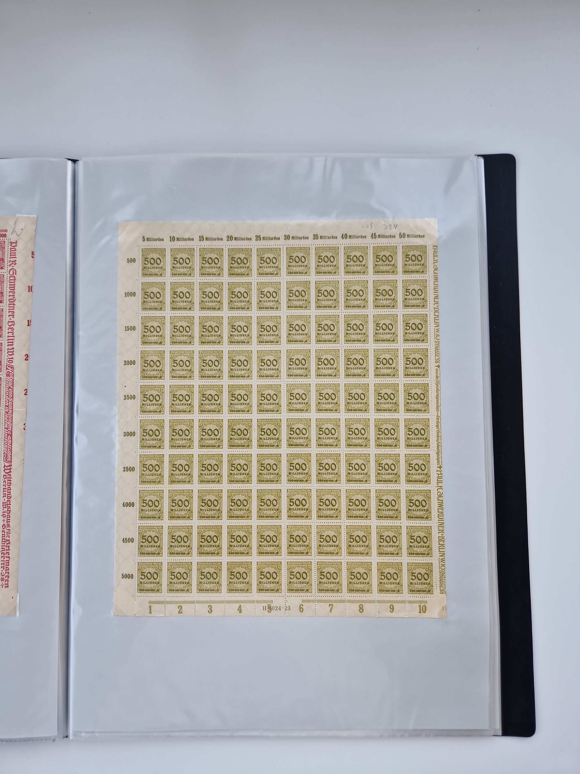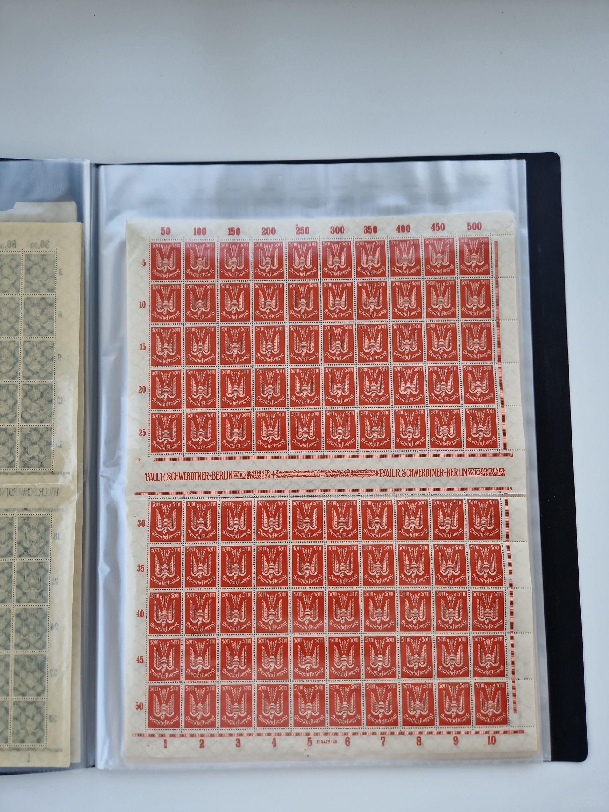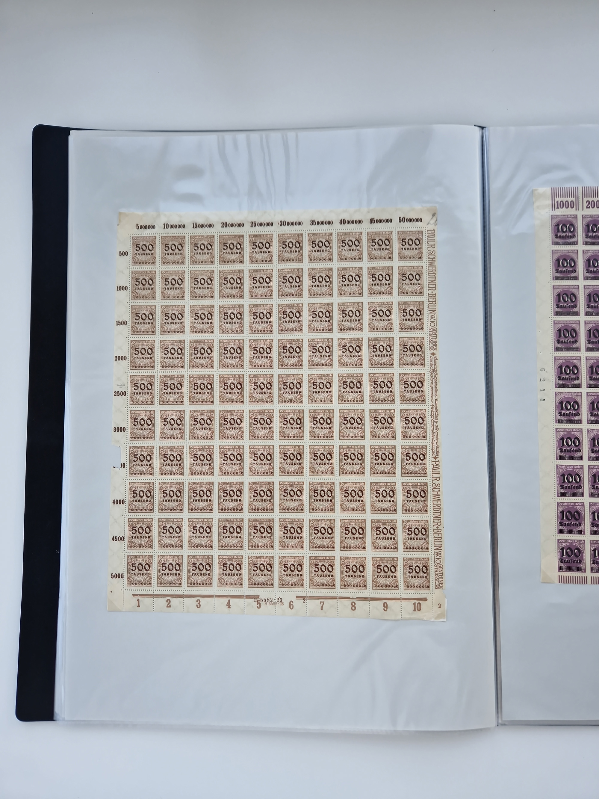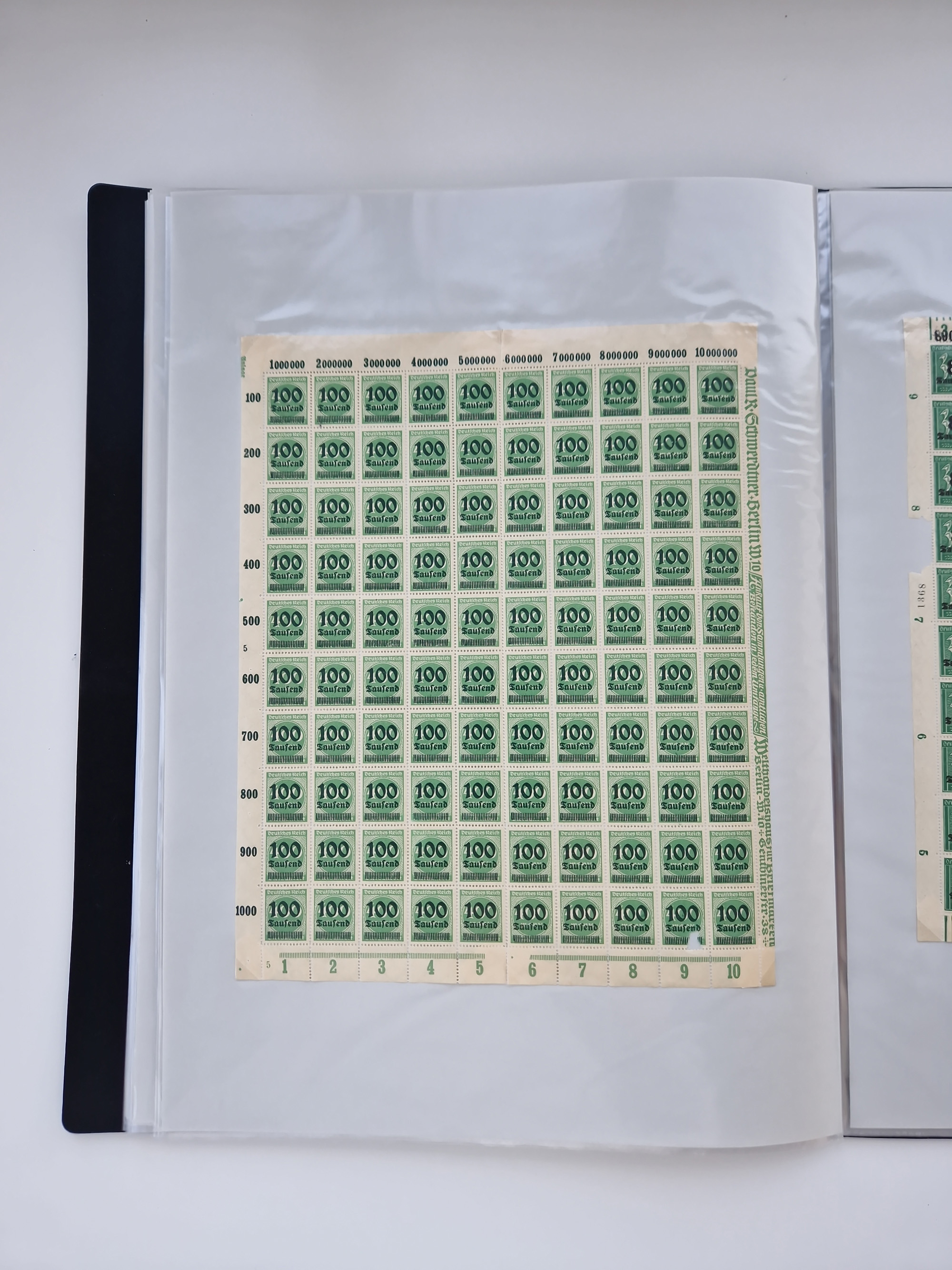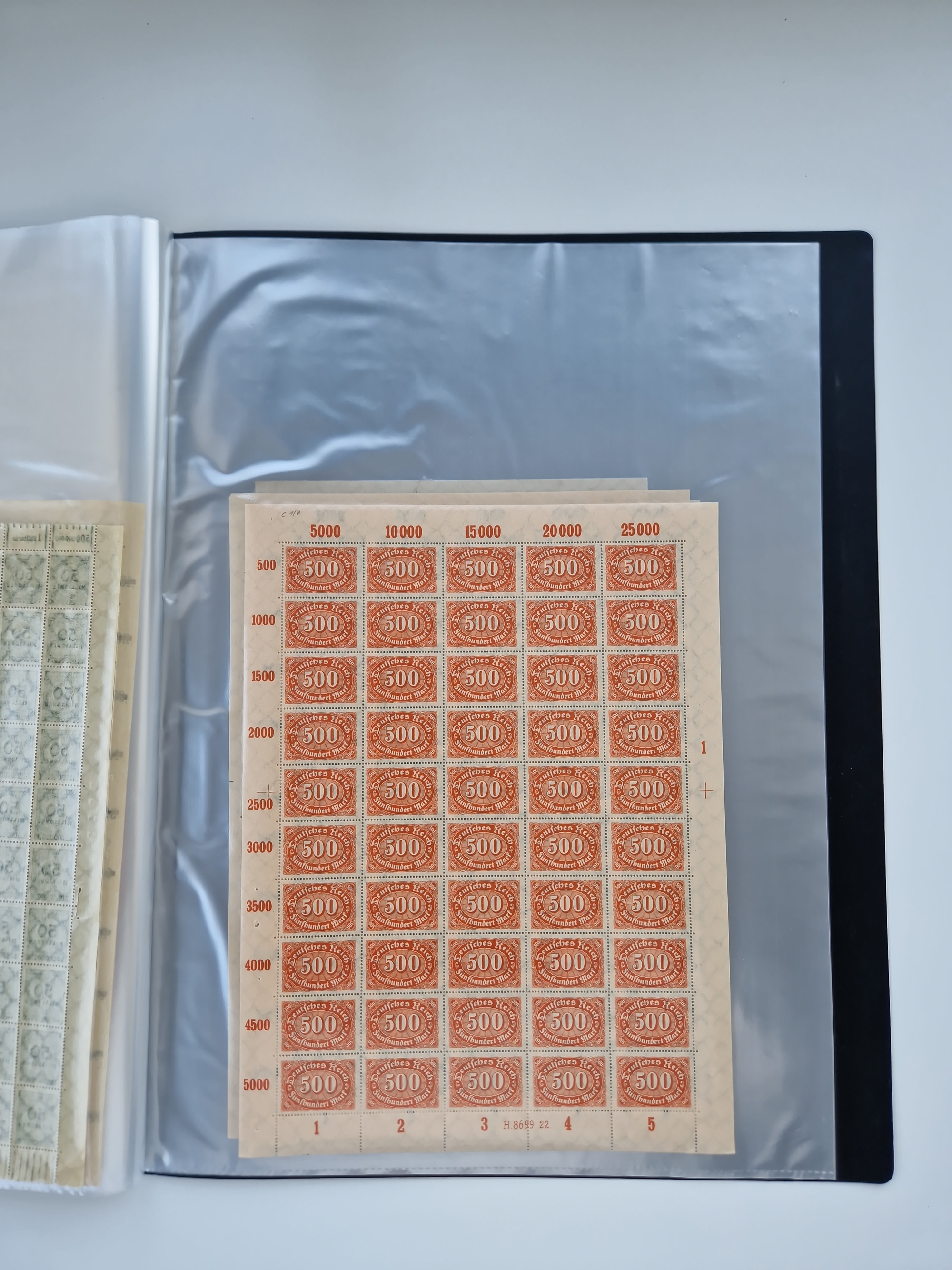 1921/22, postfrischer und ungebrauchter Bestand mit etwas über 200 Bogen und Bogenteilen, dabei Walzen- und Plattenbogen, HAN, Druckereizeichen, Pl.-Nr., auch Wz. Waffeln und Bogentaschen, teils sign. INFLA Berlin, etwas unterschiedliche Erhaltung, in zwei Ordnern