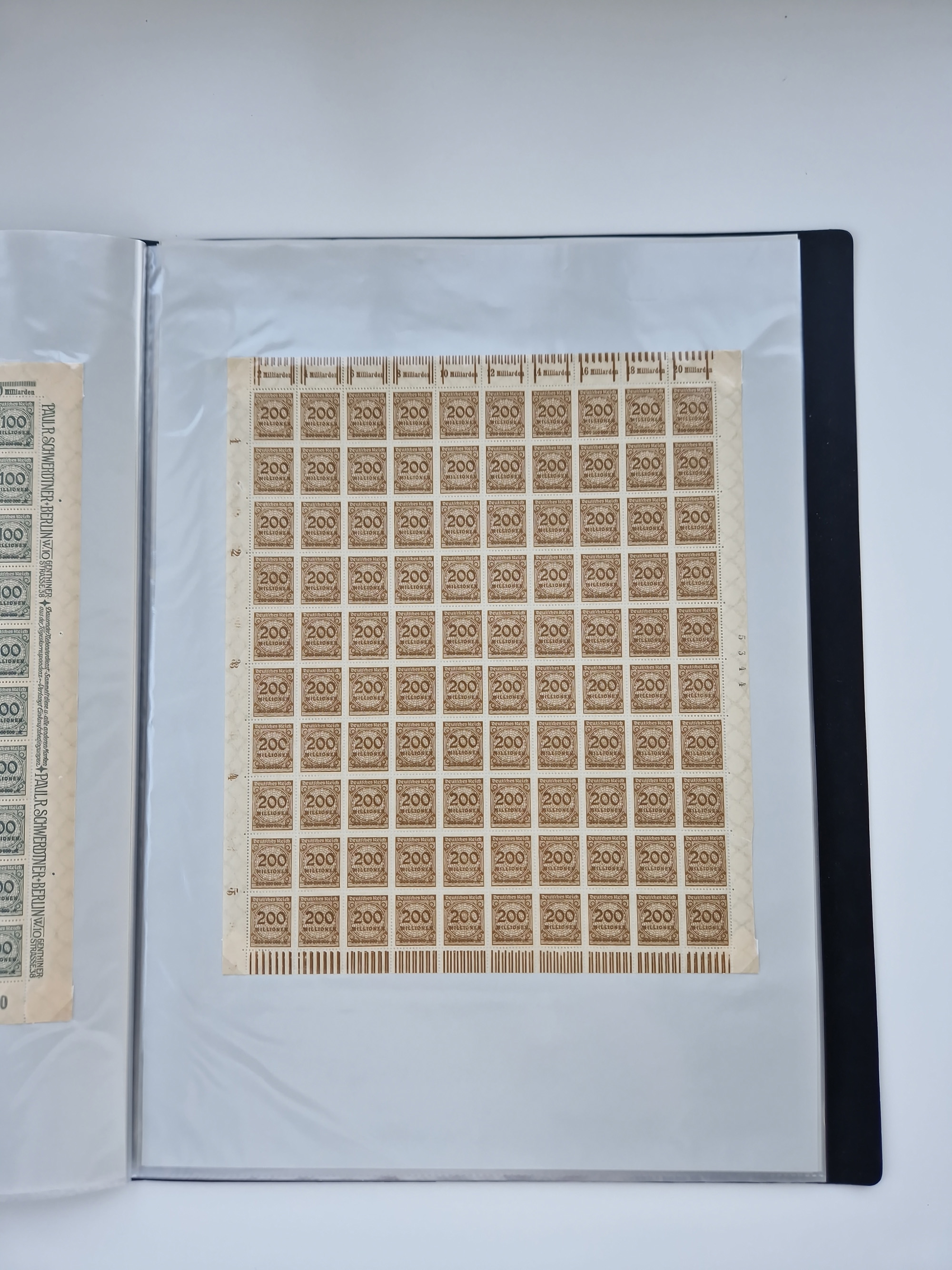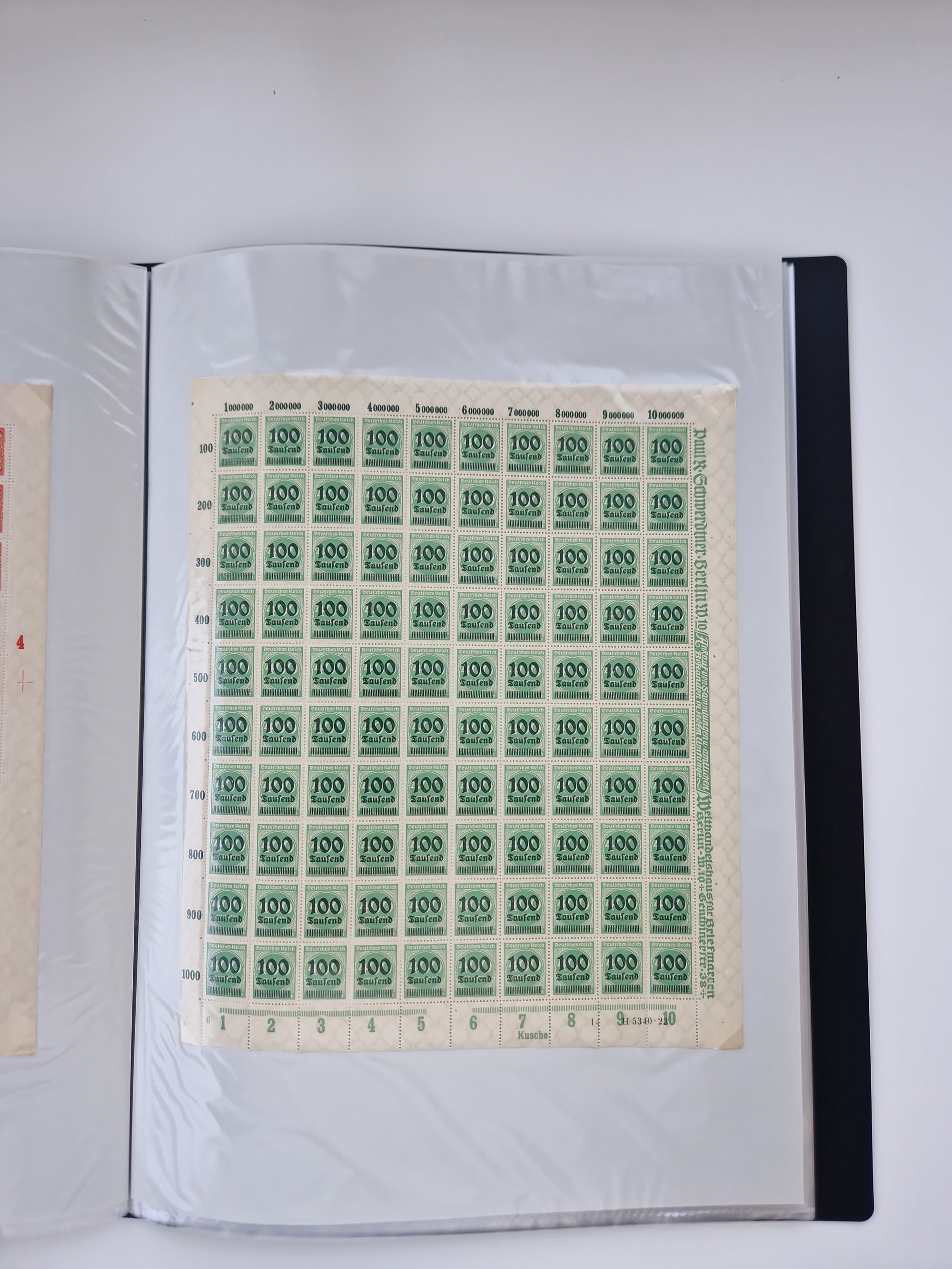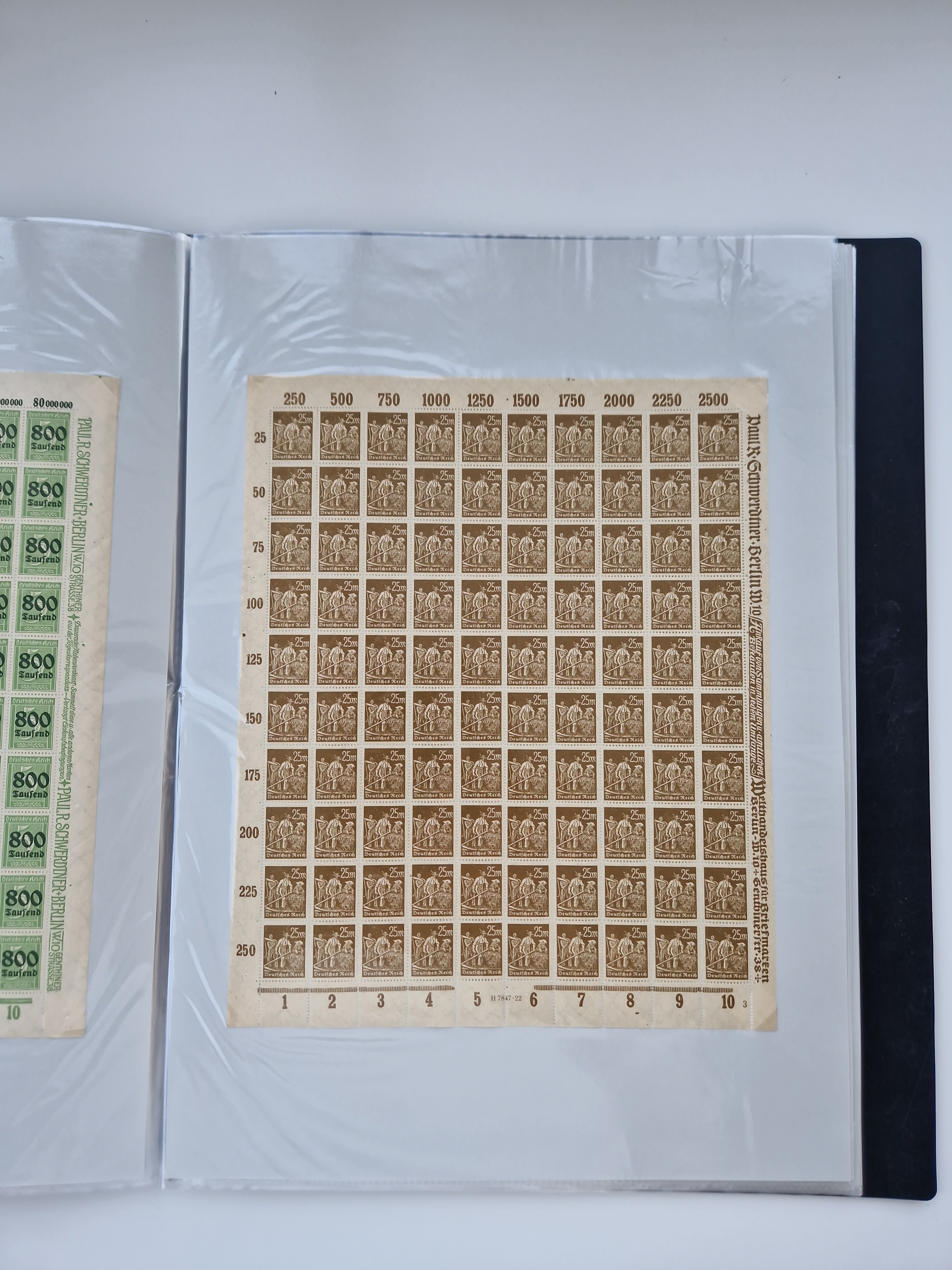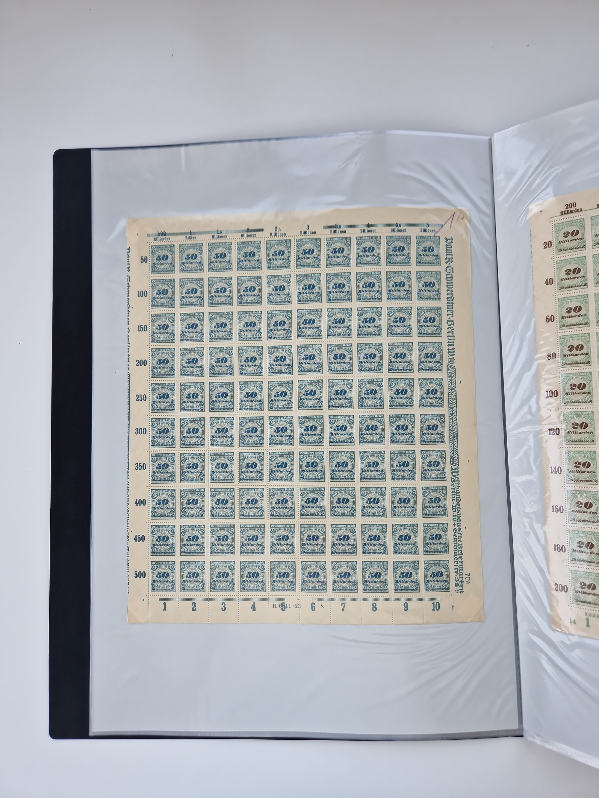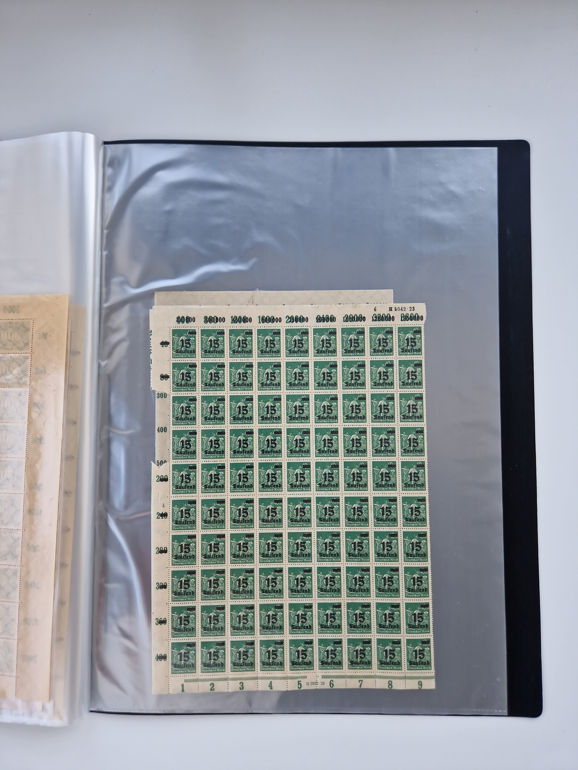 1921/22, postfrischer und ungebrauchter Bestand mit etwas über 200 Bogen und Bogenteilen, dabei Walzen- und Plattenbogen, HAN, Druckereizeichen, Pl.-Nr., auch Wz. Waffeln und Bogentaschen, teils sign. INFLA Berlin, etwas unterschiedliche Erhaltung, in zwei Ordnern