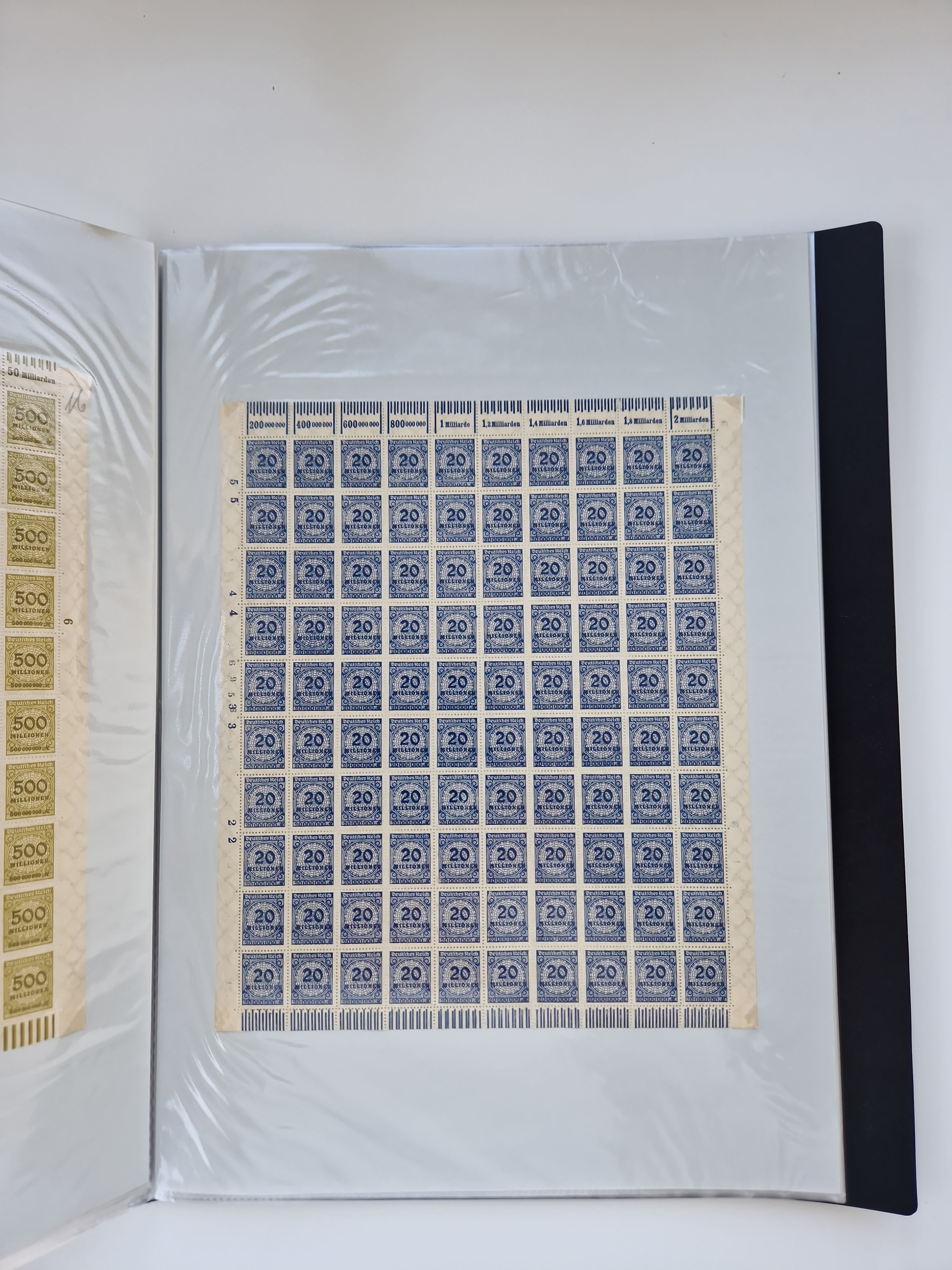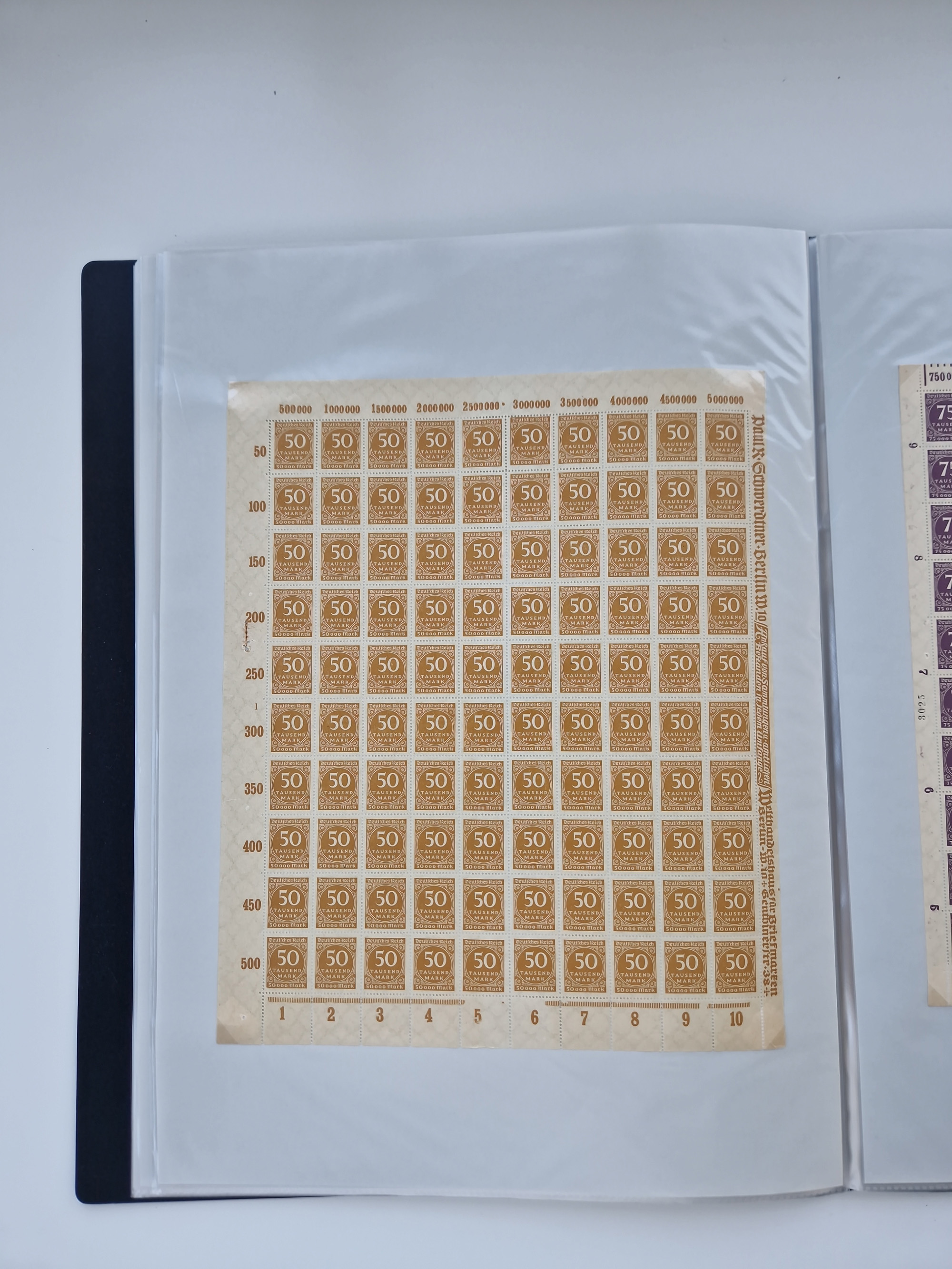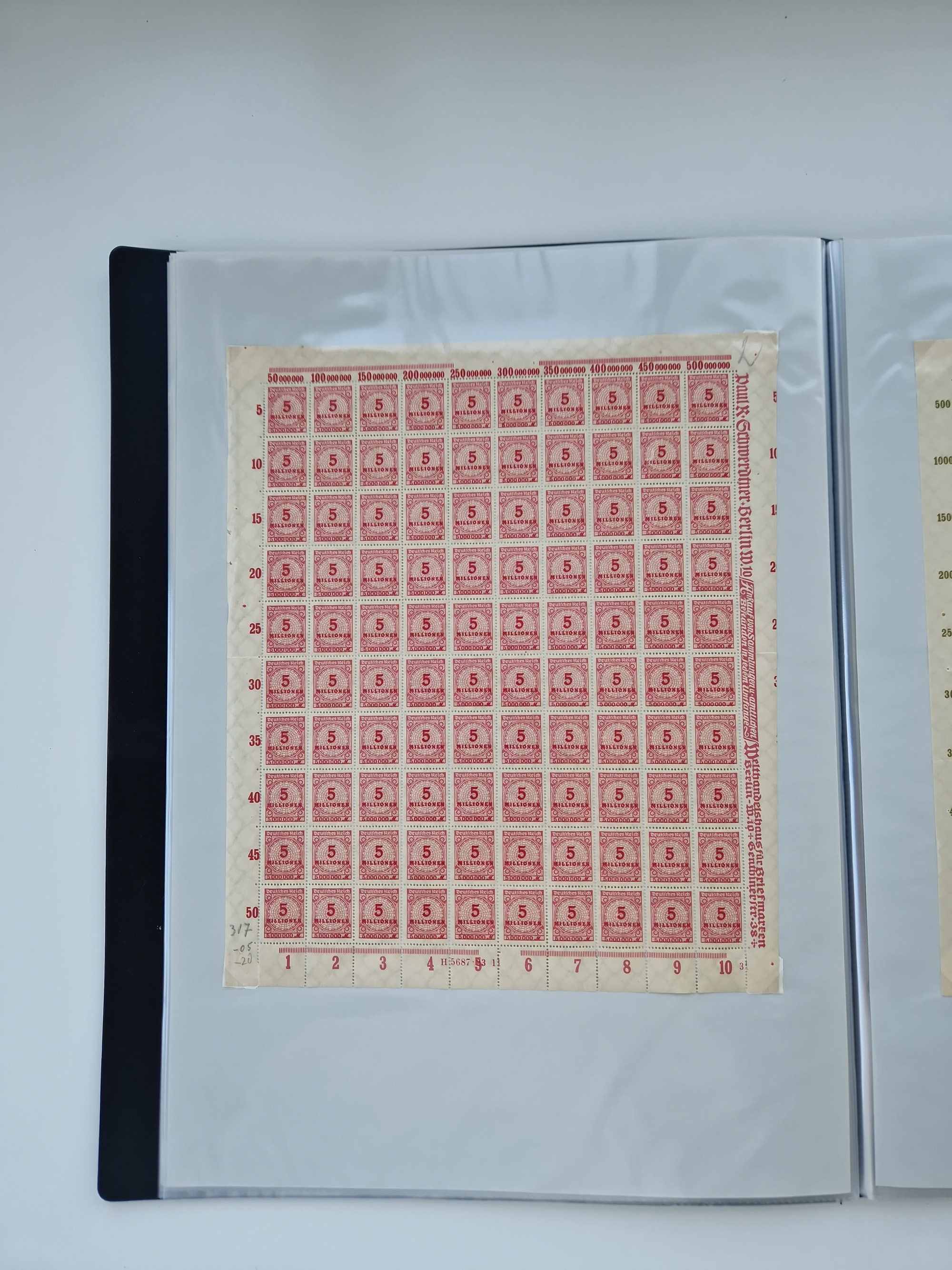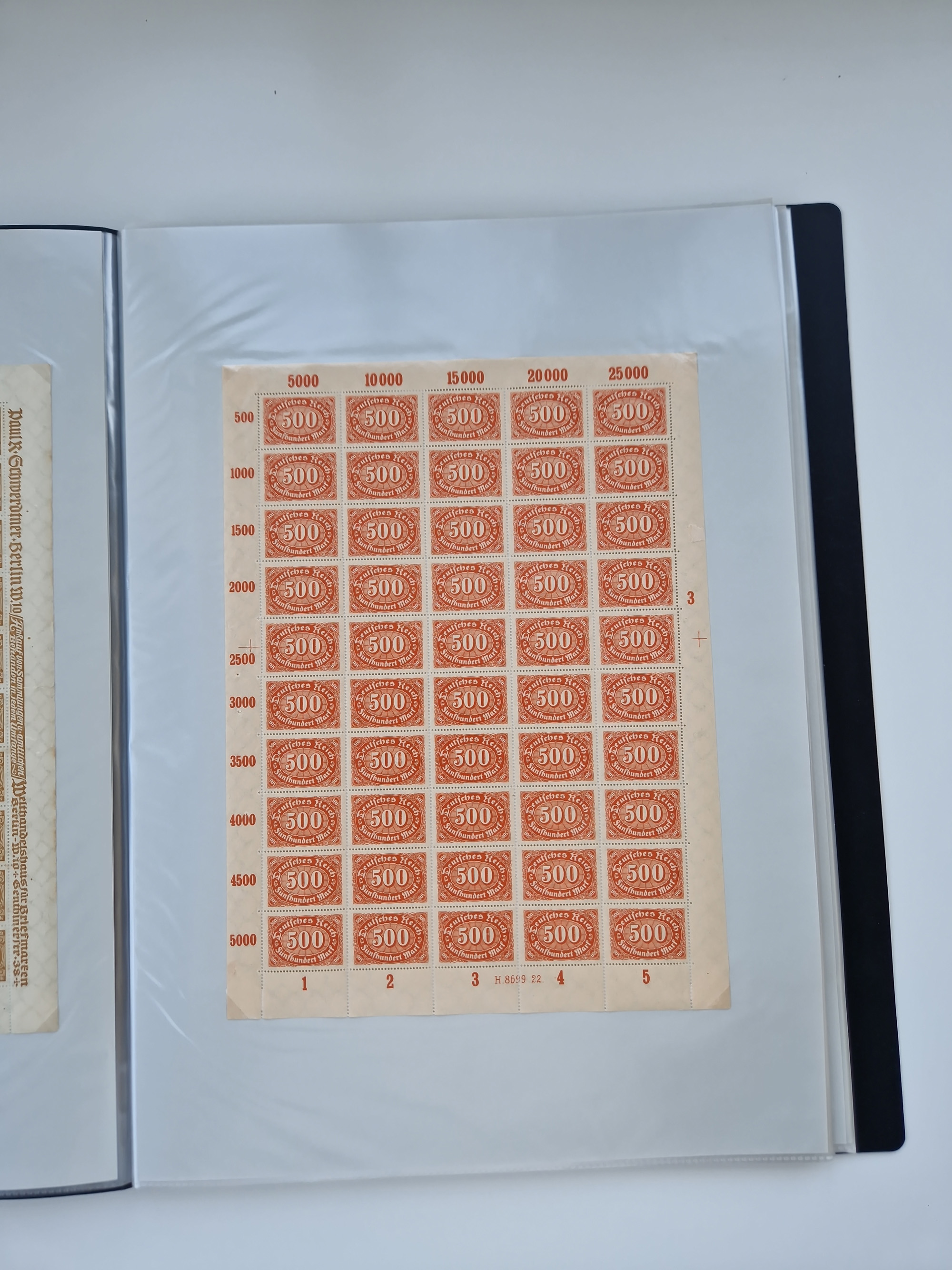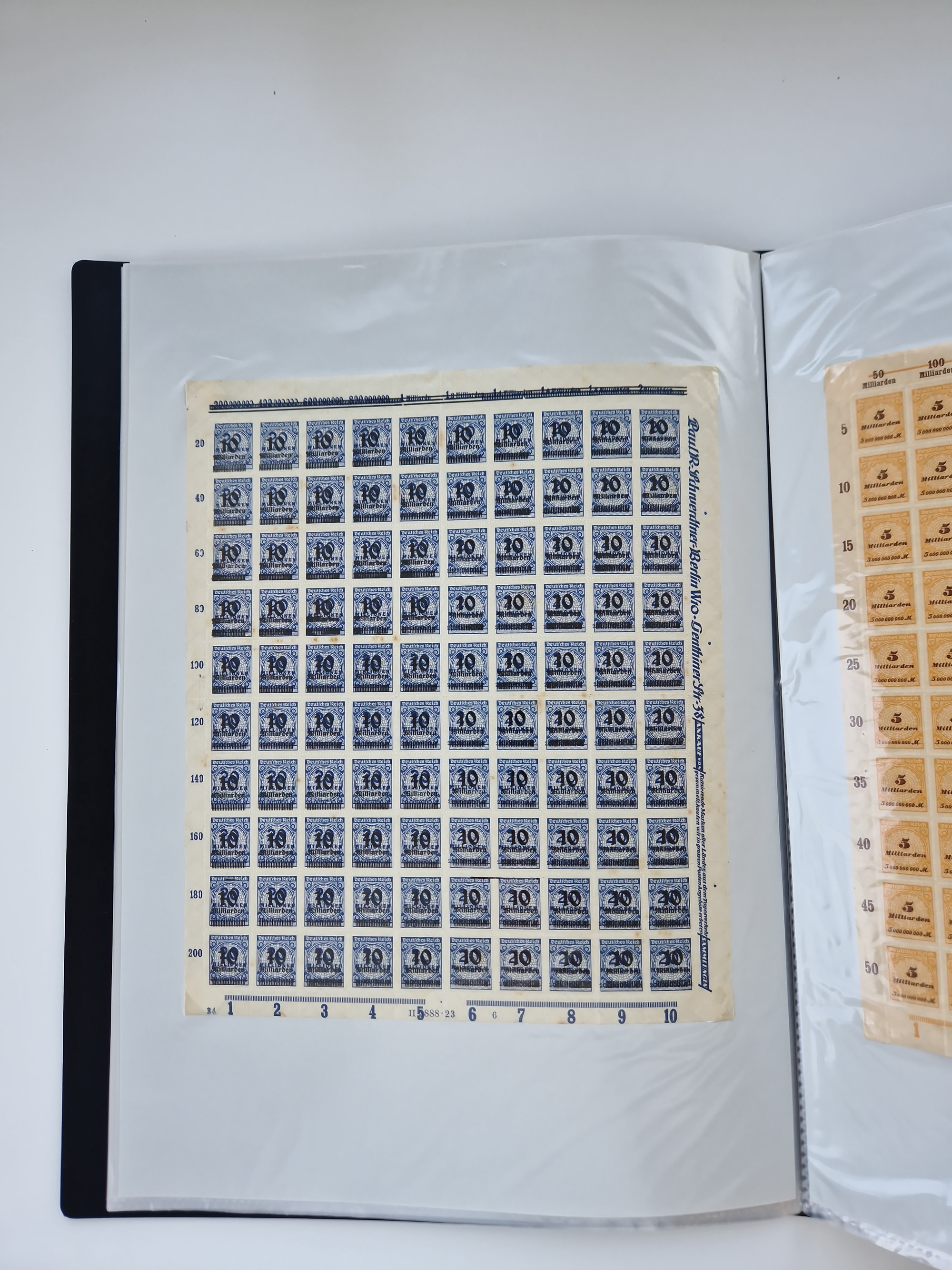 1921/22, postfrischer und ungebrauchter Bestand mit etwas über 200 Bogen und Bogenteilen, dabei Walzen- und Plattenbogen, HAN, Druckereizeichen, Pl.-Nr., auch Wz. Waffeln und Bogentaschen, teils sign. INFLA Berlin, etwas unterschiedliche Erhaltung, in zwei Ordnern