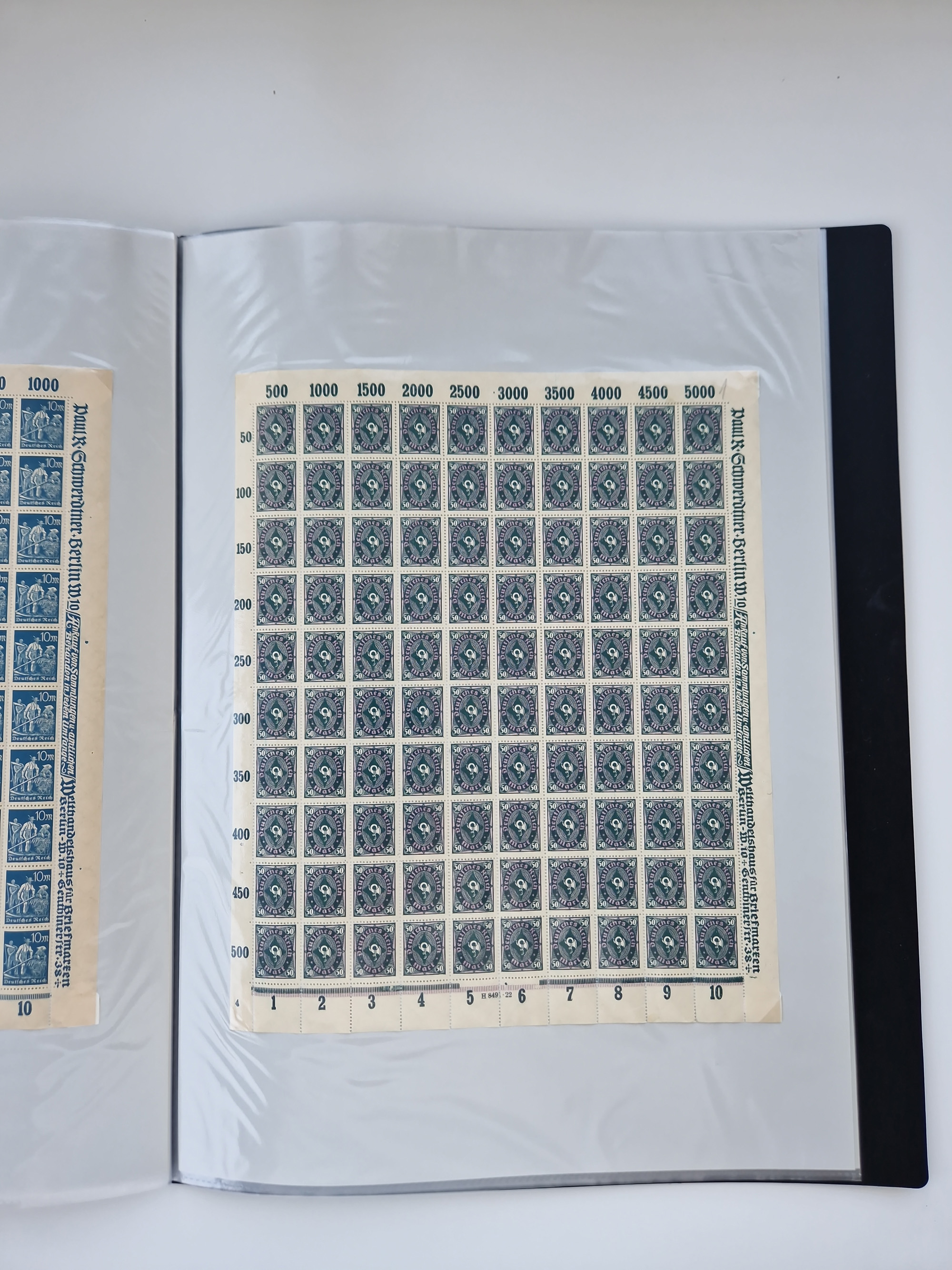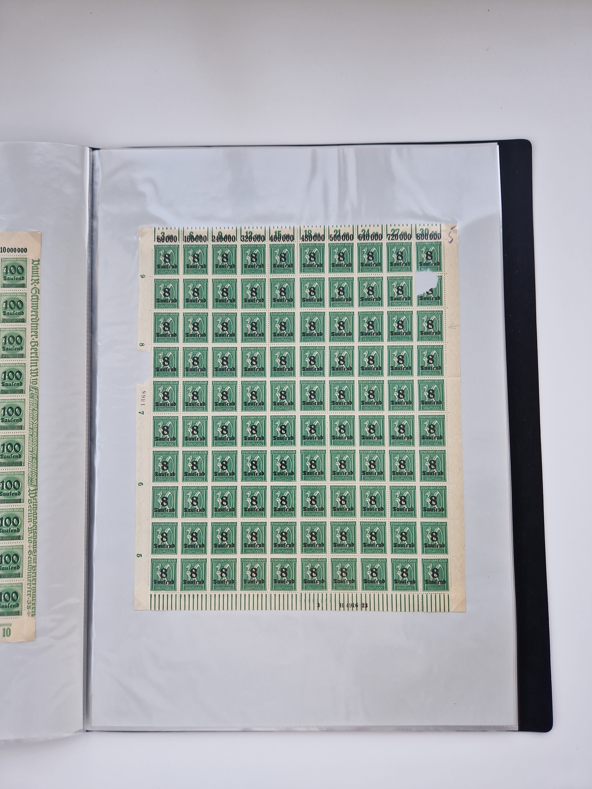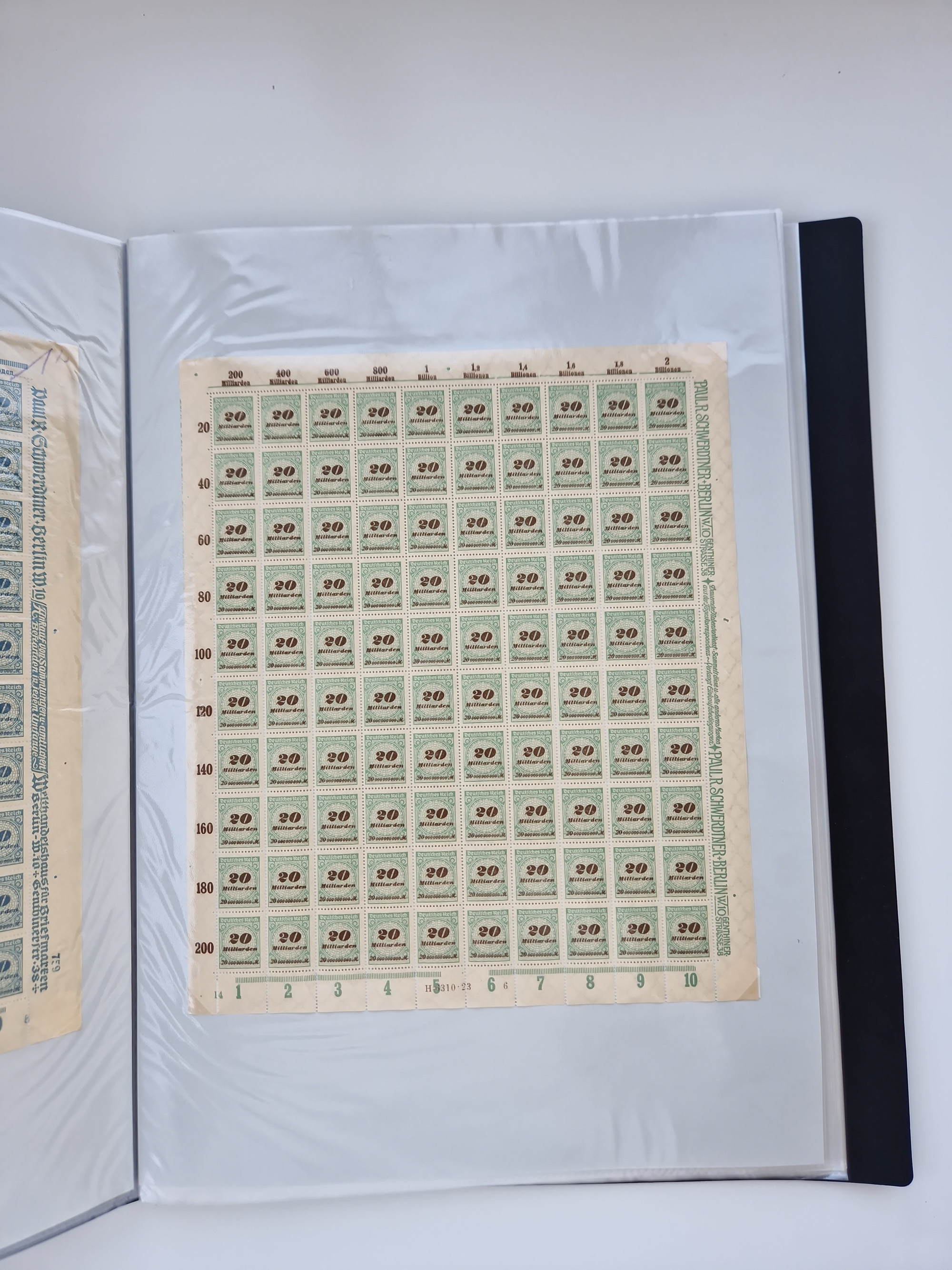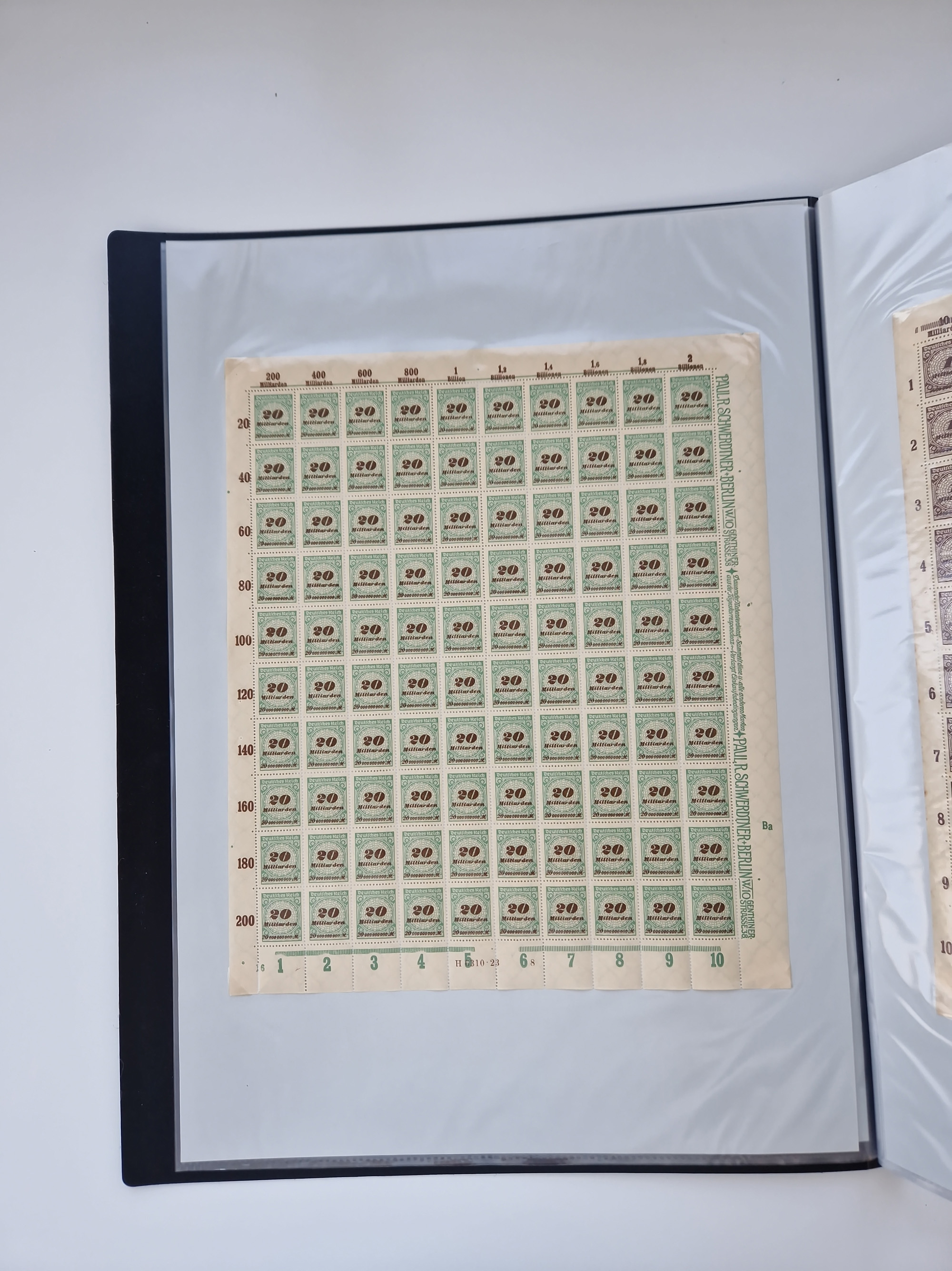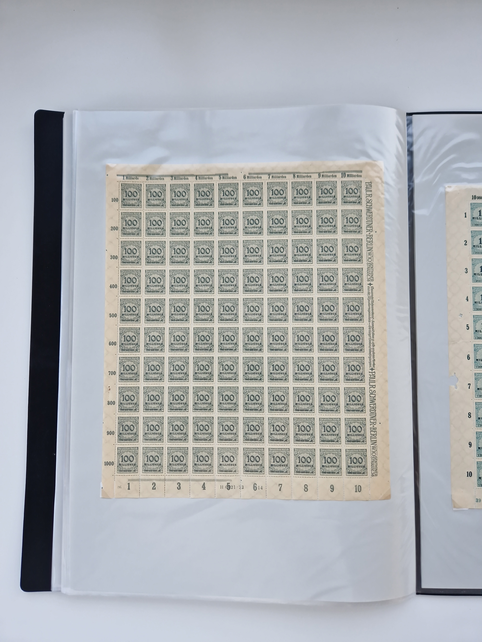 1921/22, postfrischer und ungebrauchter Bestand mit etwas über 200 Bogen und Bogenteilen, dabei Walzen- und Plattenbogen, HAN, Druckereizeichen, Pl.-Nr., auch Wz. Waffeln und Bogentaschen, teils sign. INFLA Berlin, etwas unterschiedliche Erhaltung, in zwei Ordnern