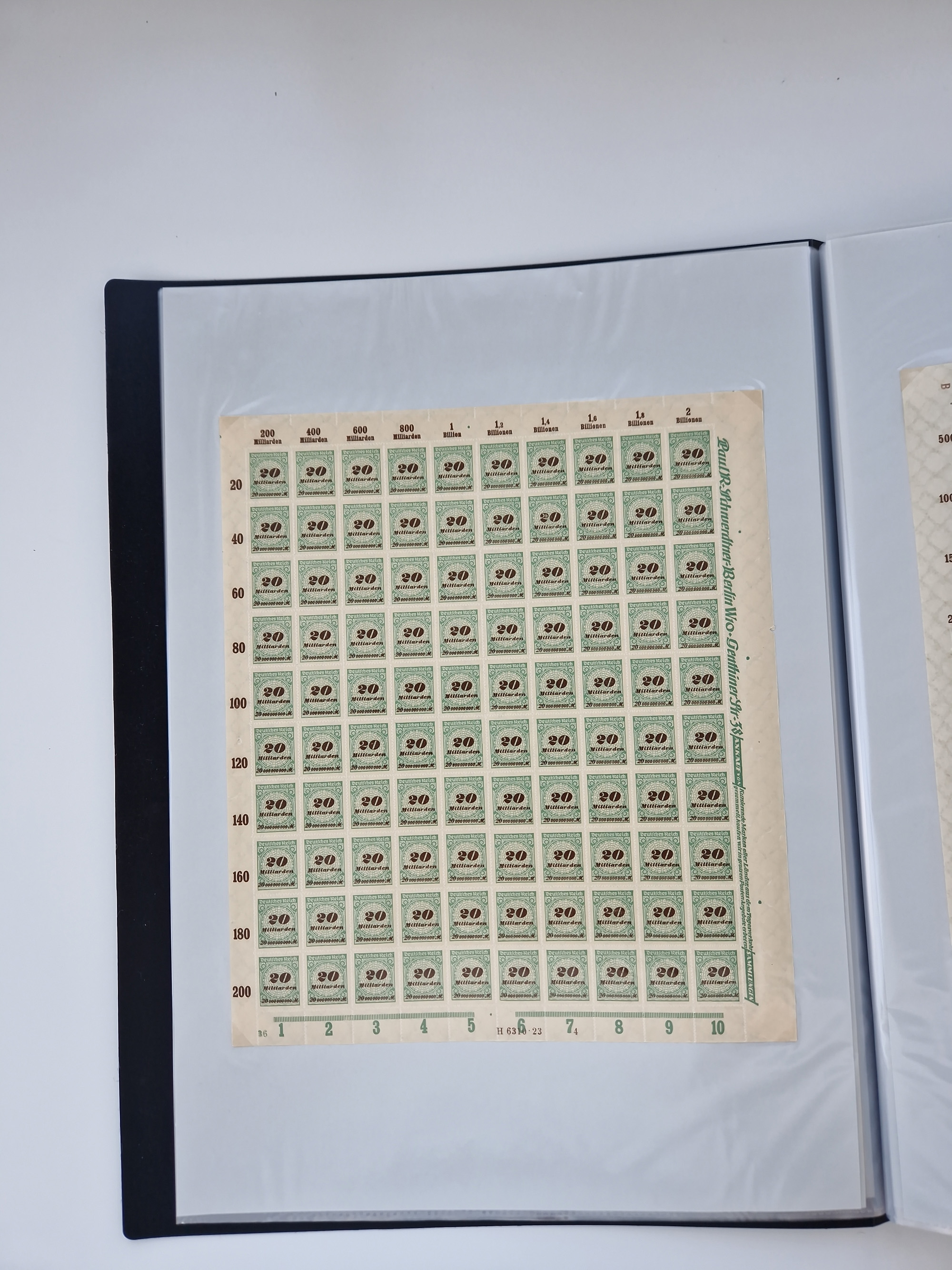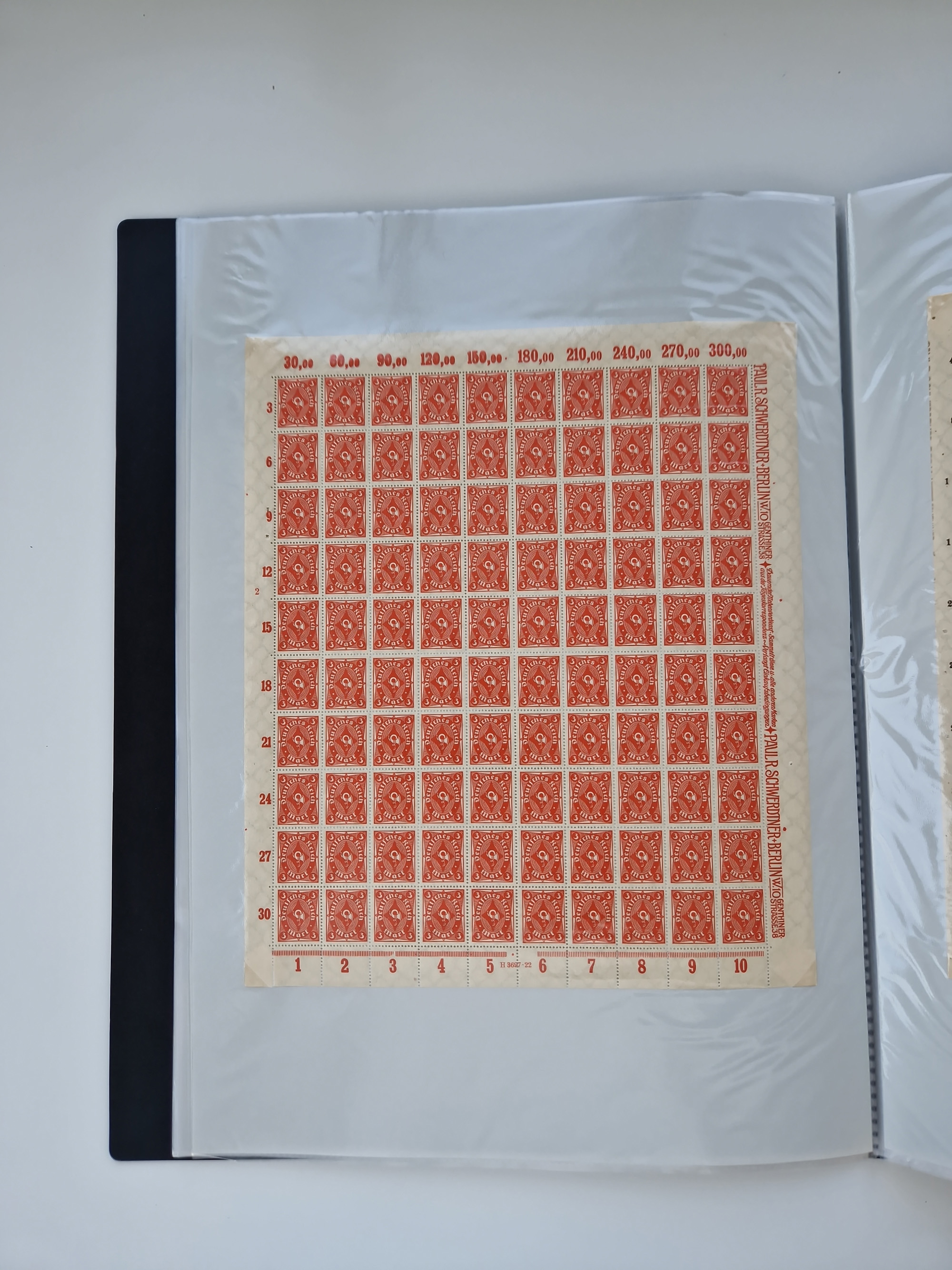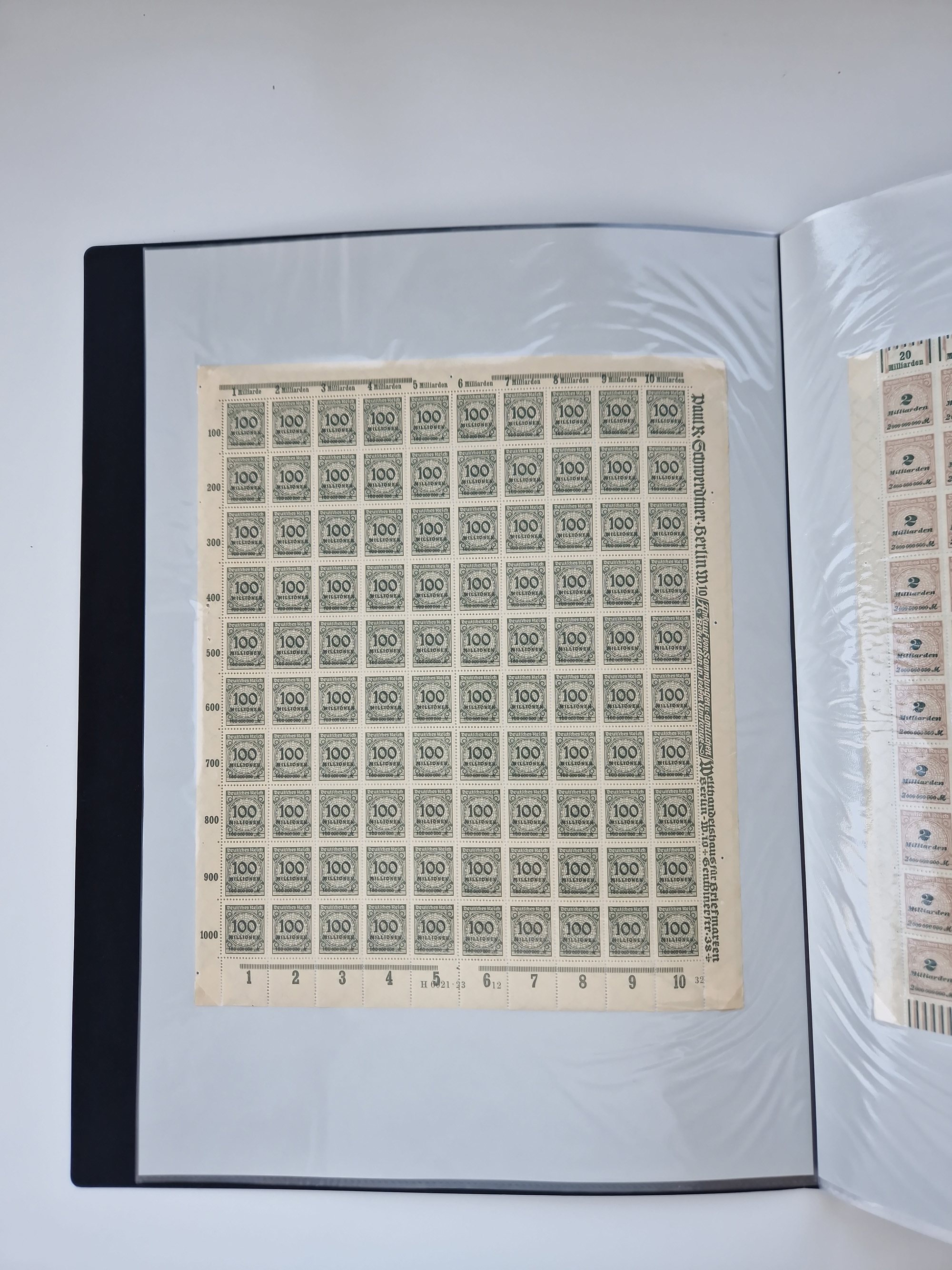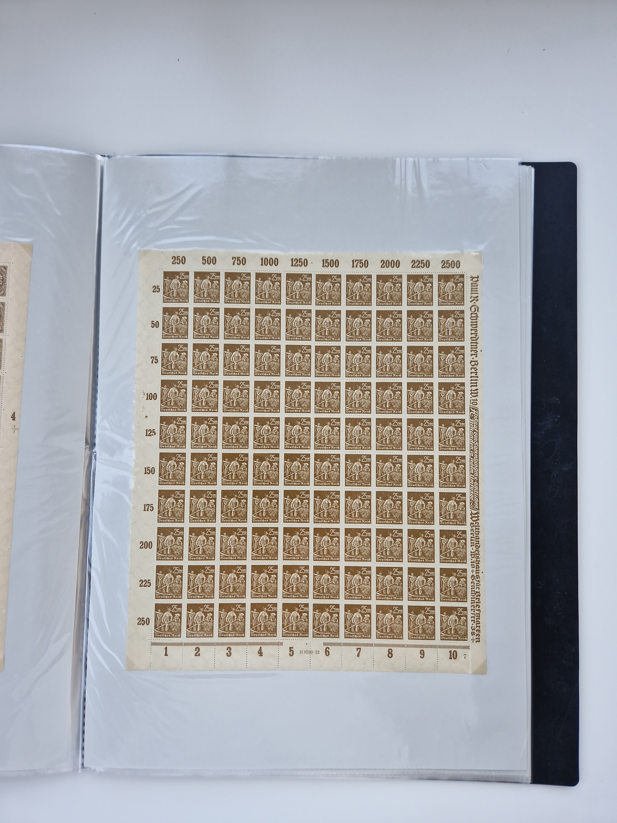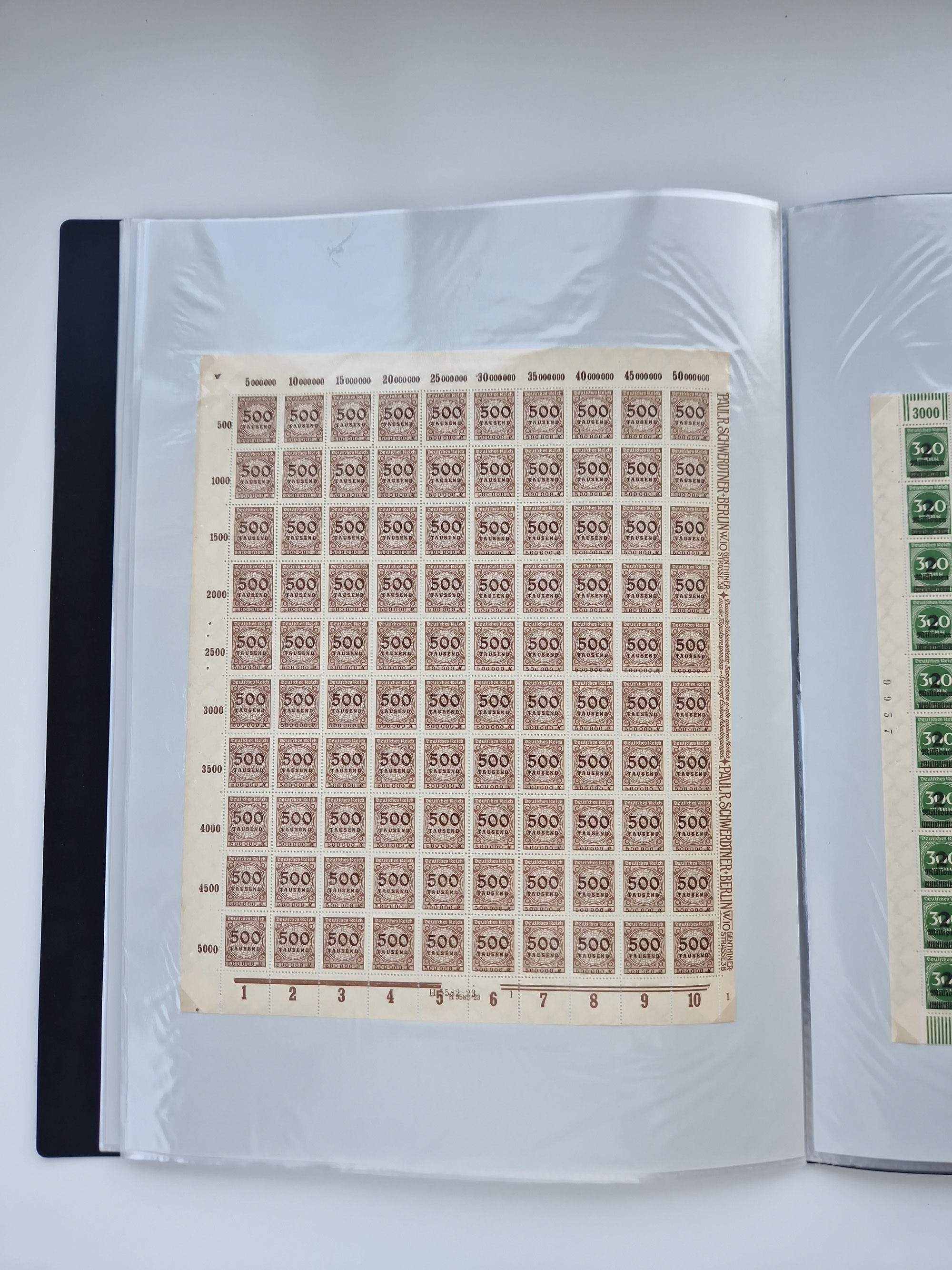 1921/22, postfrischer und ungebrauchter Bestand mit etwas über 200 Bogen und Bogenteilen, dabei Walzen- und Plattenbogen, HAN, Druckereizeichen, Pl.-Nr., auch Wz. Waffeln und Bogentaschen, teils sign. INFLA Berlin, etwas unterschiedliche Erhaltung, in zwei Ordnern