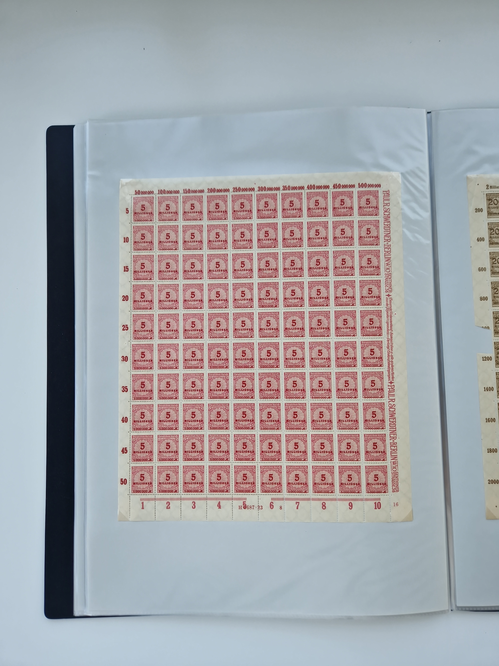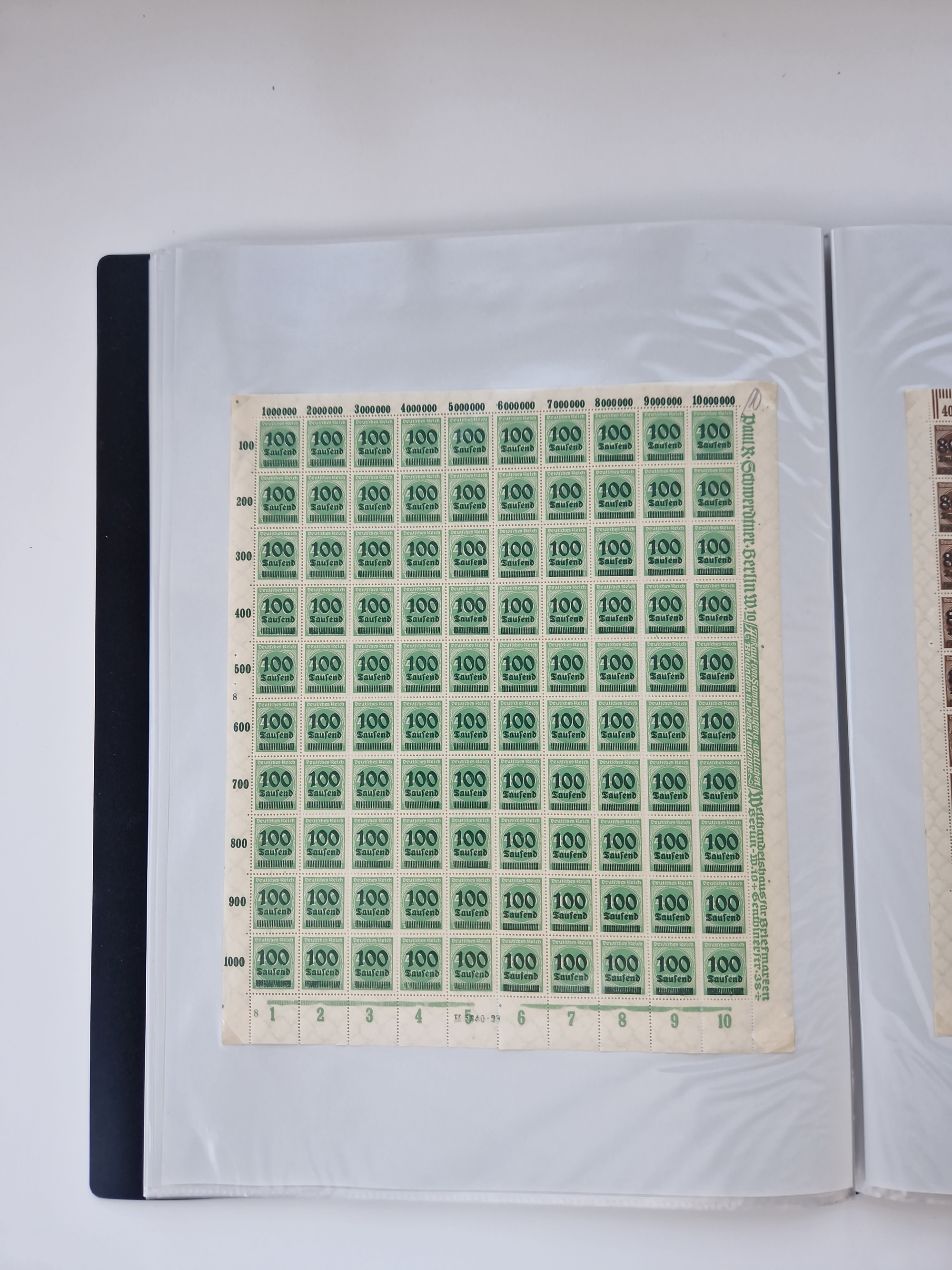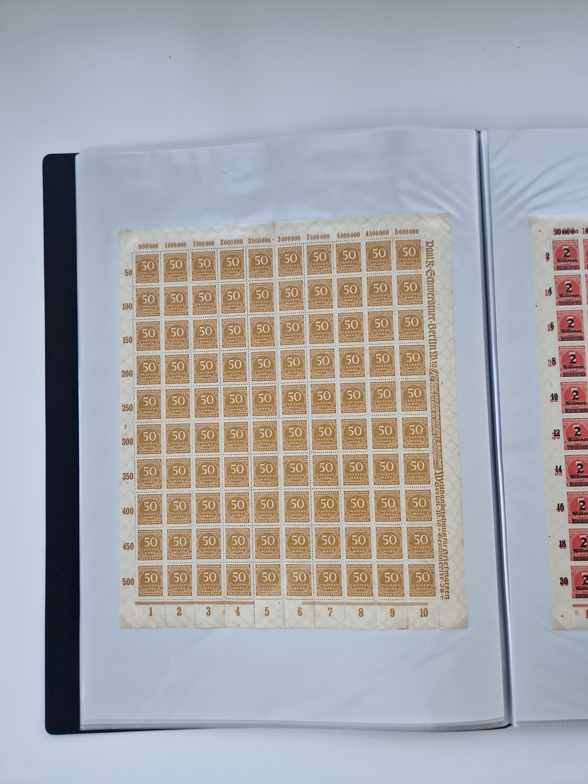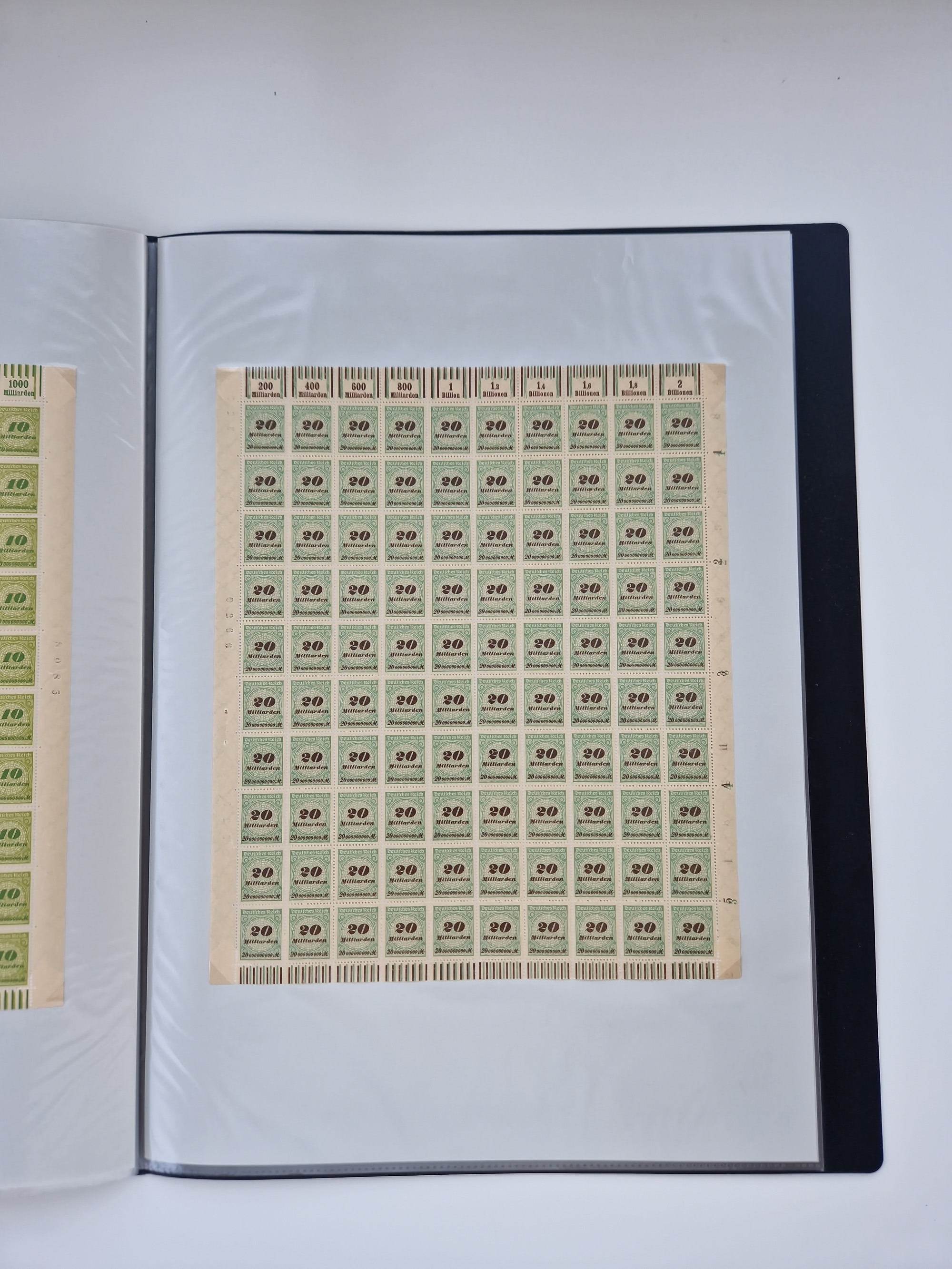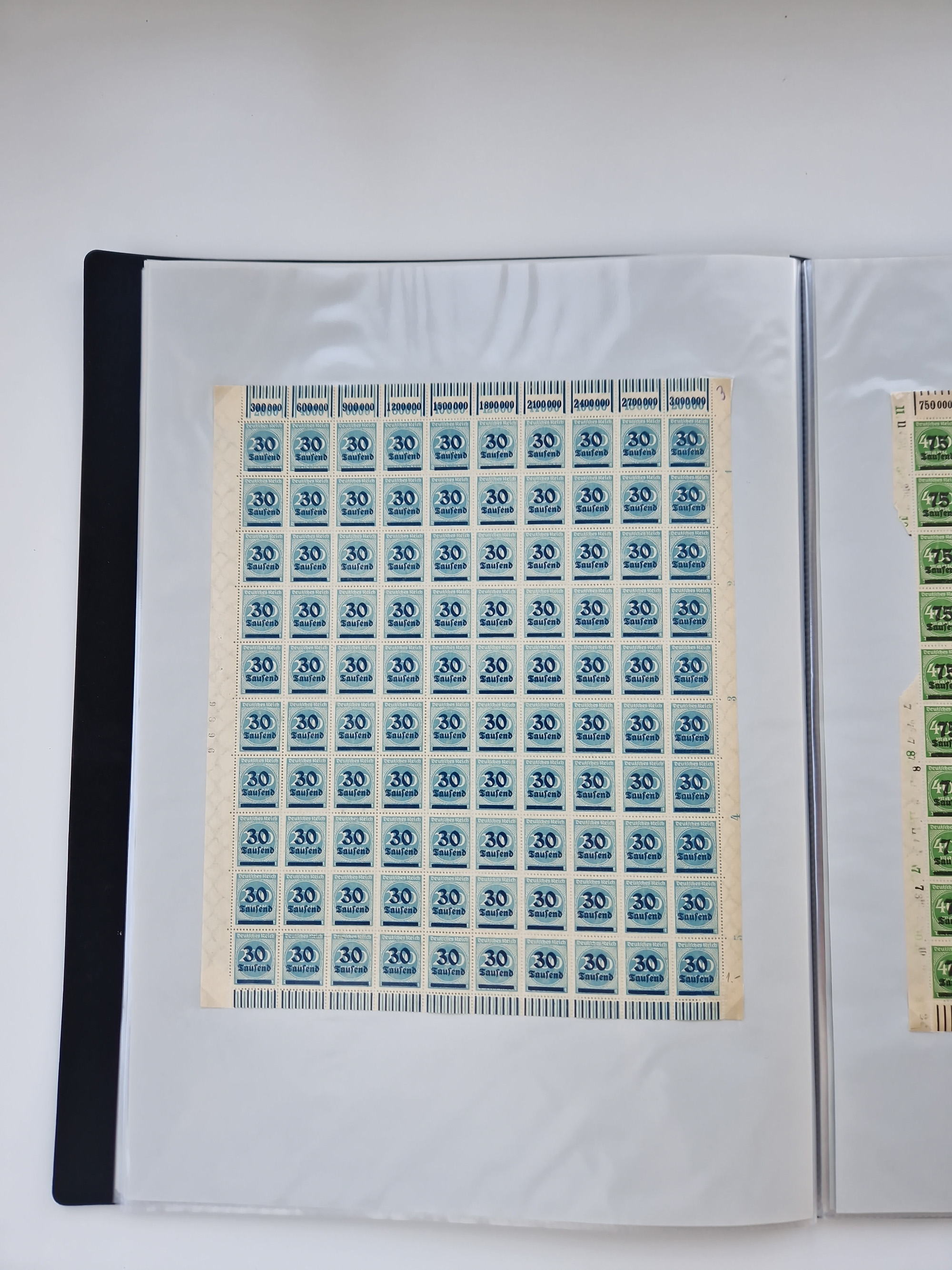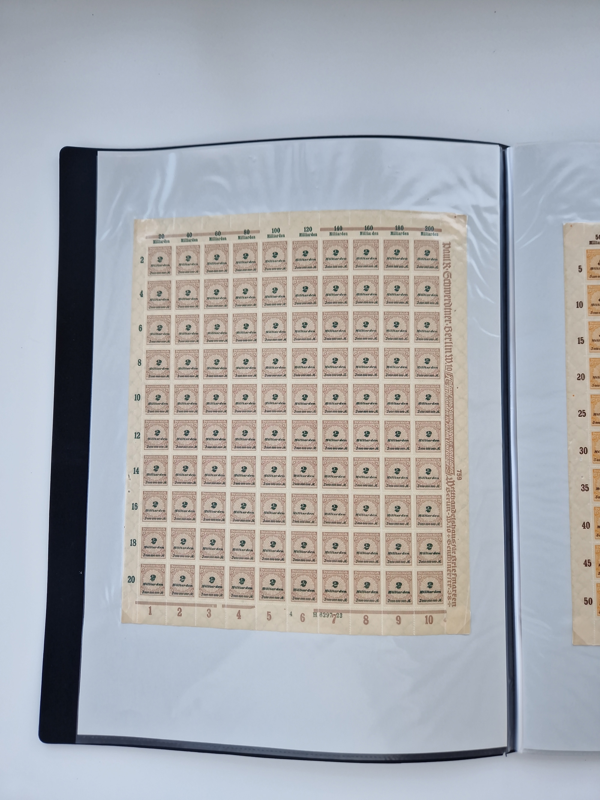 1921/22, postfrischer und ungebrauchter Bestand mit etwas über 200 Bogen und Bogenteilen, dabei Walzen- und Plattenbogen, HAN, Druckereizeichen, Pl.-Nr., auch Wz. Waffeln und Bogentaschen, teils sign. INFLA Berlin, etwas unterschiedliche Erhaltung, in zwei Ordnern
