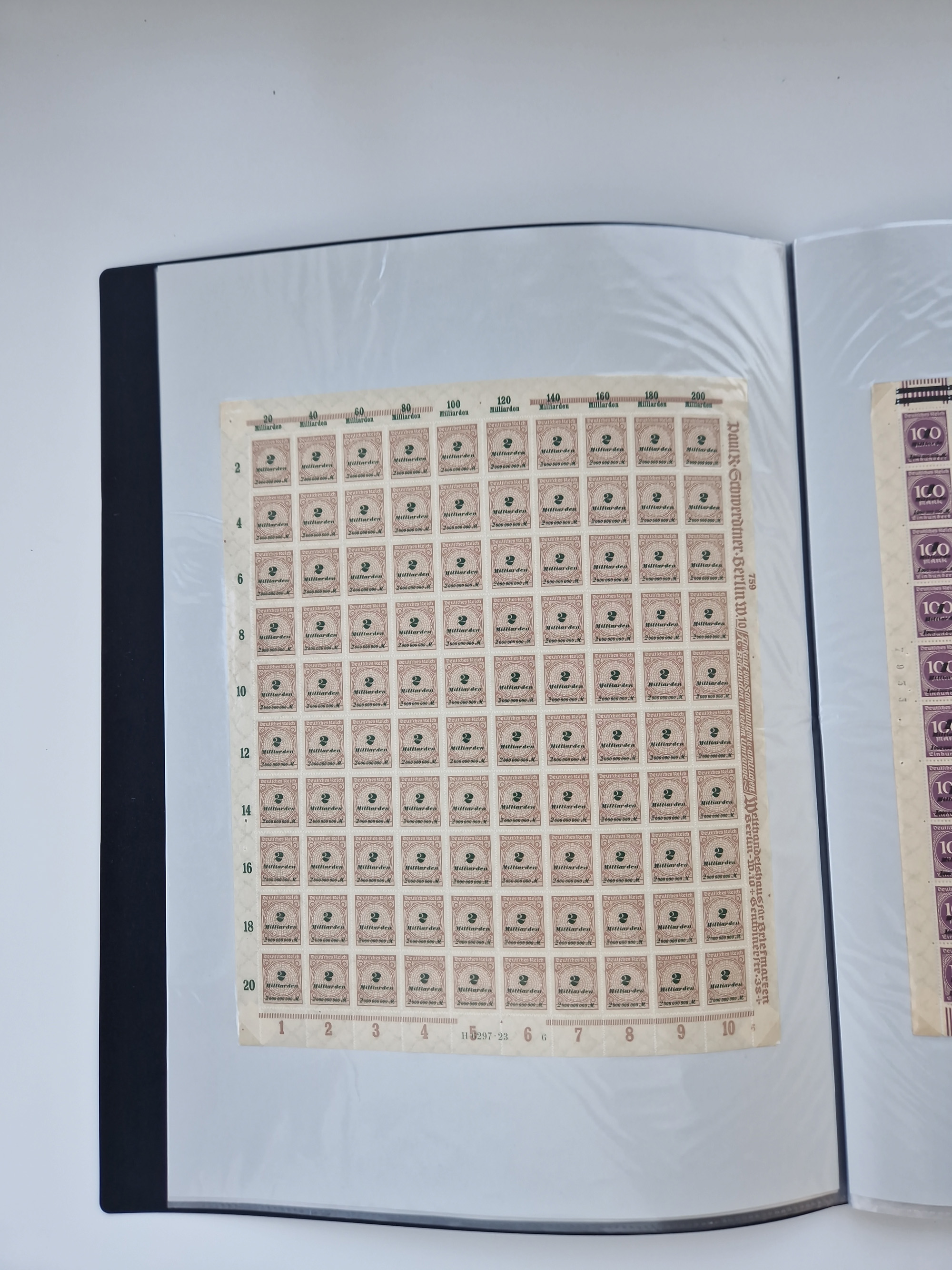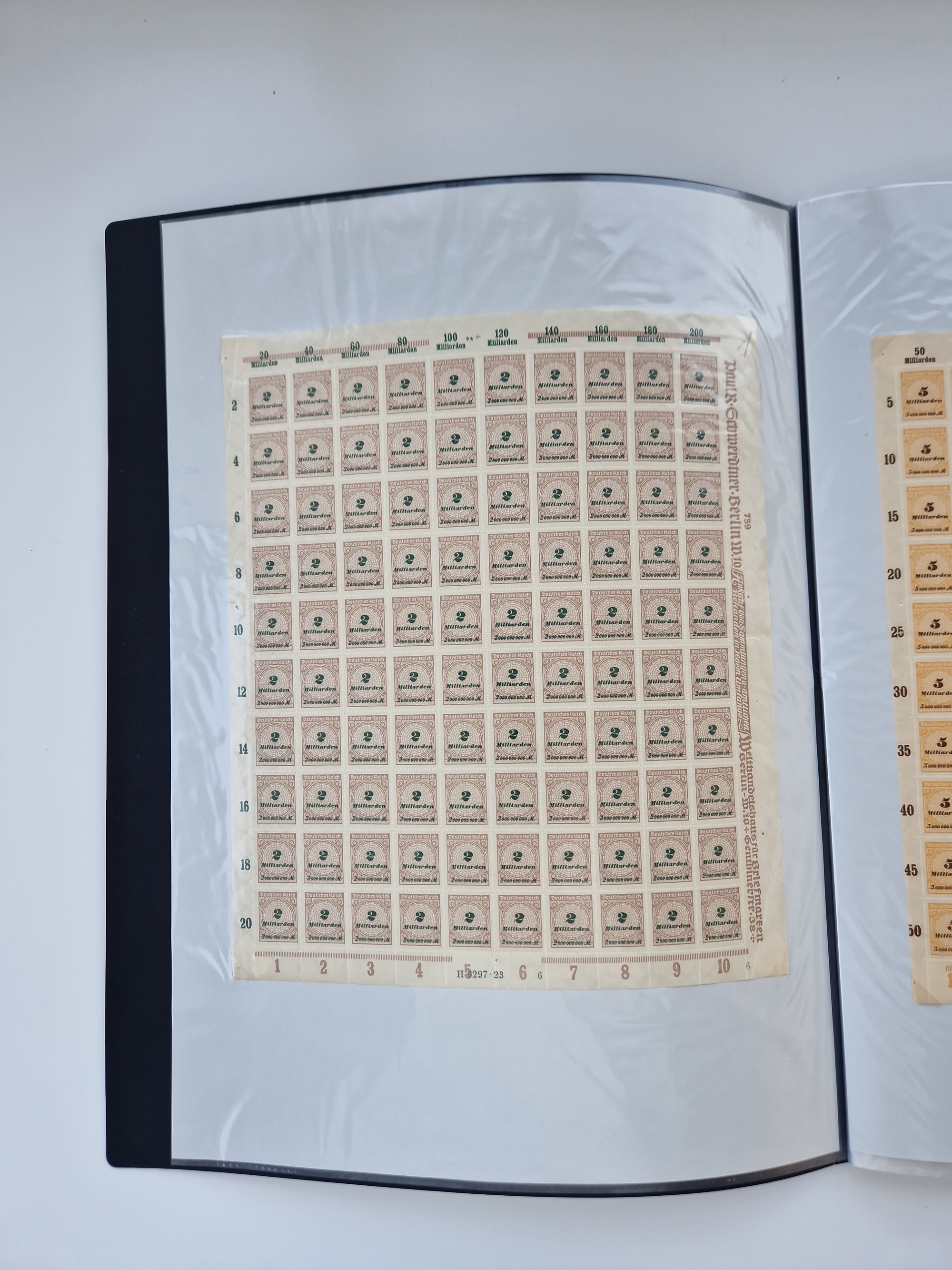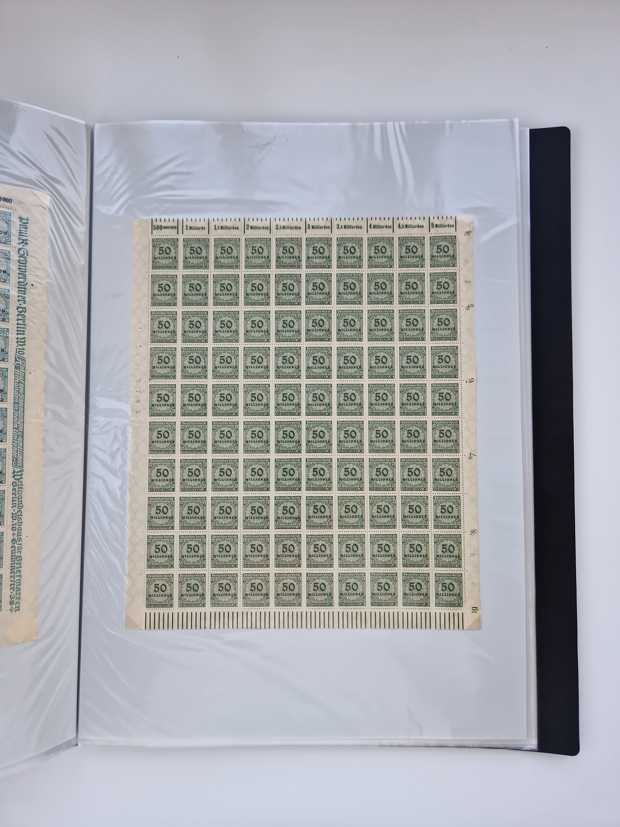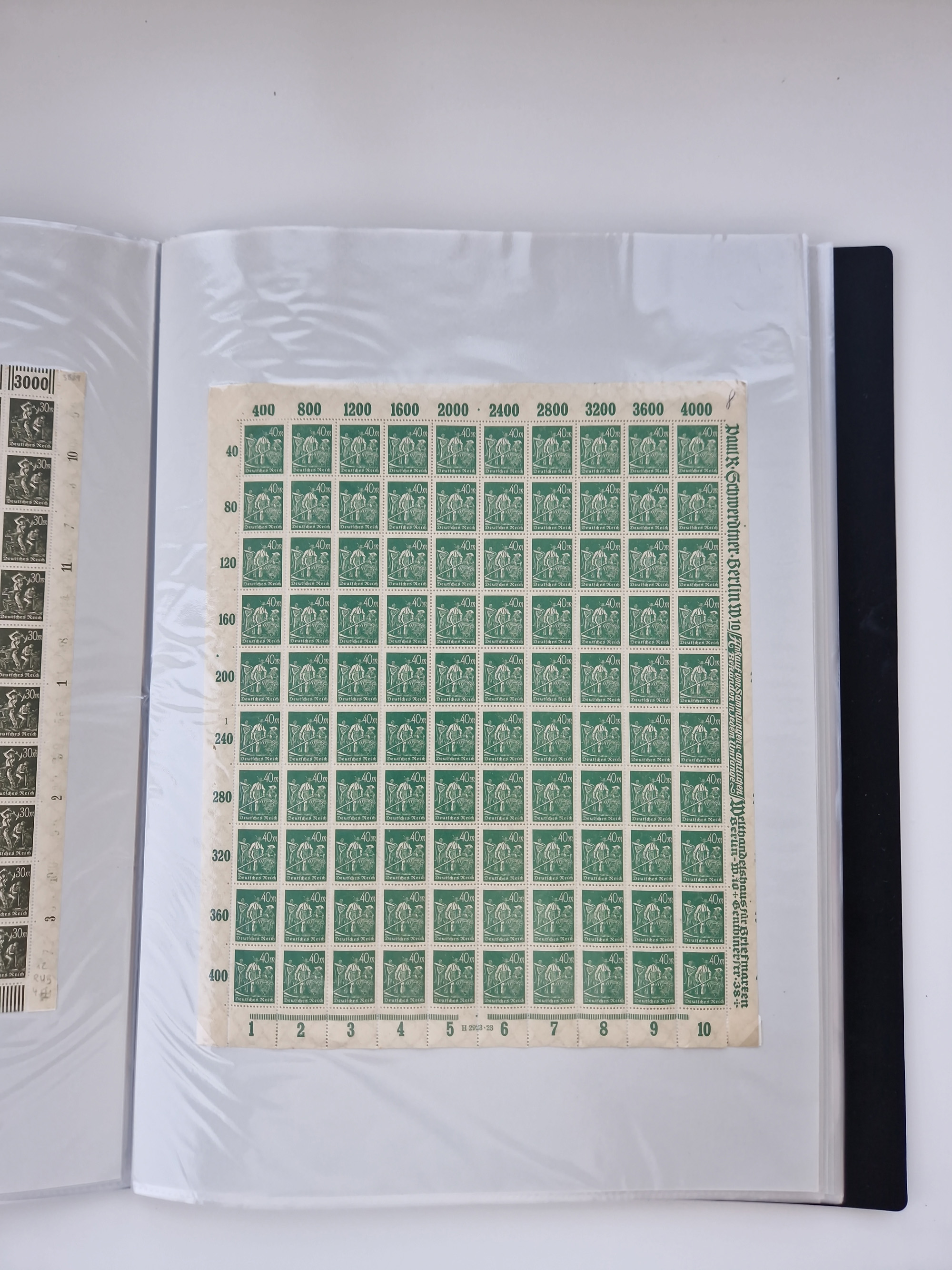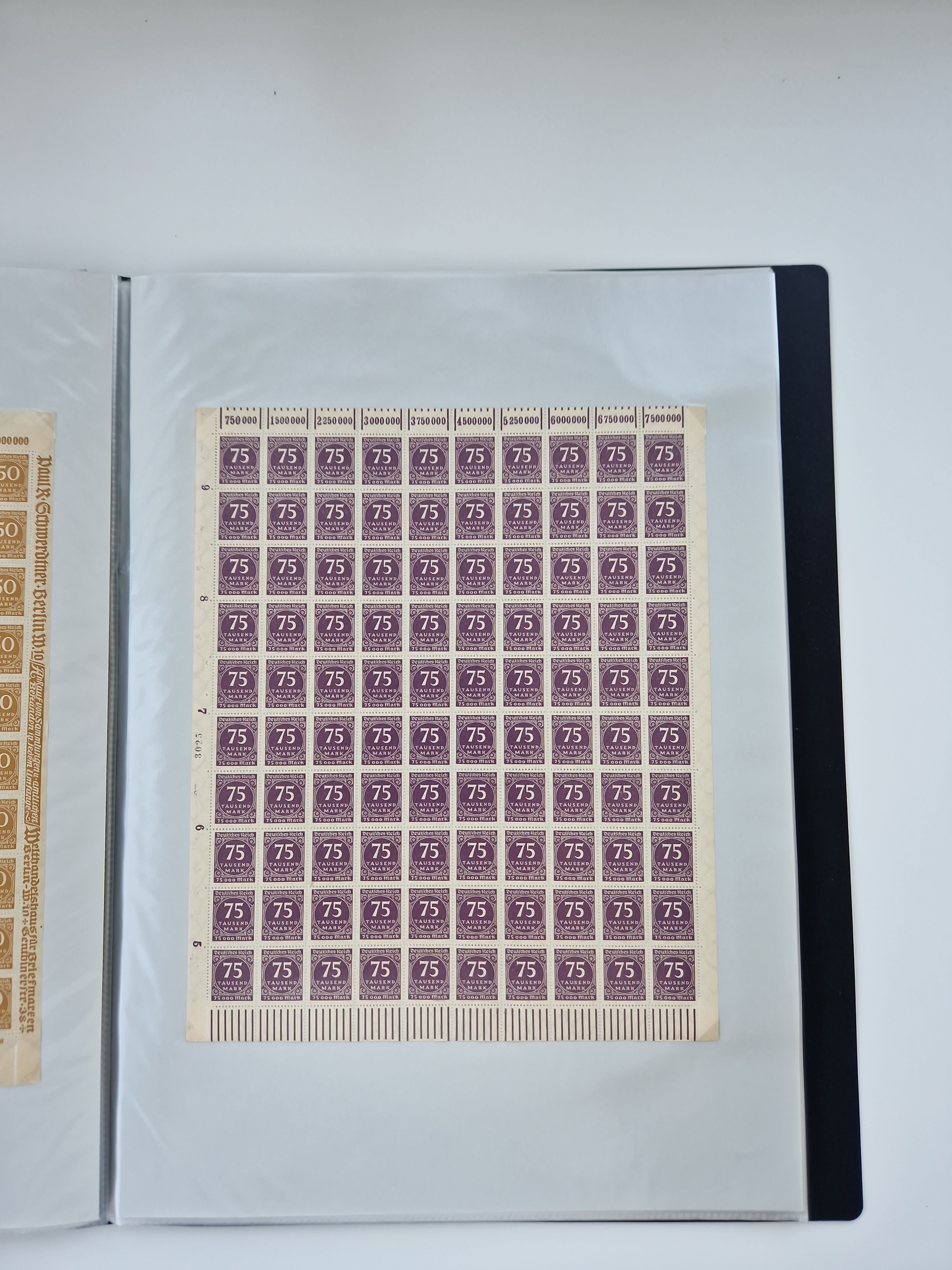 1921/22, postfrischer und ungebrauchter Bestand mit etwas über 200 Bogen und Bogenteilen, dabei Walzen- und Plattenbogen, HAN, Druckereizeichen, Pl.-Nr., auch Wz. Waffeln und Bogentaschen, teils sign. INFLA Berlin, etwas unterschiedliche Erhaltung, in zwei Ordnern