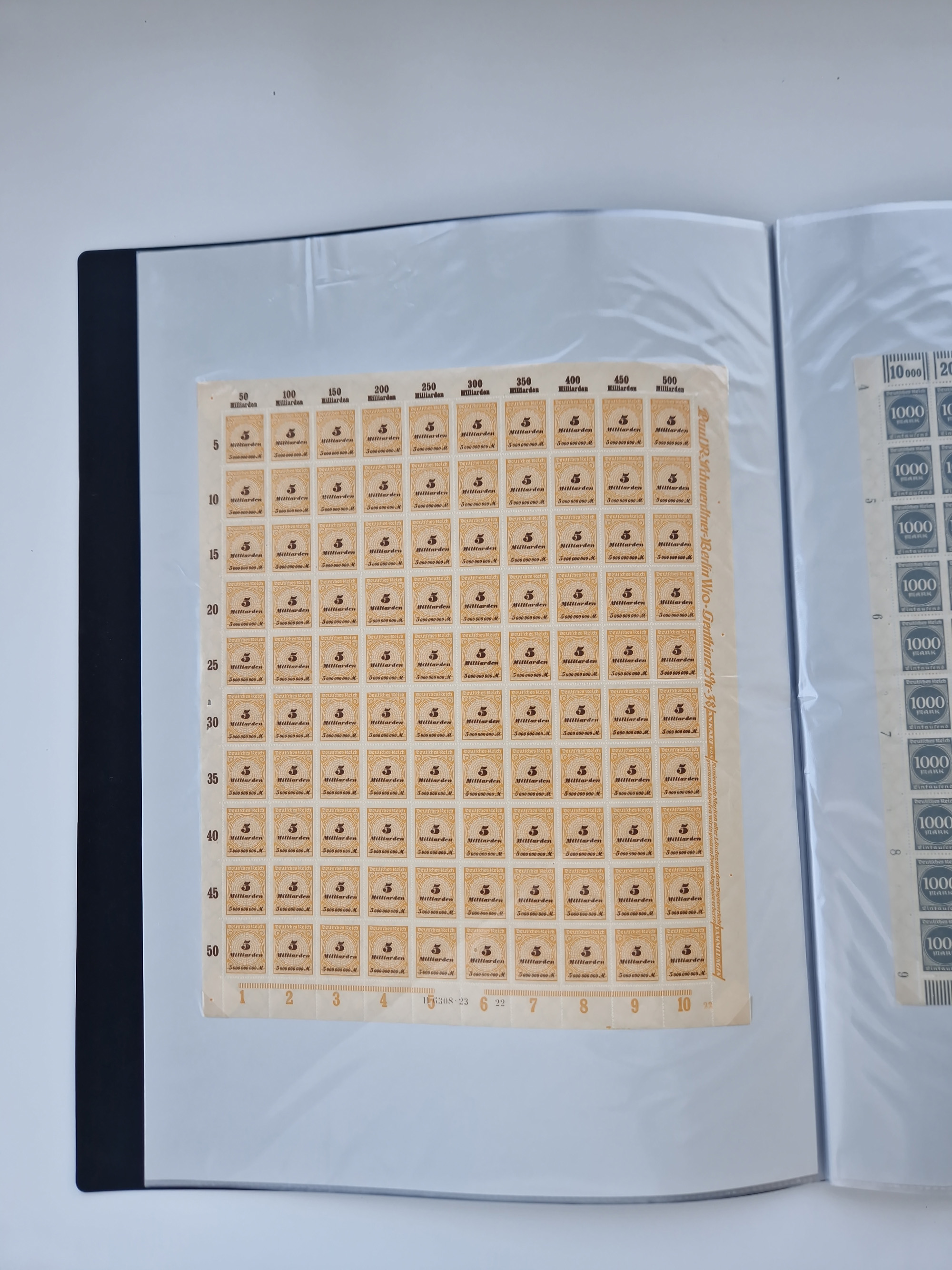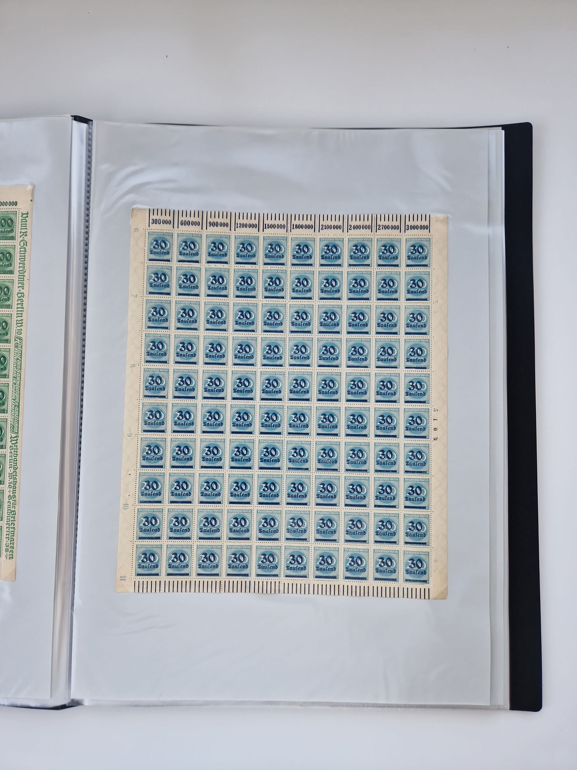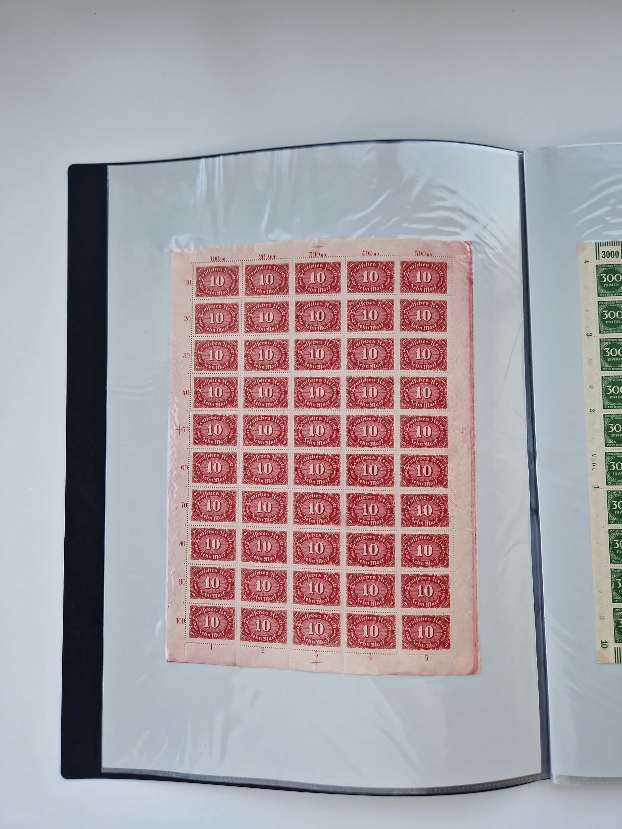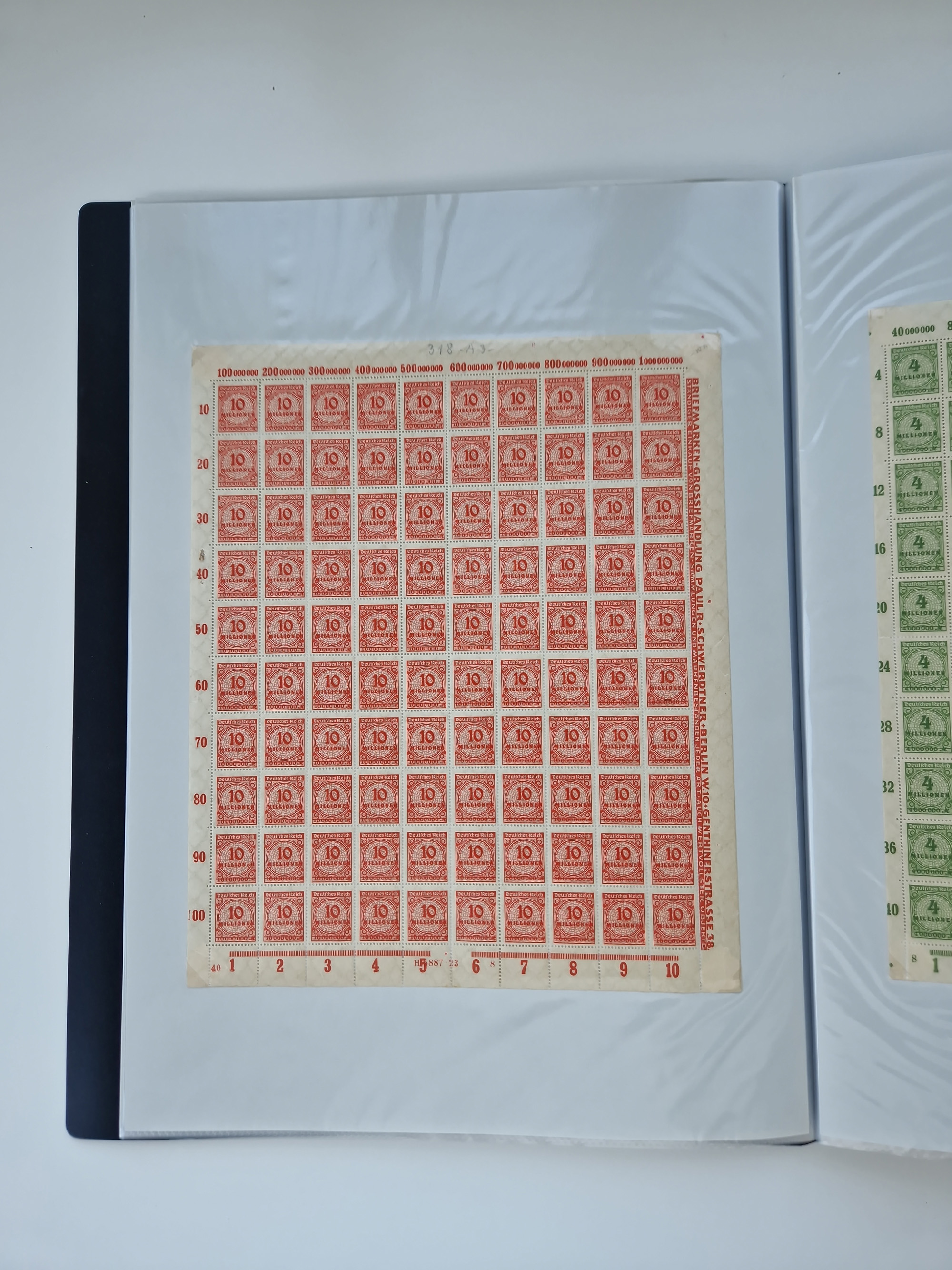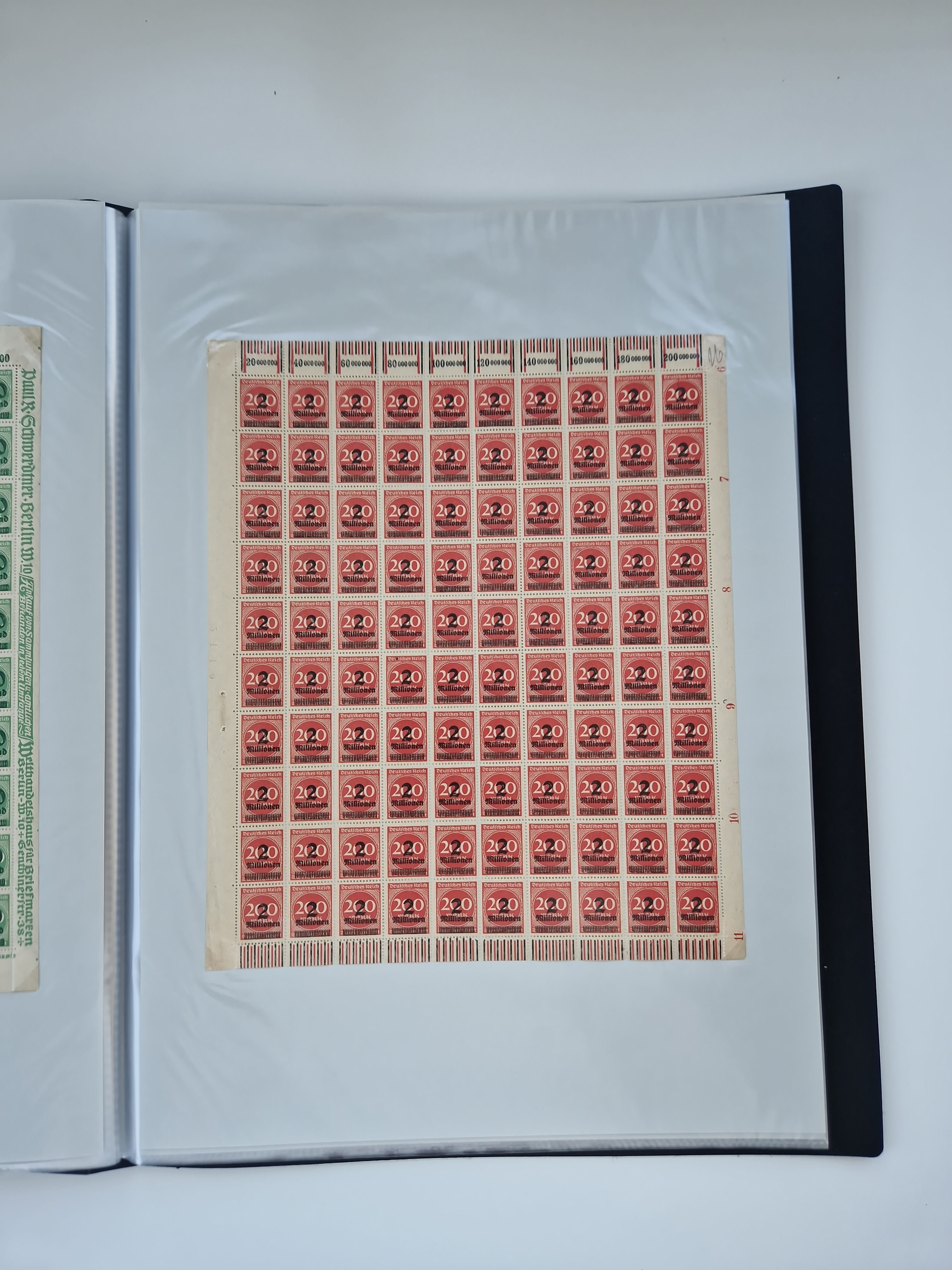 1921/22, postfrischer und ungebrauchter Bestand mit etwas über 200 Bogen und Bogenteilen, dabei Walzen- und Plattenbogen, HAN, Druckereizeichen, Pl.-Nr., auch Wz. Waffeln und Bogentaschen, teils sign. INFLA Berlin, etwas unterschiedliche Erhaltung, in zwei Ordnern
