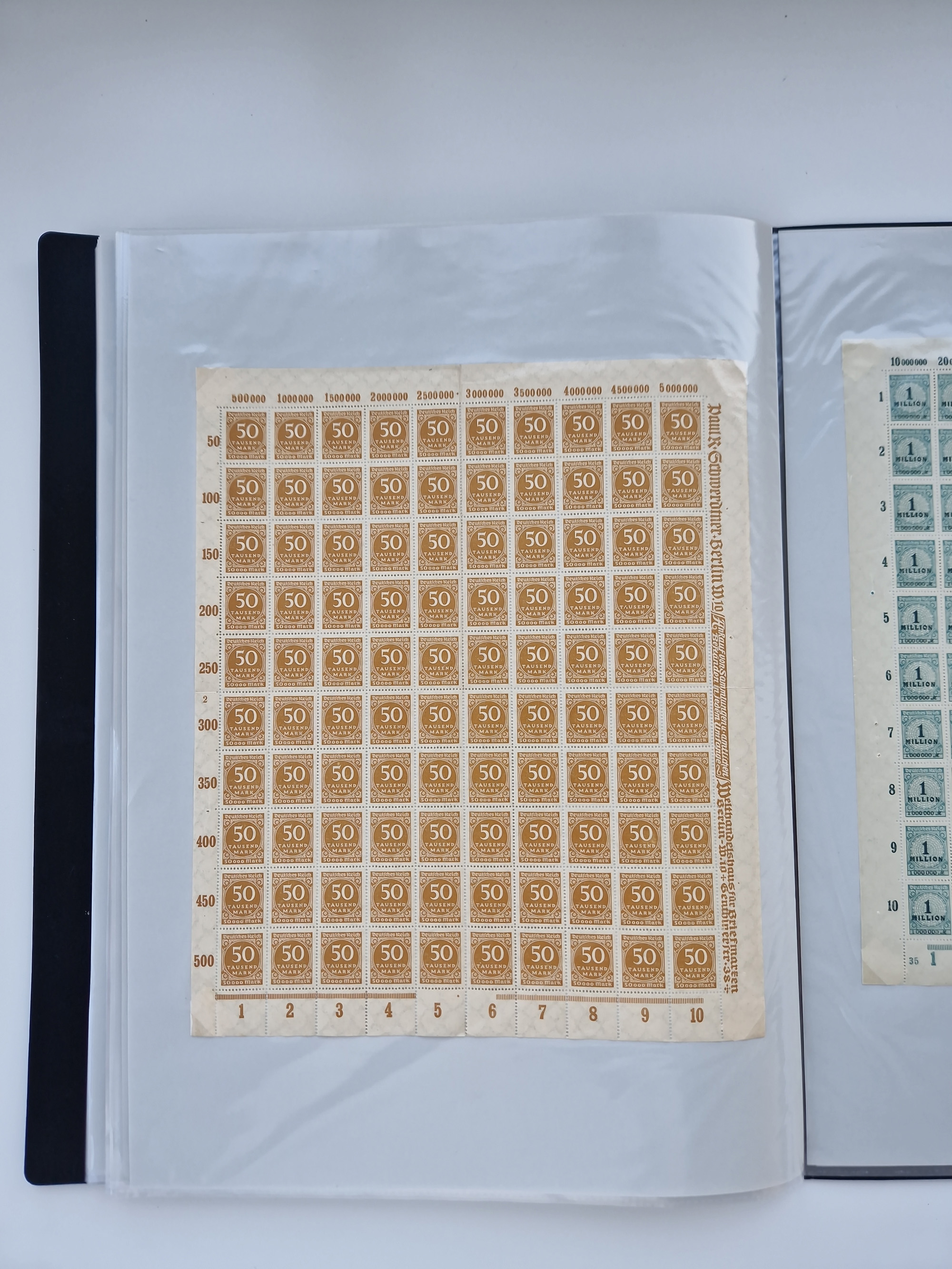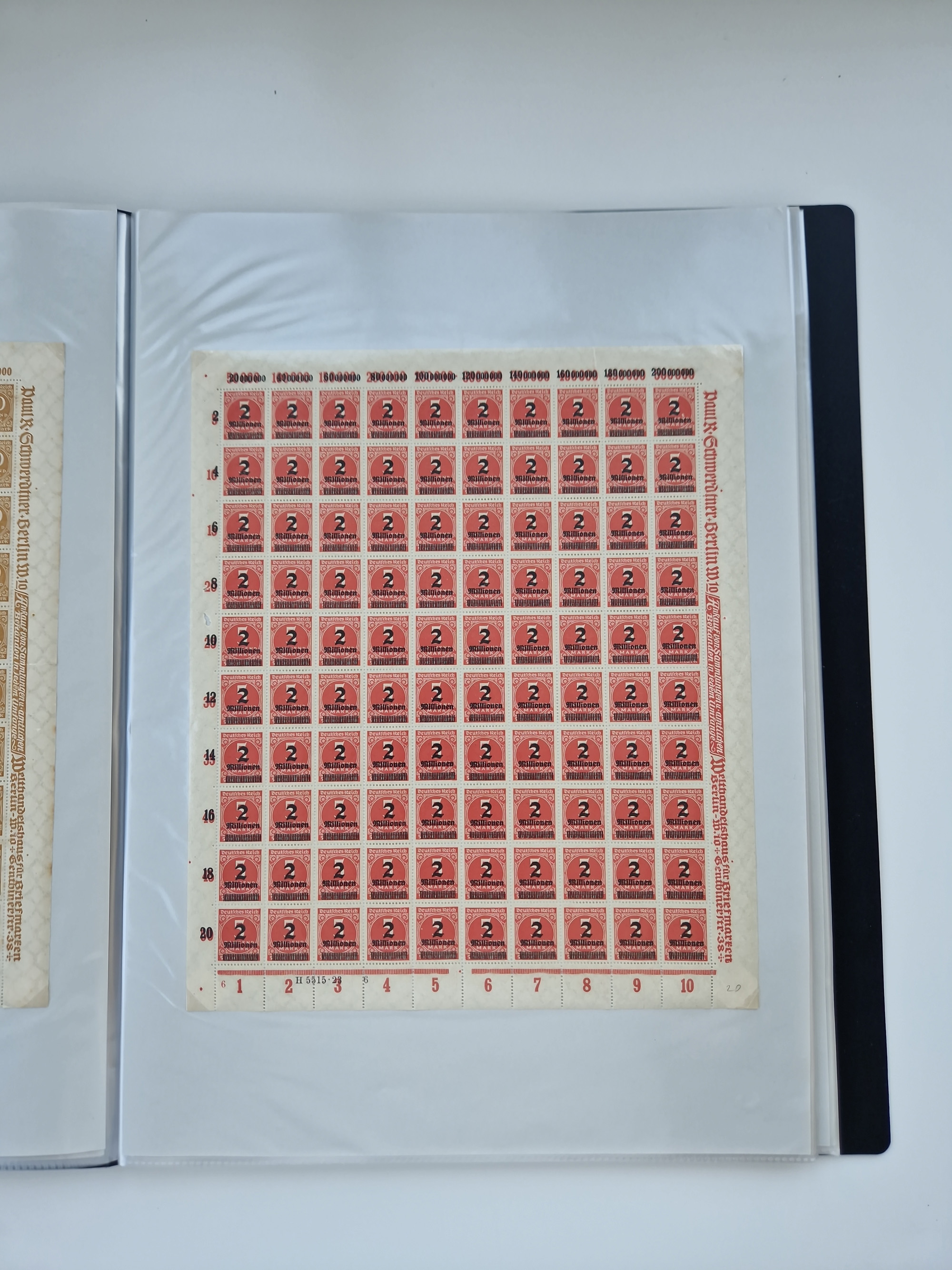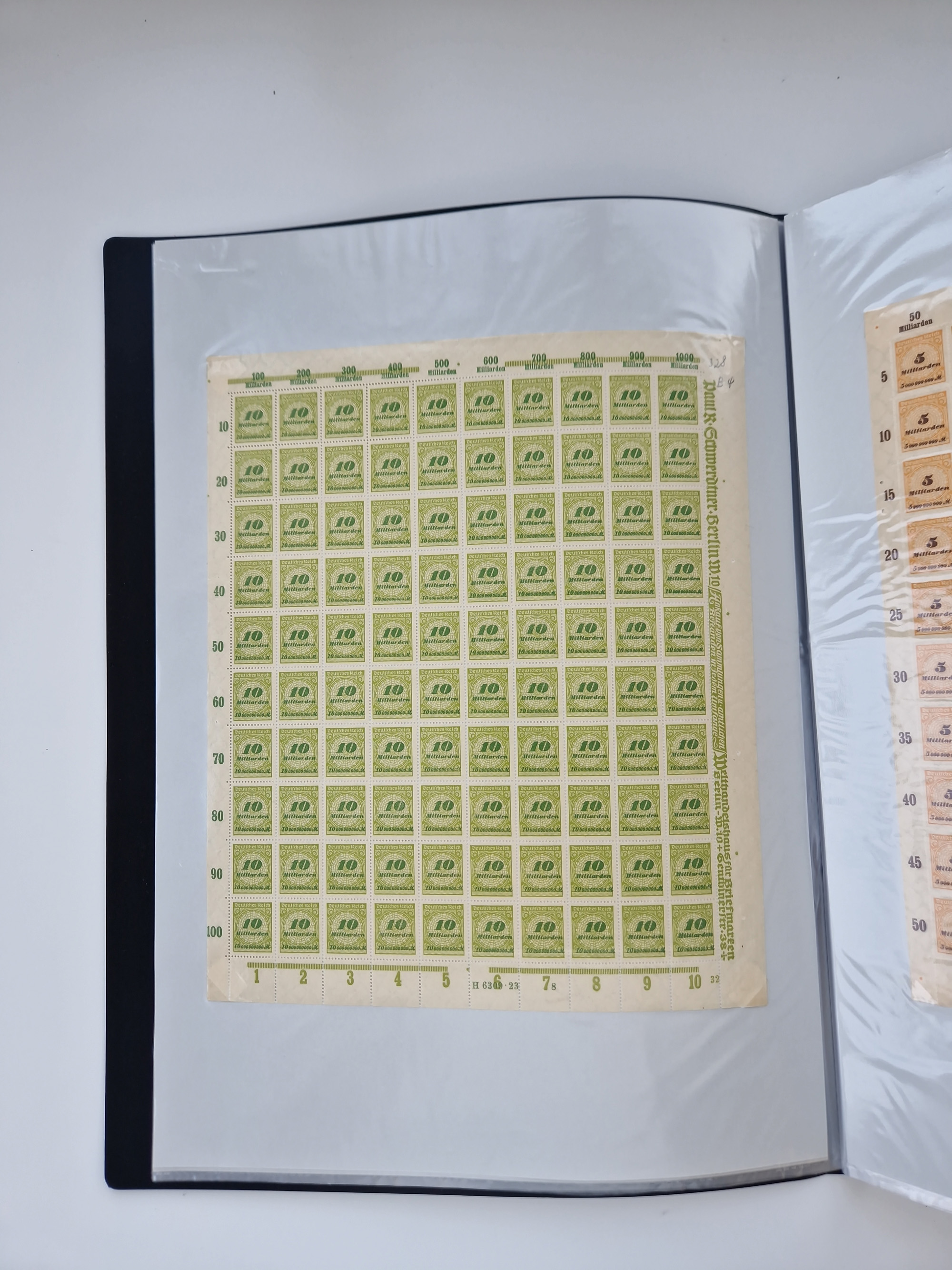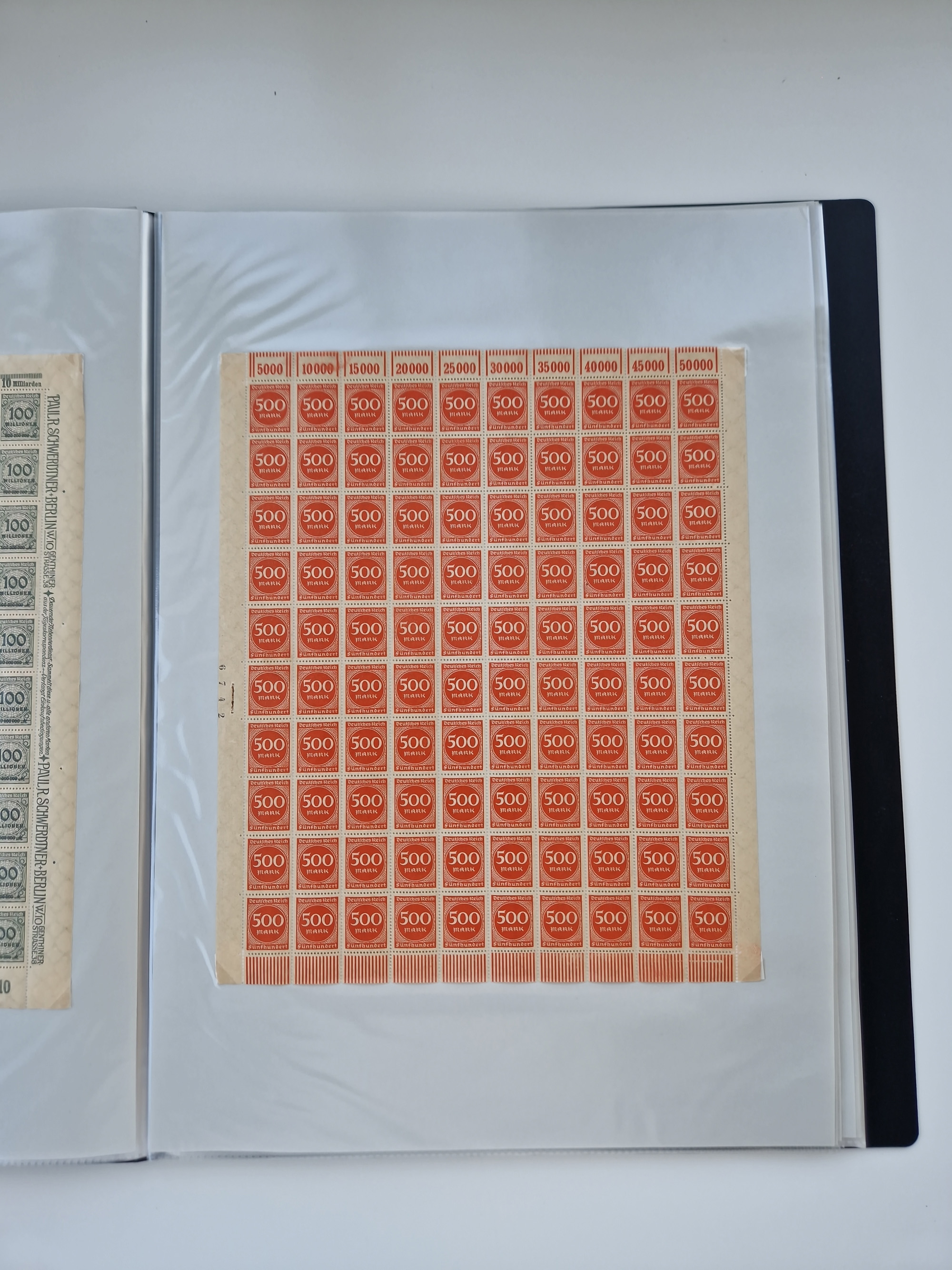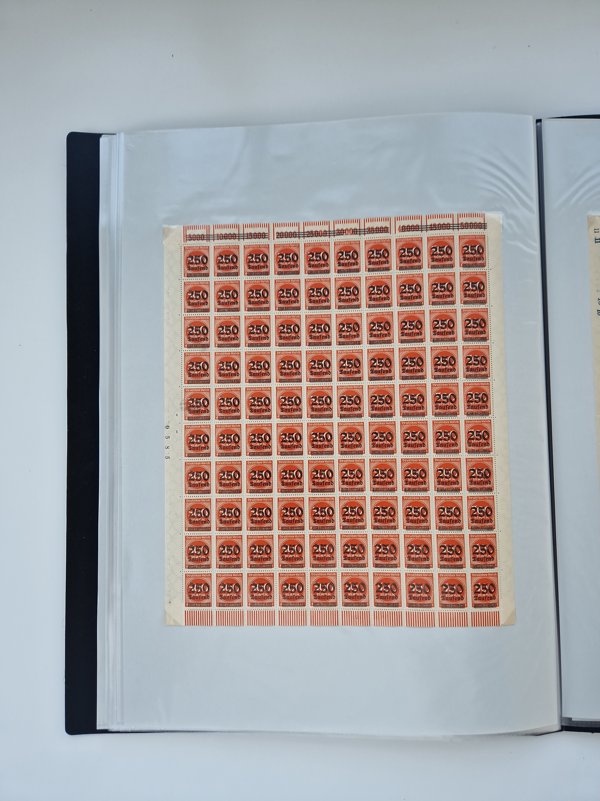 1921/22, postfrischer und ungebrauchter Bestand mit etwas über 200 Bogen und Bogenteilen, dabei Walzen- und Plattenbogen, HAN, Druckereizeichen, Pl.-Nr., auch Wz. Waffeln und Bogentaschen, teils sign. INFLA Berlin, etwas unterschiedliche Erhaltung, in zwei Ordnern