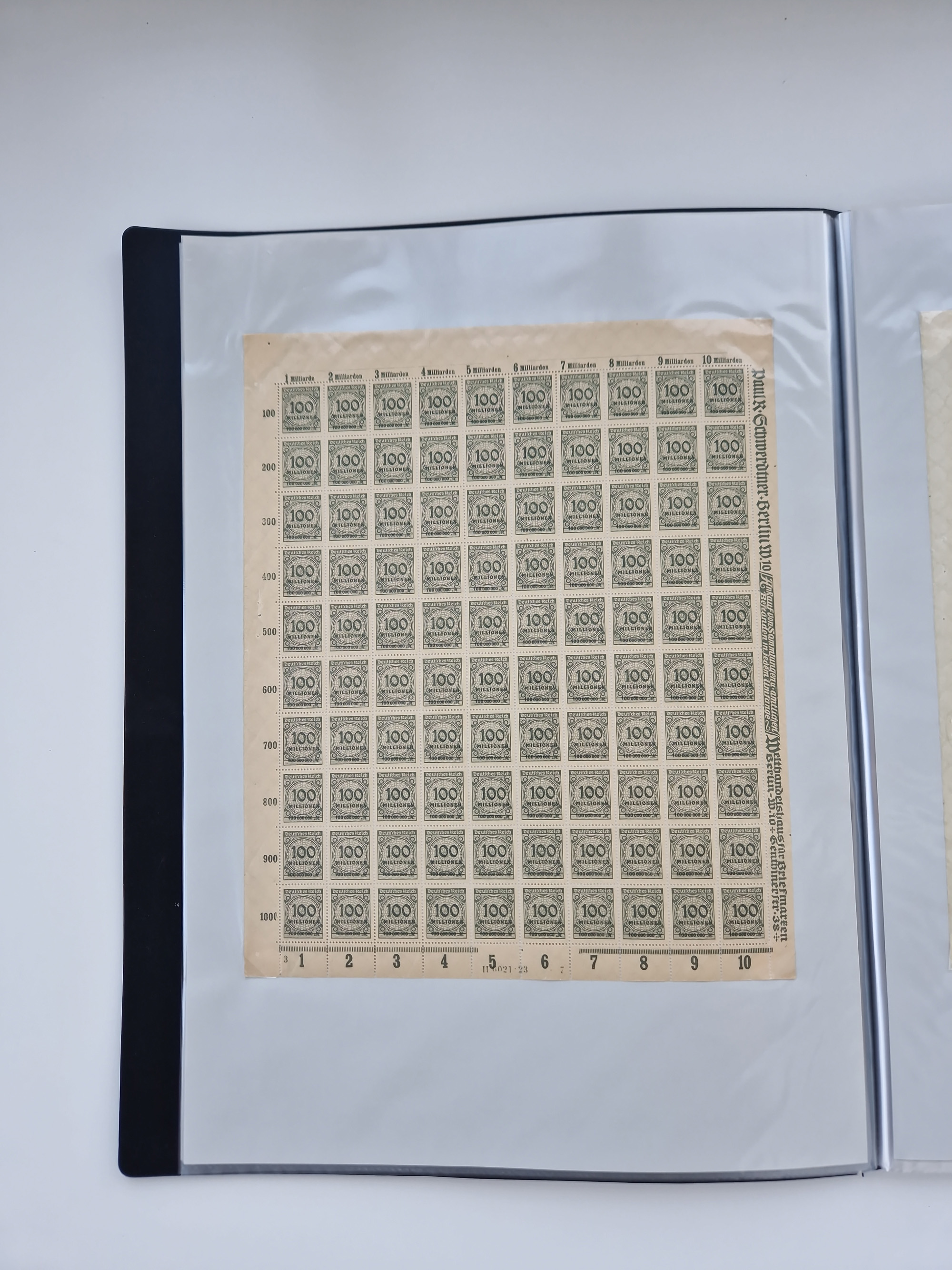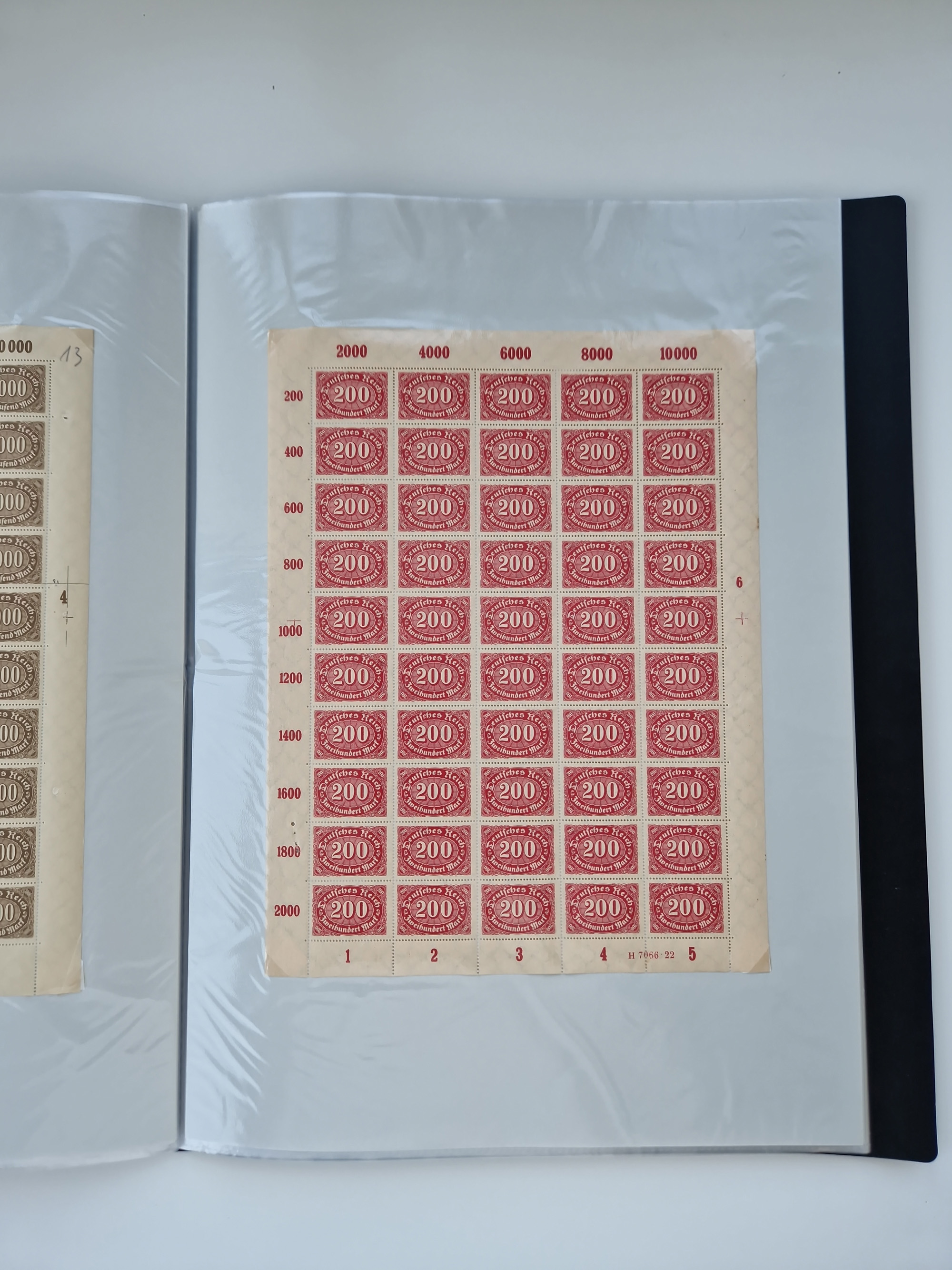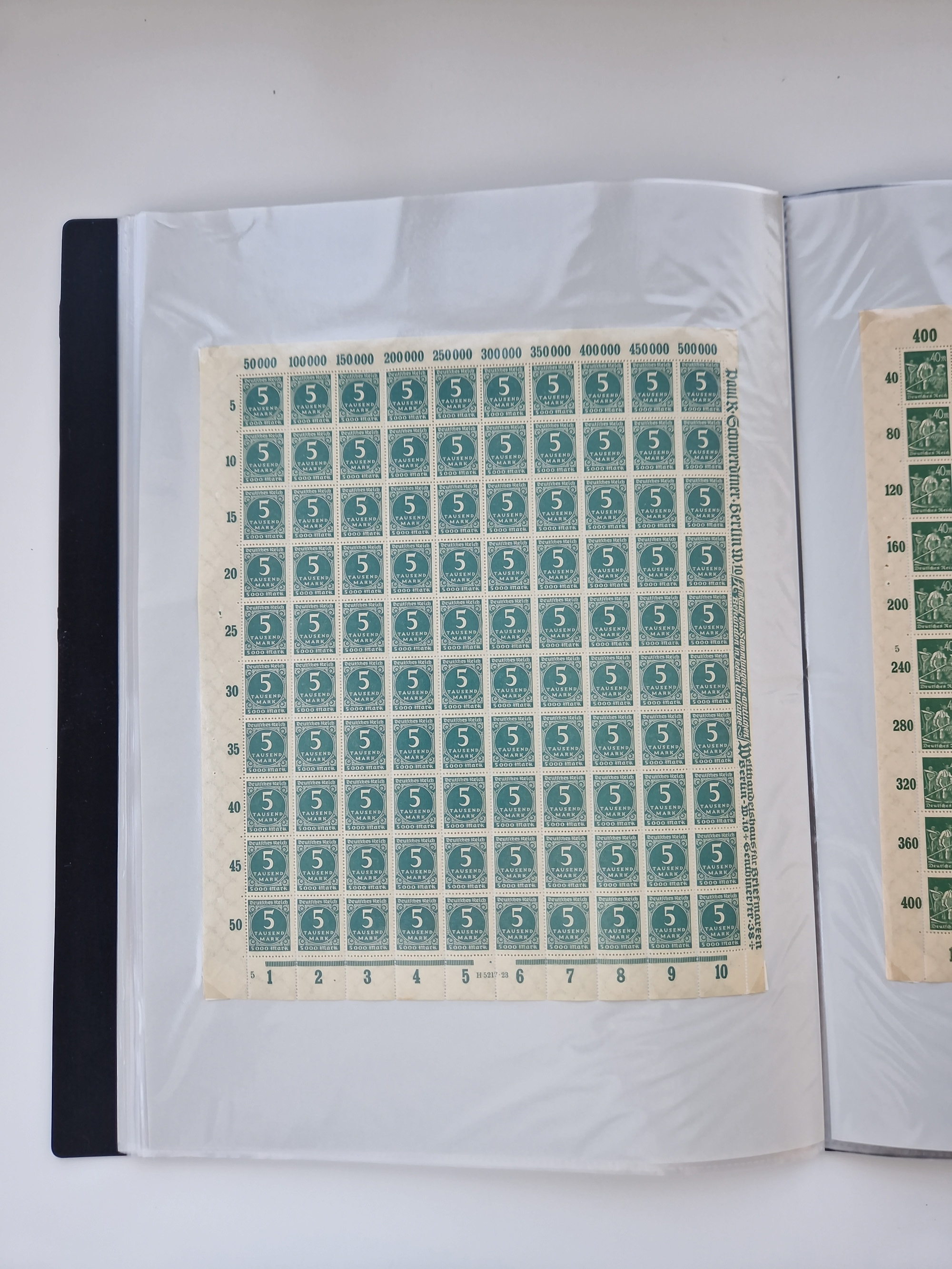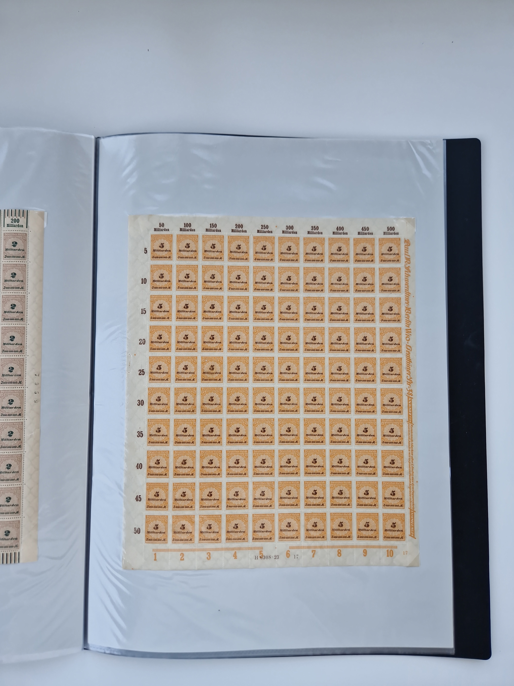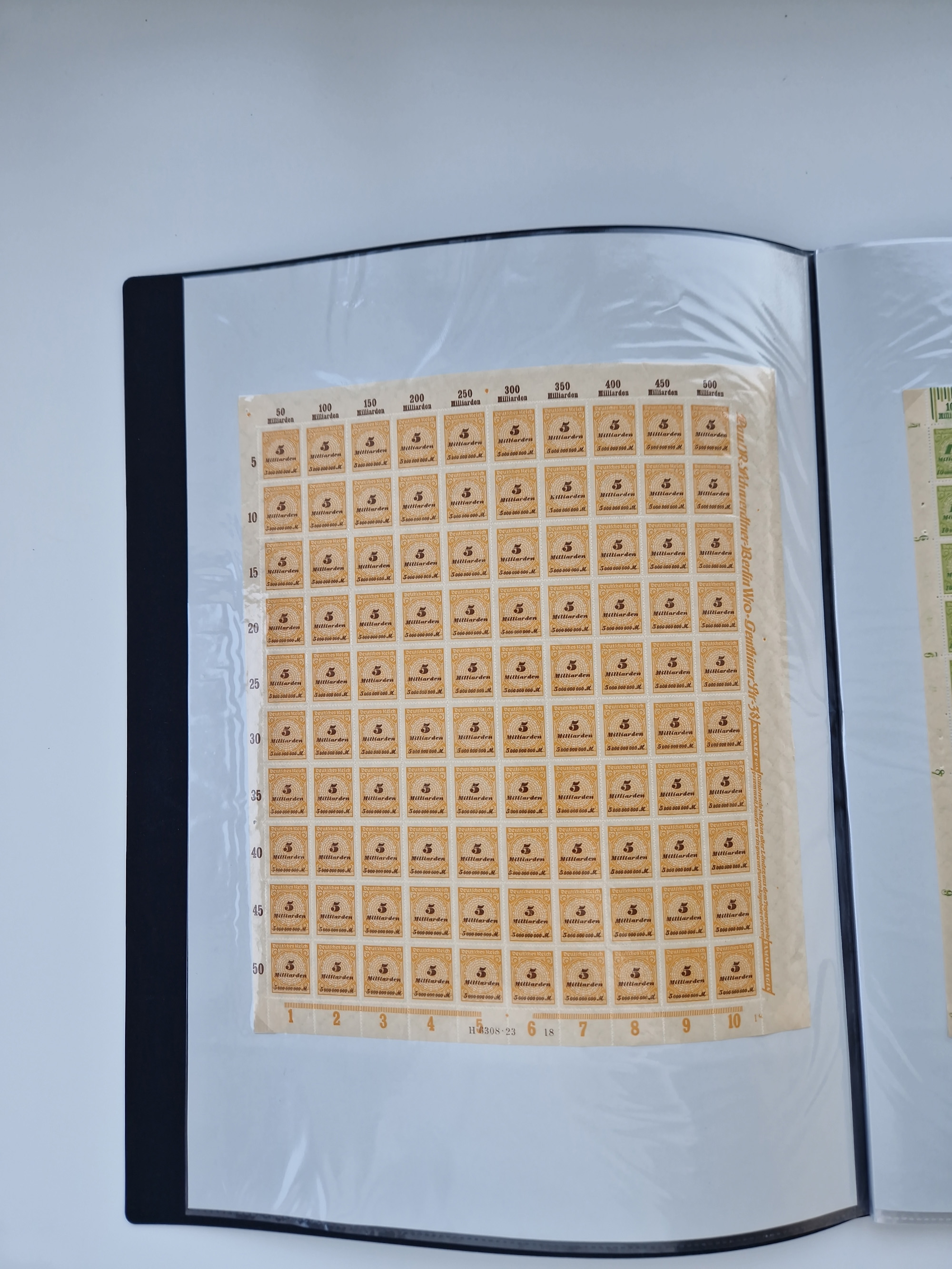 1921/22, postfrischer und ungebrauchter Bestand mit etwas über 200 Bogen und Bogenteilen, dabei Walzen- und Plattenbogen, HAN, Druckereizeichen, Pl.-Nr., auch Wz. Waffeln und Bogentaschen, teils sign. INFLA Berlin, etwas unterschiedliche Erhaltung, in zwei Ordnern