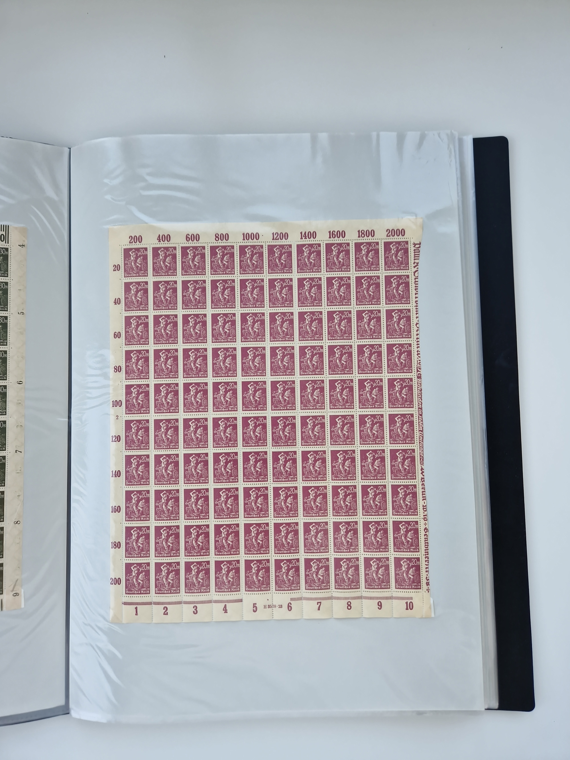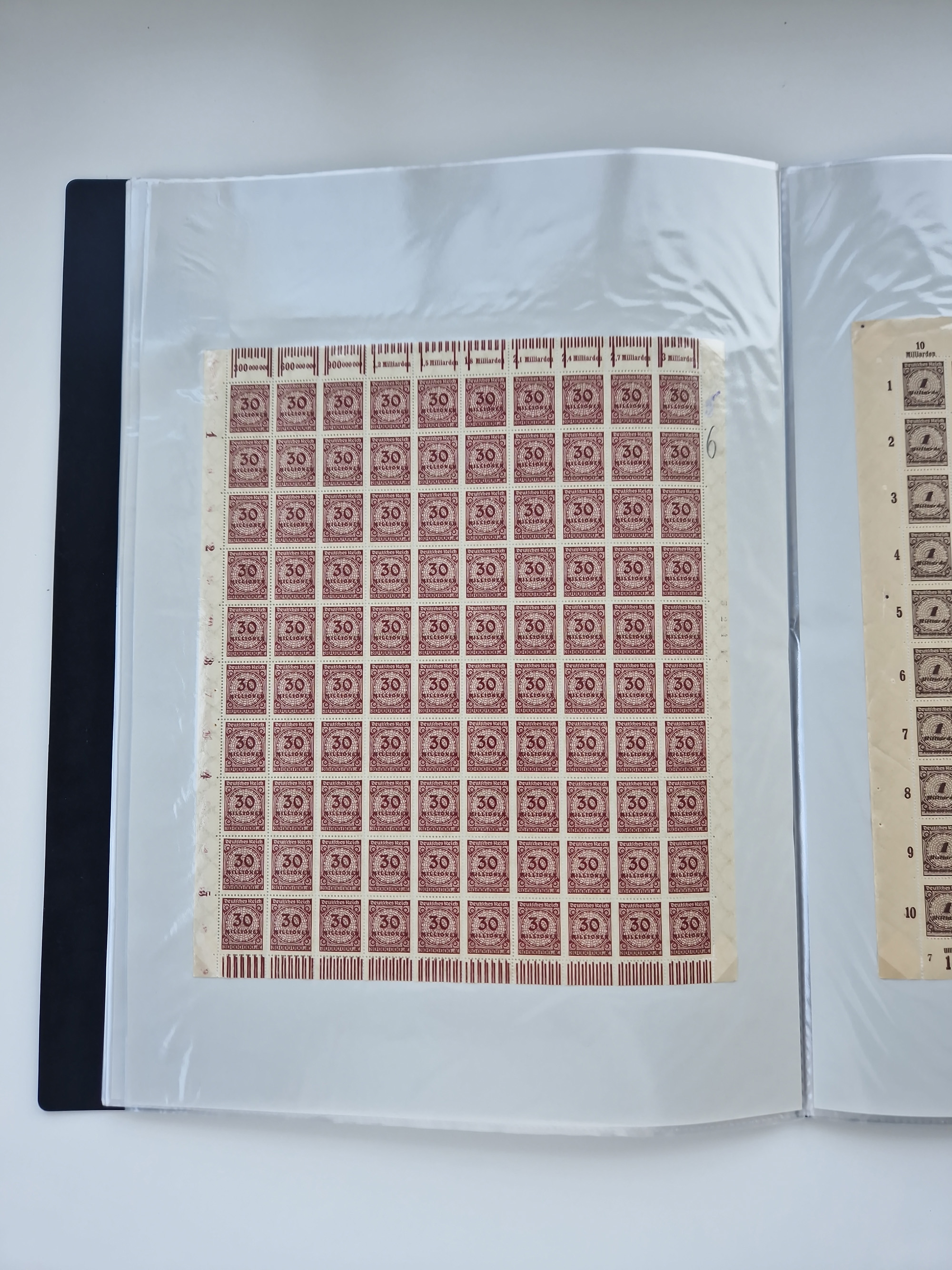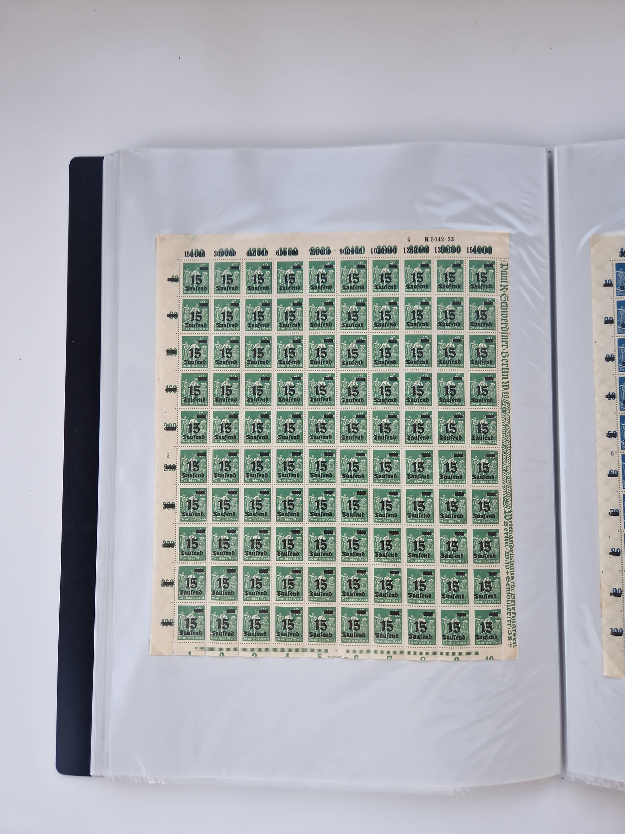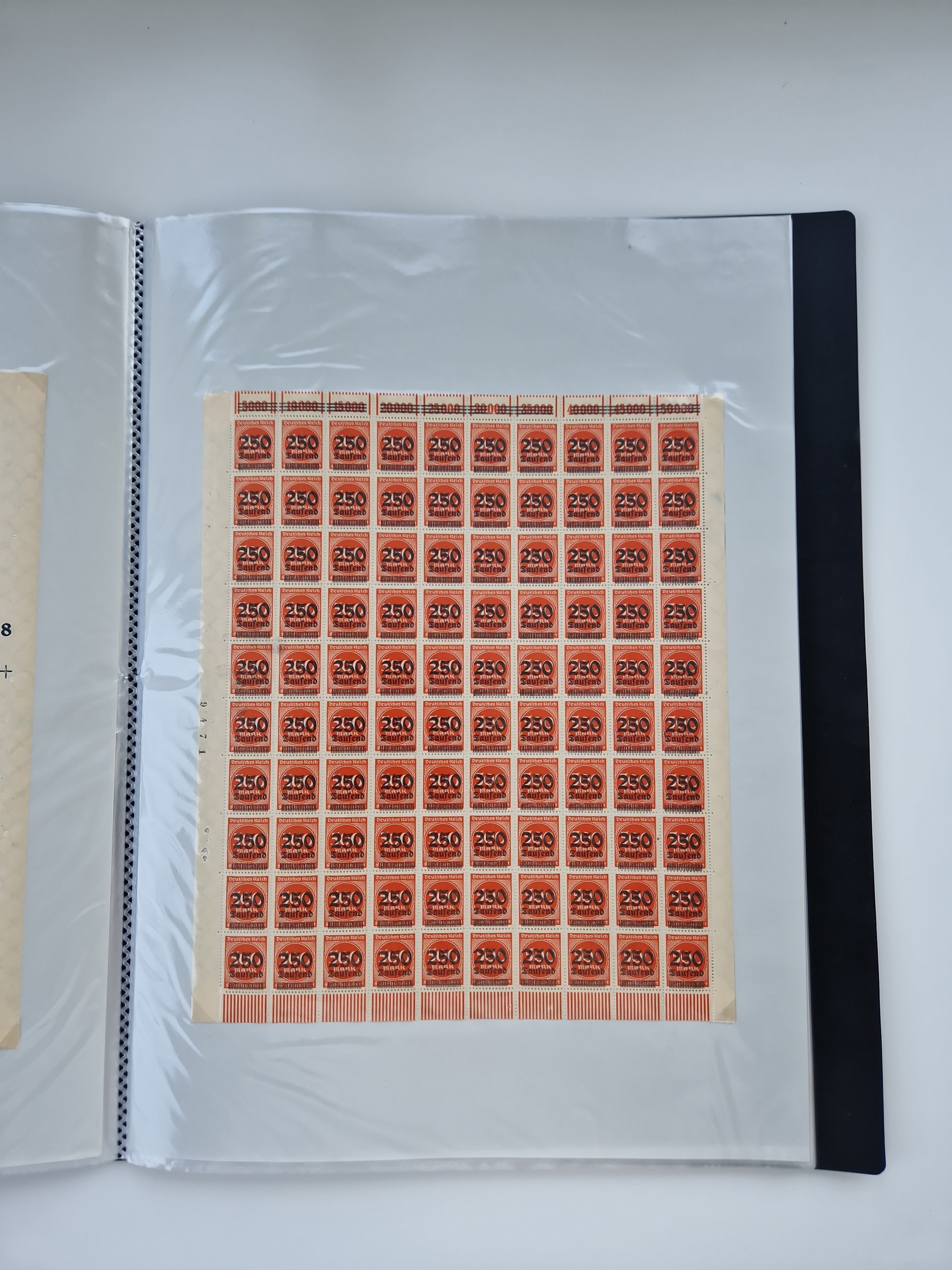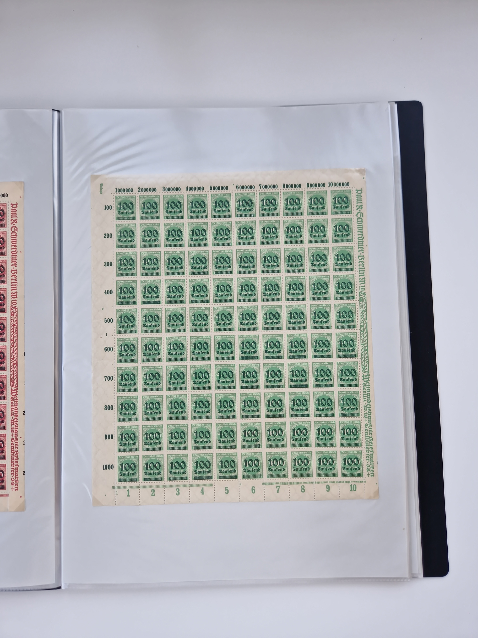 1921/22, postfrischer und ungebrauchter Bestand mit etwas über 200 Bogen und Bogenteilen, dabei Walzen- und Plattenbogen, HAN, Druckereizeichen, Pl.-Nr., auch Wz. Waffeln und Bogentaschen, teils sign. INFLA Berlin, etwas unterschiedliche Erhaltung, in zwei Ordnern