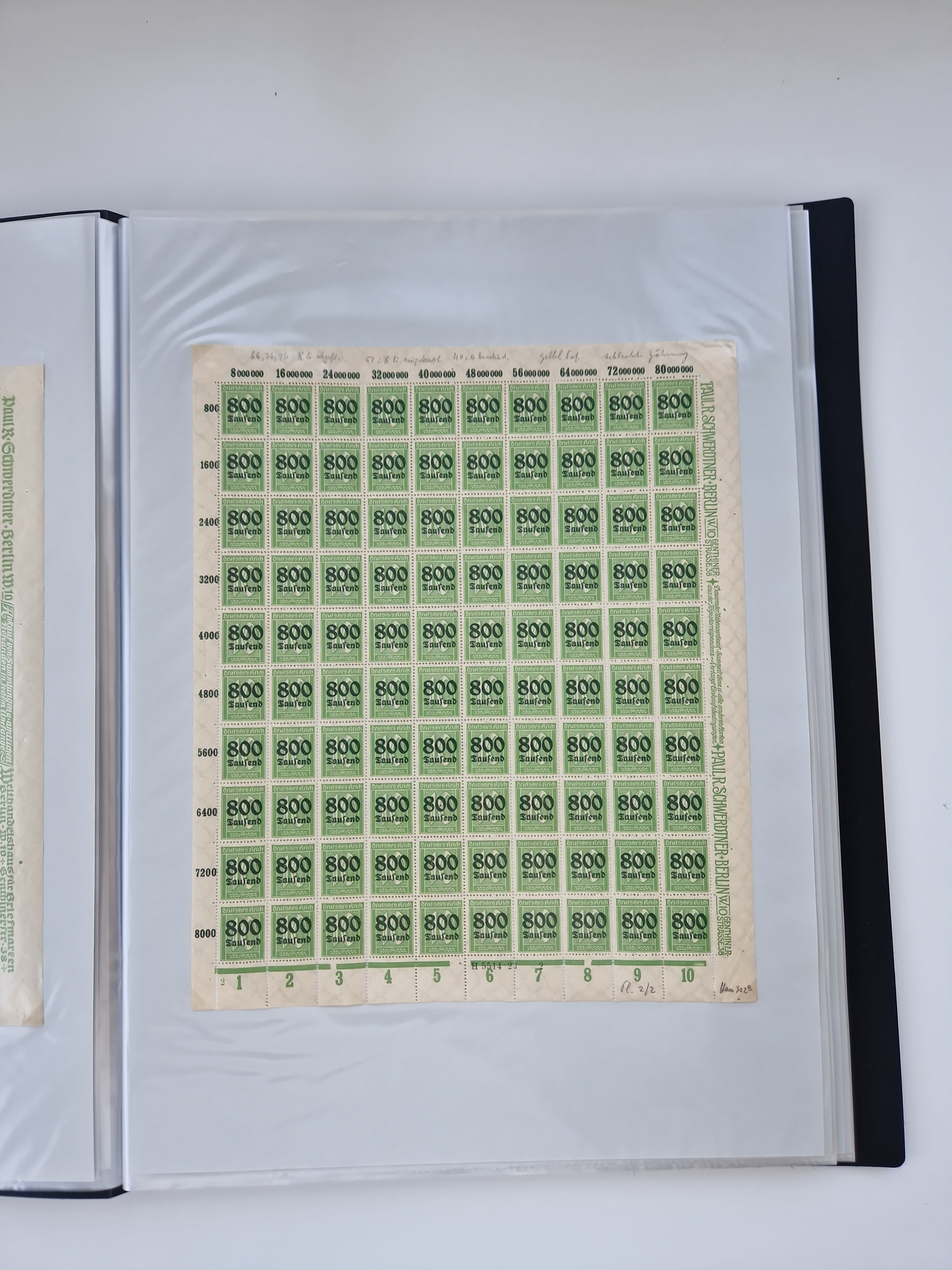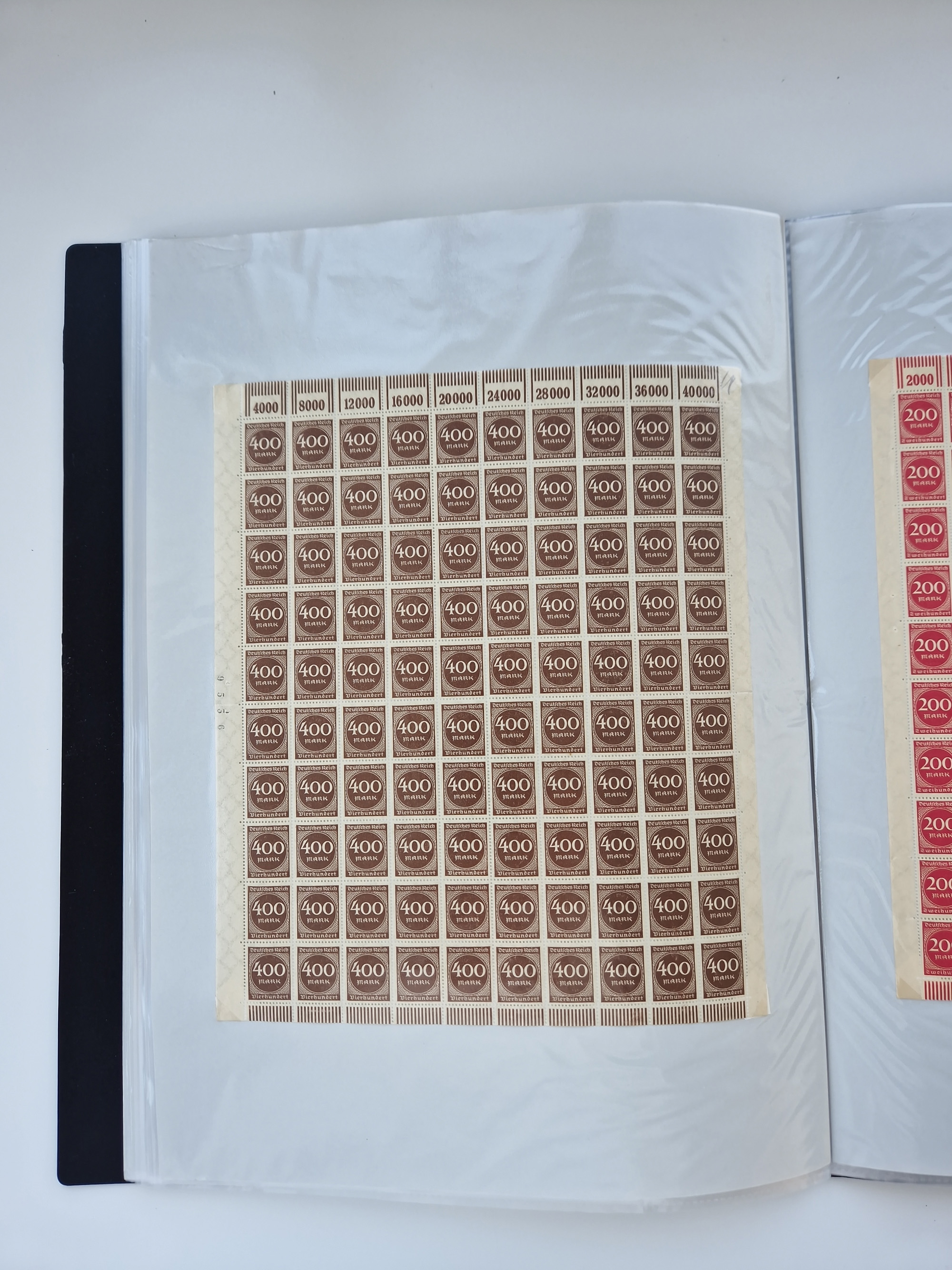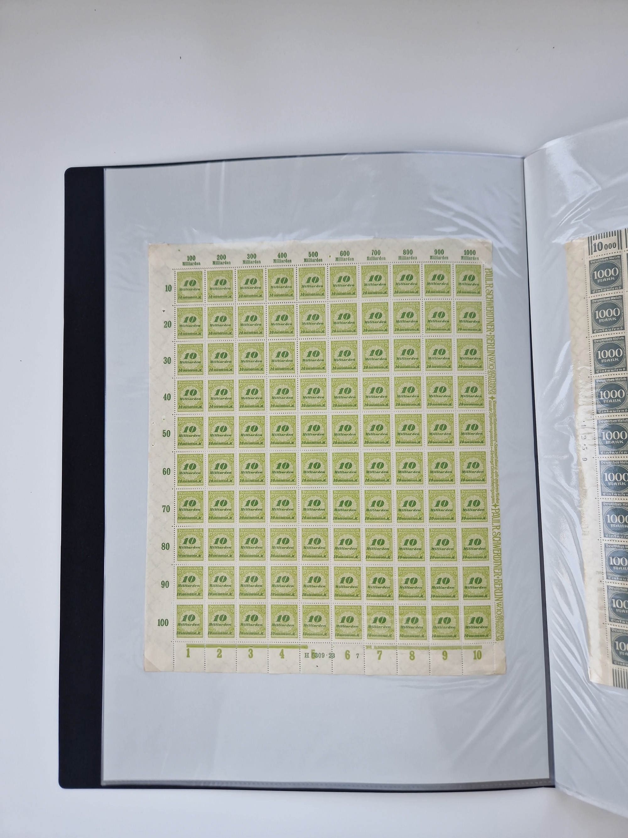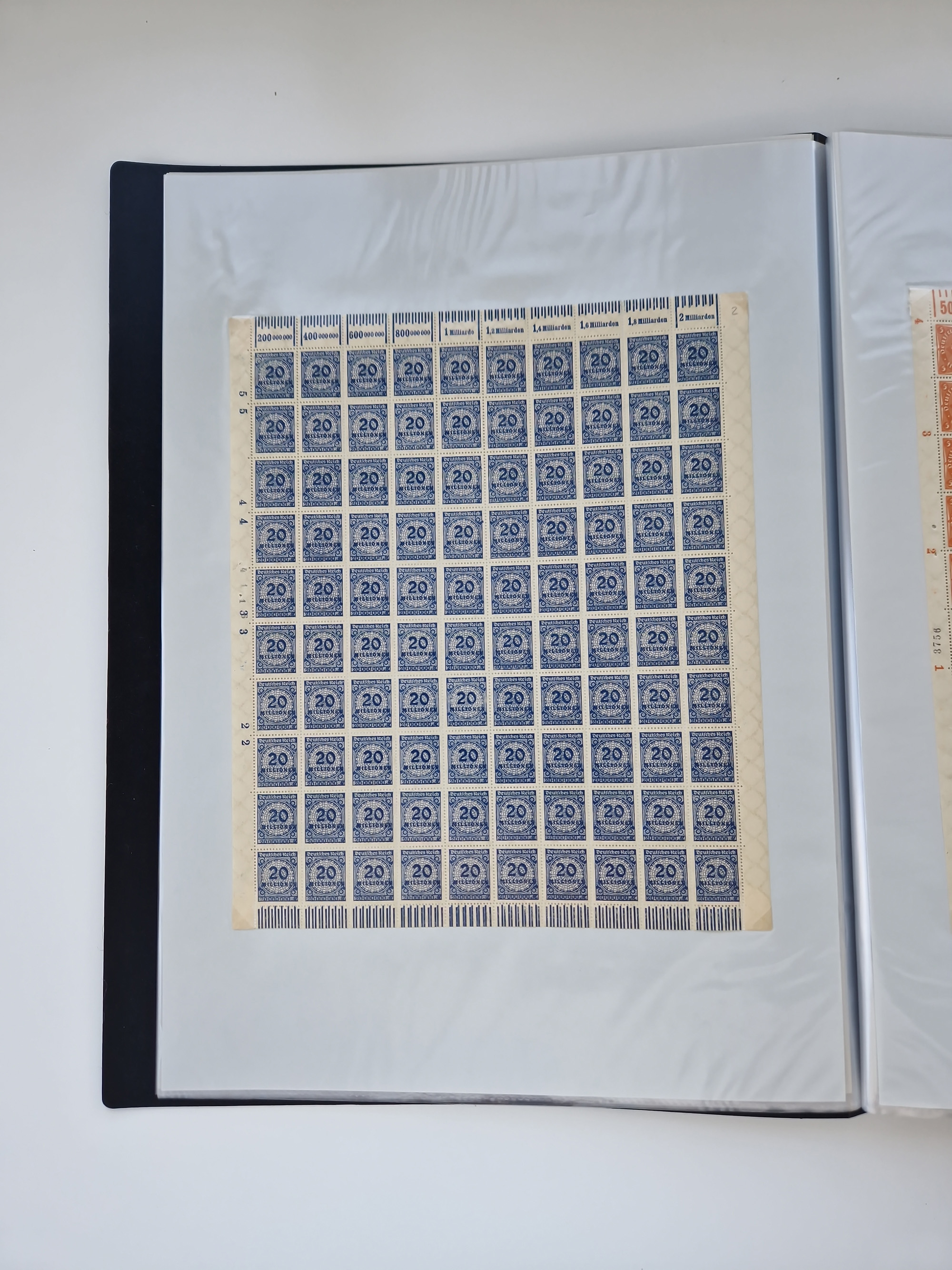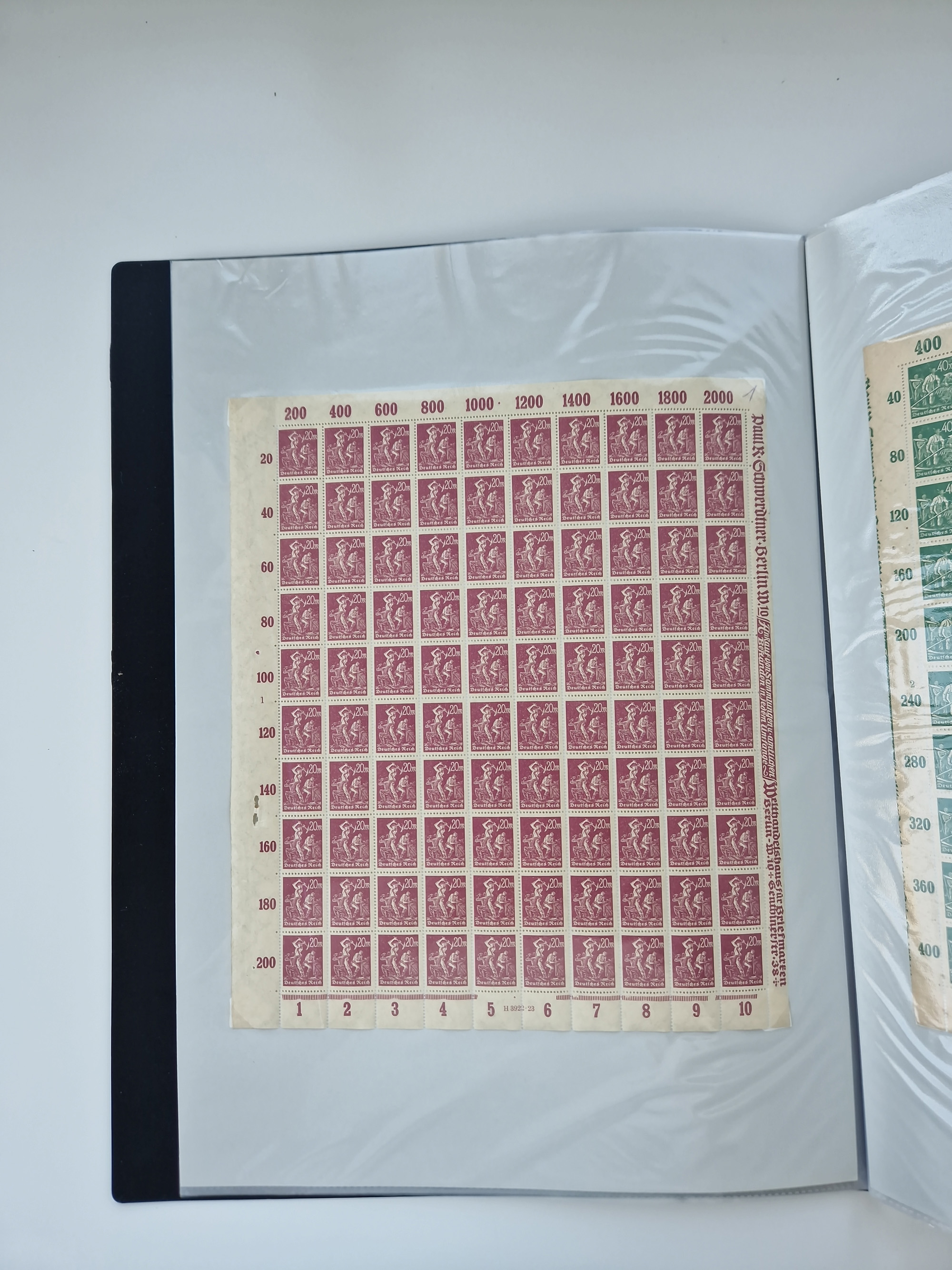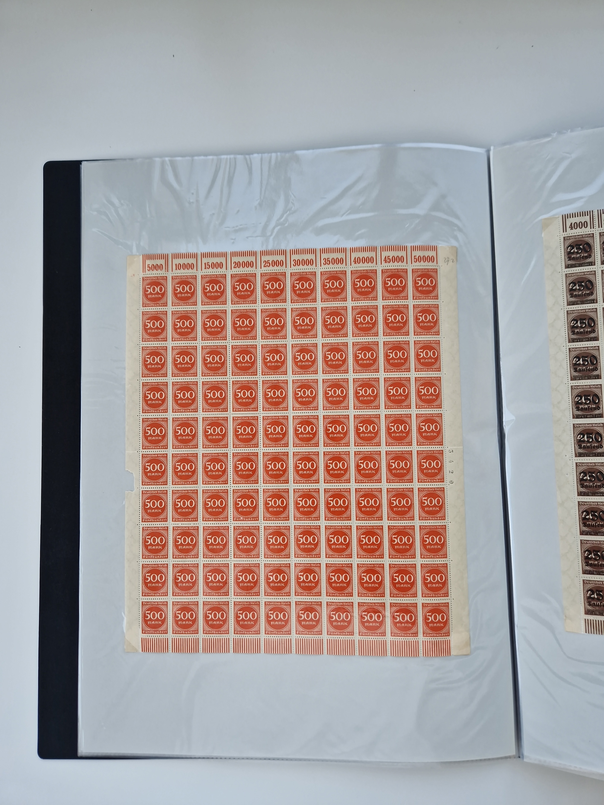 1921/22, postfrischer und ungebrauchter Bestand mit etwas über 200 Bogen und Bogenteilen, dabei Walzen- und Plattenbogen, HAN, Druckereizeichen, Pl.-Nr., auch Wz. Waffeln und Bogentaschen, teils sign. INFLA Berlin, etwas unterschiedliche Erhaltung, in zwei Ordnern