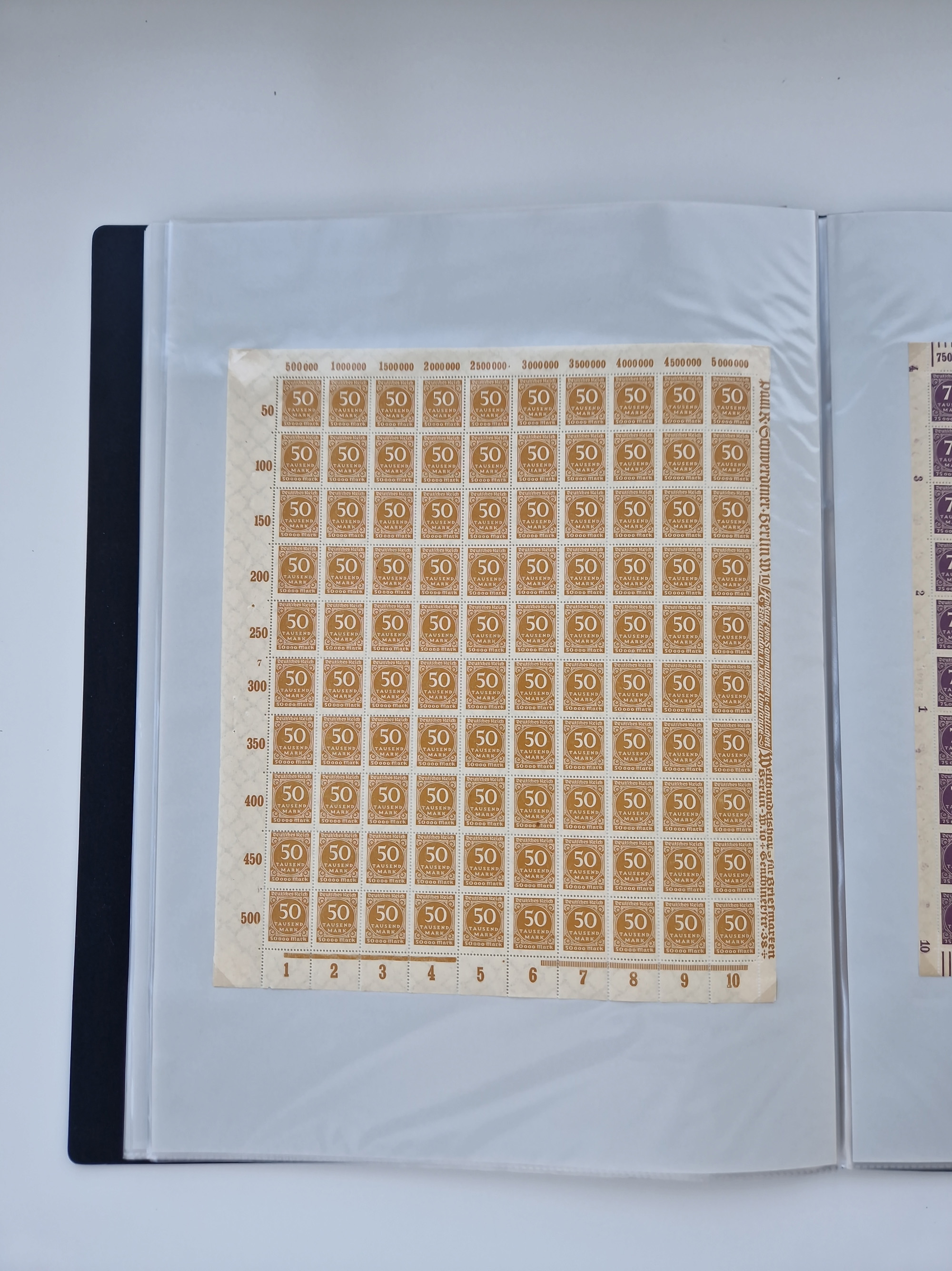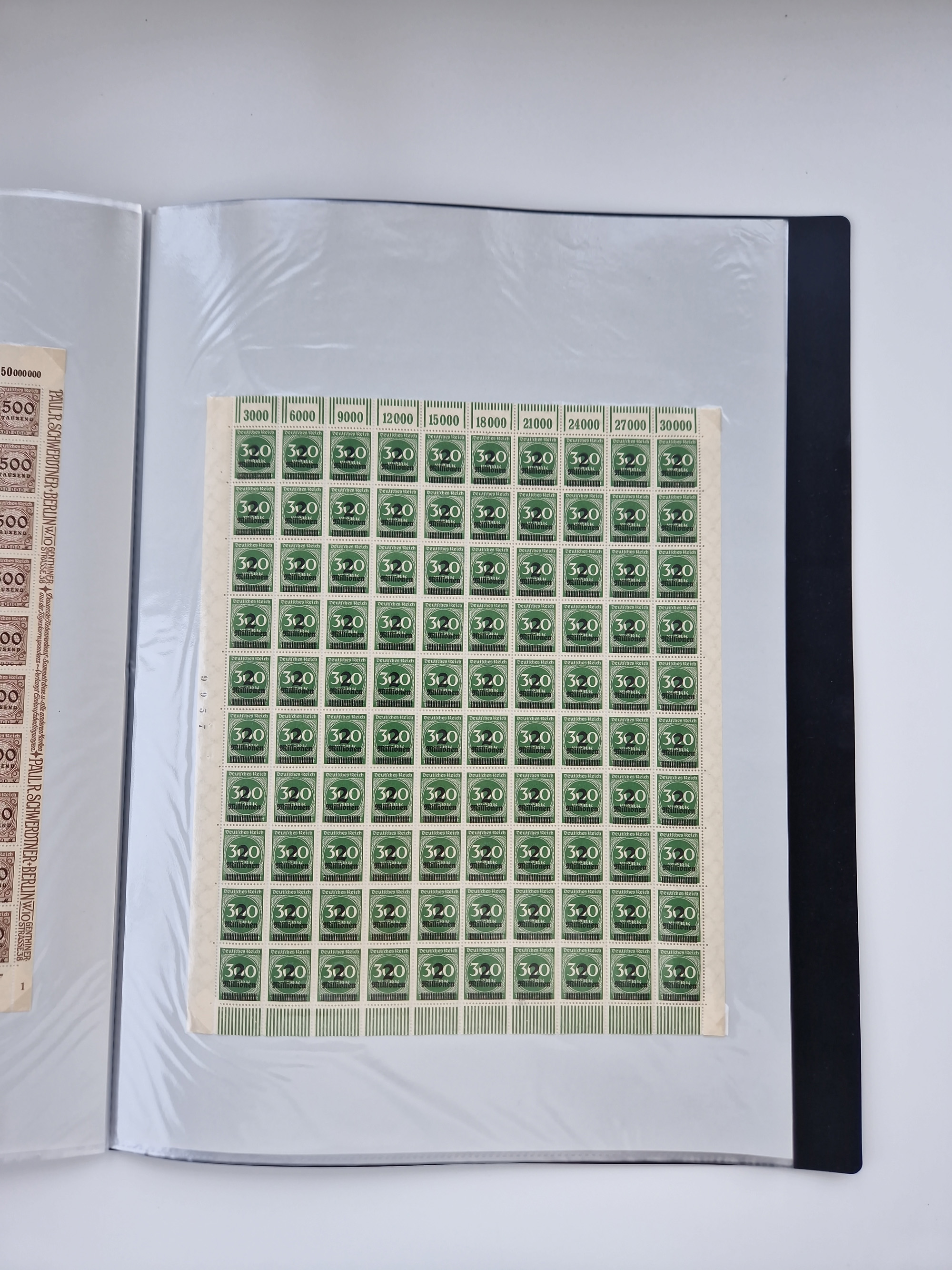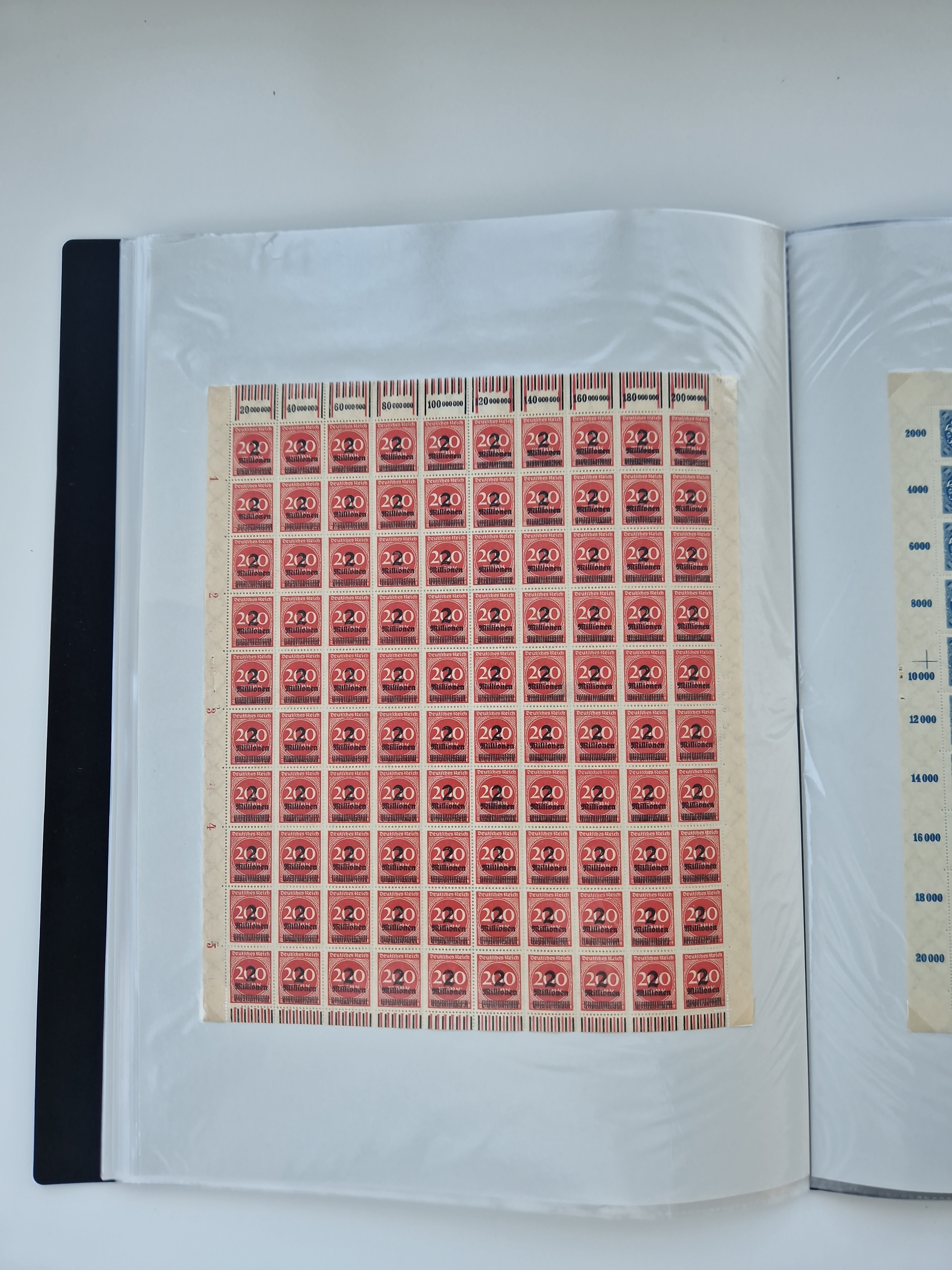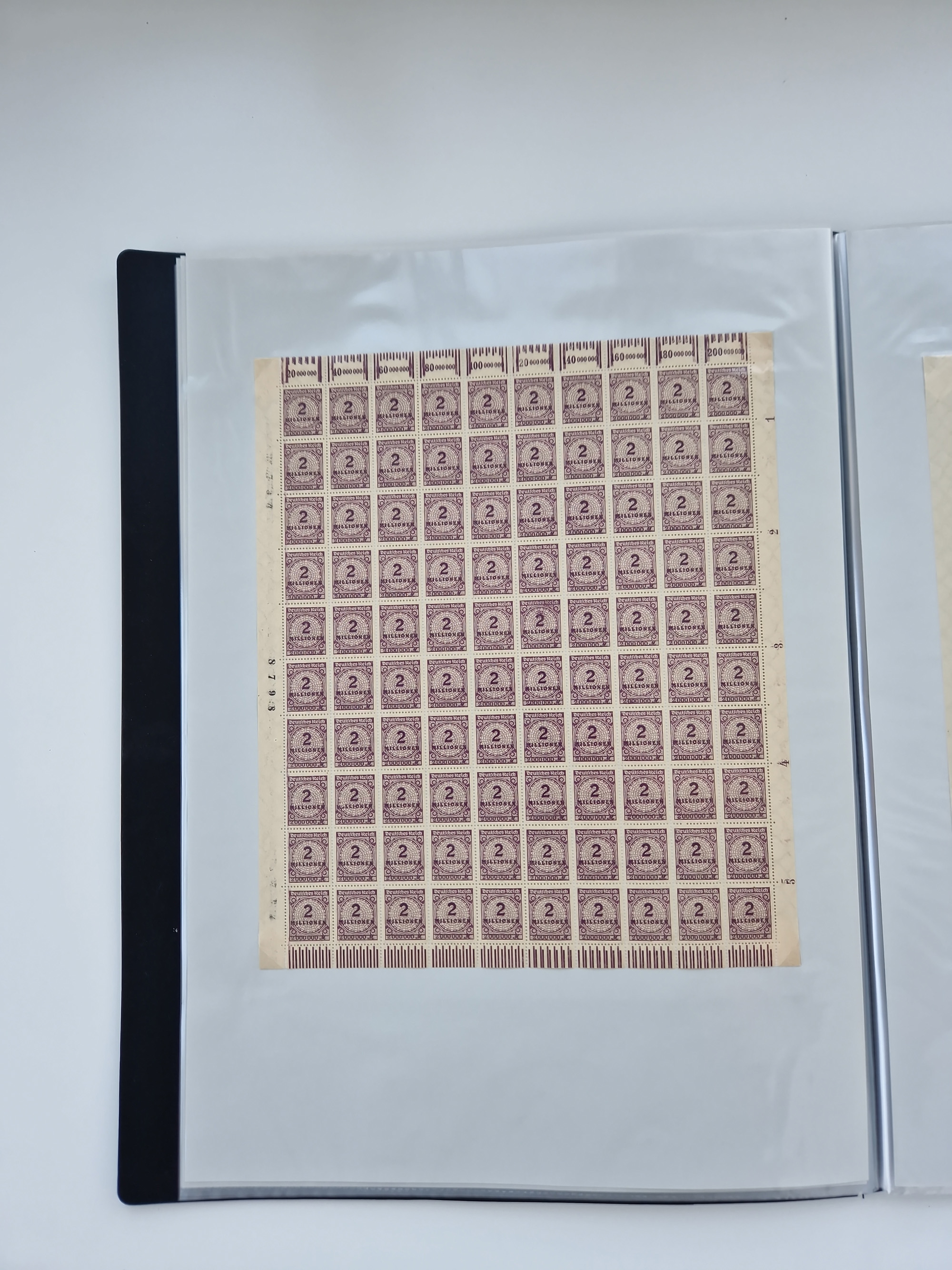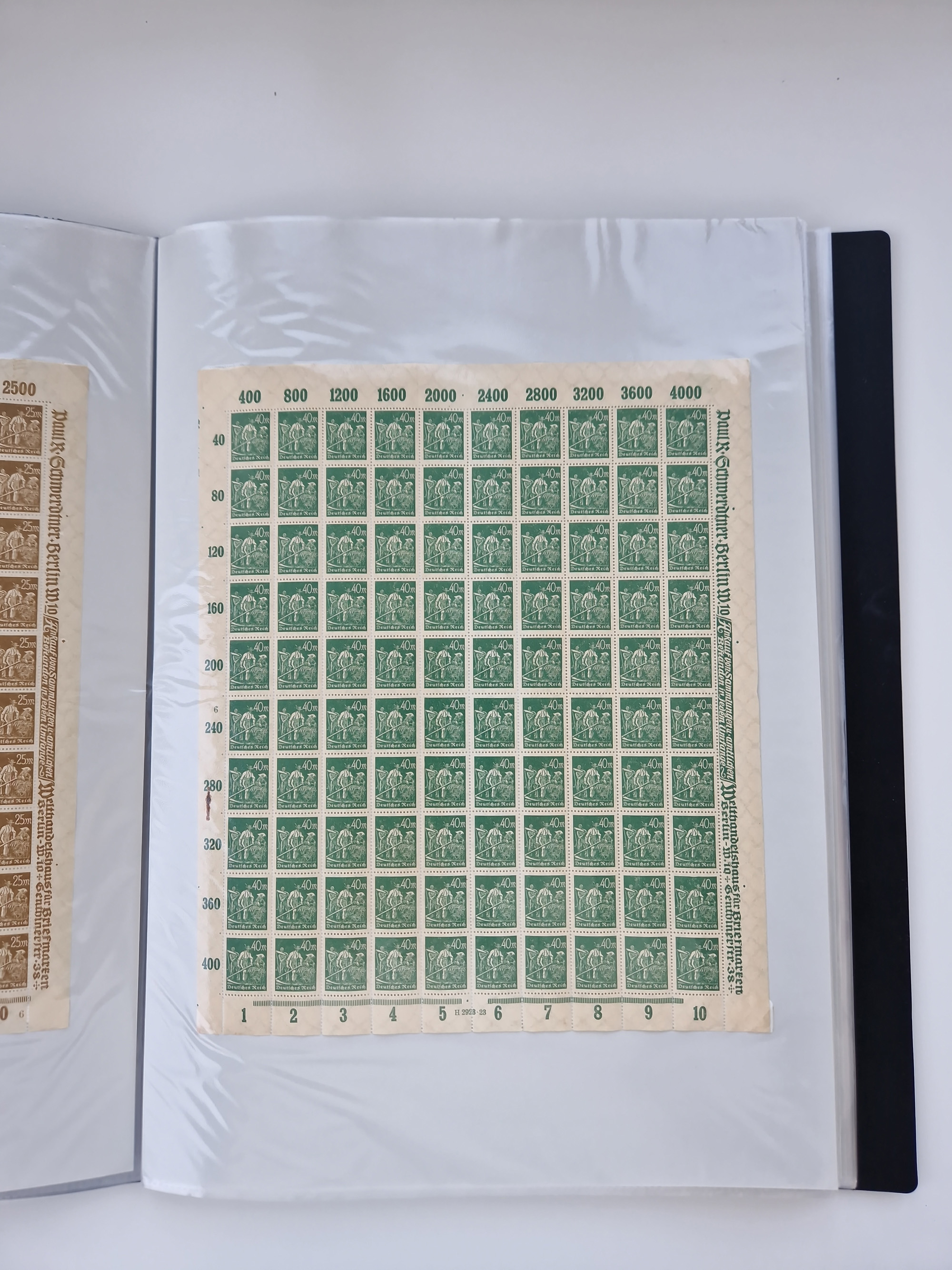 1921/22, postfrischer und ungebrauchter Bestand mit etwas über 200 Bogen und Bogenteilen, dabei Walzen- und Plattenbogen, HAN, Druckereizeichen, Pl.-Nr., auch Wz. Waffeln und Bogentaschen, teils sign. INFLA Berlin, etwas unterschiedliche Erhaltung, in zwei Ordnern