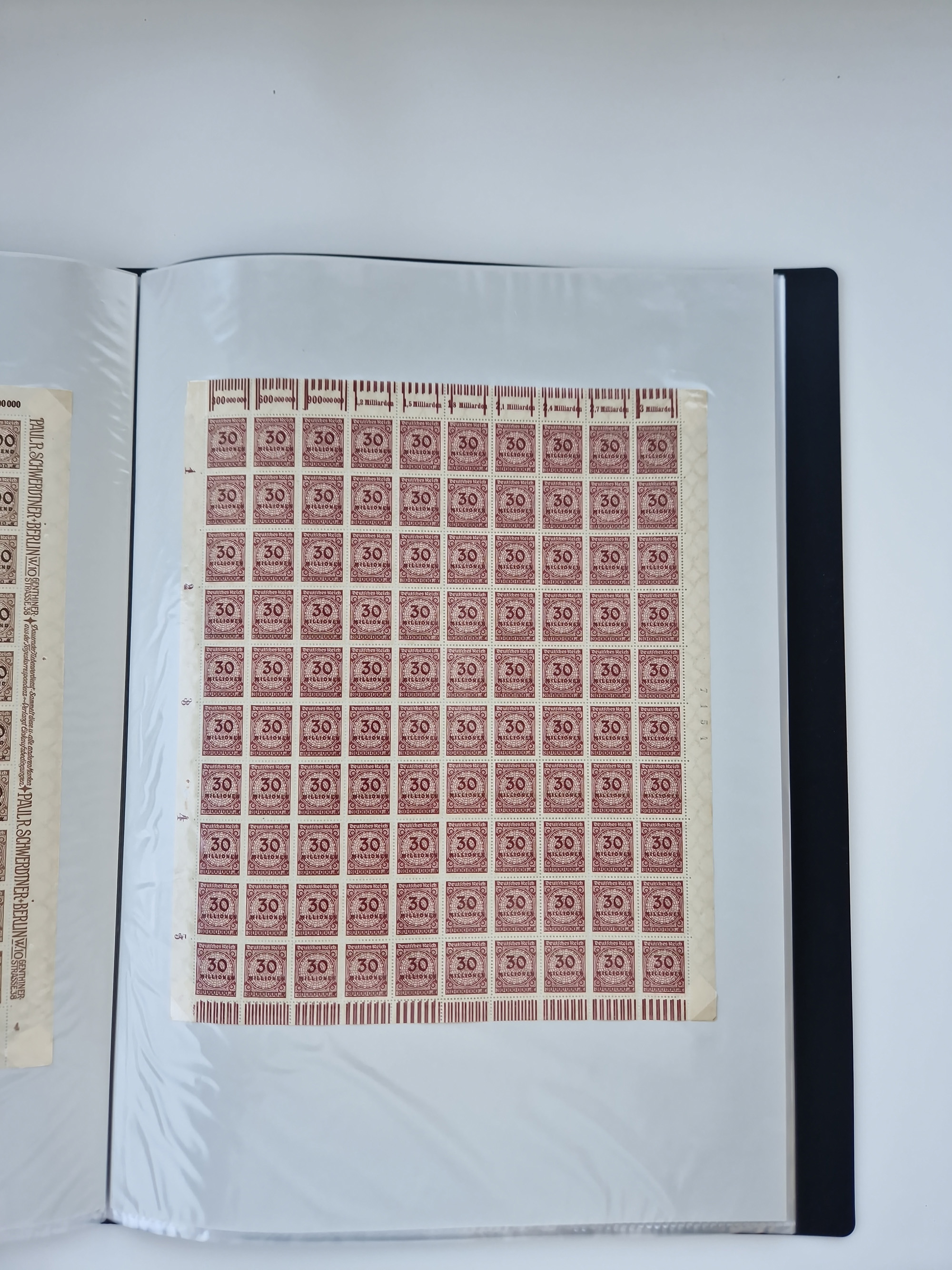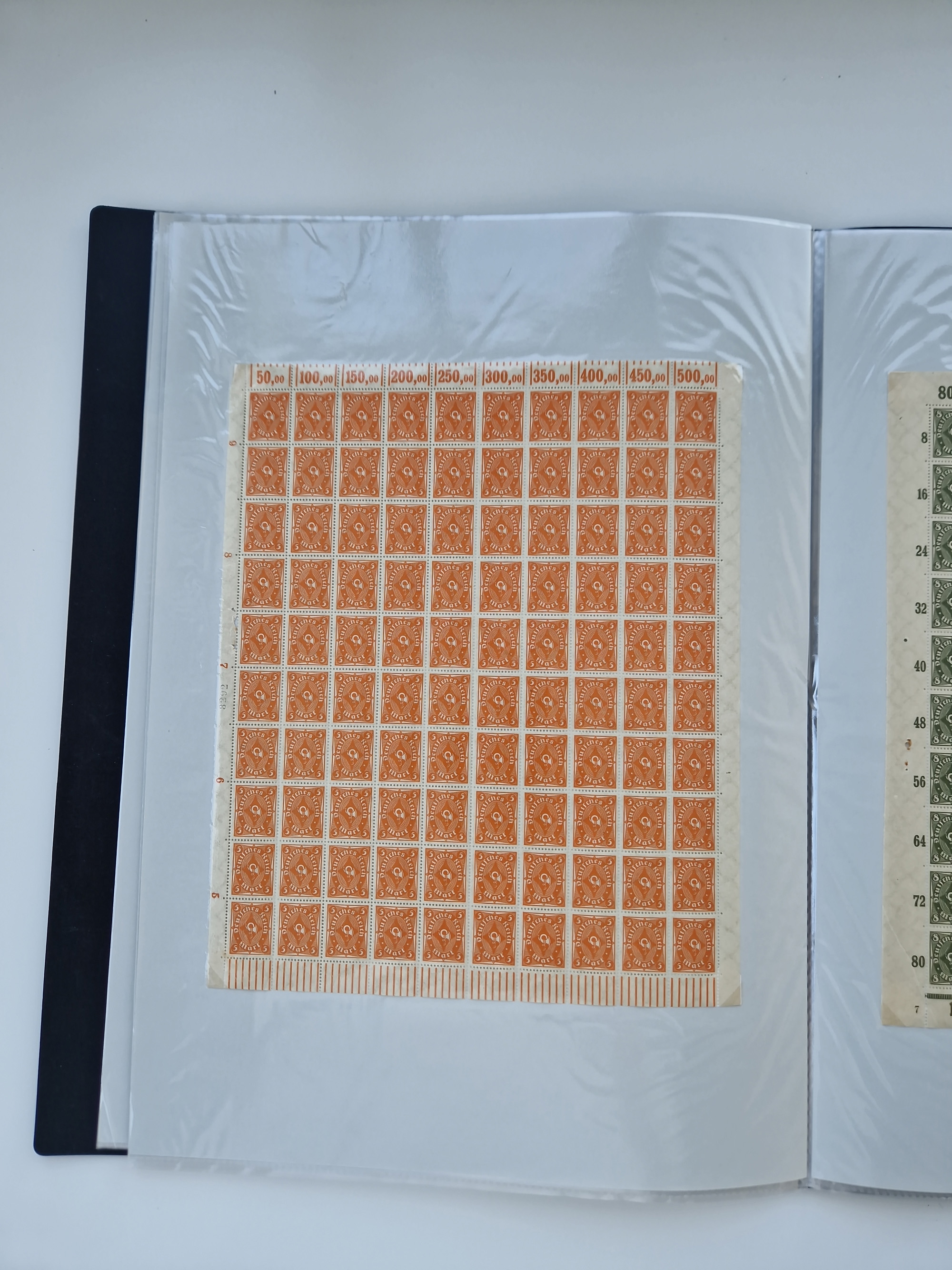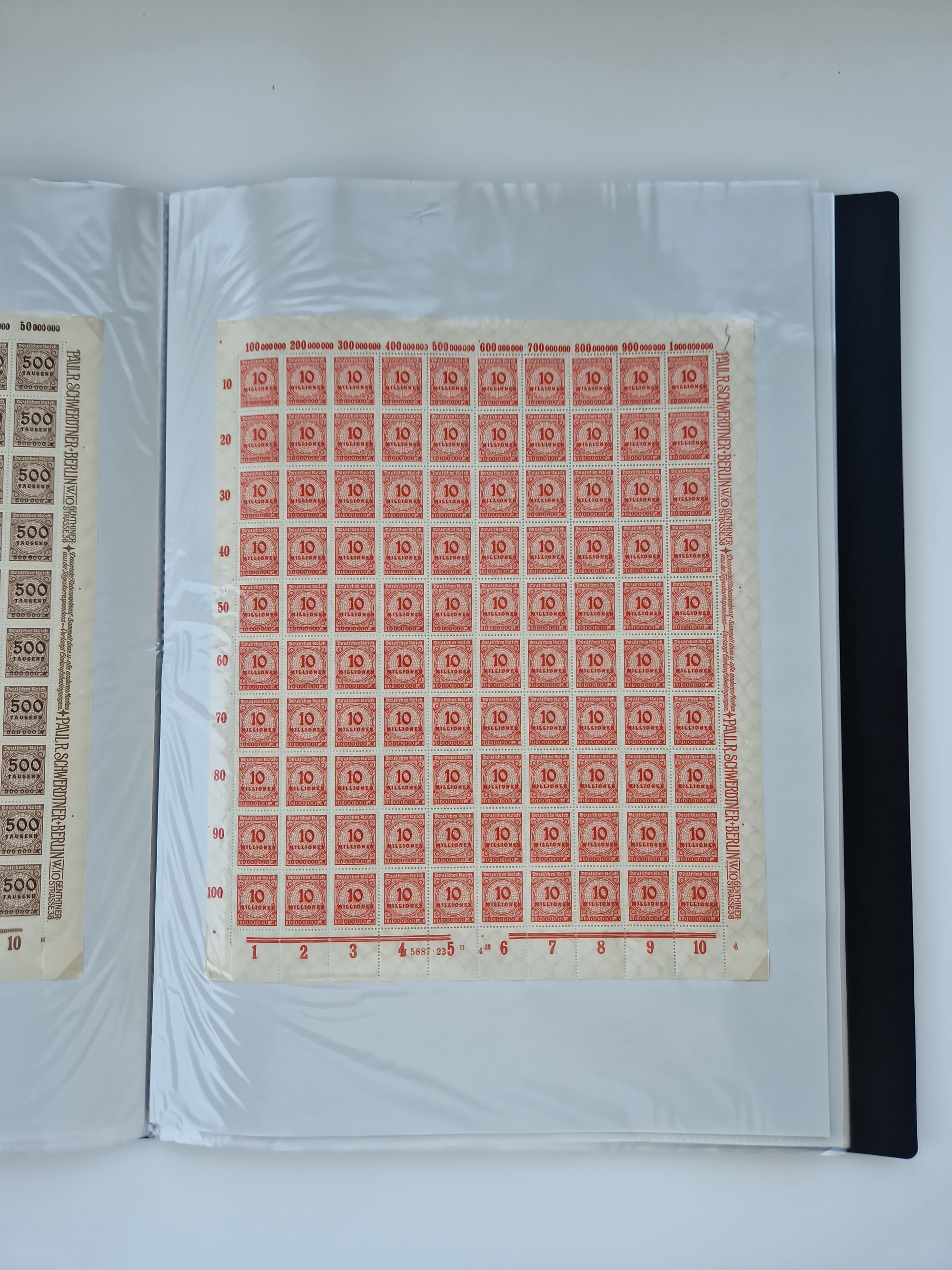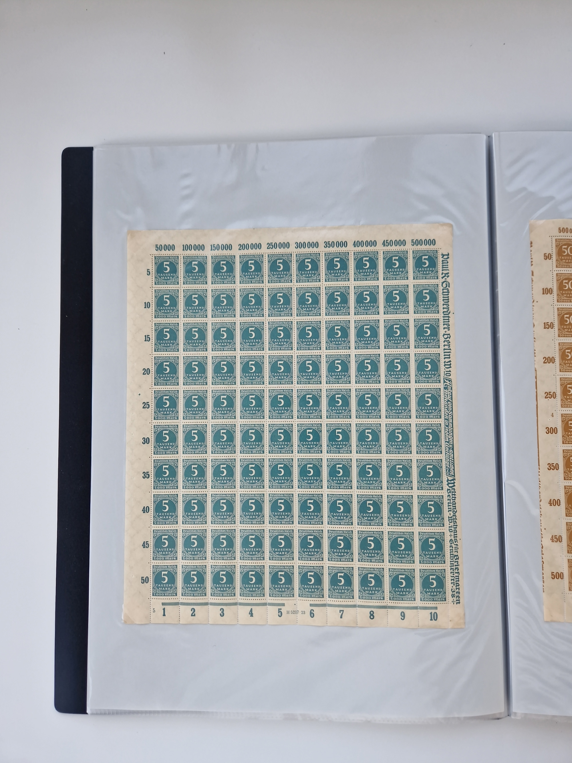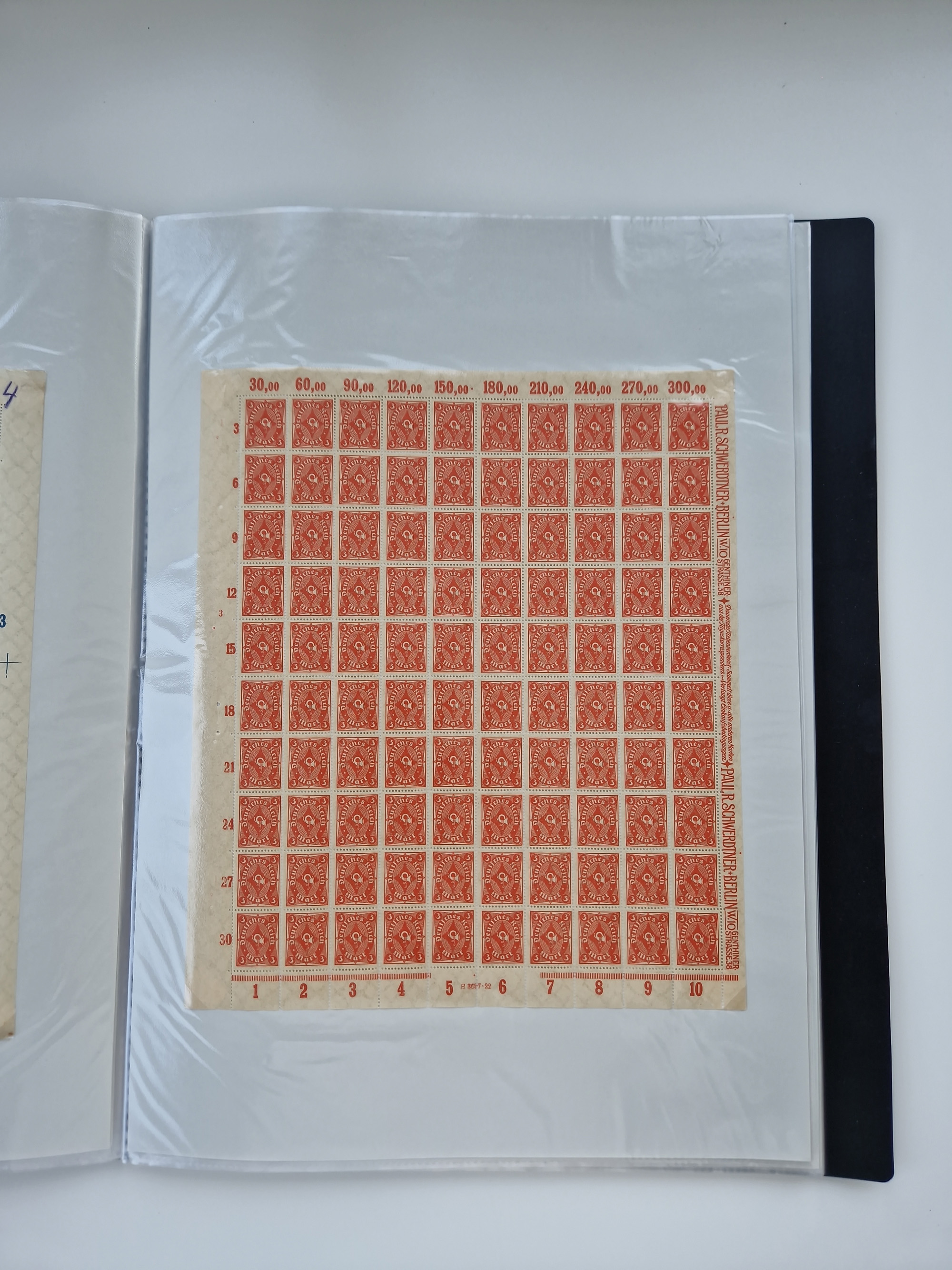 1921/22, postfrischer und ungebrauchter Bestand mit etwas über 200 Bogen und Bogenteilen, dabei Walzen- und Plattenbogen, HAN, Druckereizeichen, Pl.-Nr., auch Wz. Waffeln und Bogentaschen, teils sign. INFLA Berlin, etwas unterschiedliche Erhaltung, in zwei Ordnern