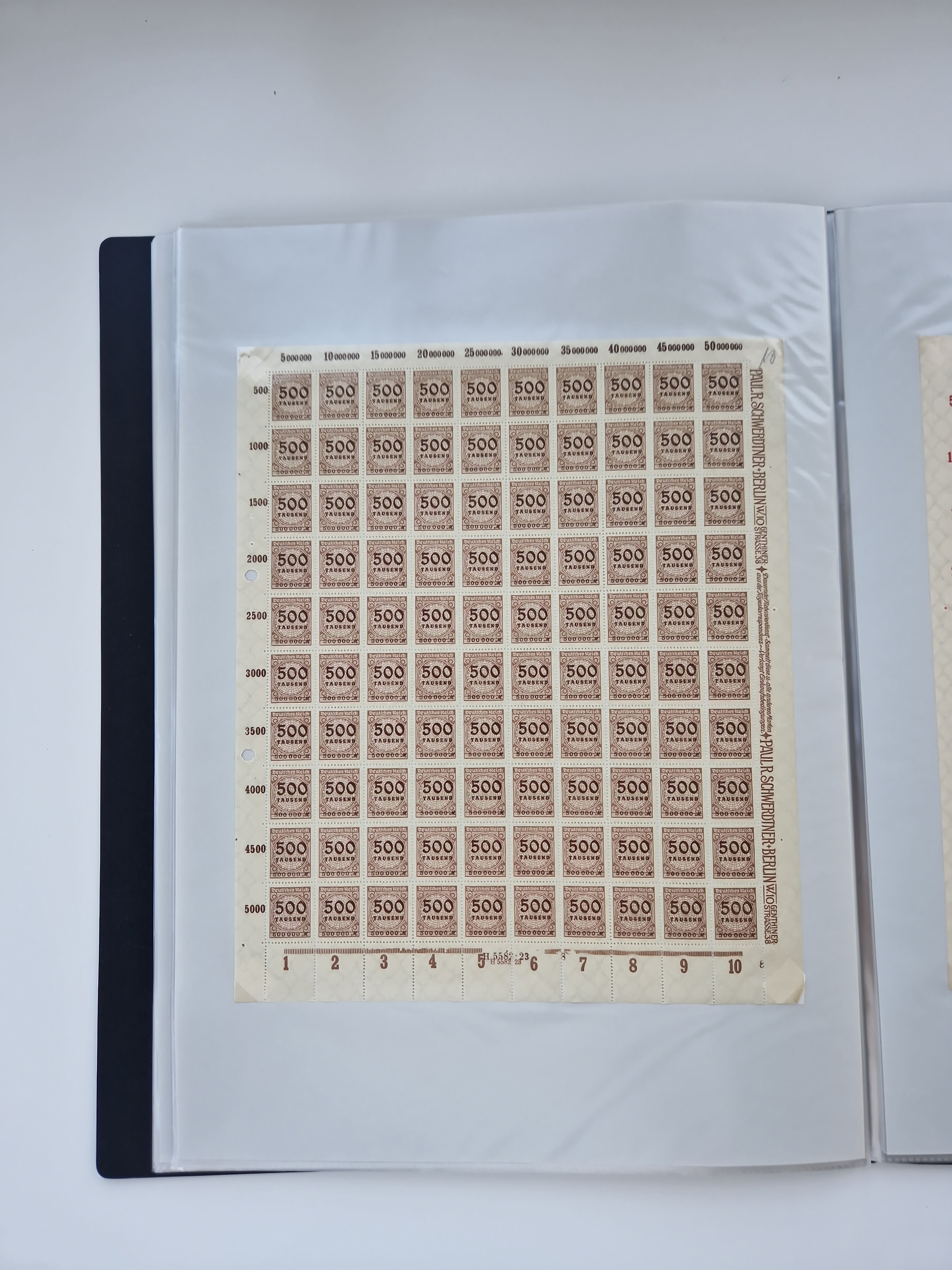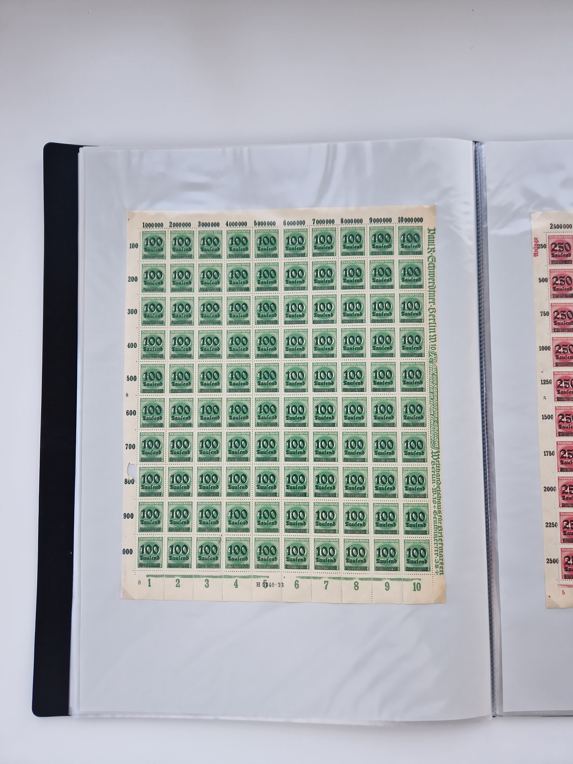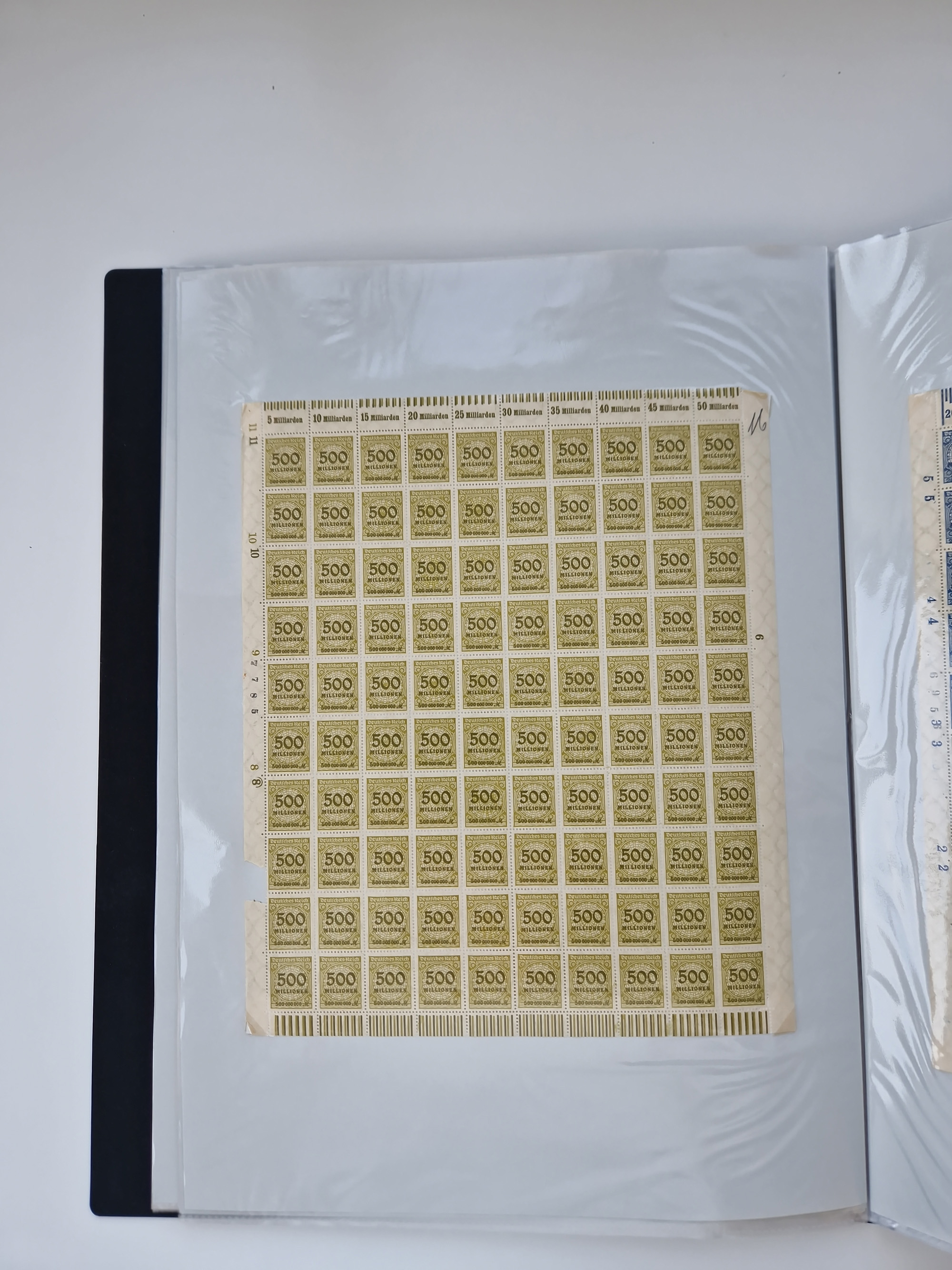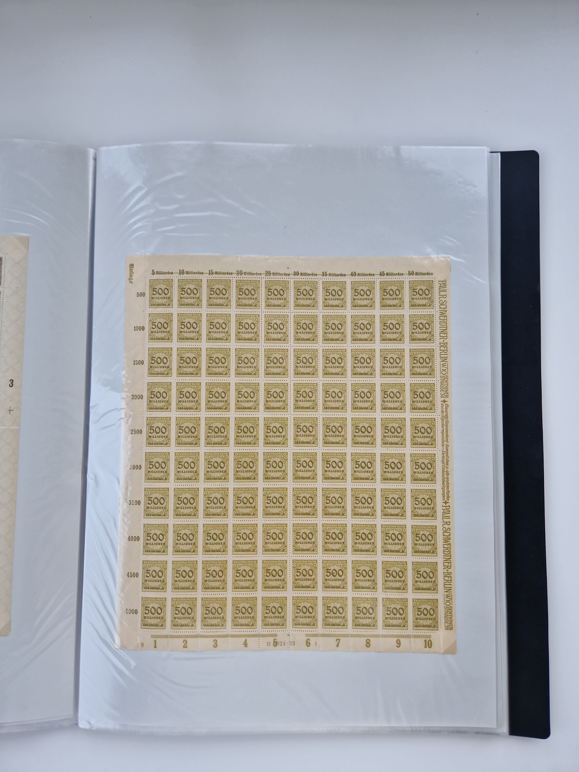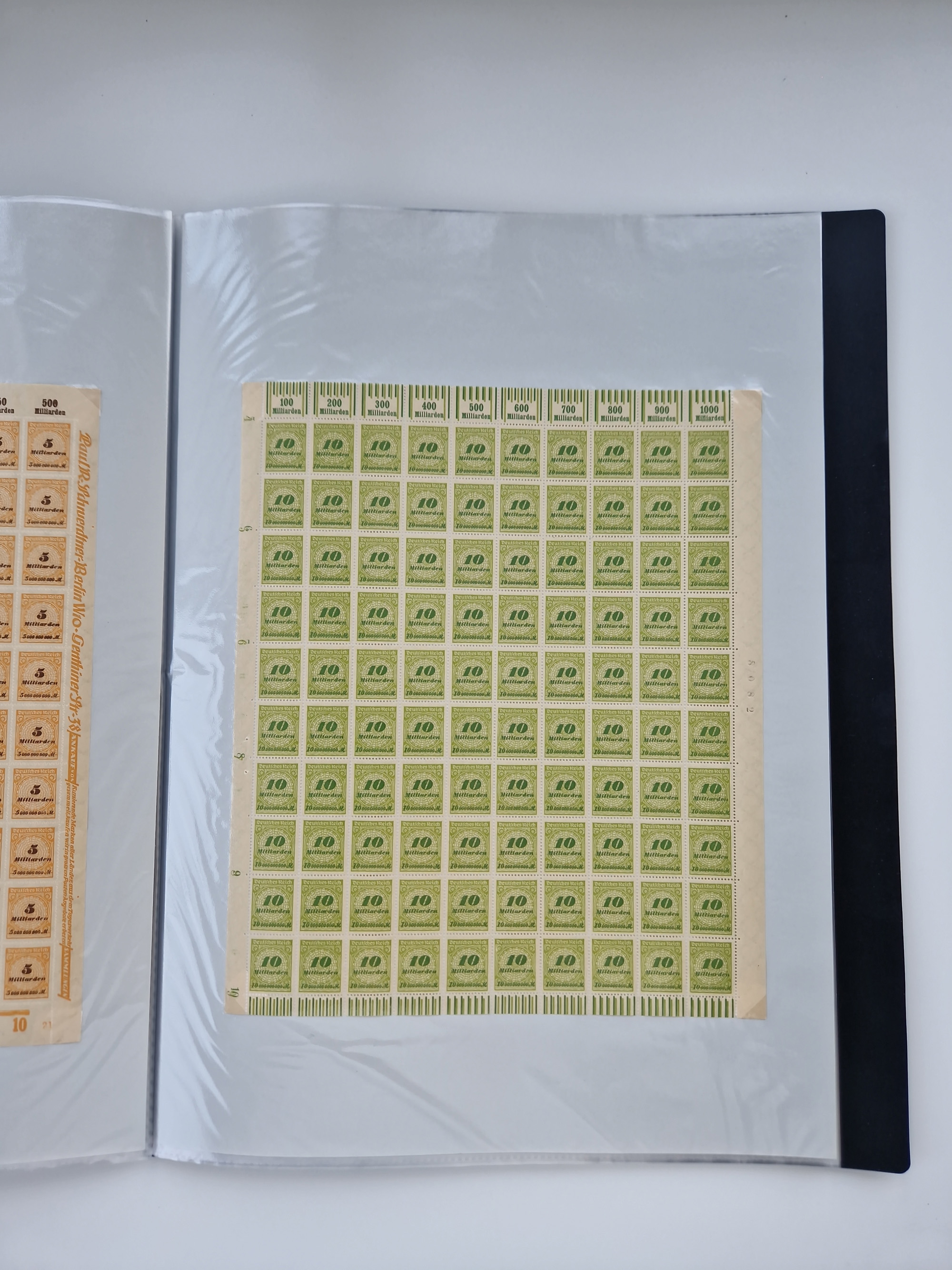 1921/22, postfrischer und ungebrauchter Bestand mit etwas über 200 Bogen und Bogenteilen, dabei Walzen- und Plattenbogen, HAN, Druckereizeichen, Pl.-Nr., auch Wz. Waffeln und Bogentaschen, teils sign. INFLA Berlin, etwas unterschiedliche Erhaltung, in zwei Ordnern