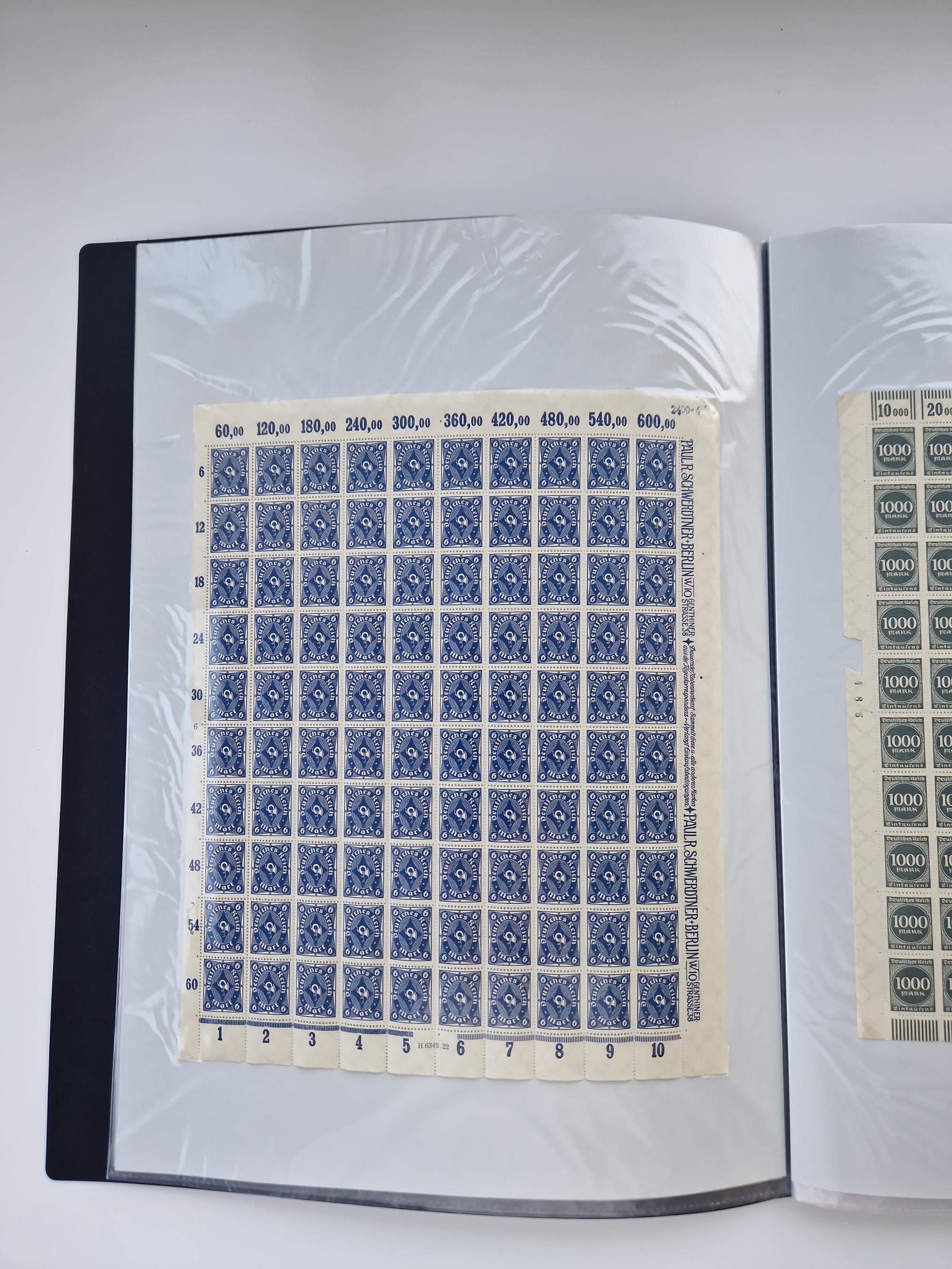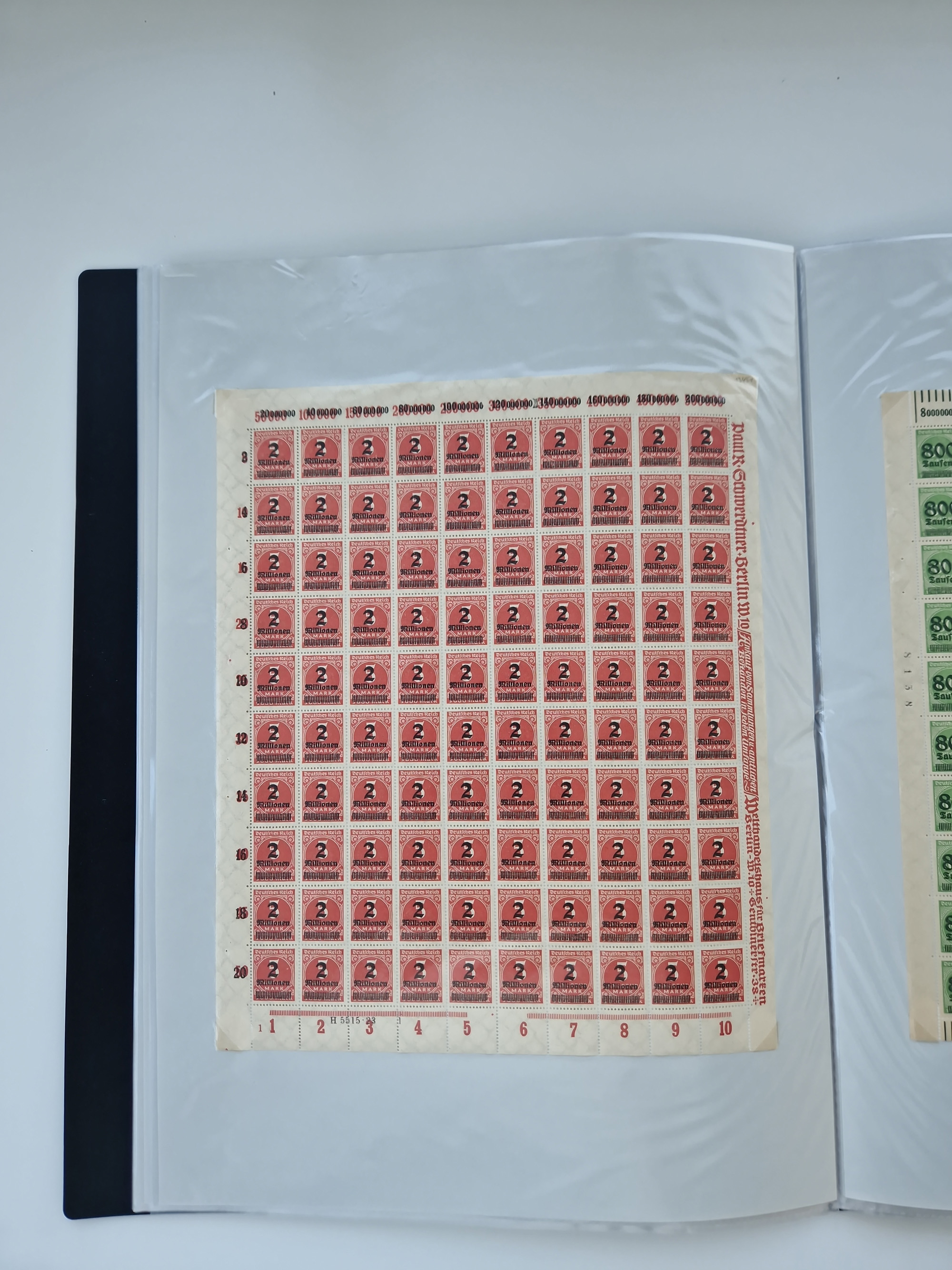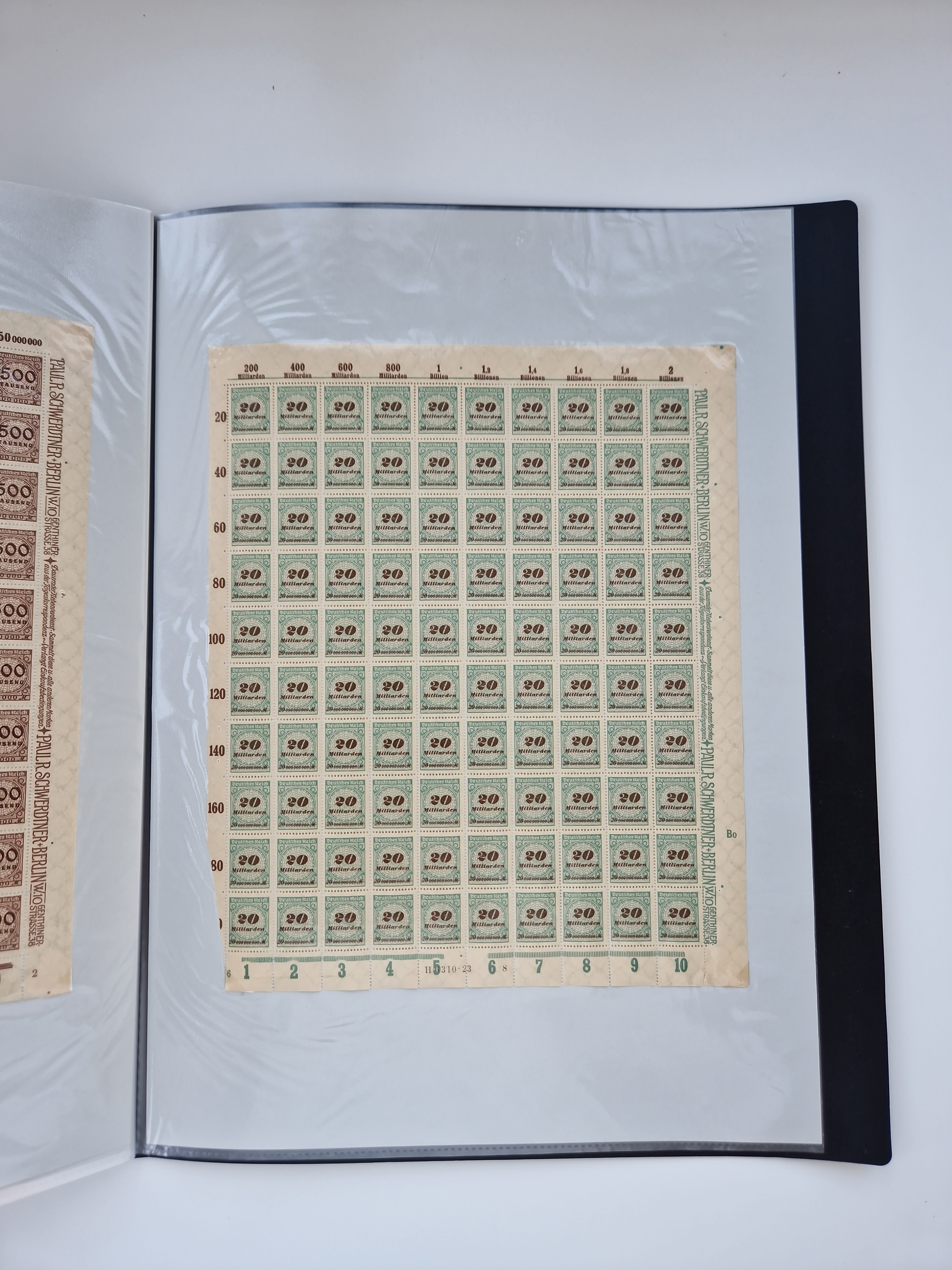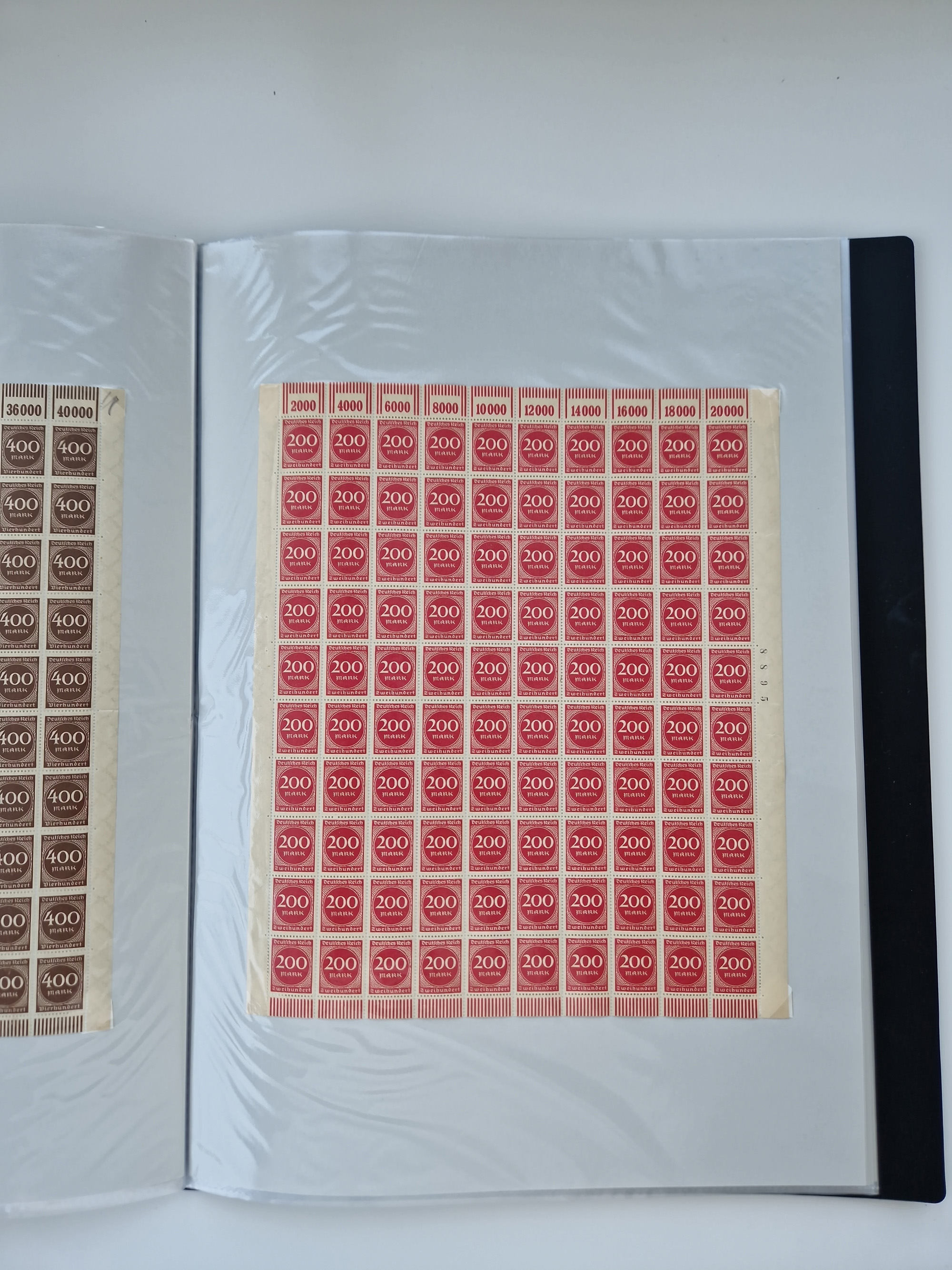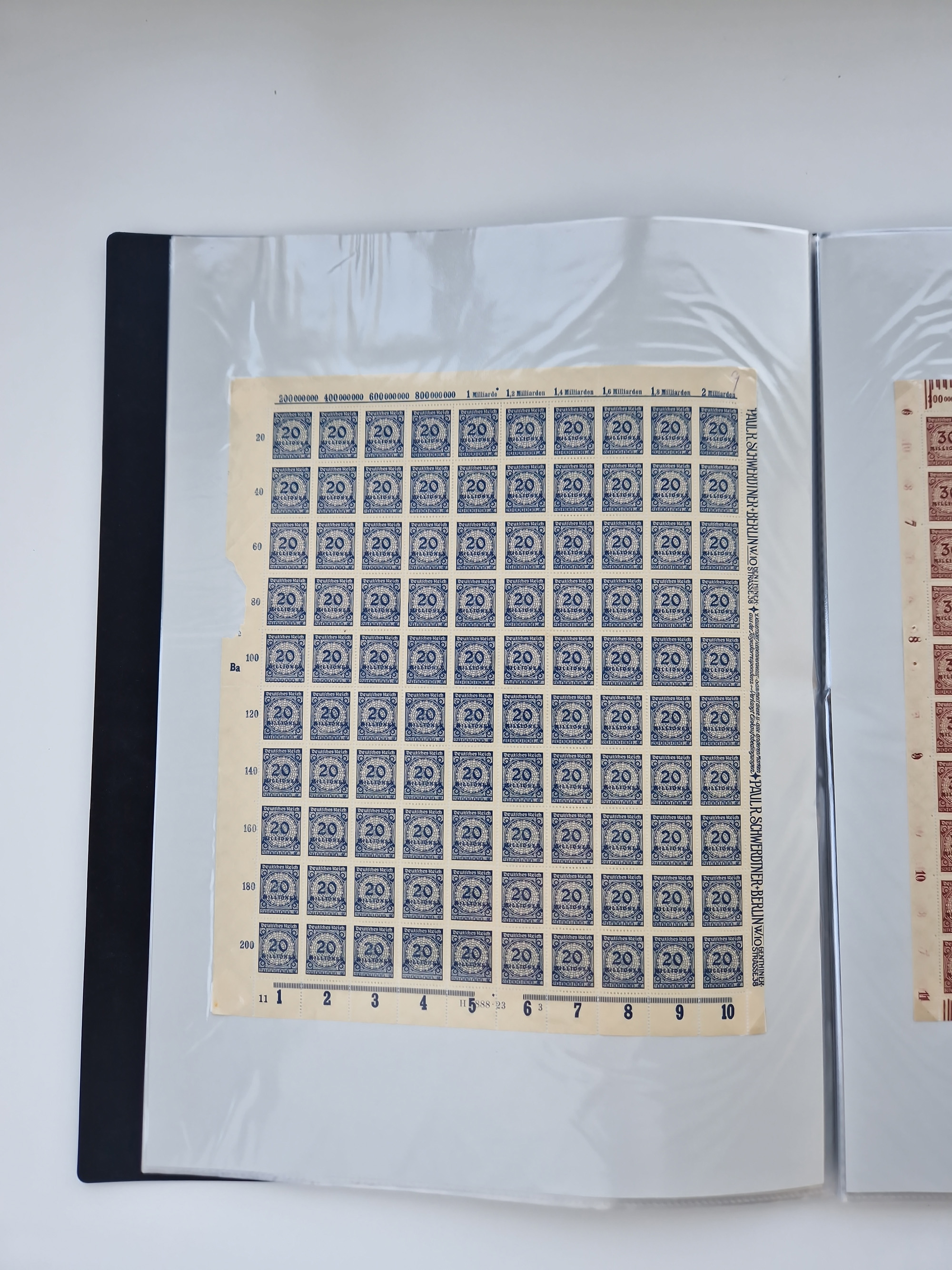 1921/22, postfrischer und ungebrauchter Bestand mit etwas über 200 Bogen und Bogenteilen, dabei Walzen- und Plattenbogen, HAN, Druckereizeichen, Pl.-Nr., auch Wz. Waffeln und Bogentaschen, teils sign. INFLA Berlin, etwas unterschiedliche Erhaltung, in zwei Ordnern