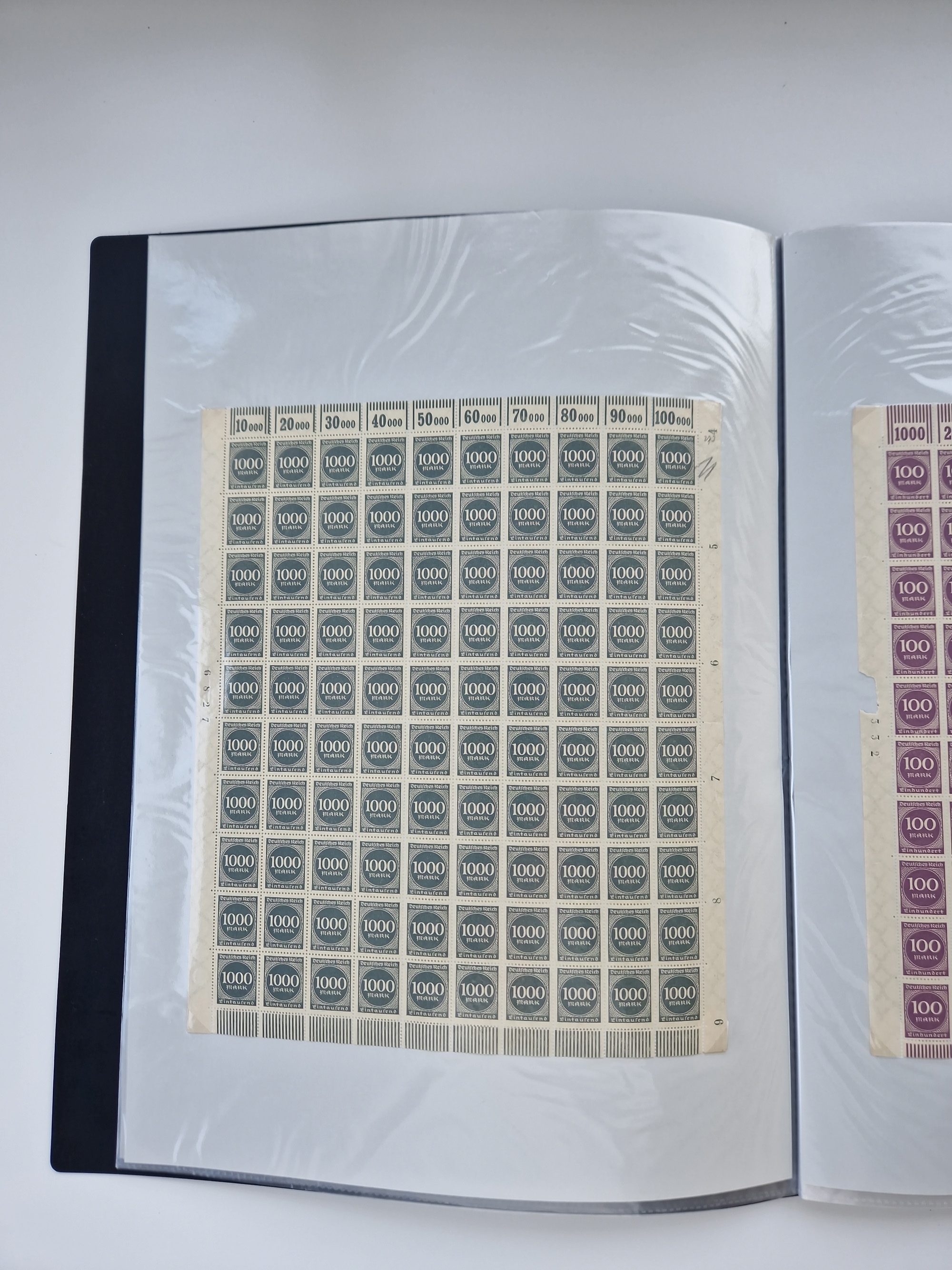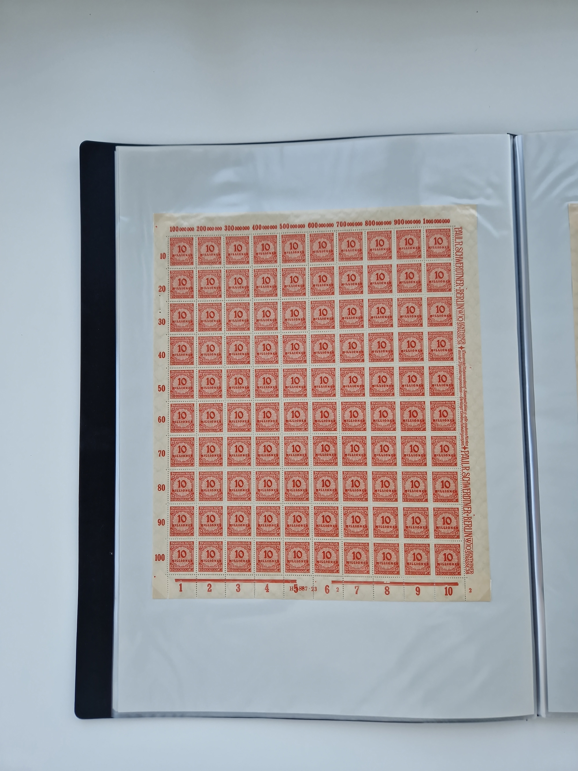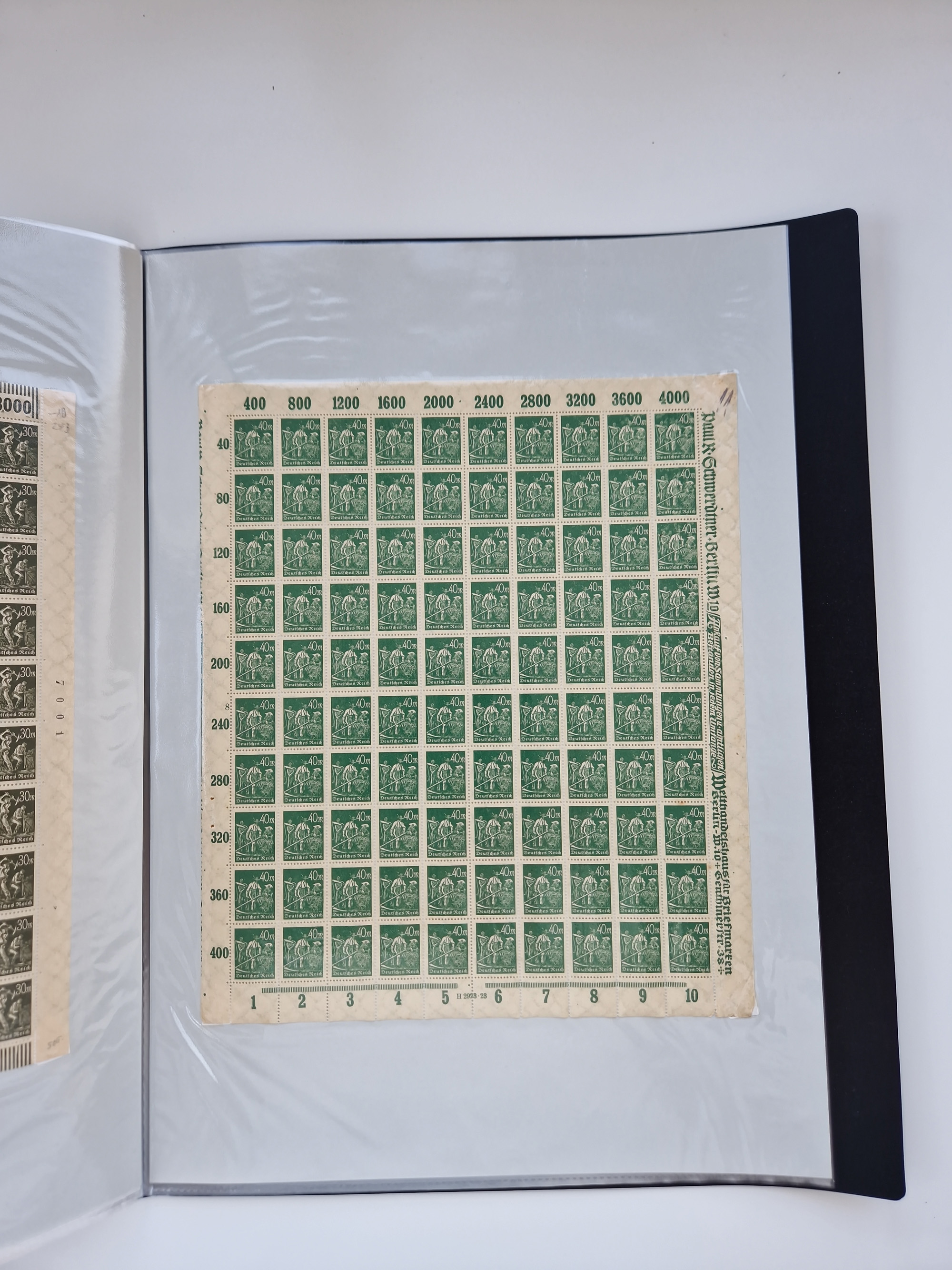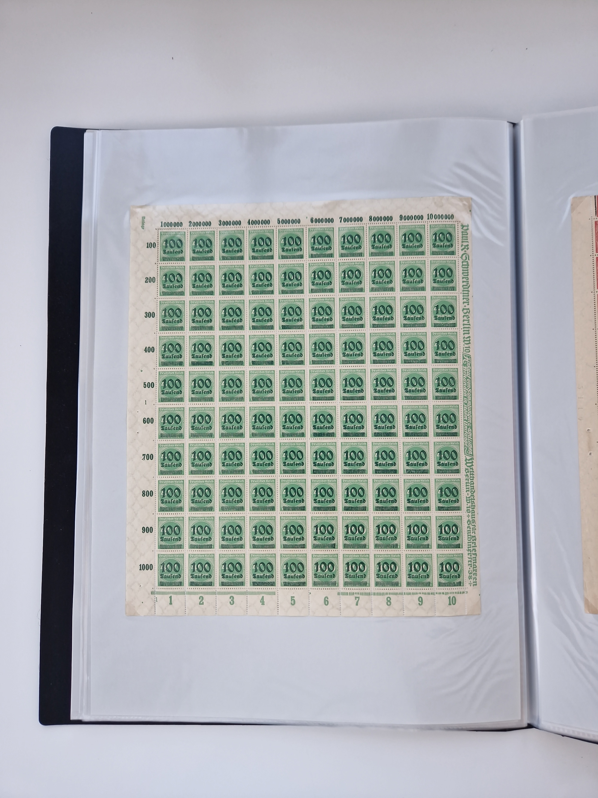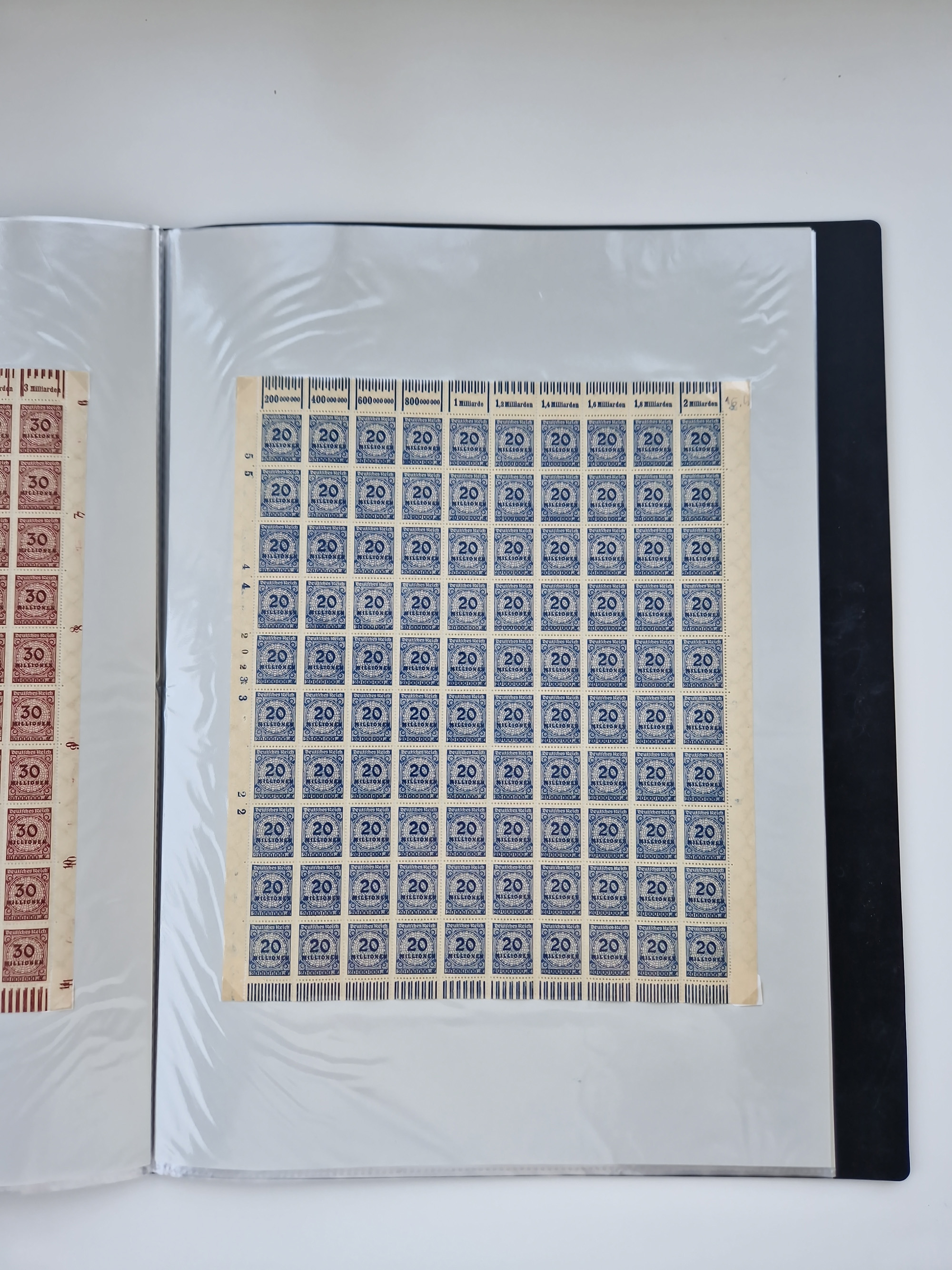 1921/22, postfrischer und ungebrauchter Bestand mit etwas über 200 Bogen und Bogenteilen, dabei Walzen- und Plattenbogen, HAN, Druckereizeichen, Pl.-Nr., auch Wz. Waffeln und Bogentaschen, teils sign. INFLA Berlin, etwas unterschiedliche Erhaltung, in zwei Ordnern