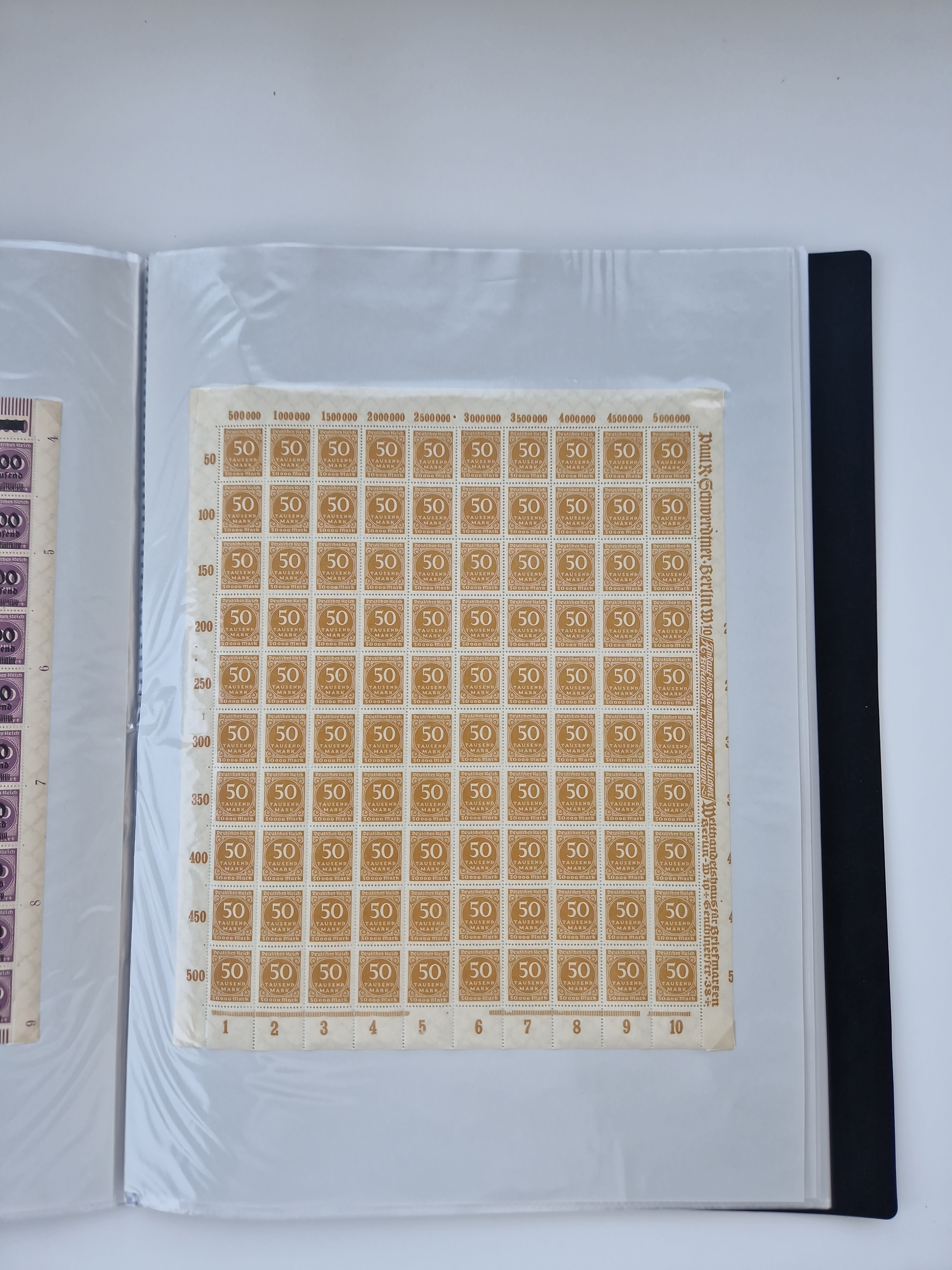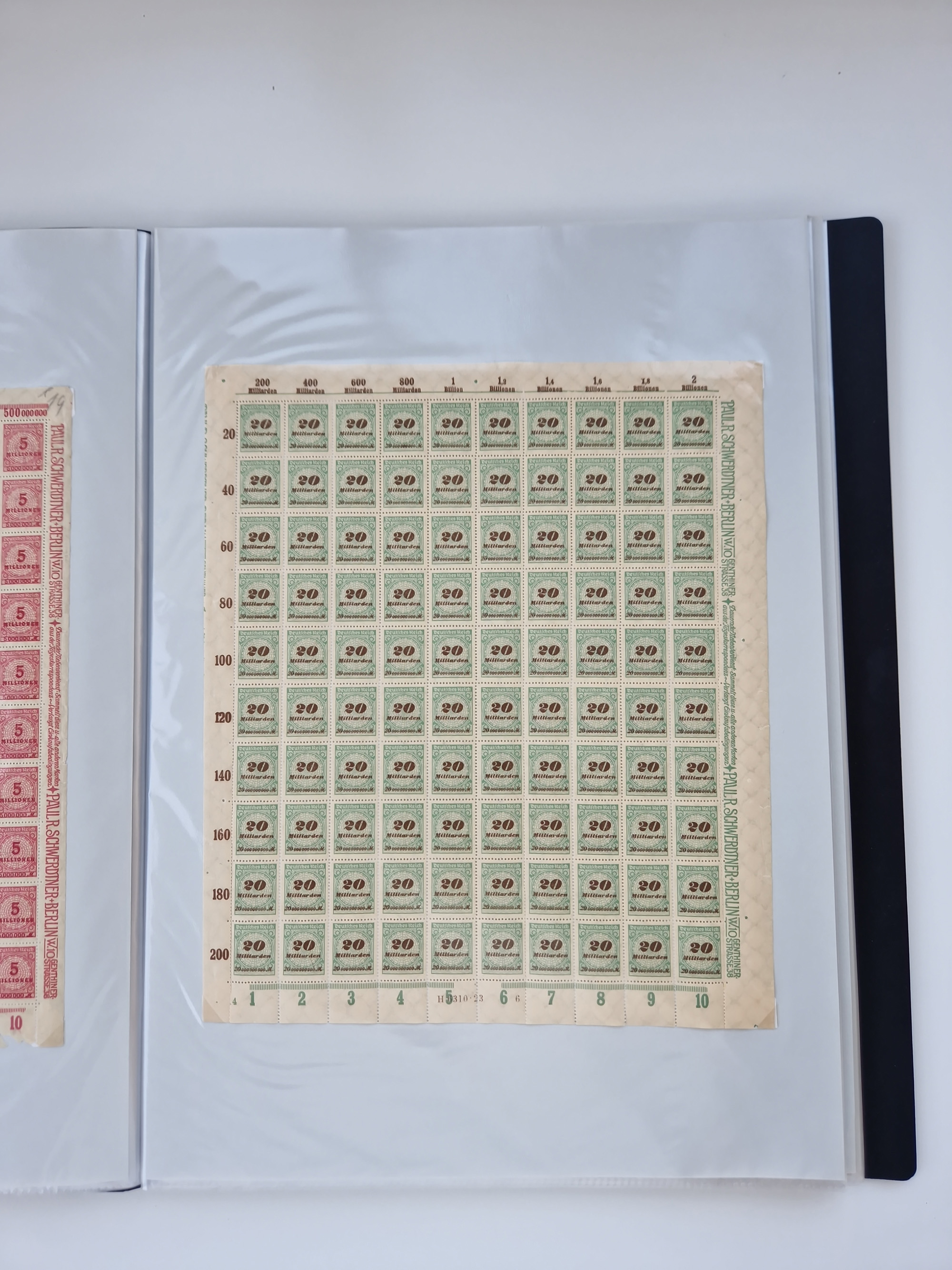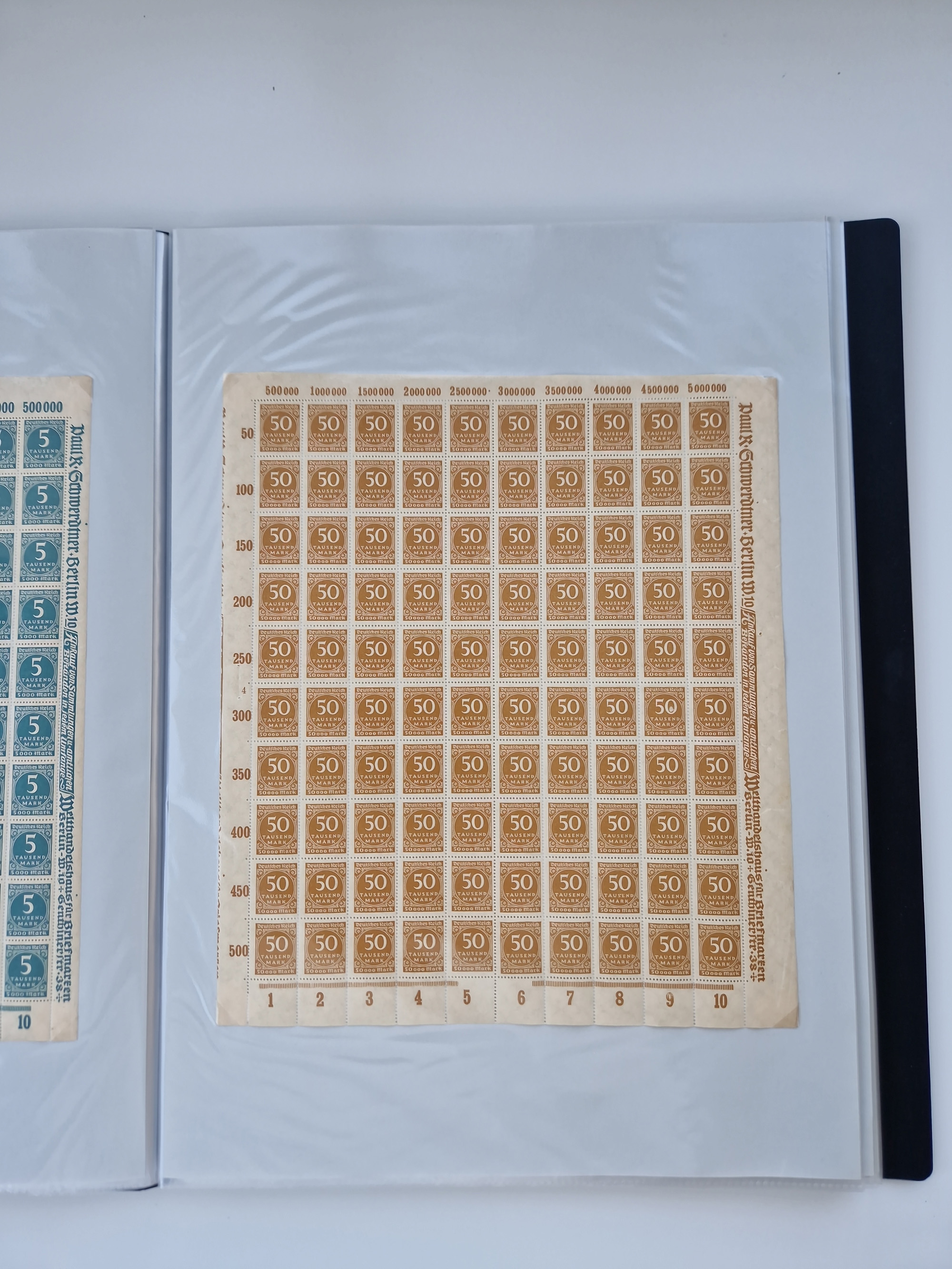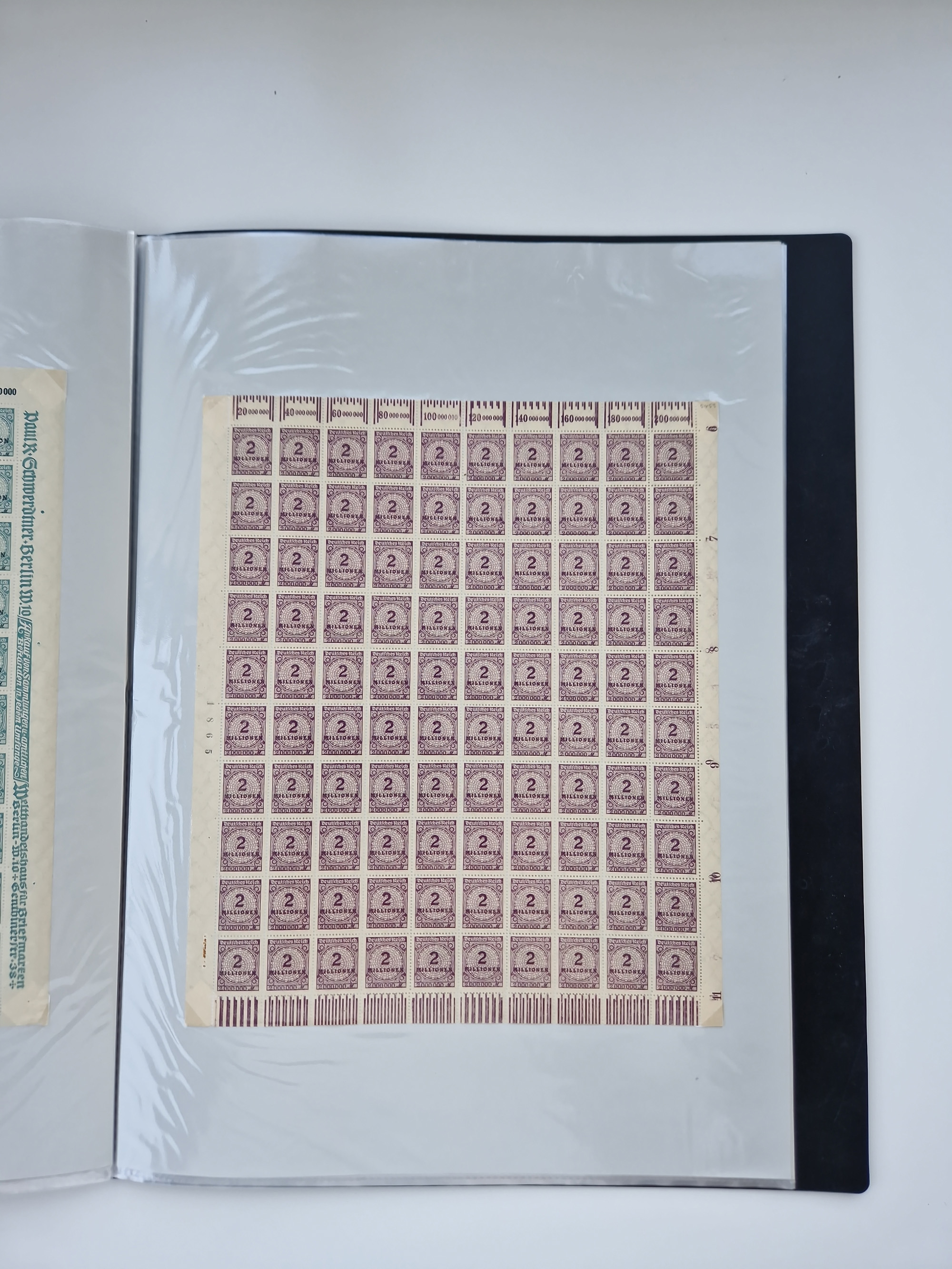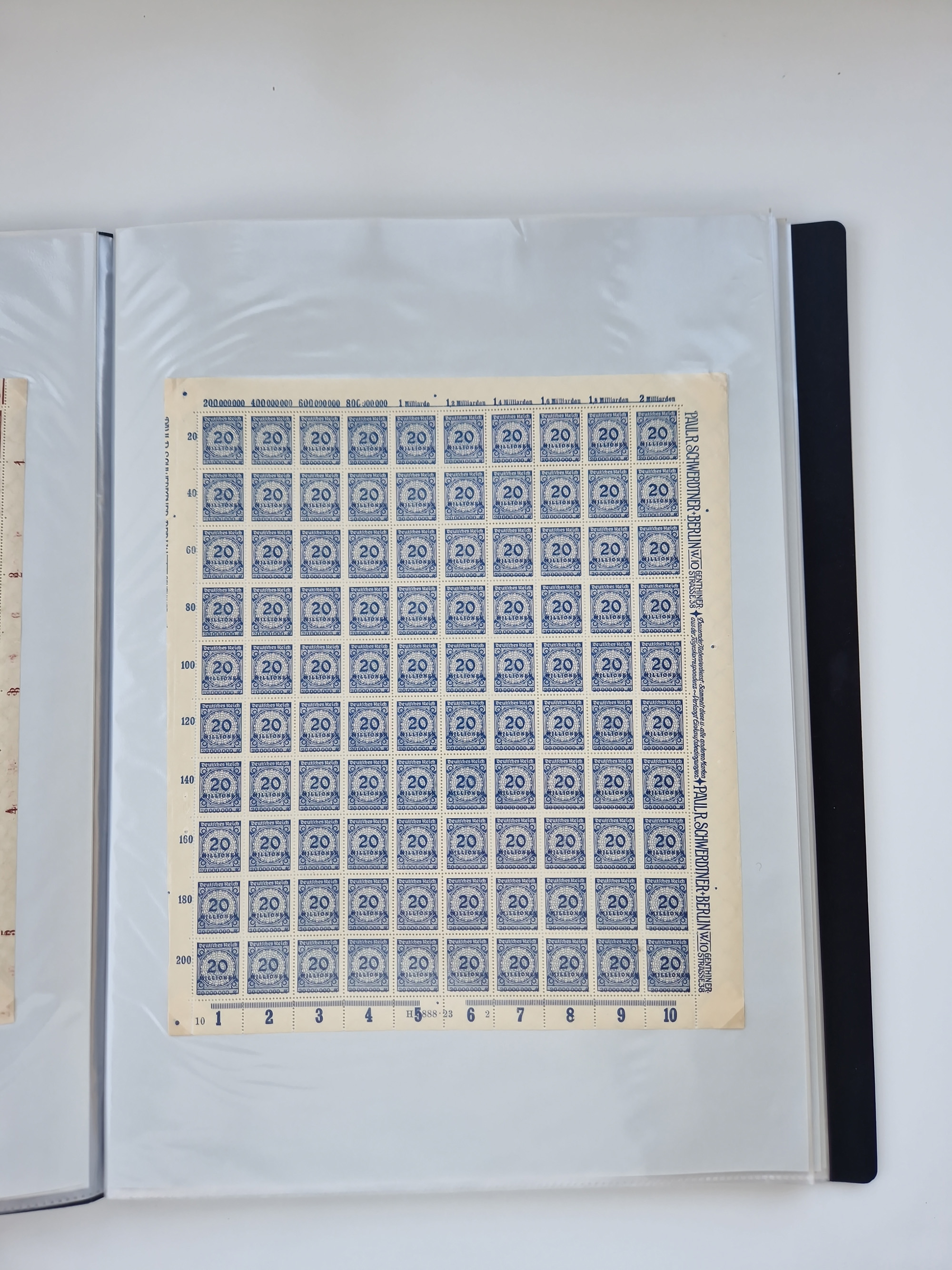 1921/22, postfrischer und ungebrauchter Bestand mit etwas über 200 Bogen und Bogenteilen, dabei Walzen- und Plattenbogen, HAN, Druckereizeichen, Pl.-Nr., auch Wz. Waffeln und Bogentaschen, teils sign. INFLA Berlin, etwas unterschiedliche Erhaltung, in zwei Ordnern