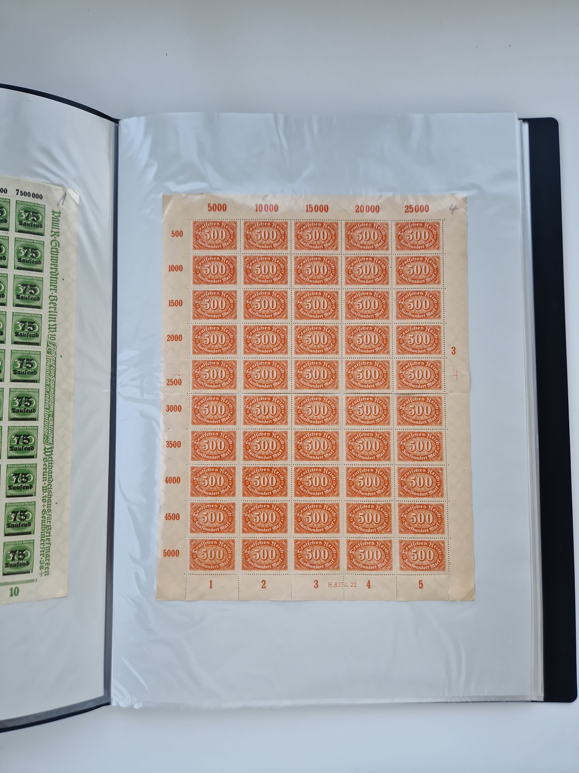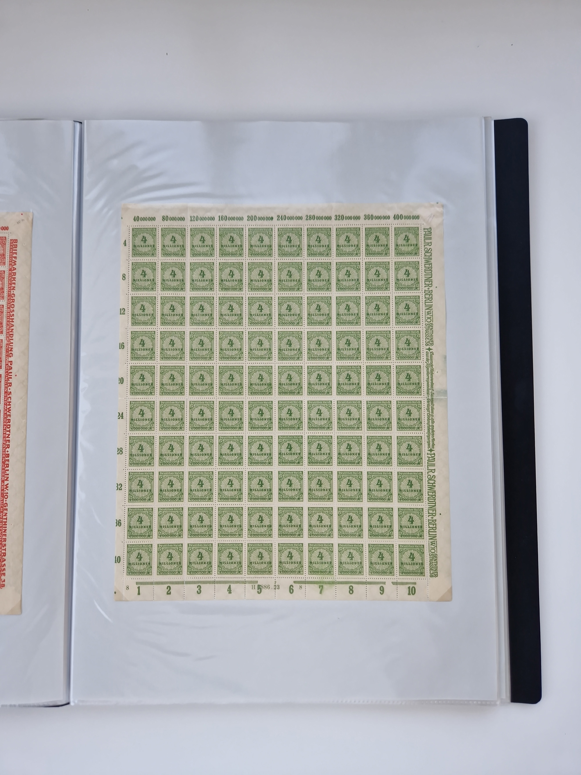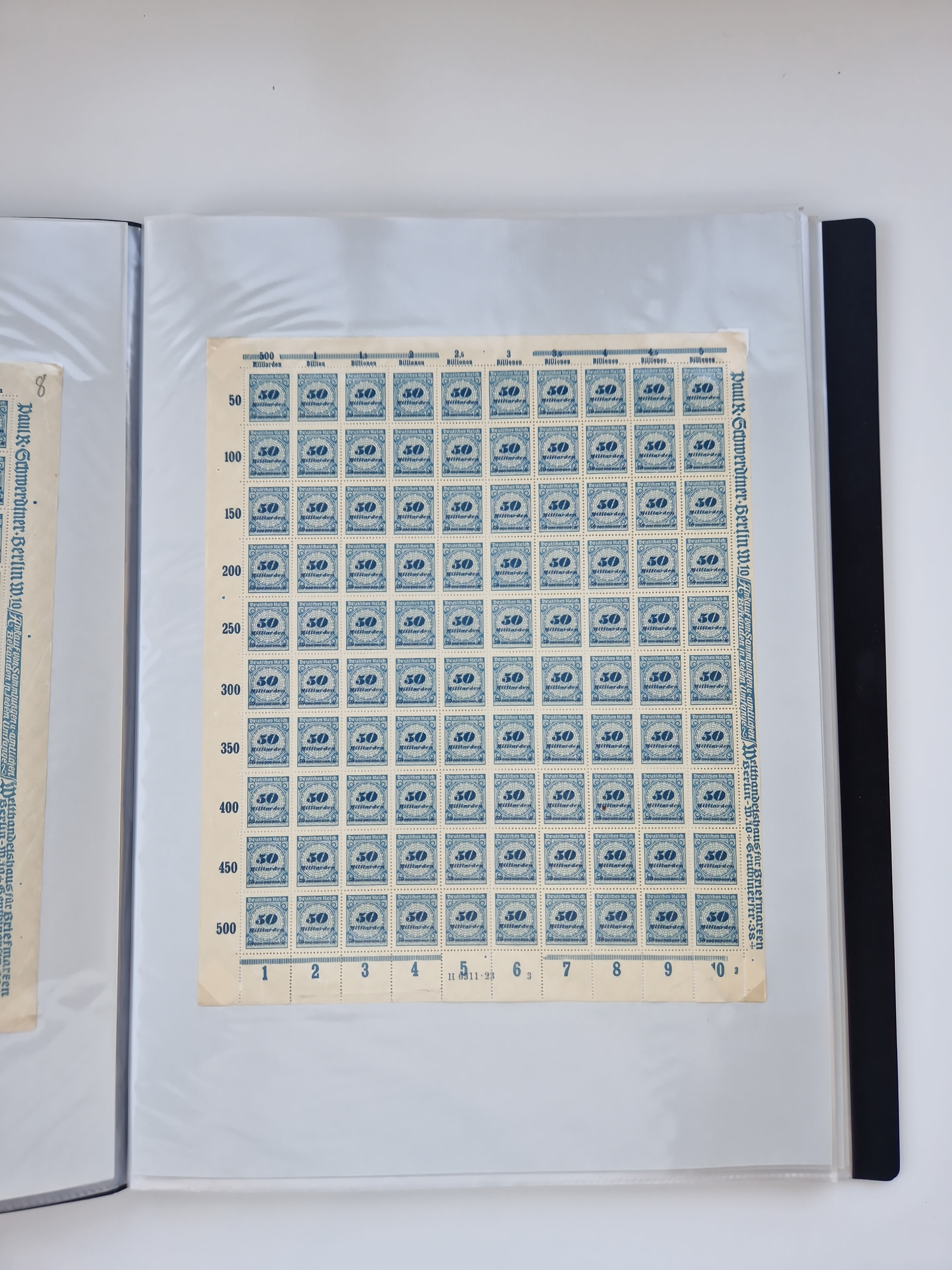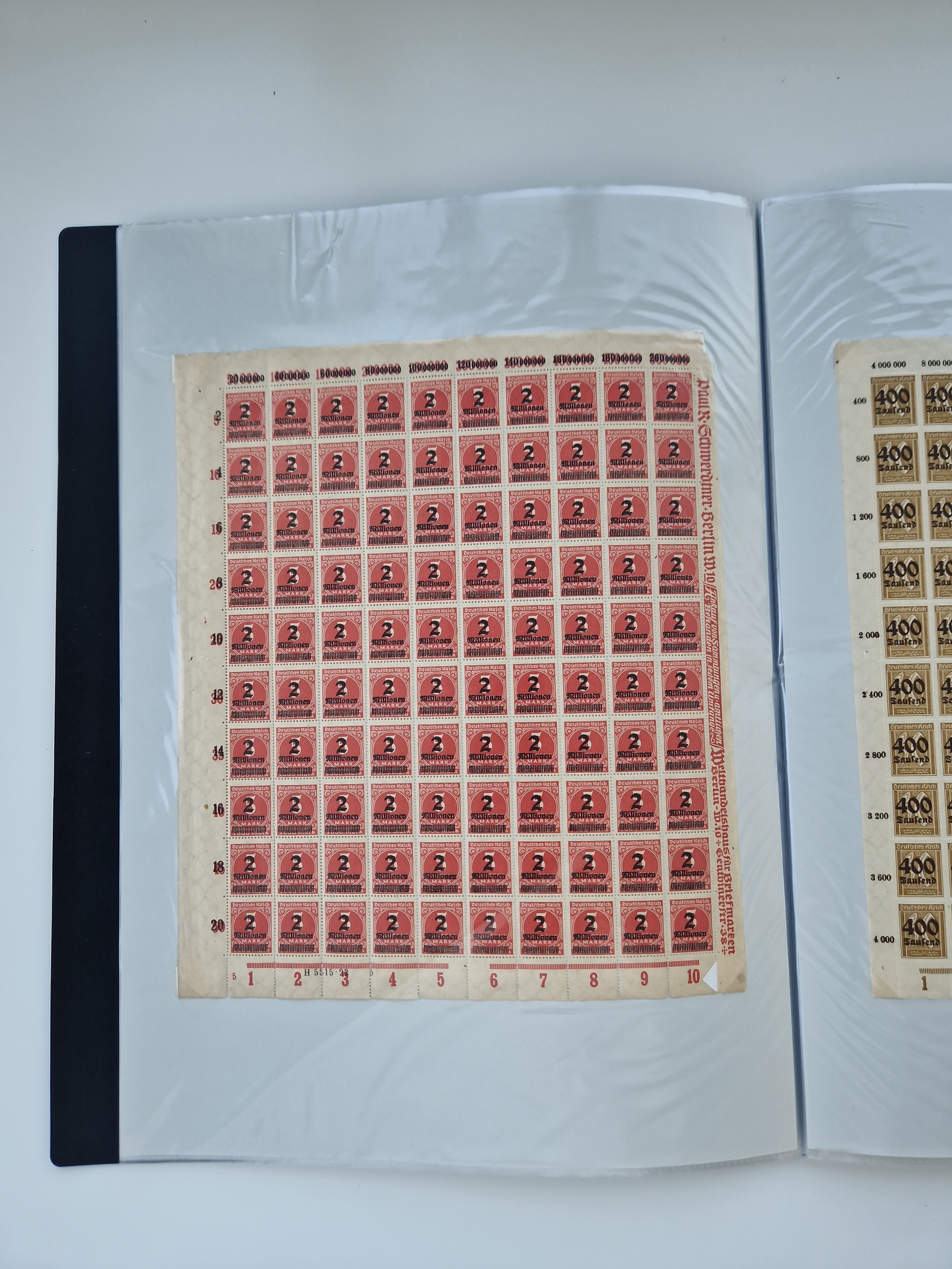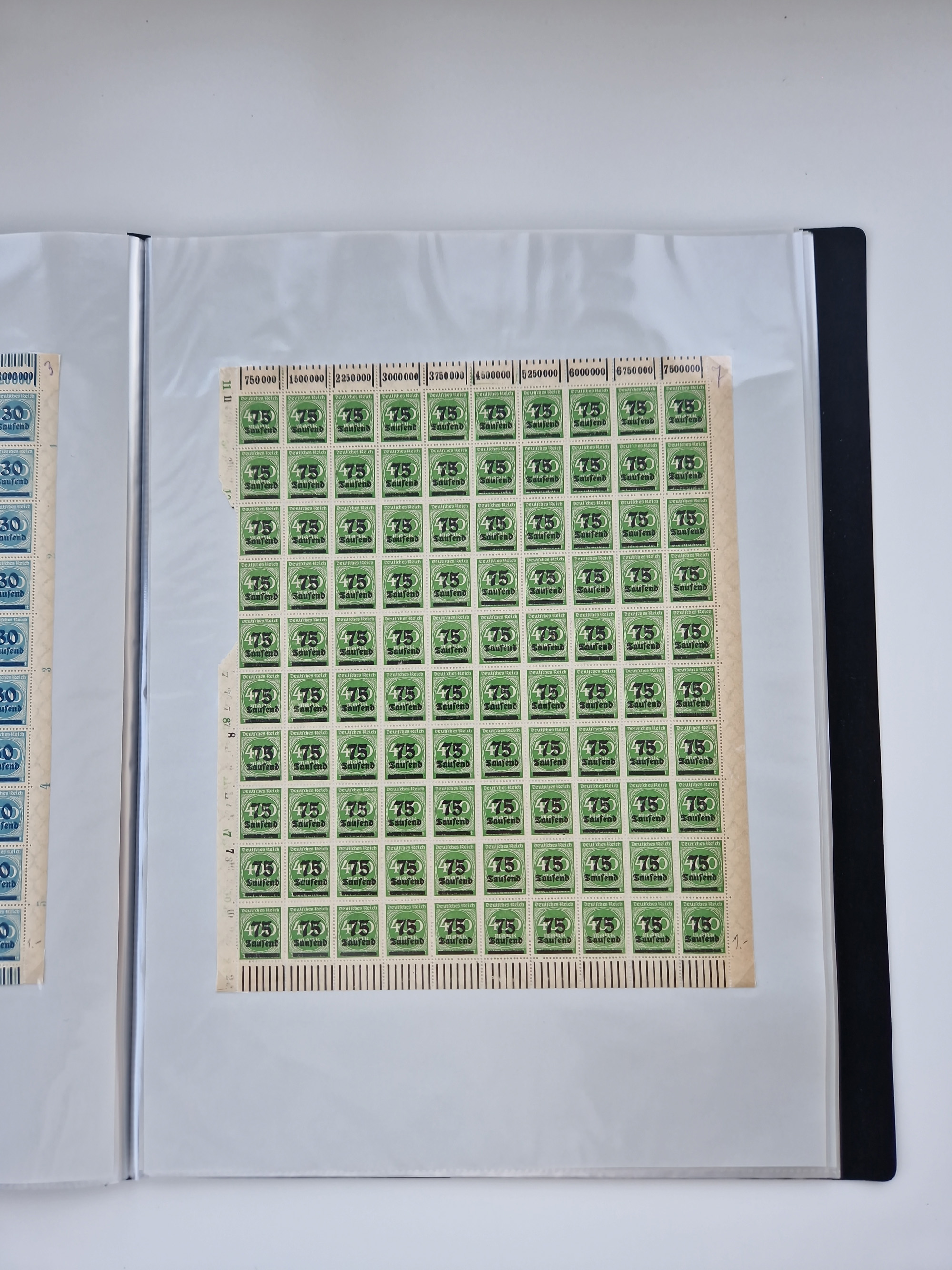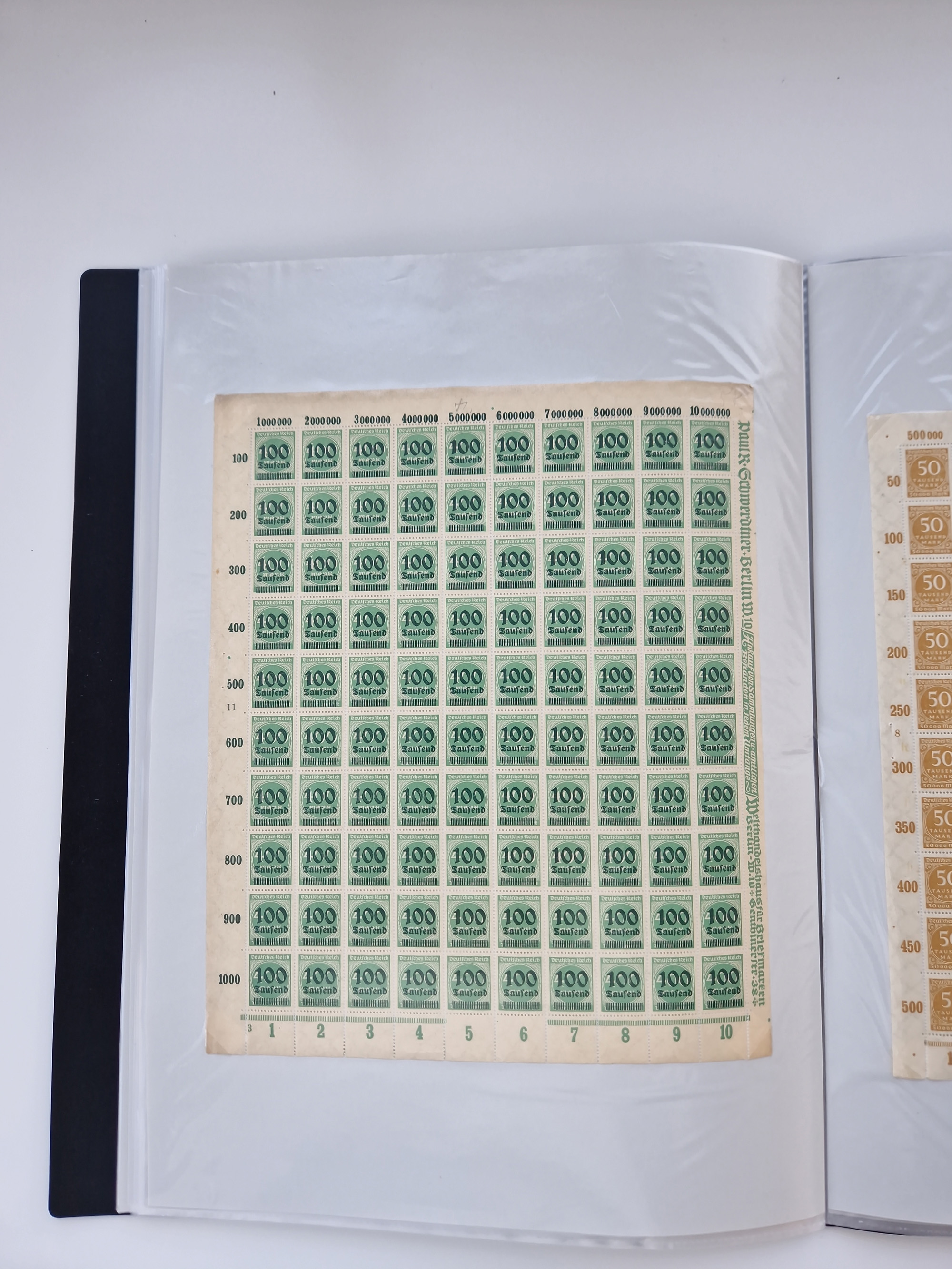 1921/22, postfrischer und ungebrauchter Bestand mit etwas über 200 Bogen und Bogenteilen, dabei Walzen- und Plattenbogen, HAN, Druckereizeichen, Pl.-Nr., auch Wz. Waffeln und Bogentaschen, teils sign. INFLA Berlin, etwas unterschiedliche Erhaltung, in zwei Ordnern