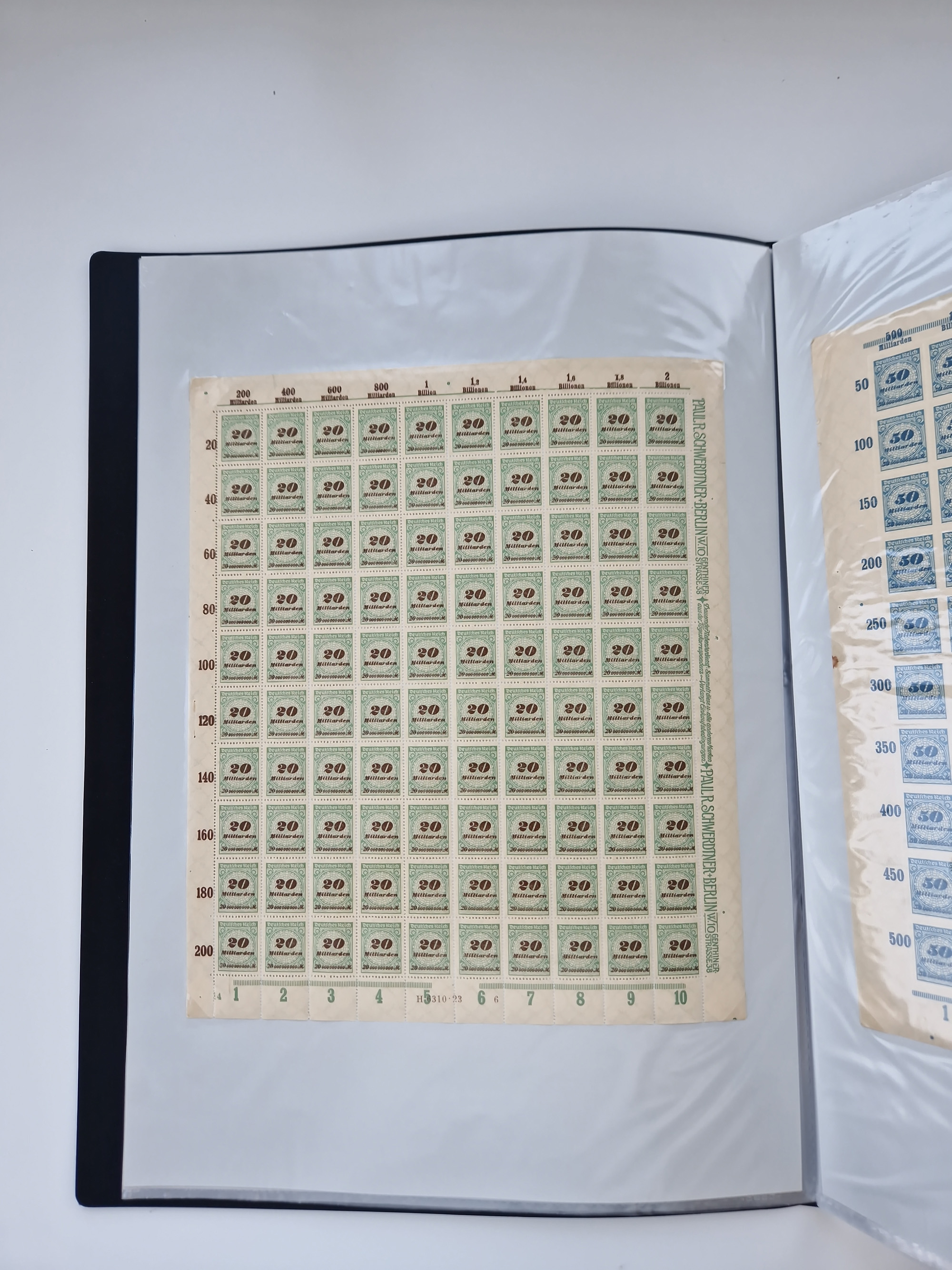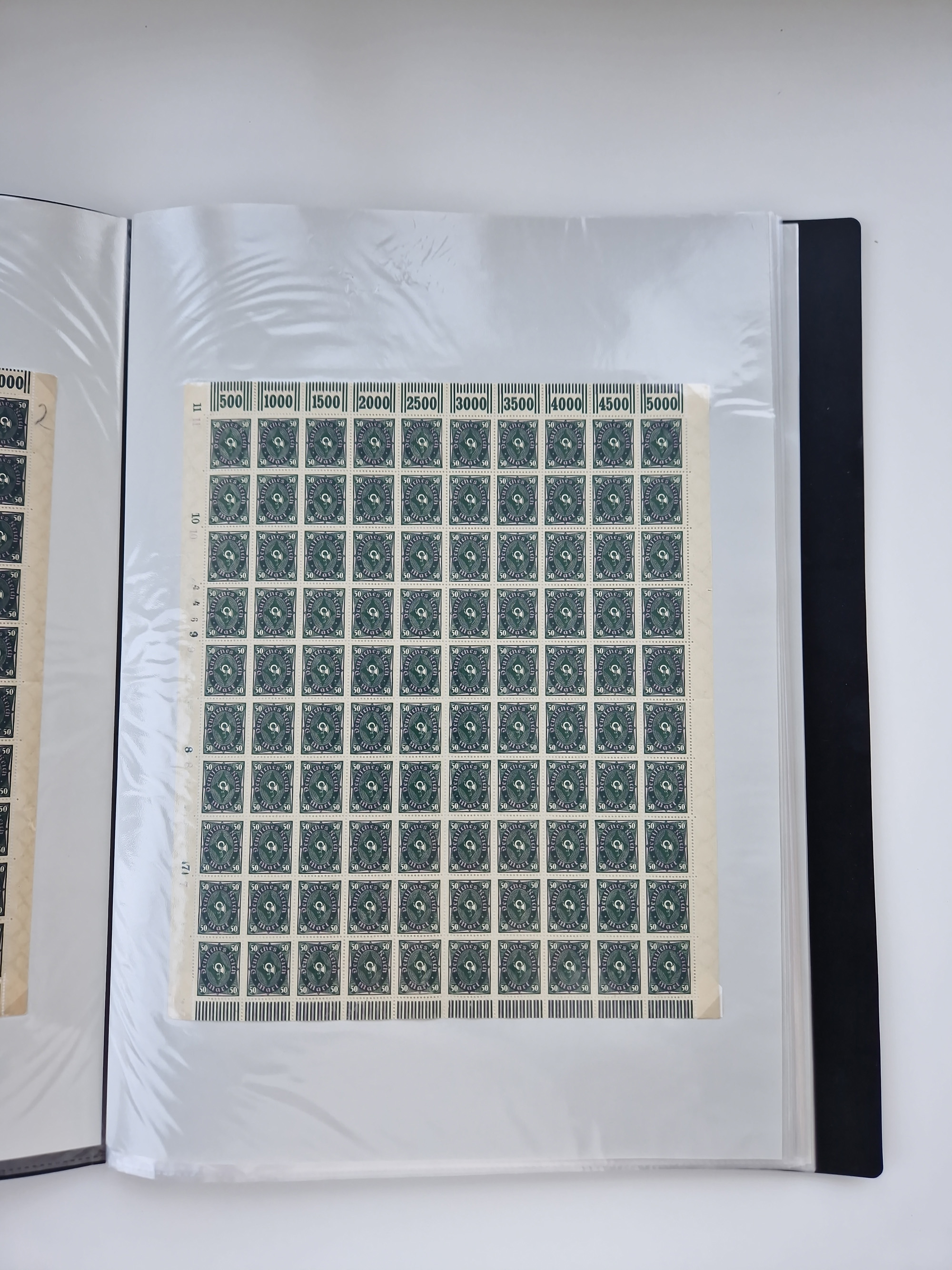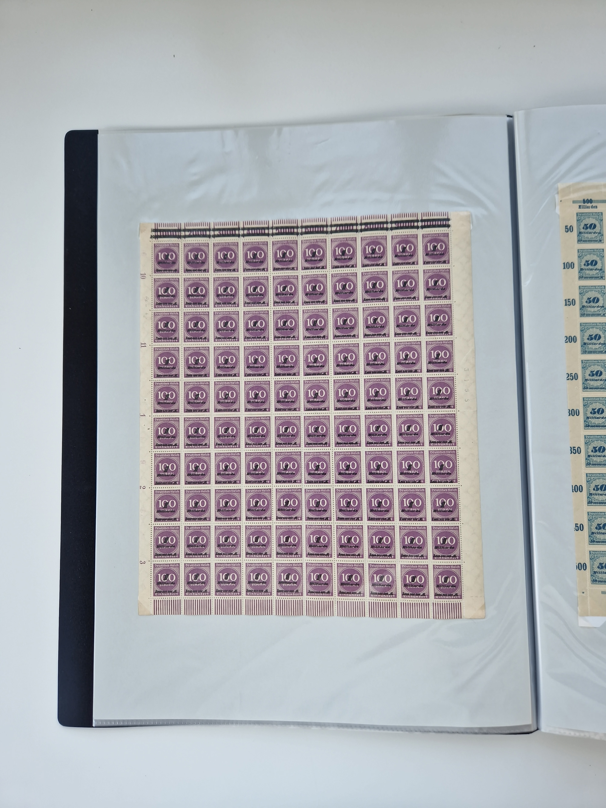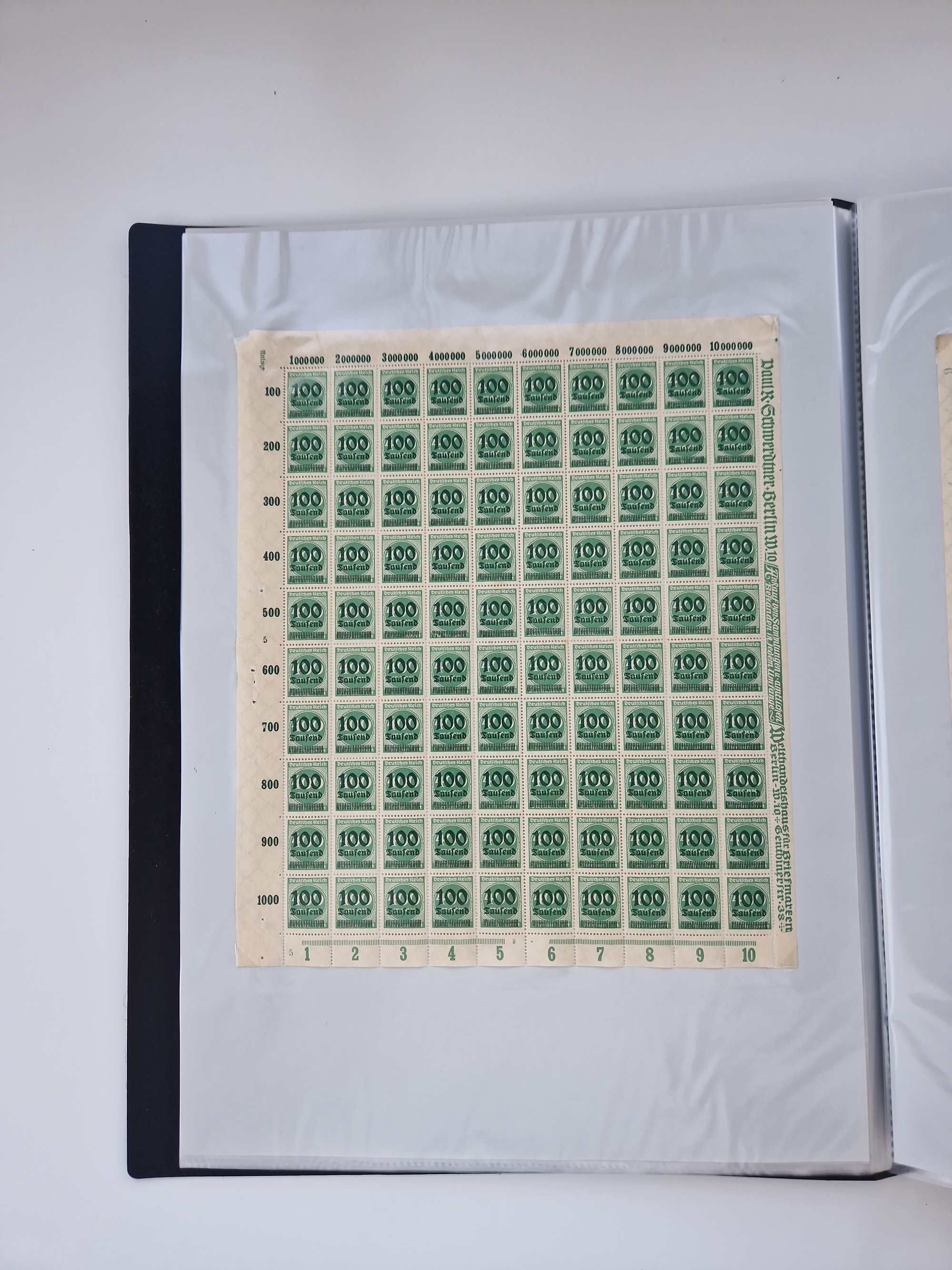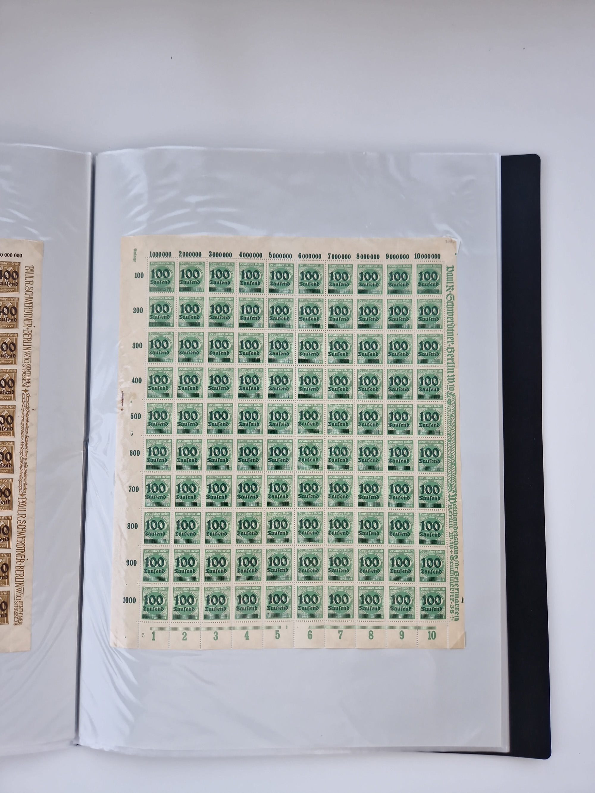 1921/22, postfrischer und ungebrauchter Bestand mit etwas über 200 Bogen und Bogenteilen, dabei Walzen- und Plattenbogen, HAN, Druckereizeichen, Pl.-Nr., auch Wz. Waffeln und Bogentaschen, teils sign. INFLA Berlin, etwas unterschiedliche Erhaltung, in zwei Ordnern