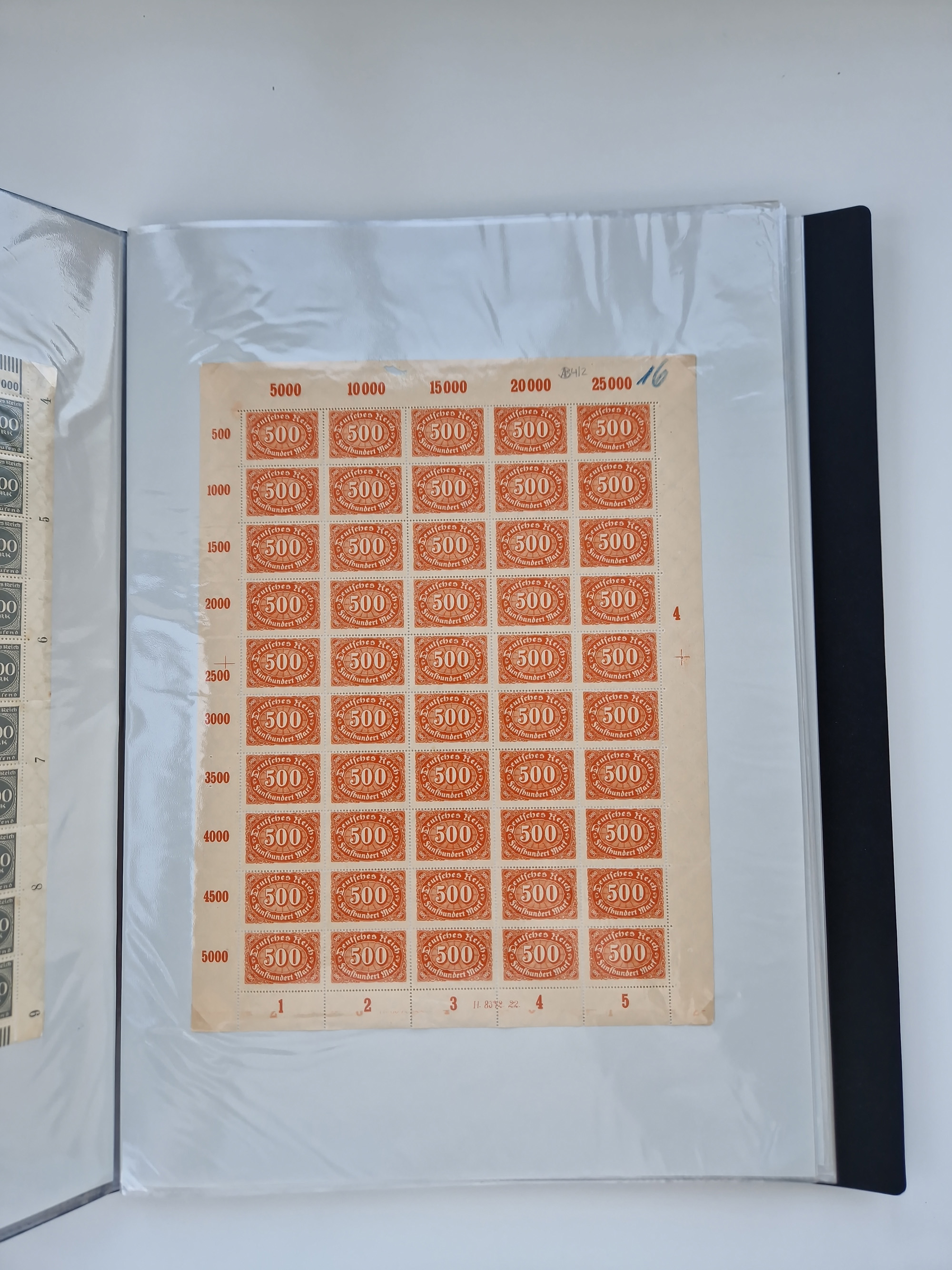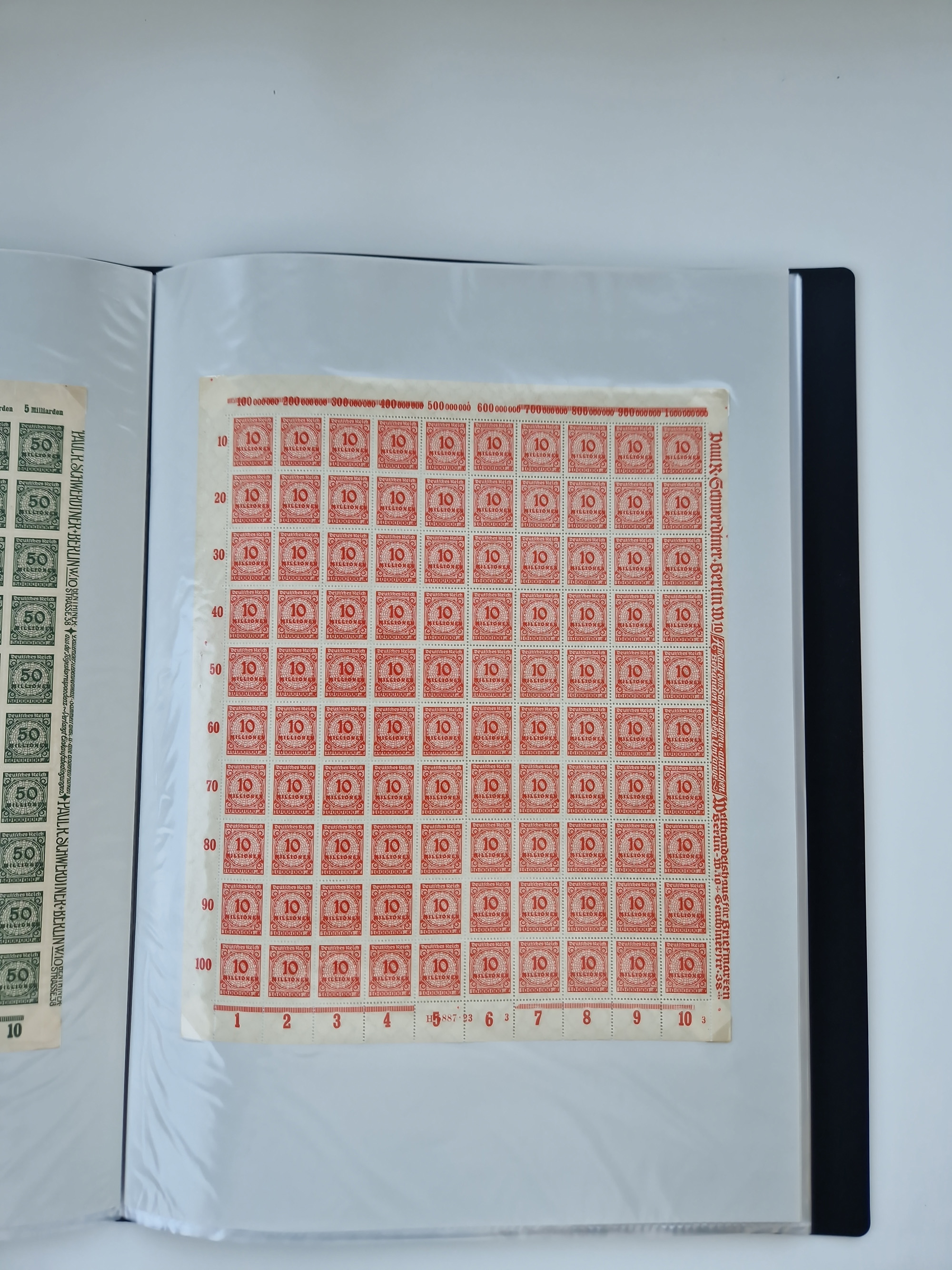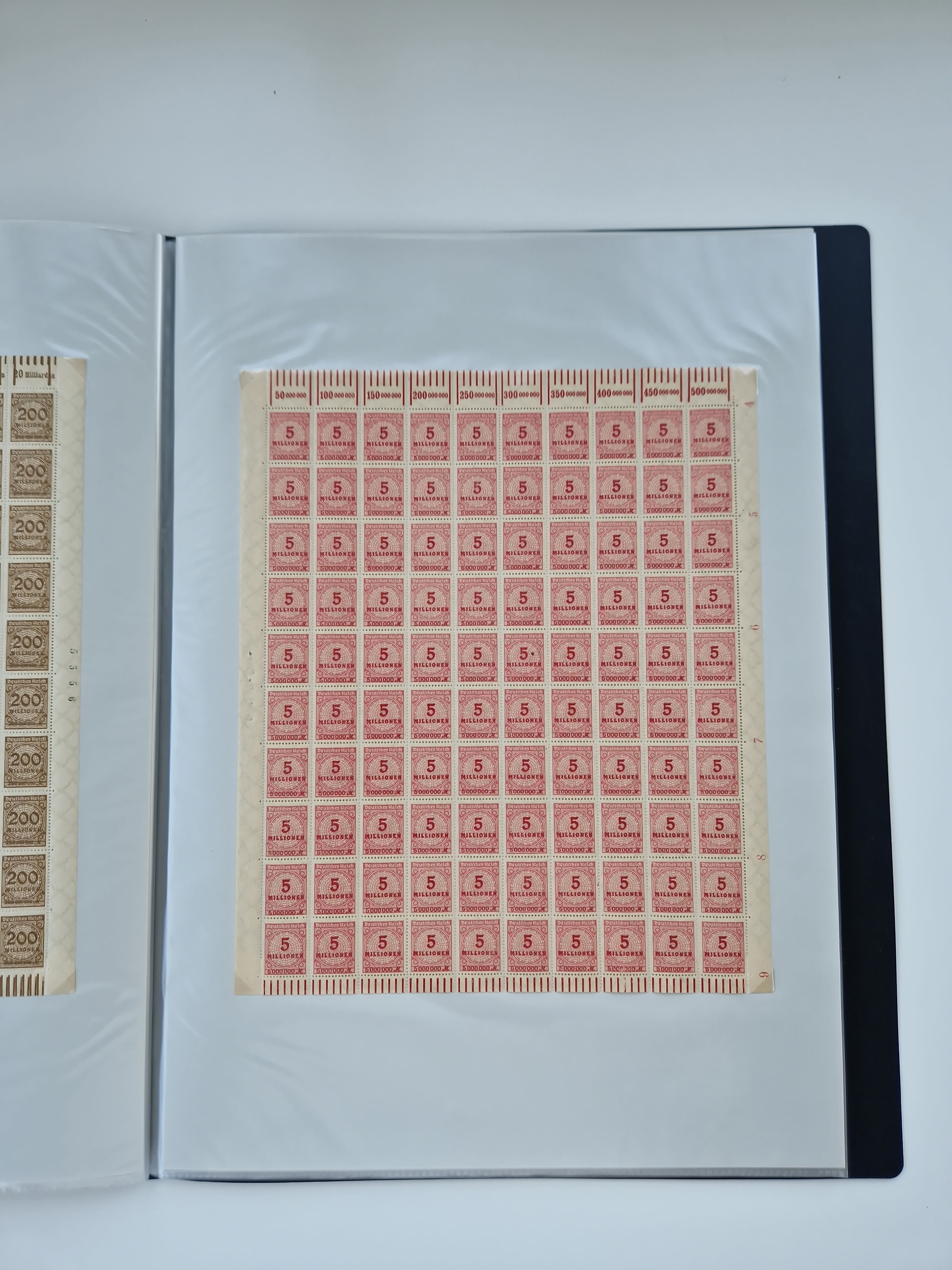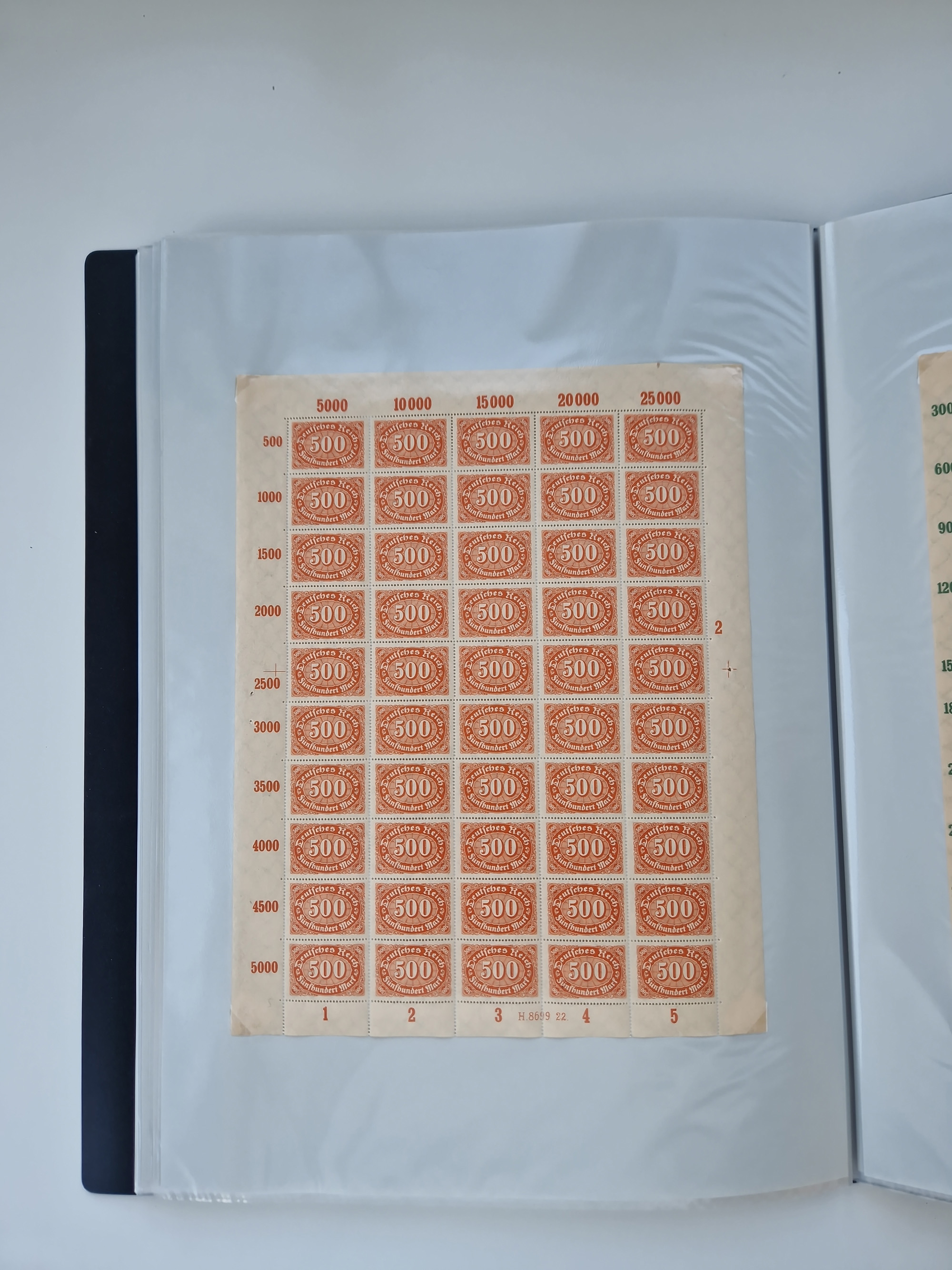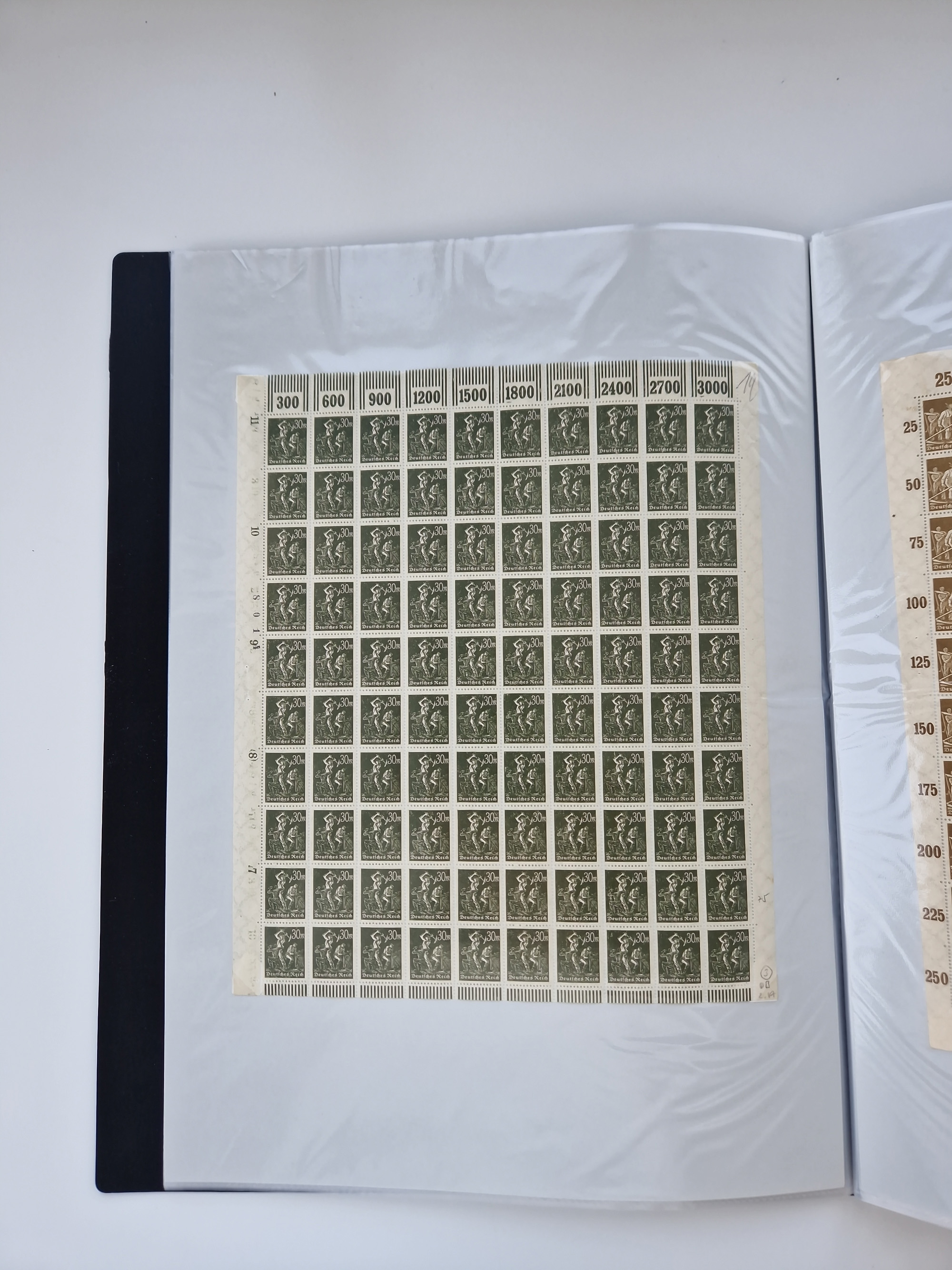 1921/22, postfrischer und ungebrauchter Bestand mit etwas über 200 Bogen und Bogenteilen, dabei Walzen- und Plattenbogen, HAN, Druckereizeichen, Pl.-Nr., auch Wz. Waffeln und Bogentaschen, teils sign. INFLA Berlin, etwas unterschiedliche Erhaltung, in zwei Ordnern