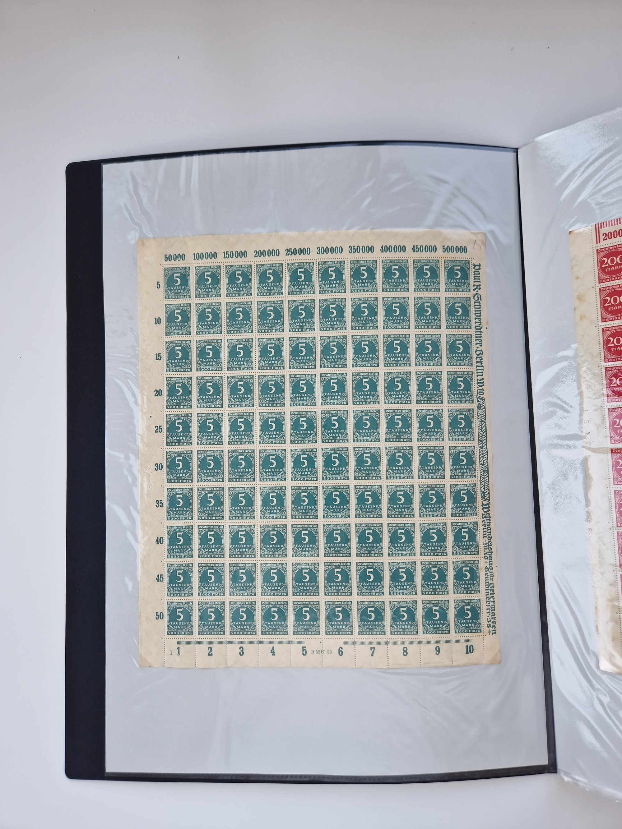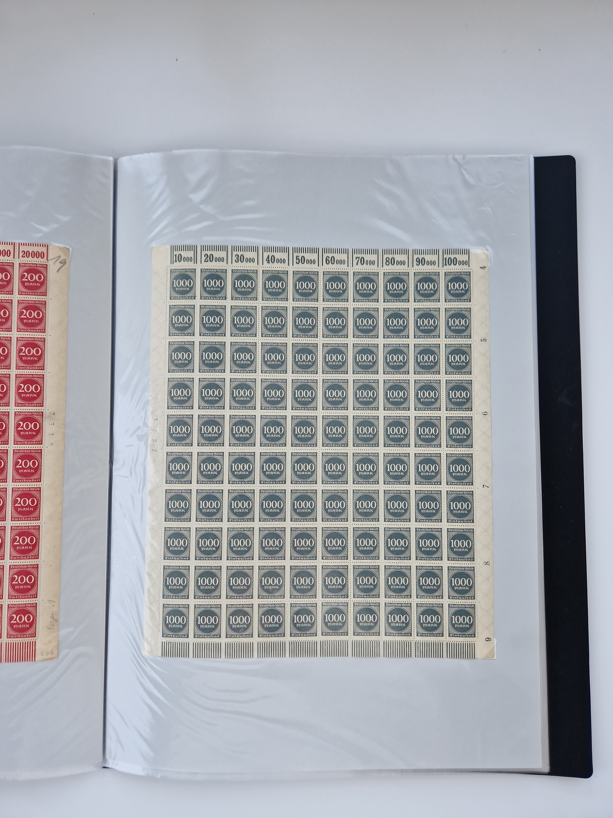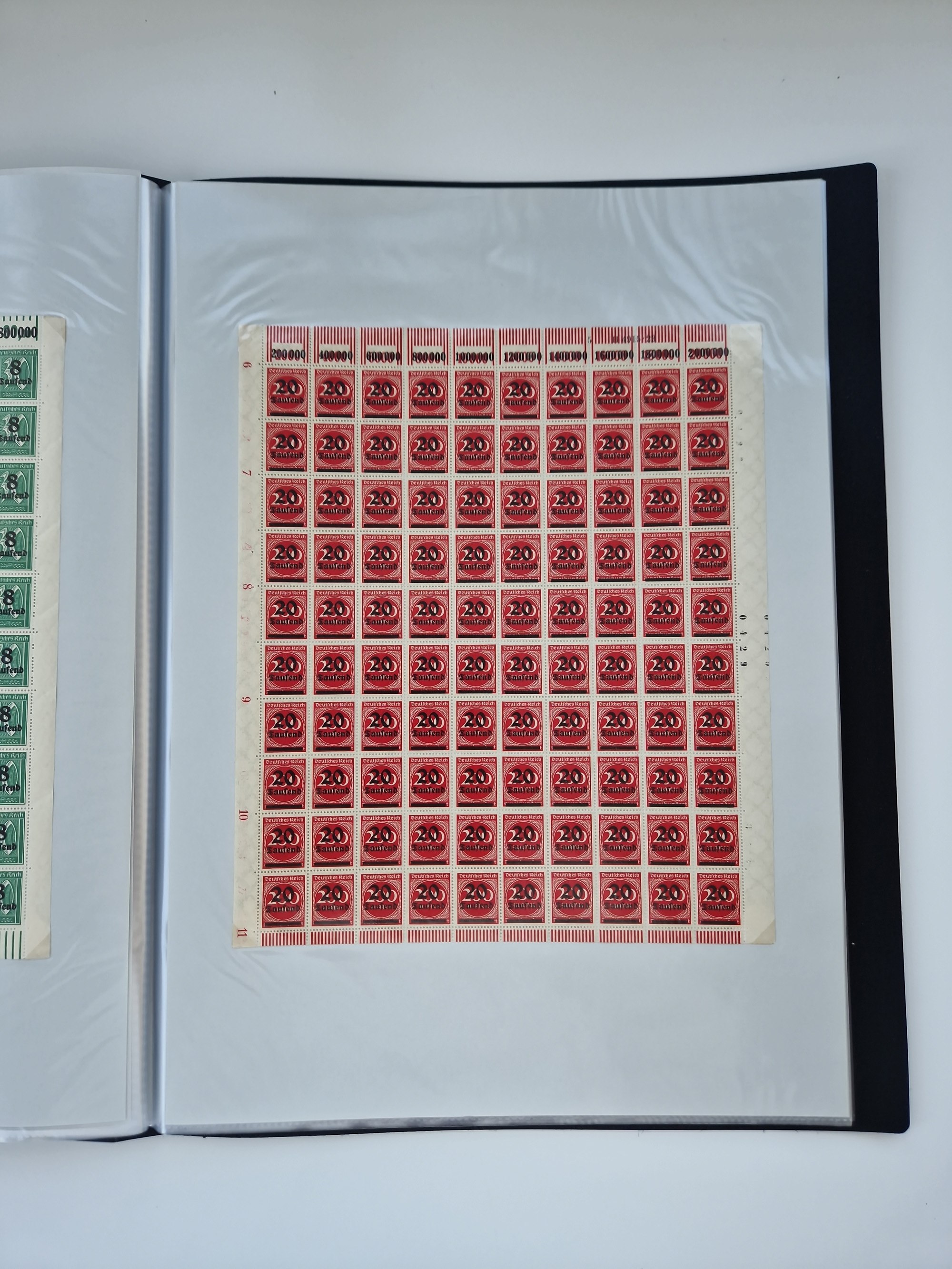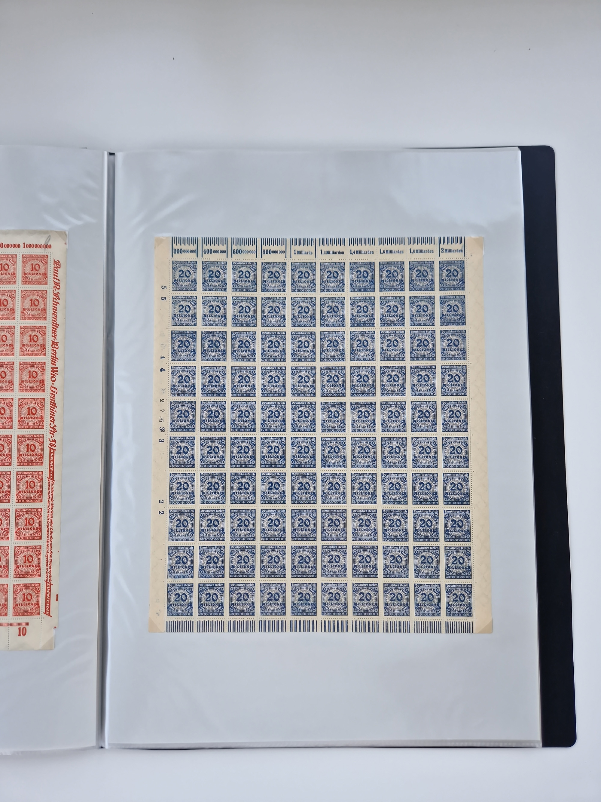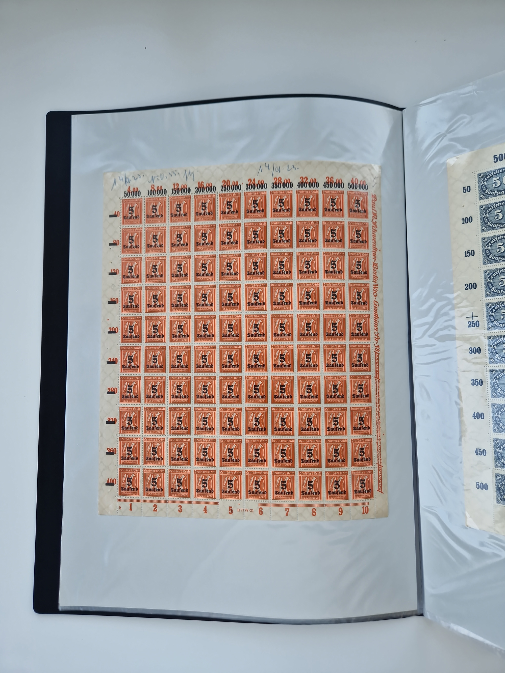1921/22, postfrischer und ungebrauchter Bestand mit etwas über 200 Bogen und Bogenteilen, dabei Walzen- und Plattenbogen, HAN, Druckereizeichen, Pl.-Nr., auch Wz. Waffeln und Bogentaschen, teils sign. INFLA Berlin, etwas unterschiedliche Erhaltung, in zwei Ordnern
