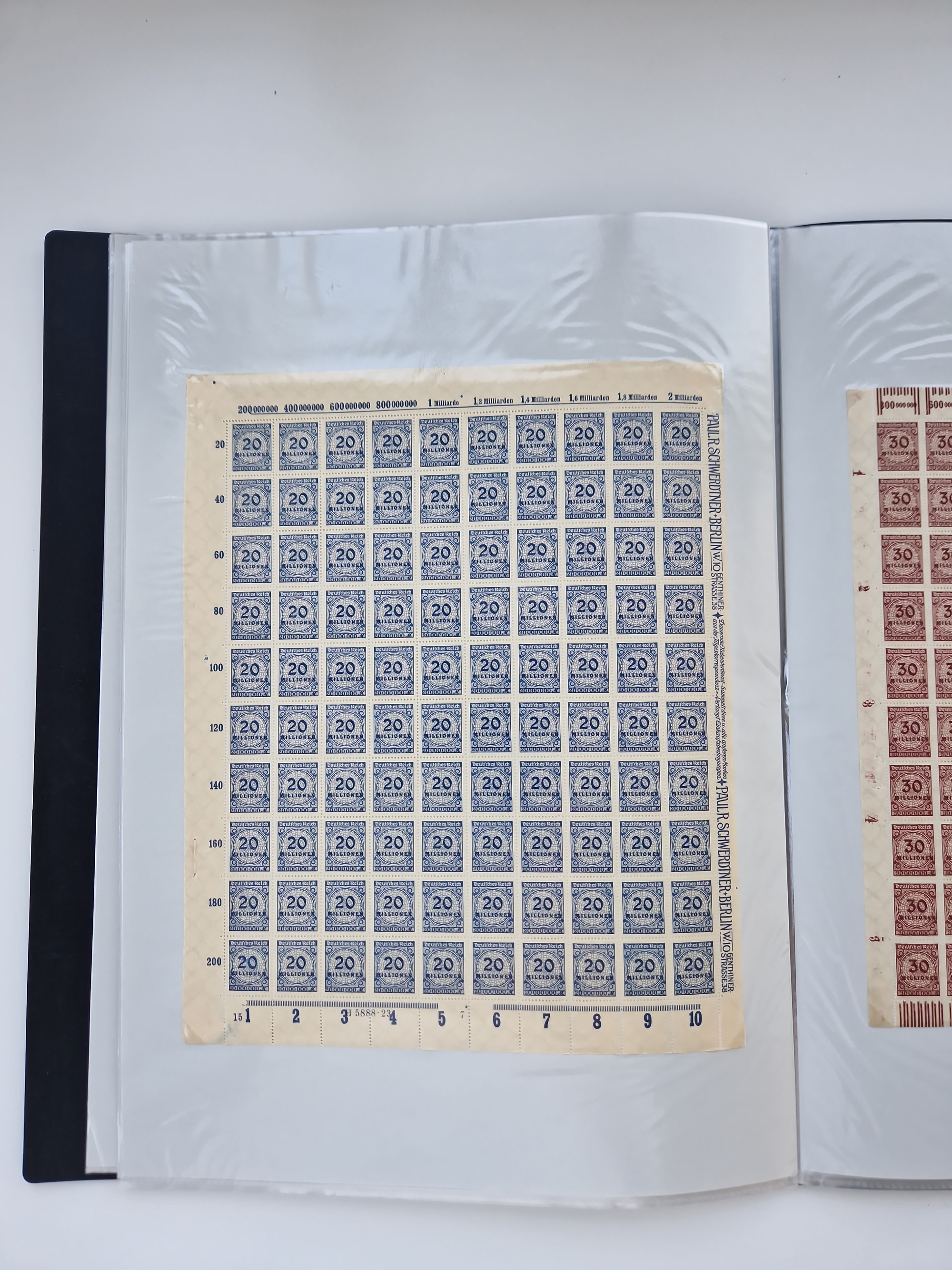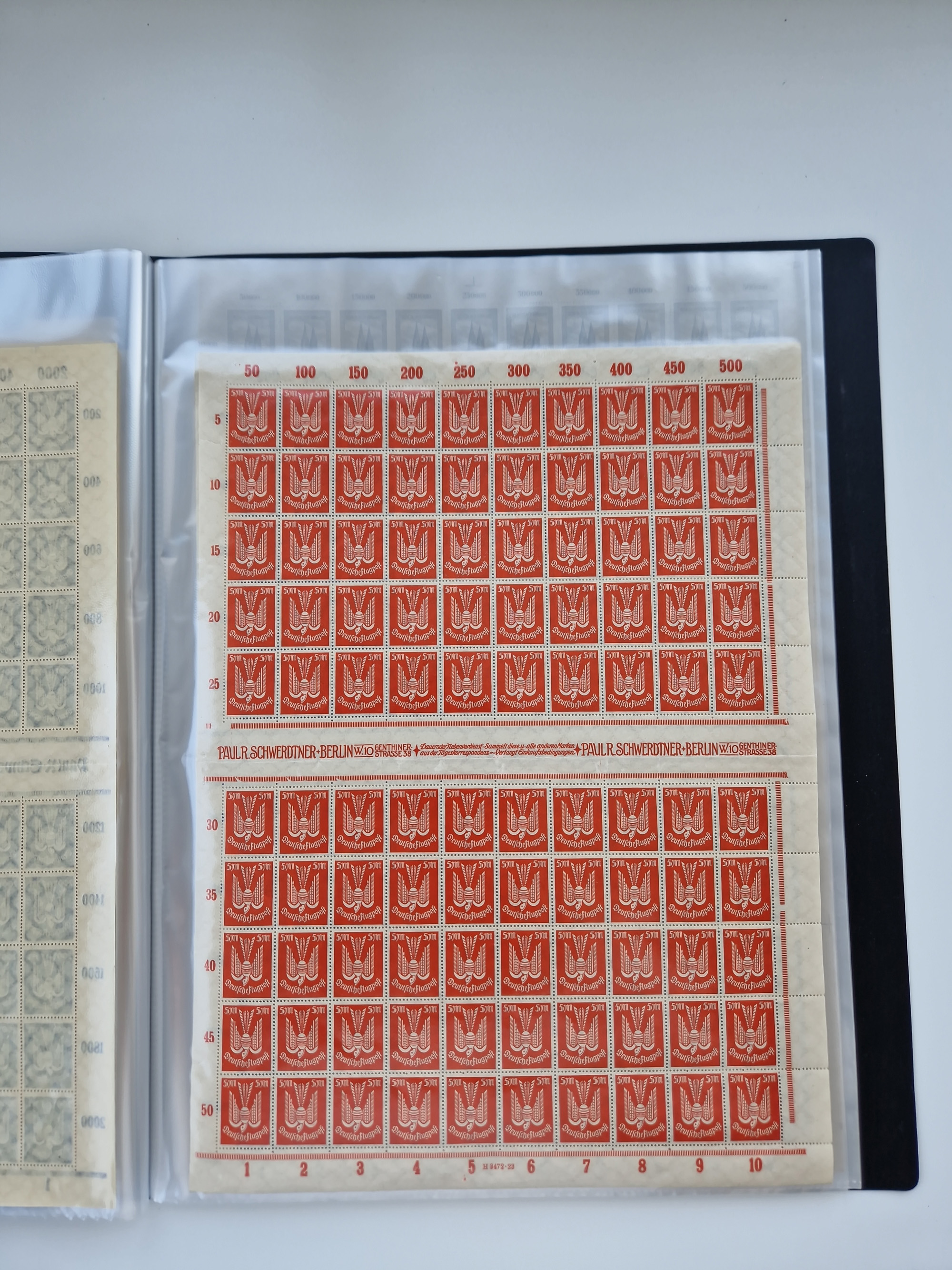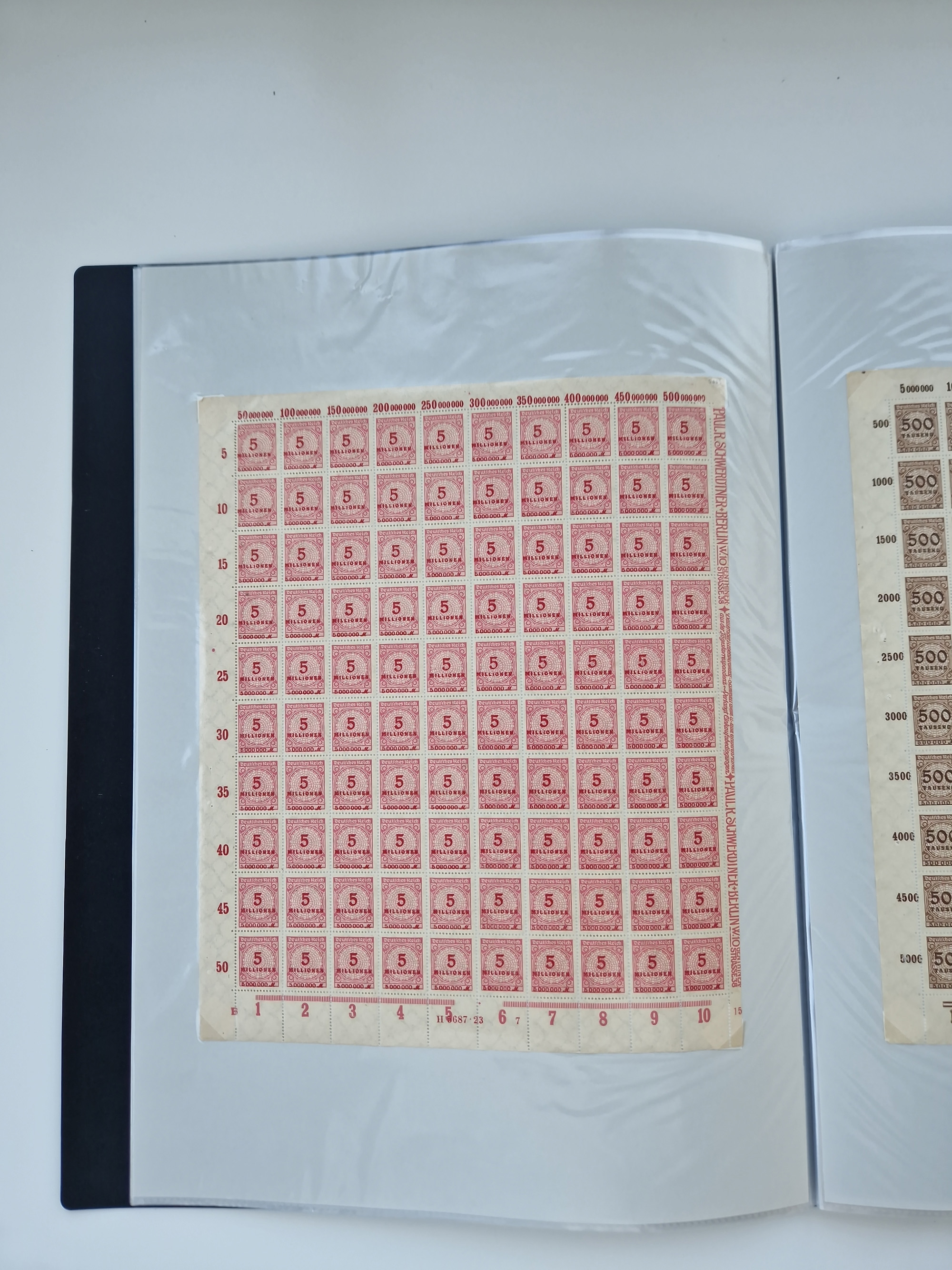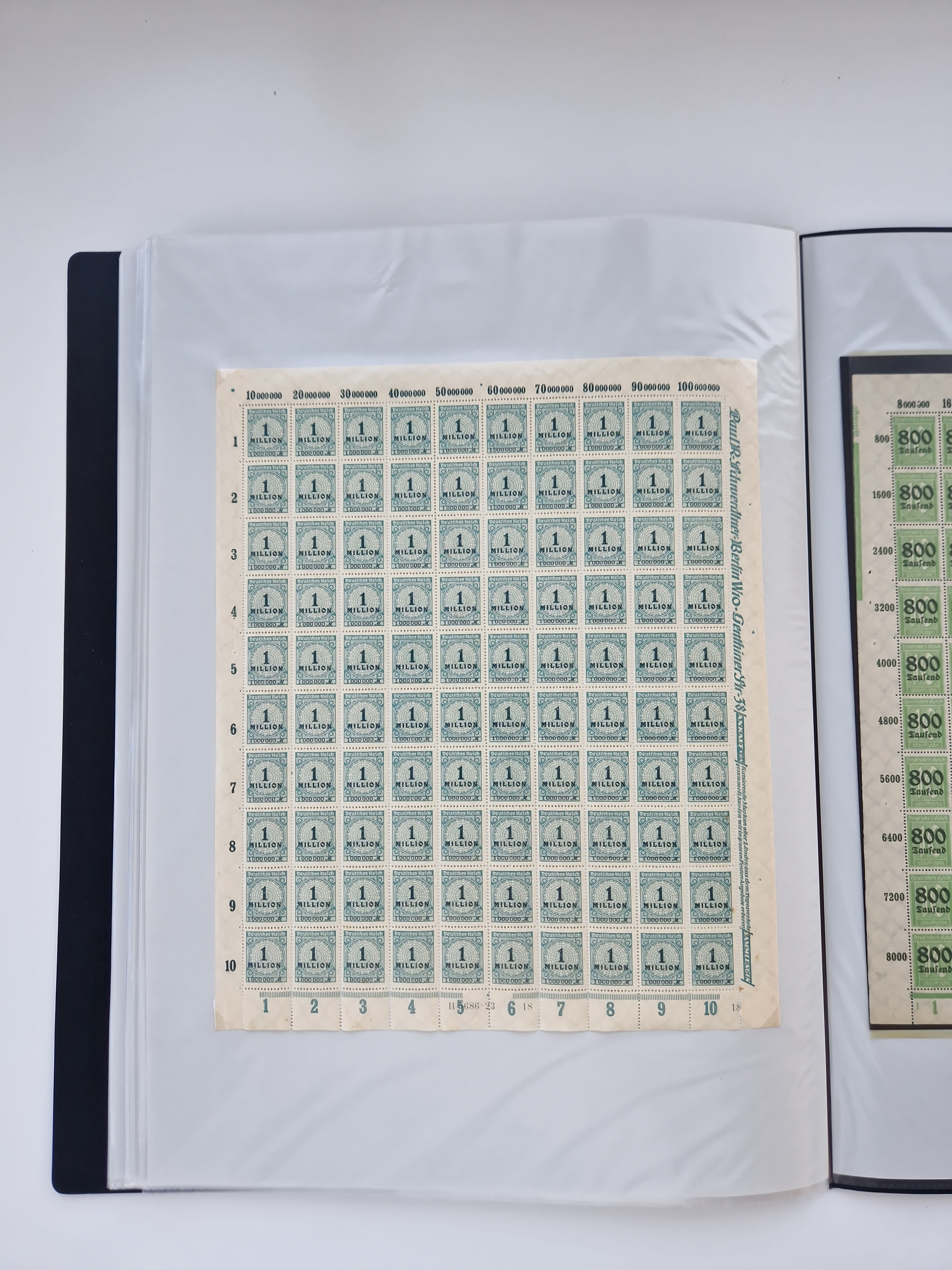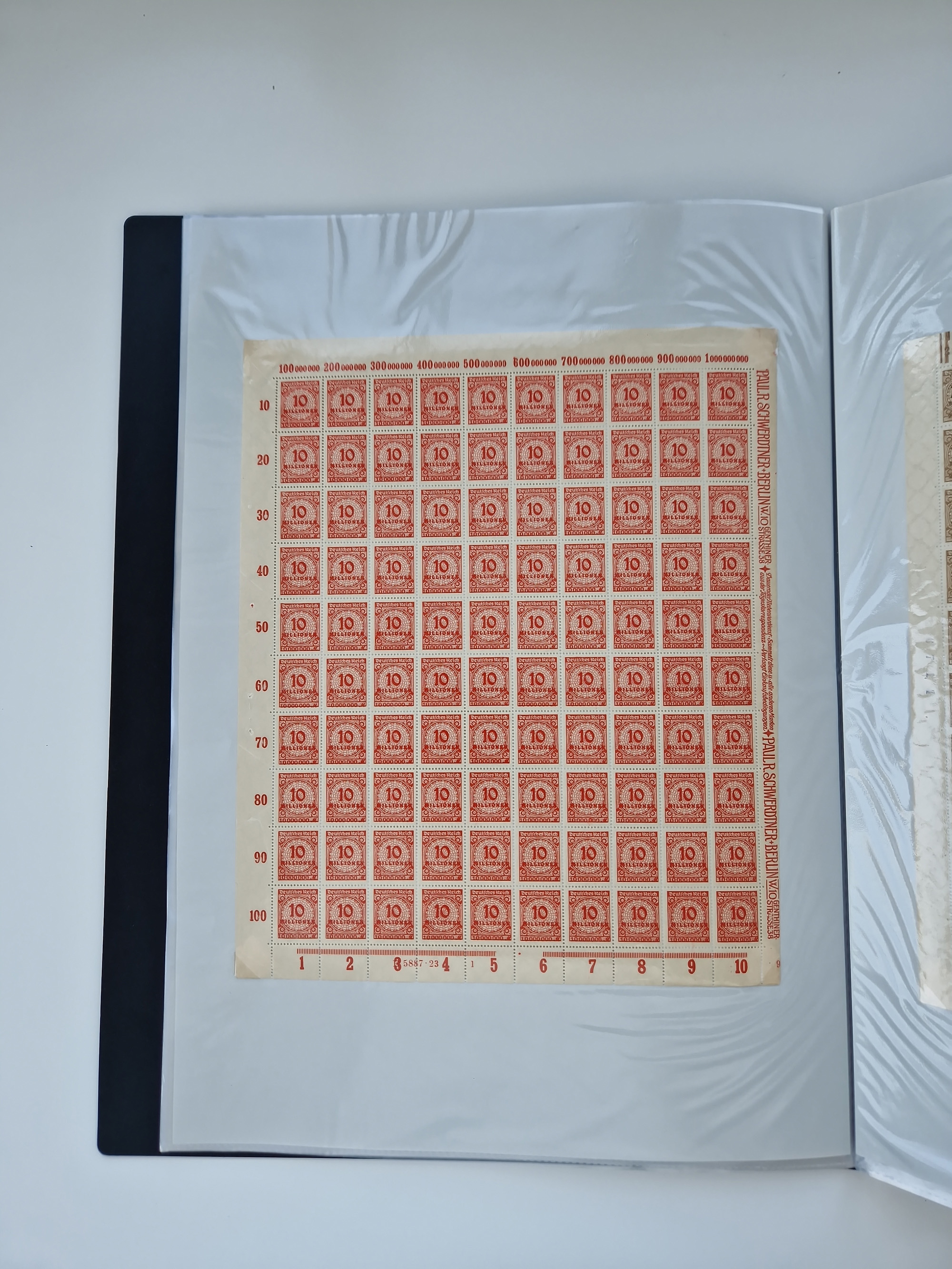 1921/22, postfrischer und ungebrauchter Bestand mit etwas über 200 Bogen und Bogenteilen, dabei Walzen- und Plattenbogen, HAN, Druckereizeichen, Pl.-Nr., auch Wz. Waffeln und Bogentaschen, teils sign. INFLA Berlin, etwas unterschiedliche Erhaltung, in zwei Ordnern