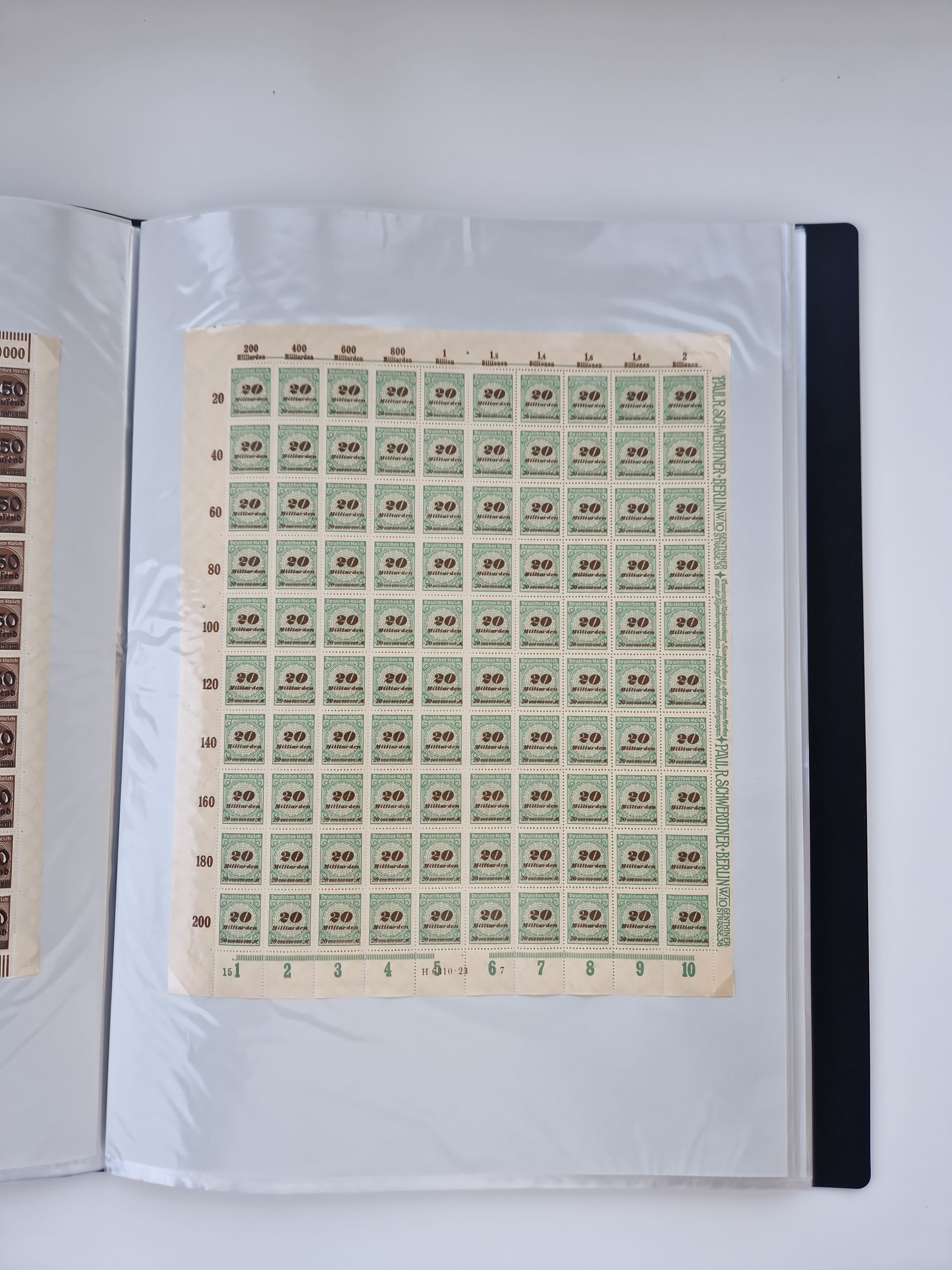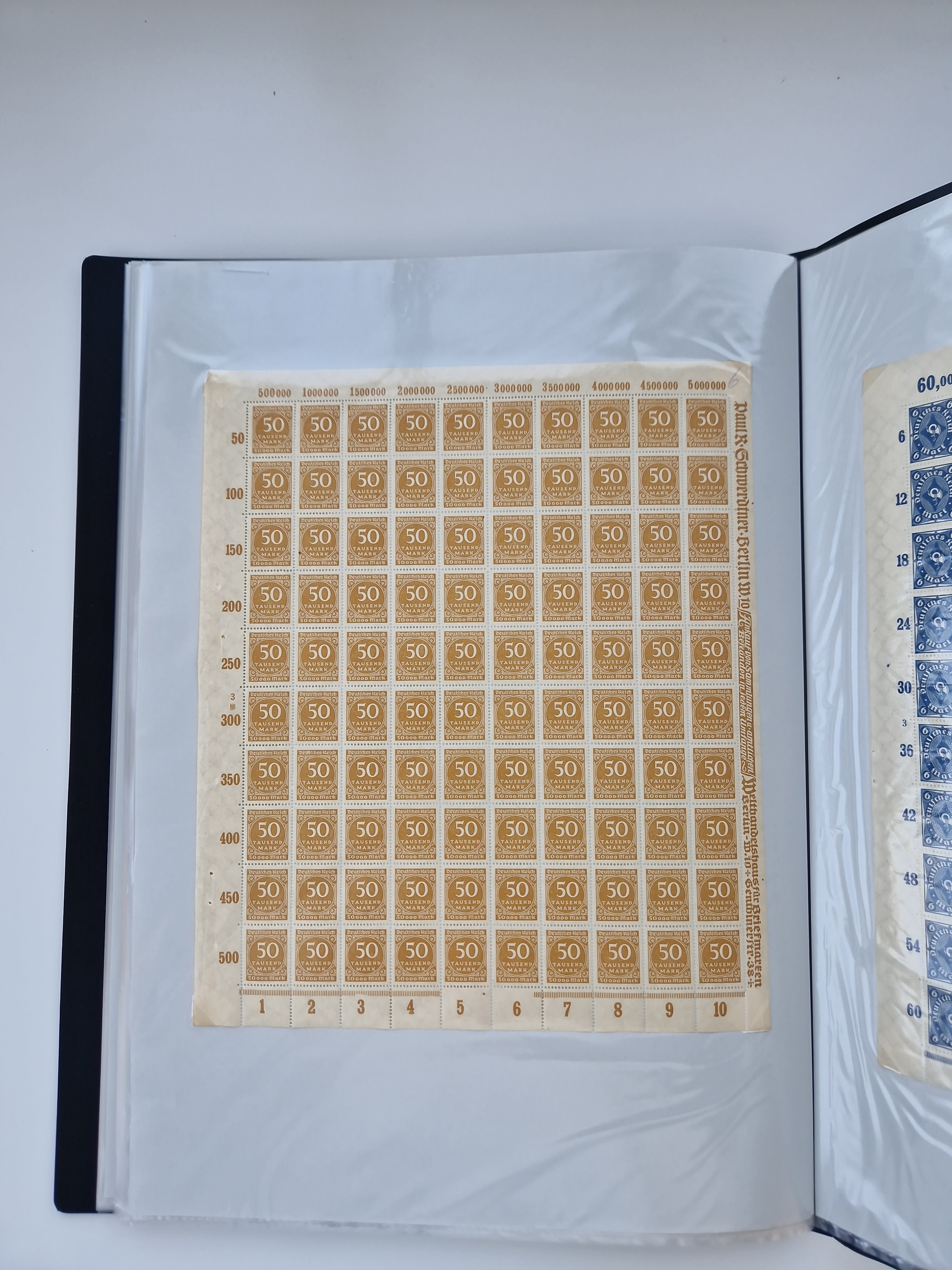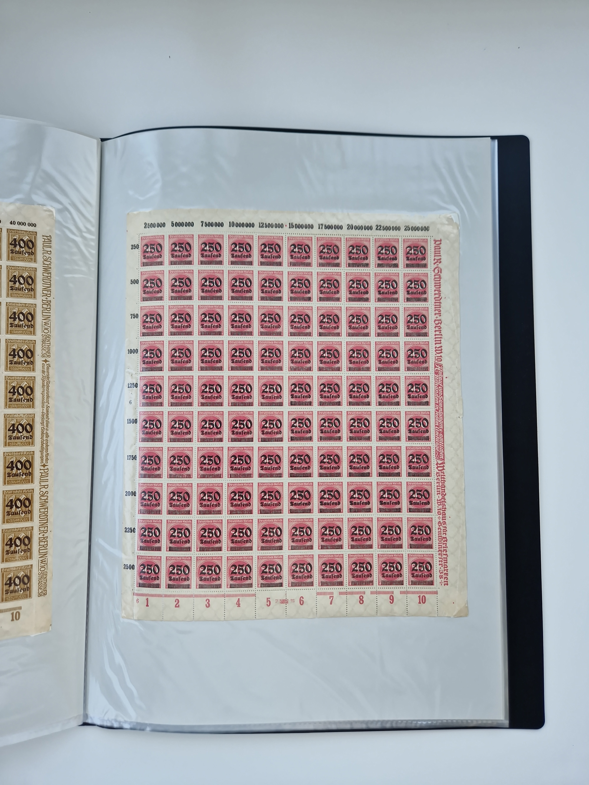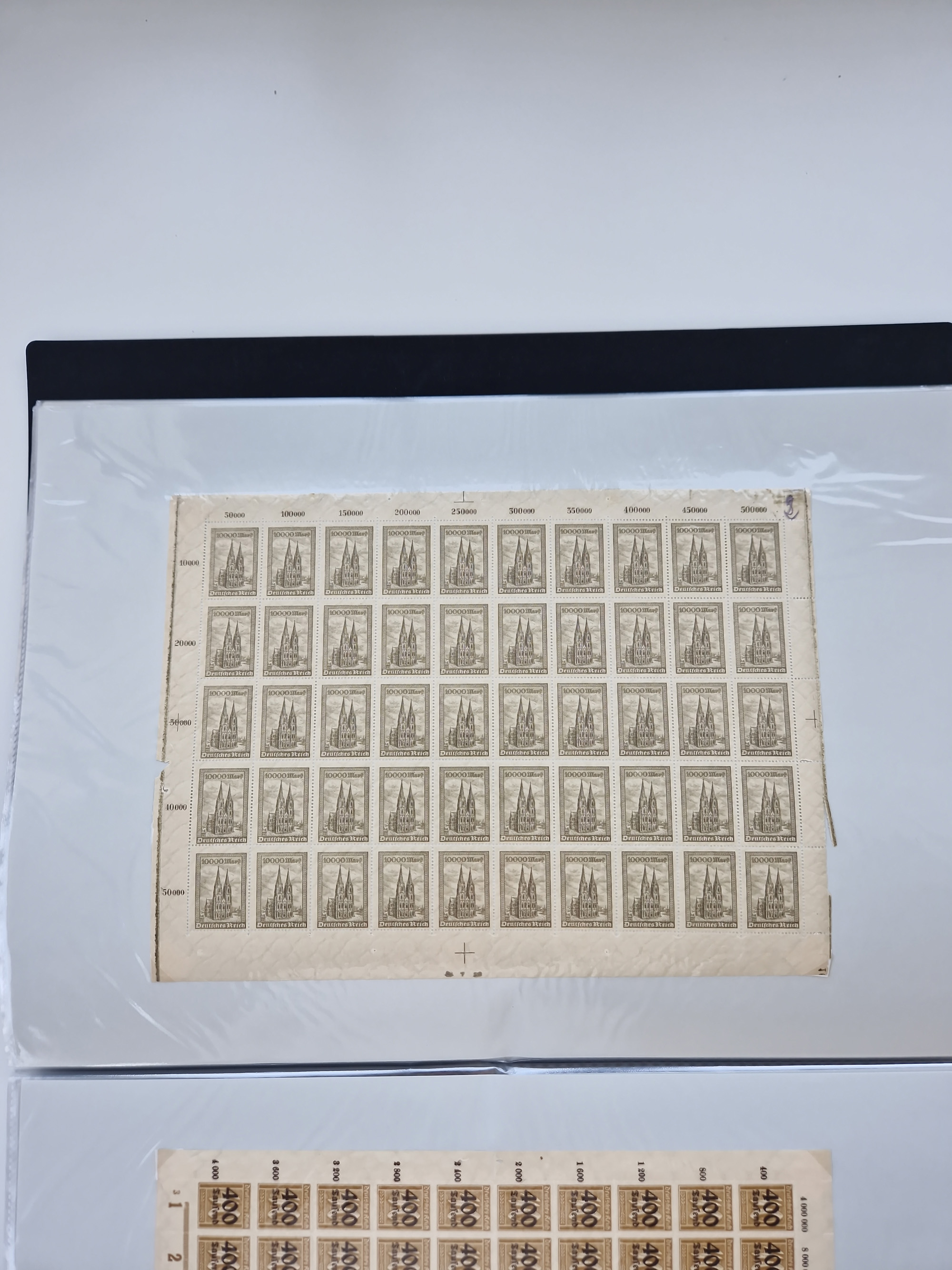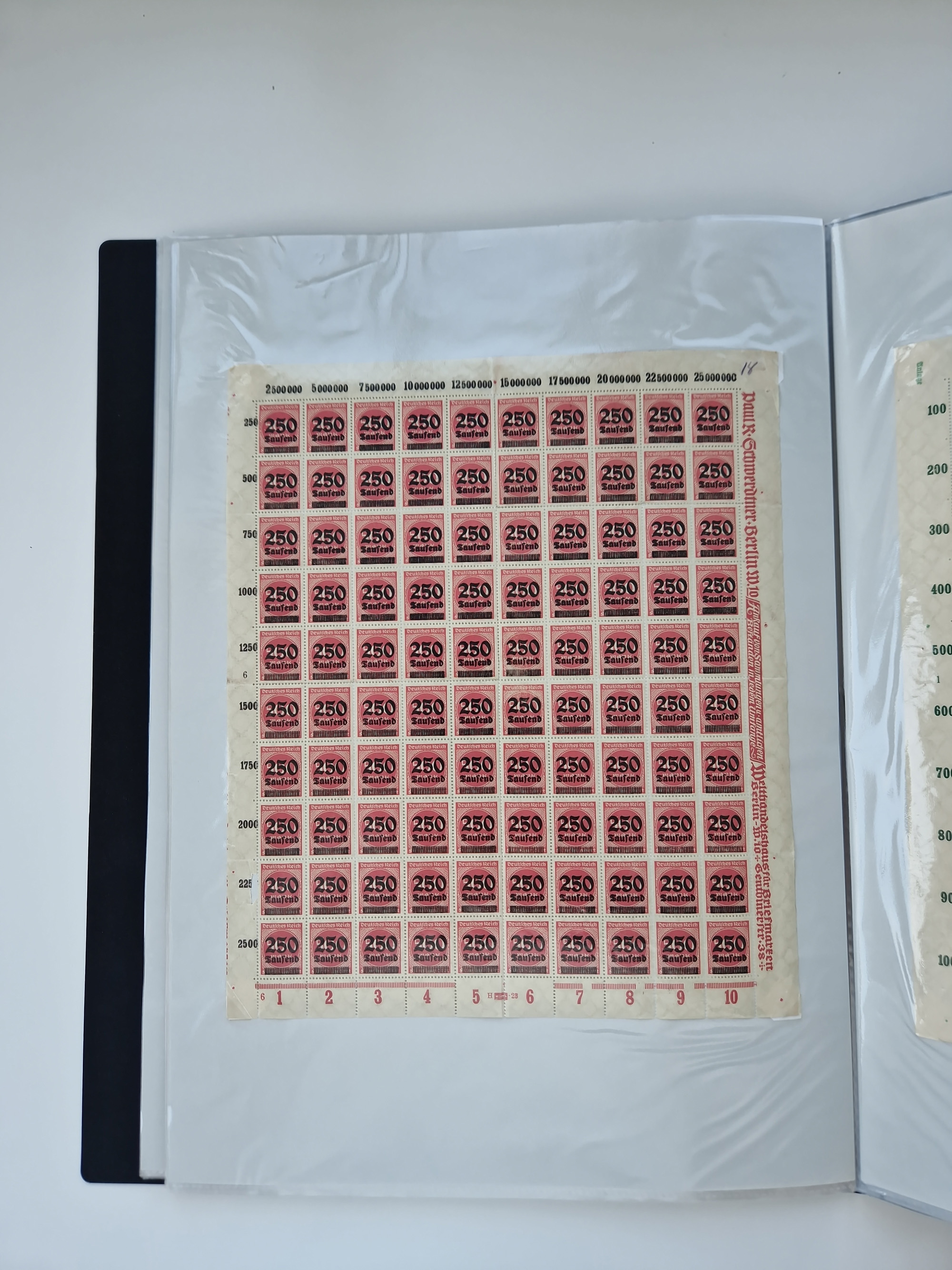 1921/22, postfrischer und ungebrauchter Bestand mit etwas über 200 Bogen und Bogenteilen, dabei Walzen- und Plattenbogen, HAN, Druckereizeichen, Pl.-Nr., auch Wz. Waffeln und Bogentaschen, teils sign. INFLA Berlin, etwas unterschiedliche Erhaltung, in zwei Ordnern