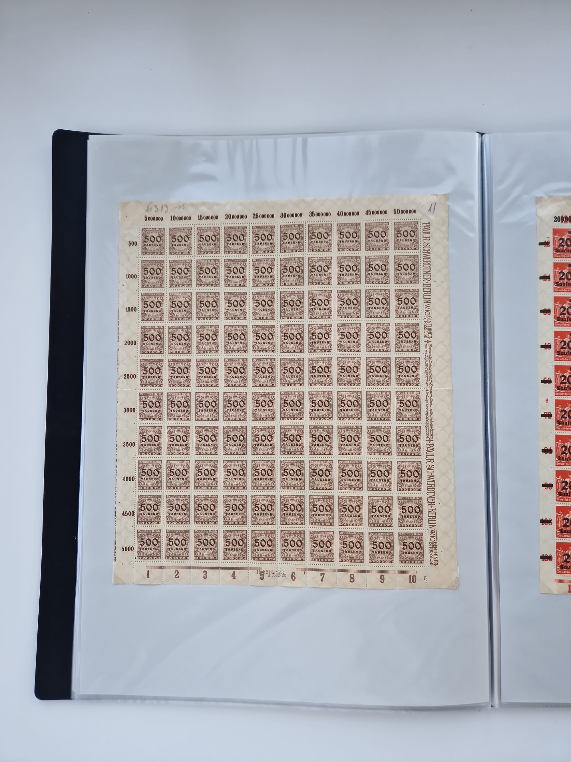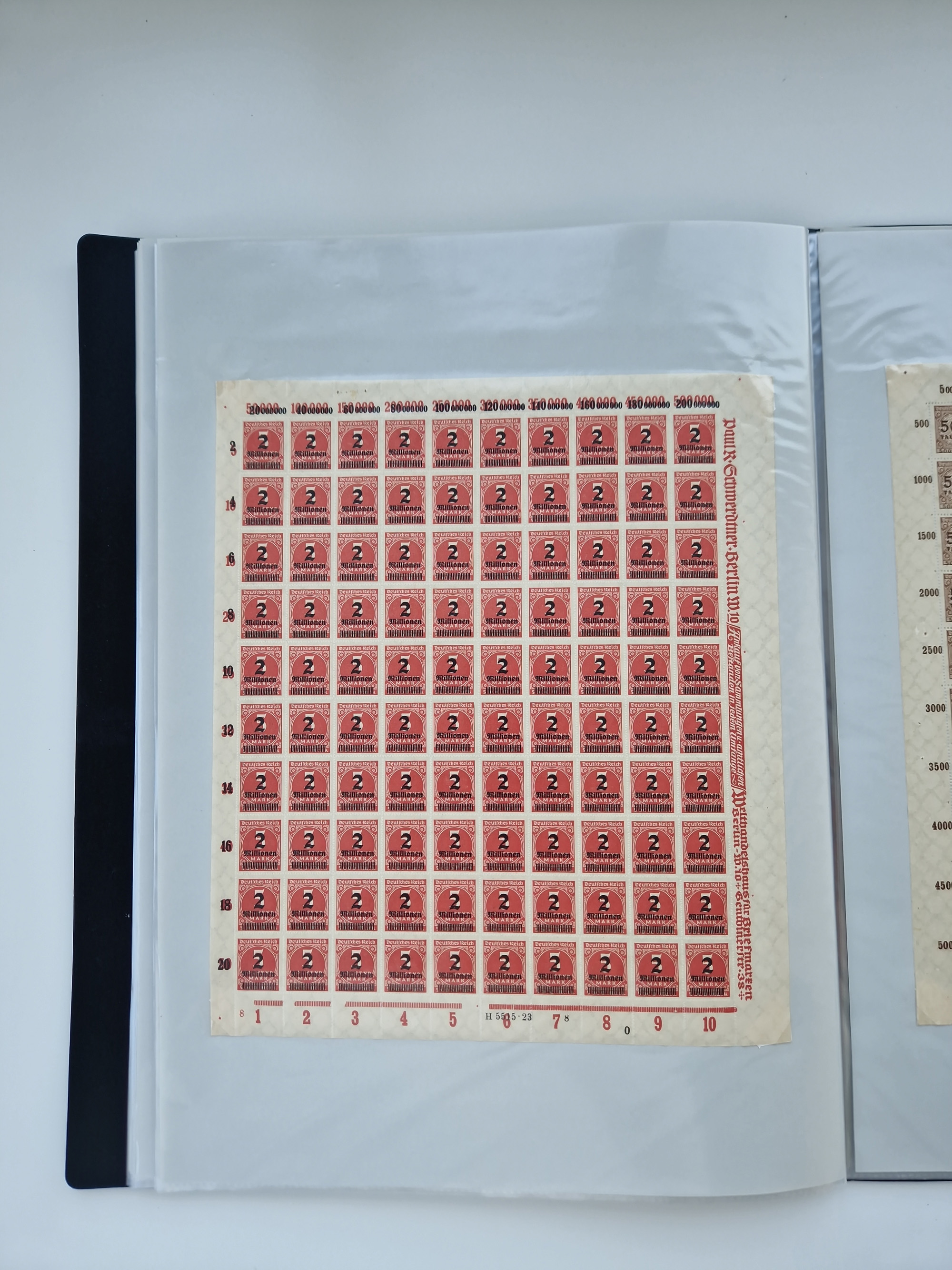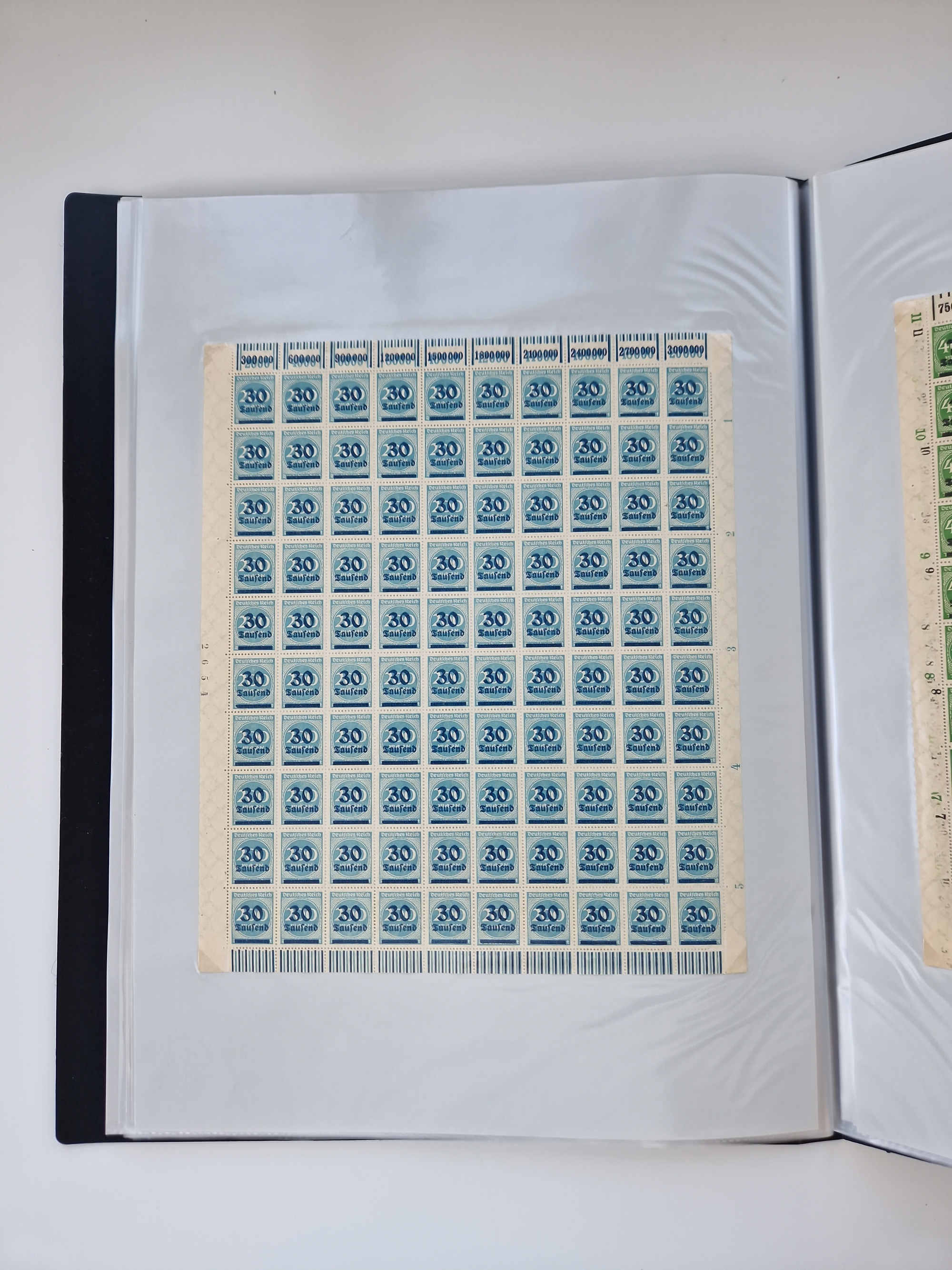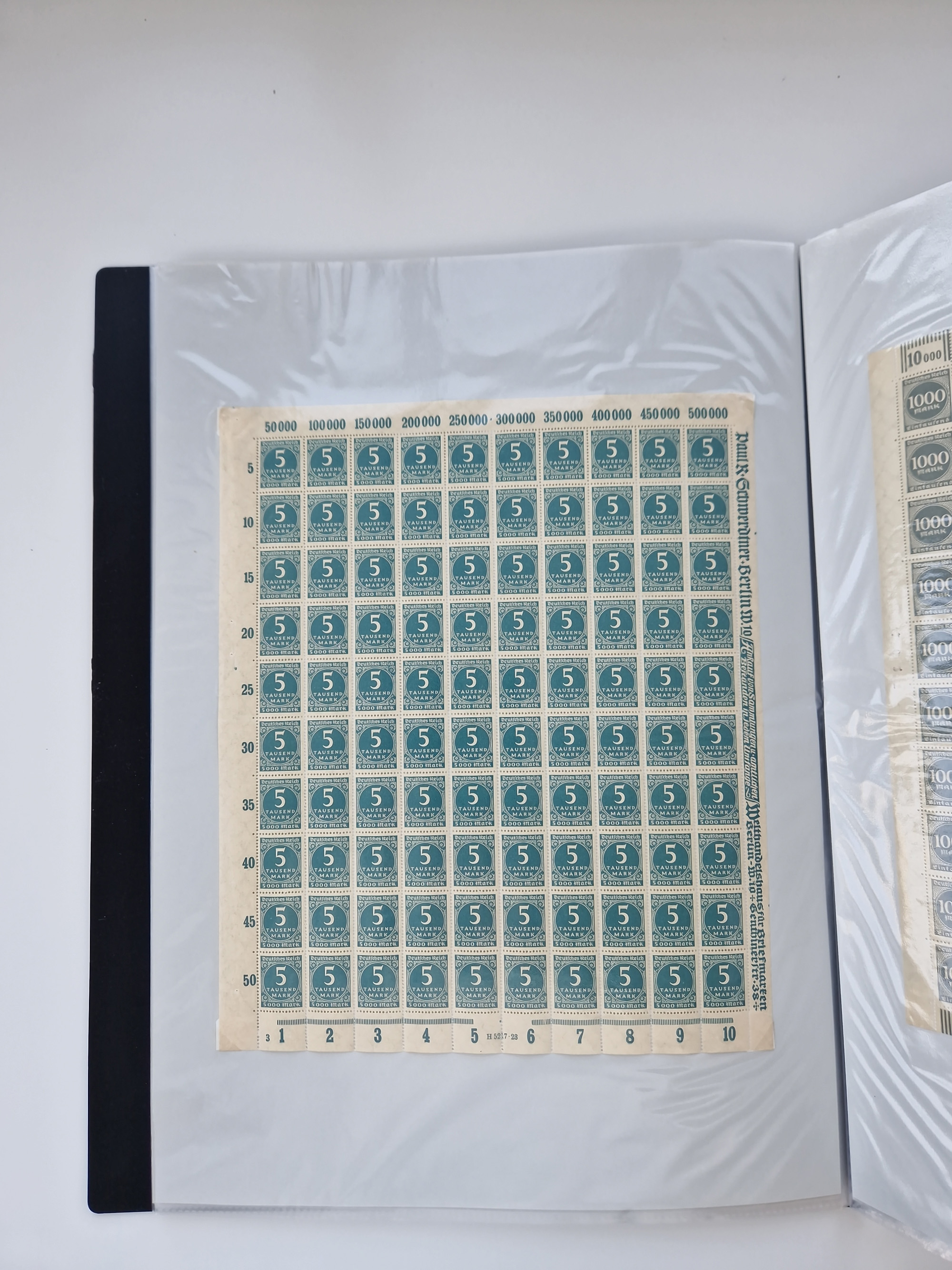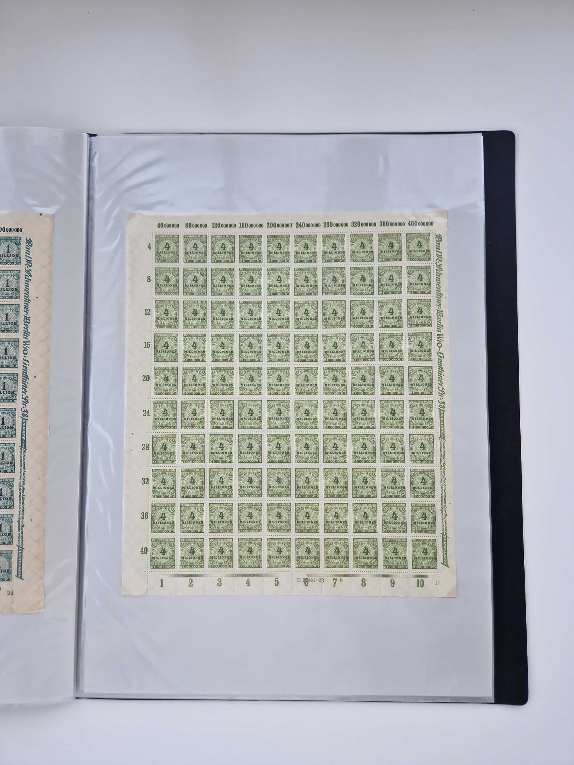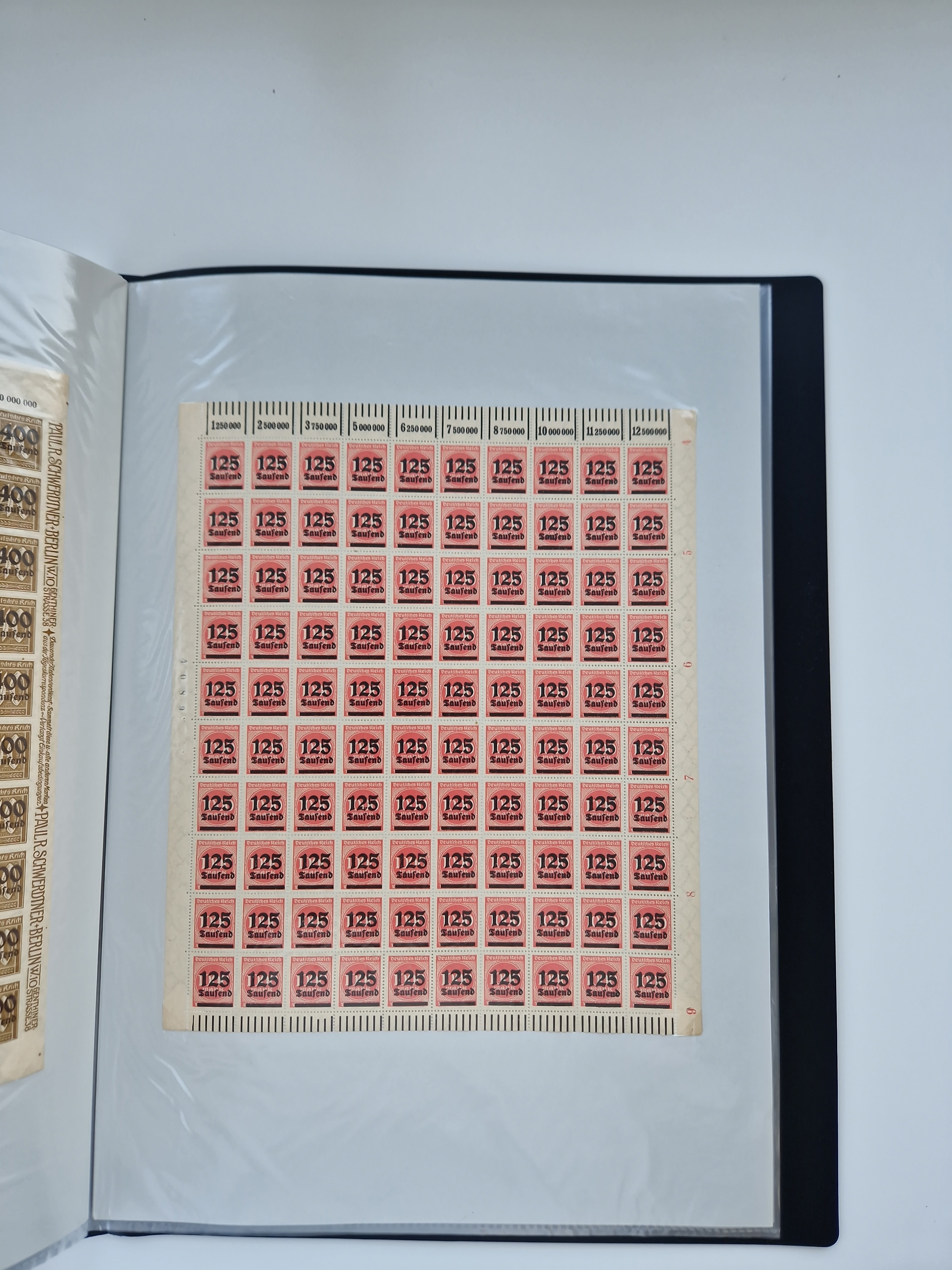 1921/22, postfrischer und ungebrauchter Bestand mit etwas über 200 Bogen und Bogenteilen, dabei Walzen- und Plattenbogen, HAN, Druckereizeichen, Pl.-Nr., auch Wz. Waffeln und Bogentaschen, teils sign. INFLA Berlin, etwas unterschiedliche Erhaltung, in zwei Ordnern