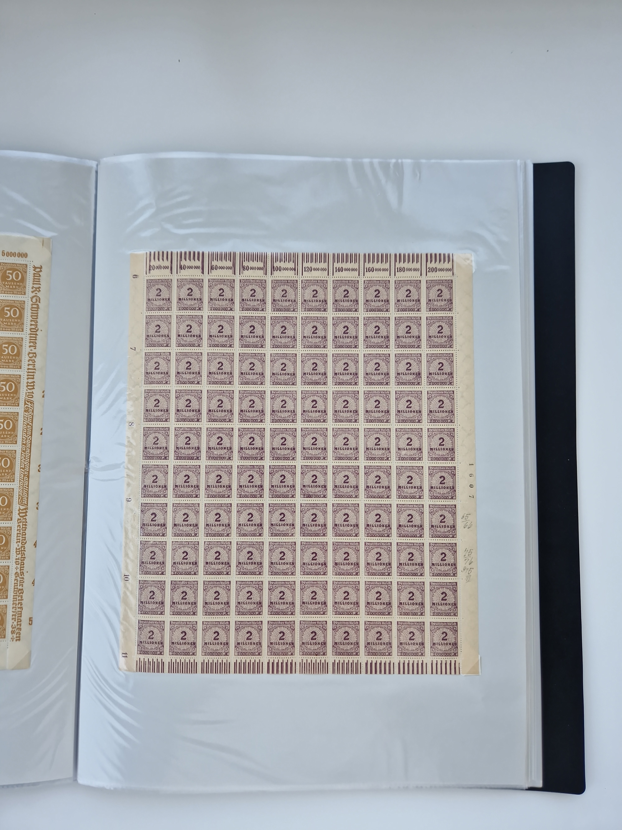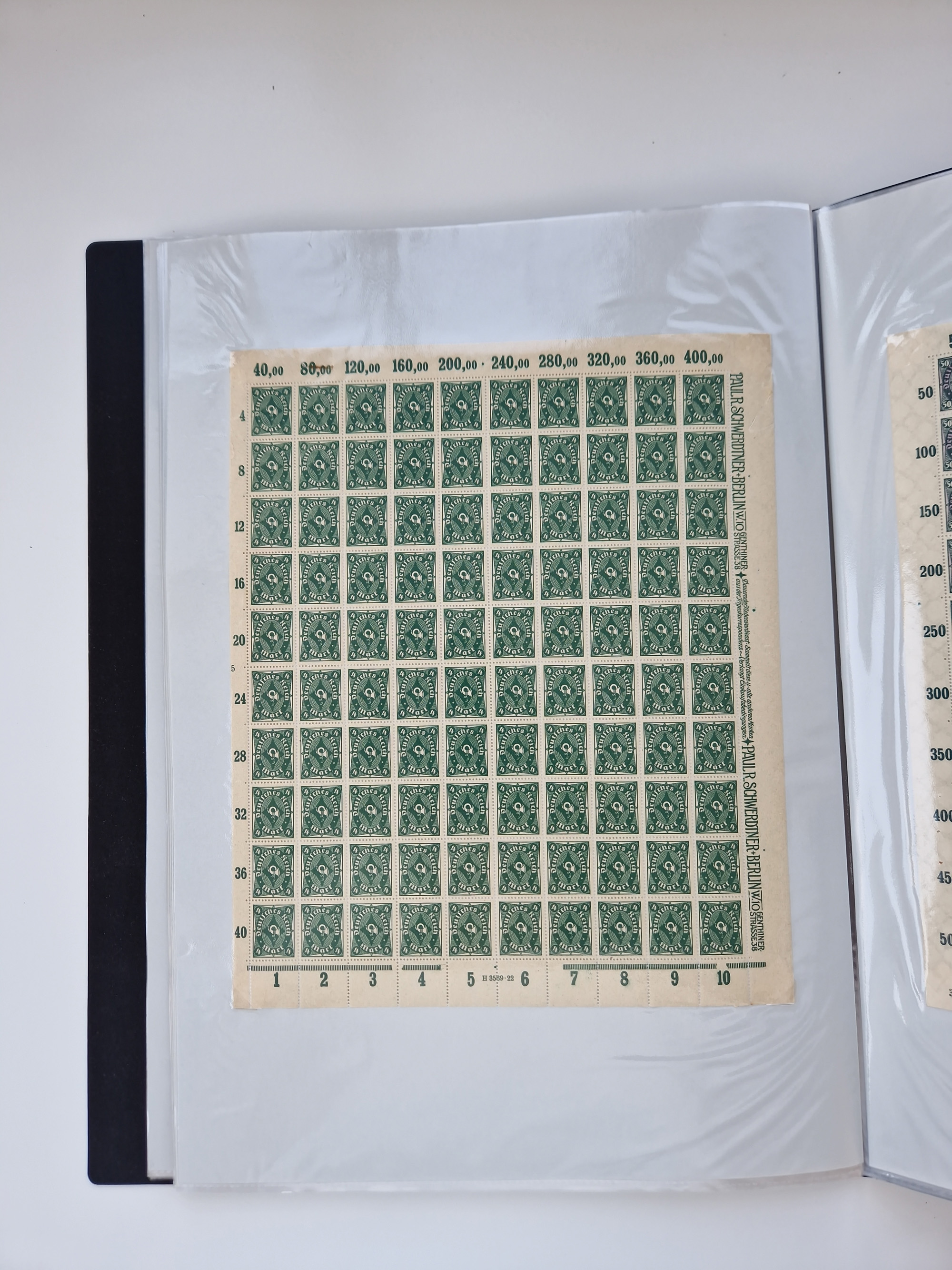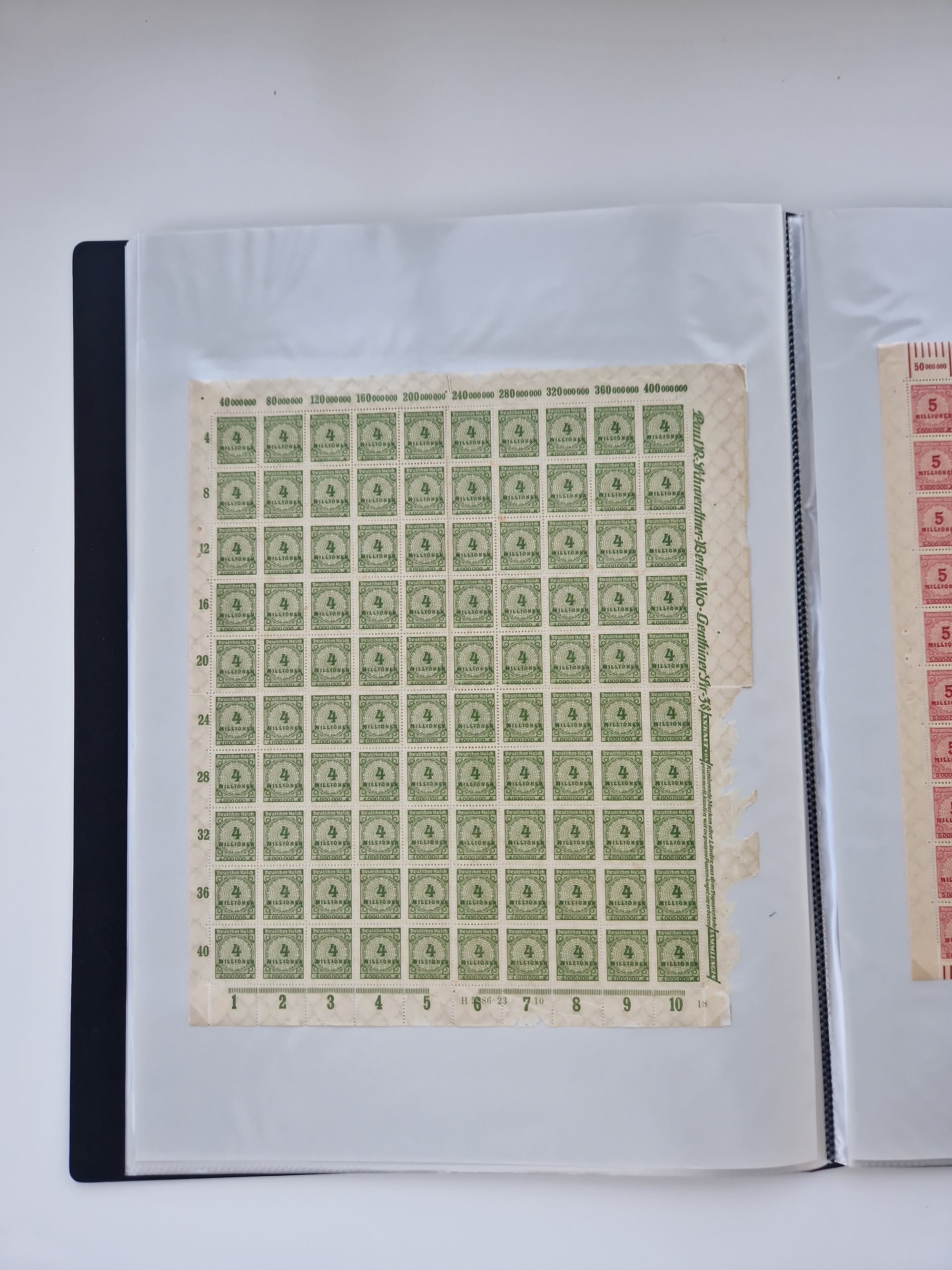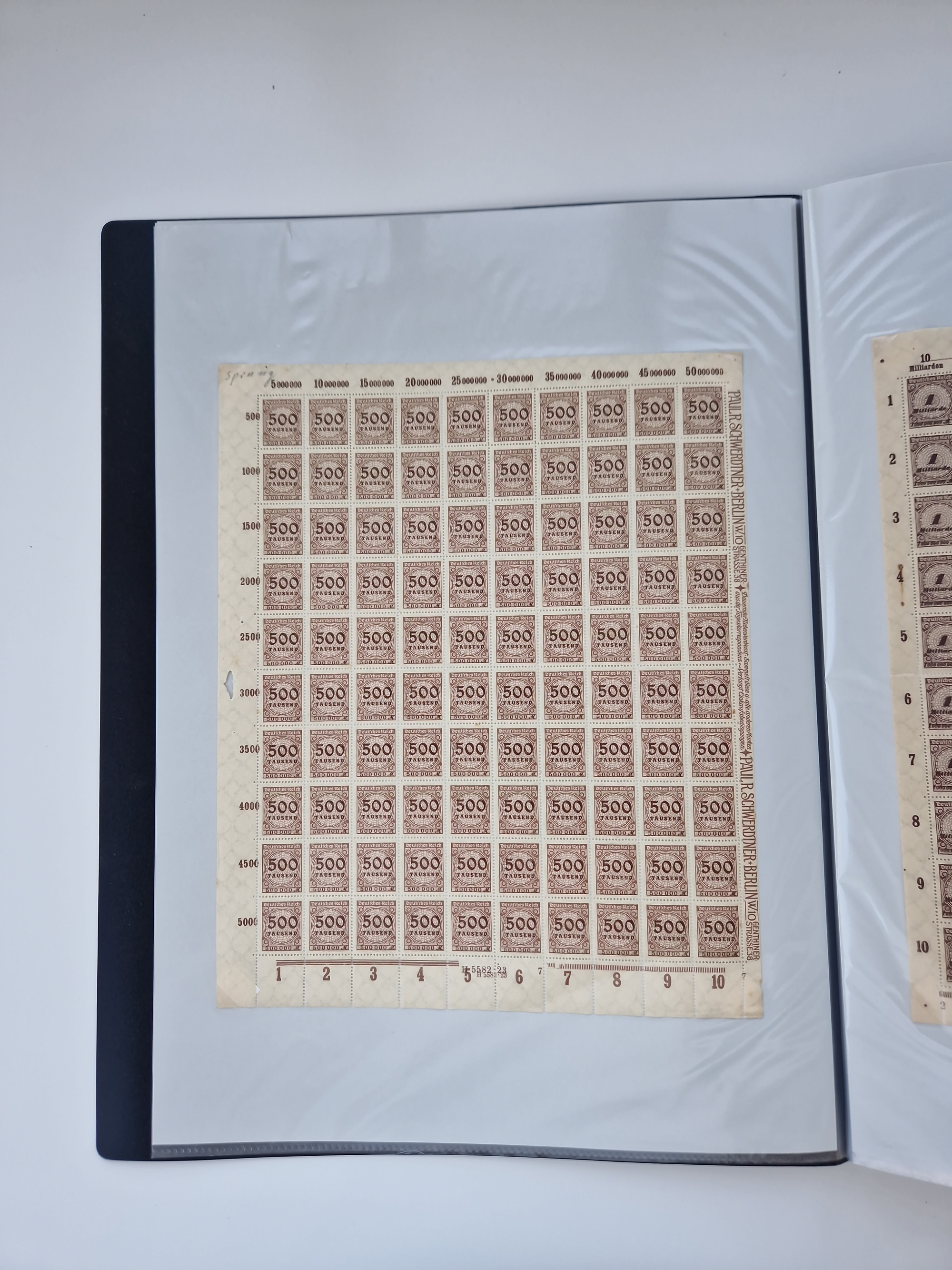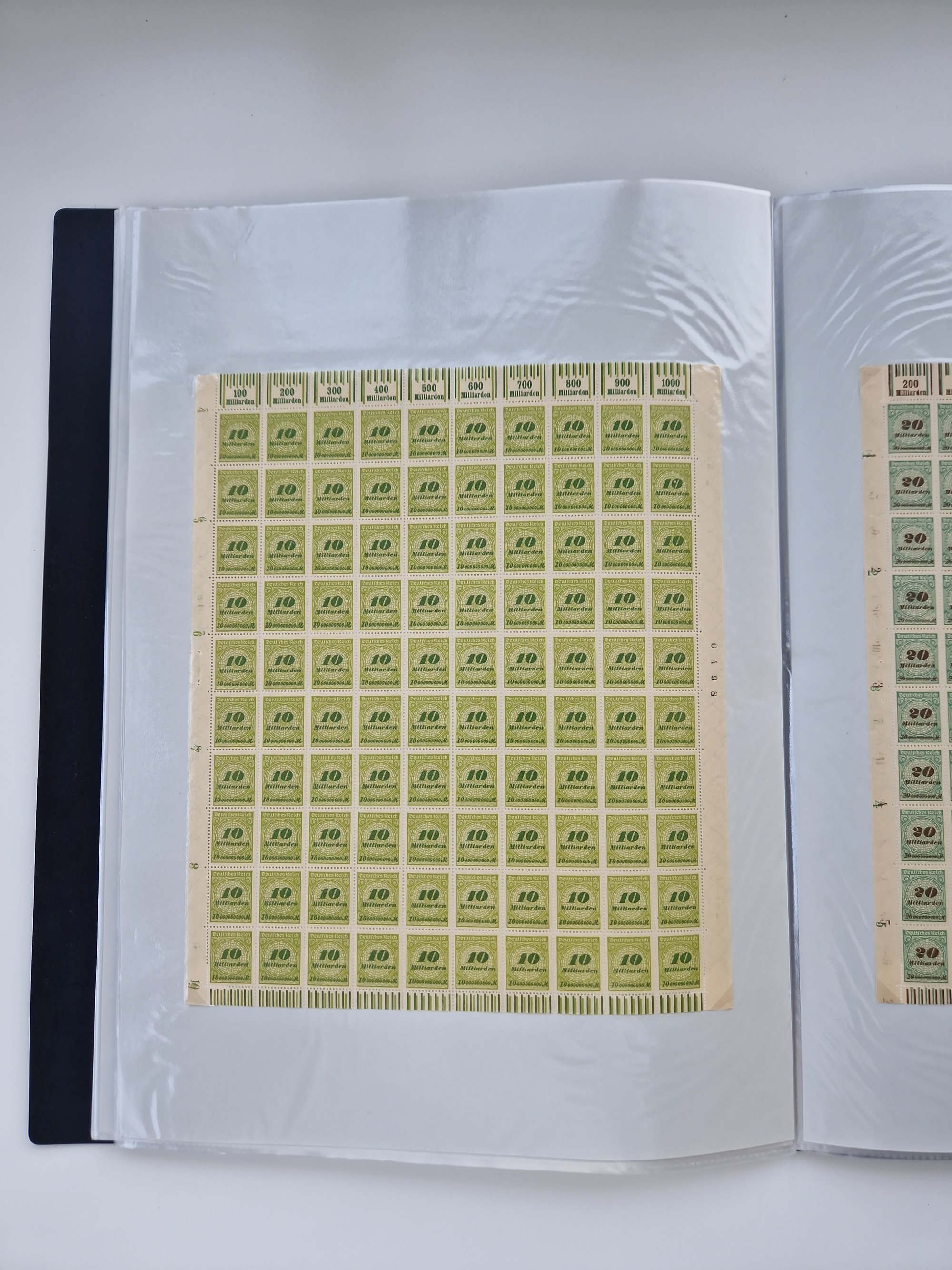 1921/22, postfrischer und ungebrauchter Bestand mit etwas über 200 Bogen und Bogenteilen, dabei Walzen- und Plattenbogen, HAN, Druckereizeichen, Pl.-Nr., auch Wz. Waffeln und Bogentaschen, teils sign. INFLA Berlin, etwas unterschiedliche Erhaltung, in zwei Ordnern