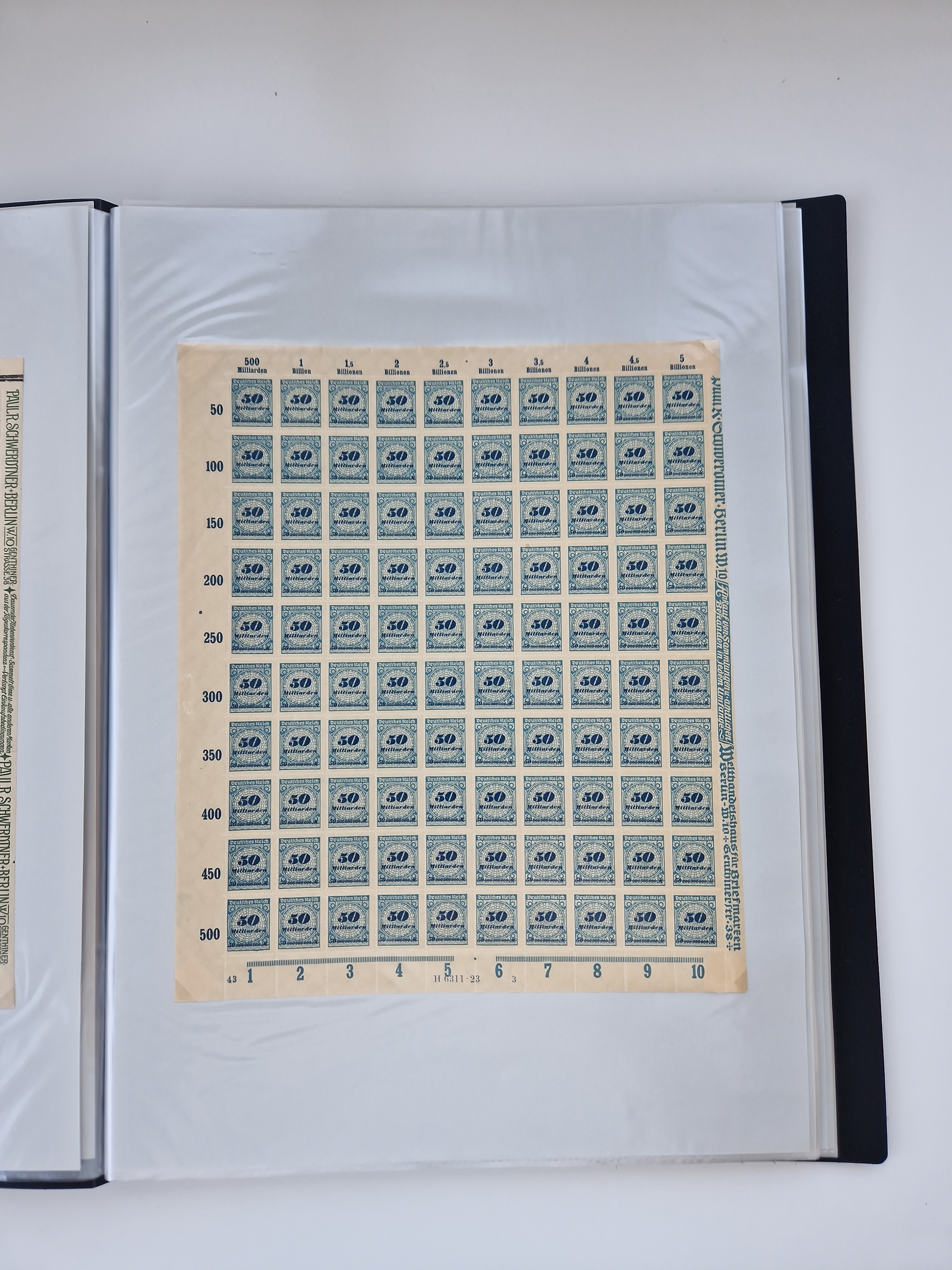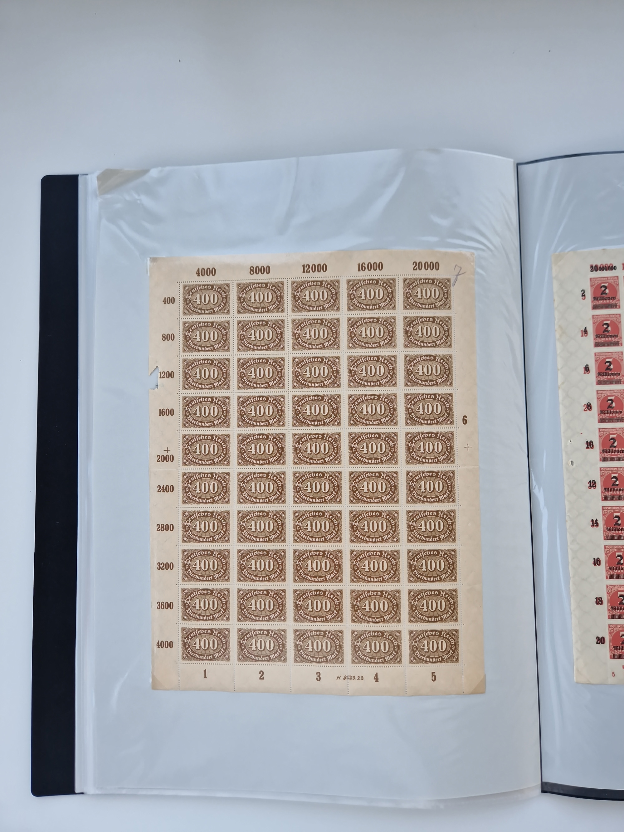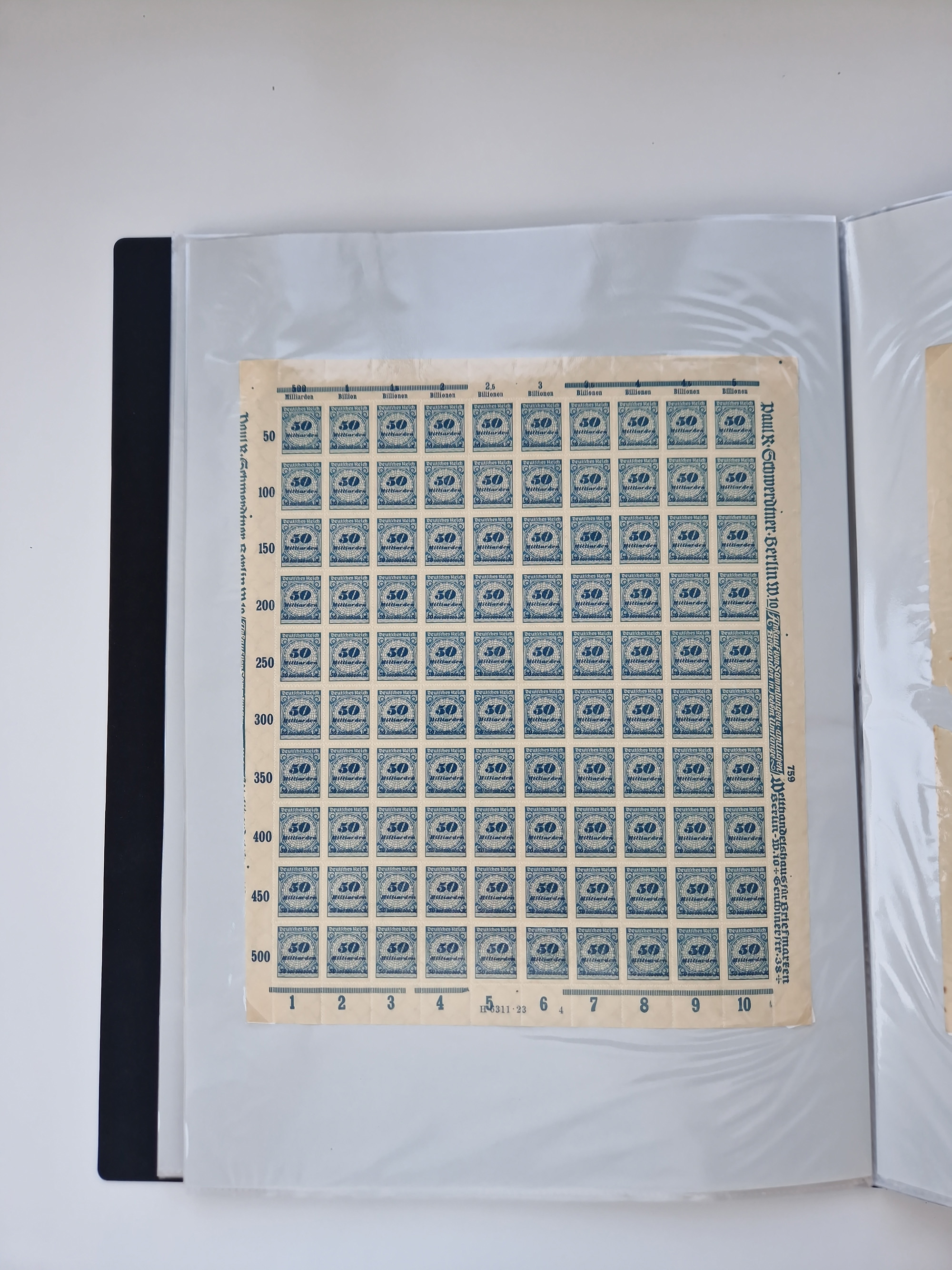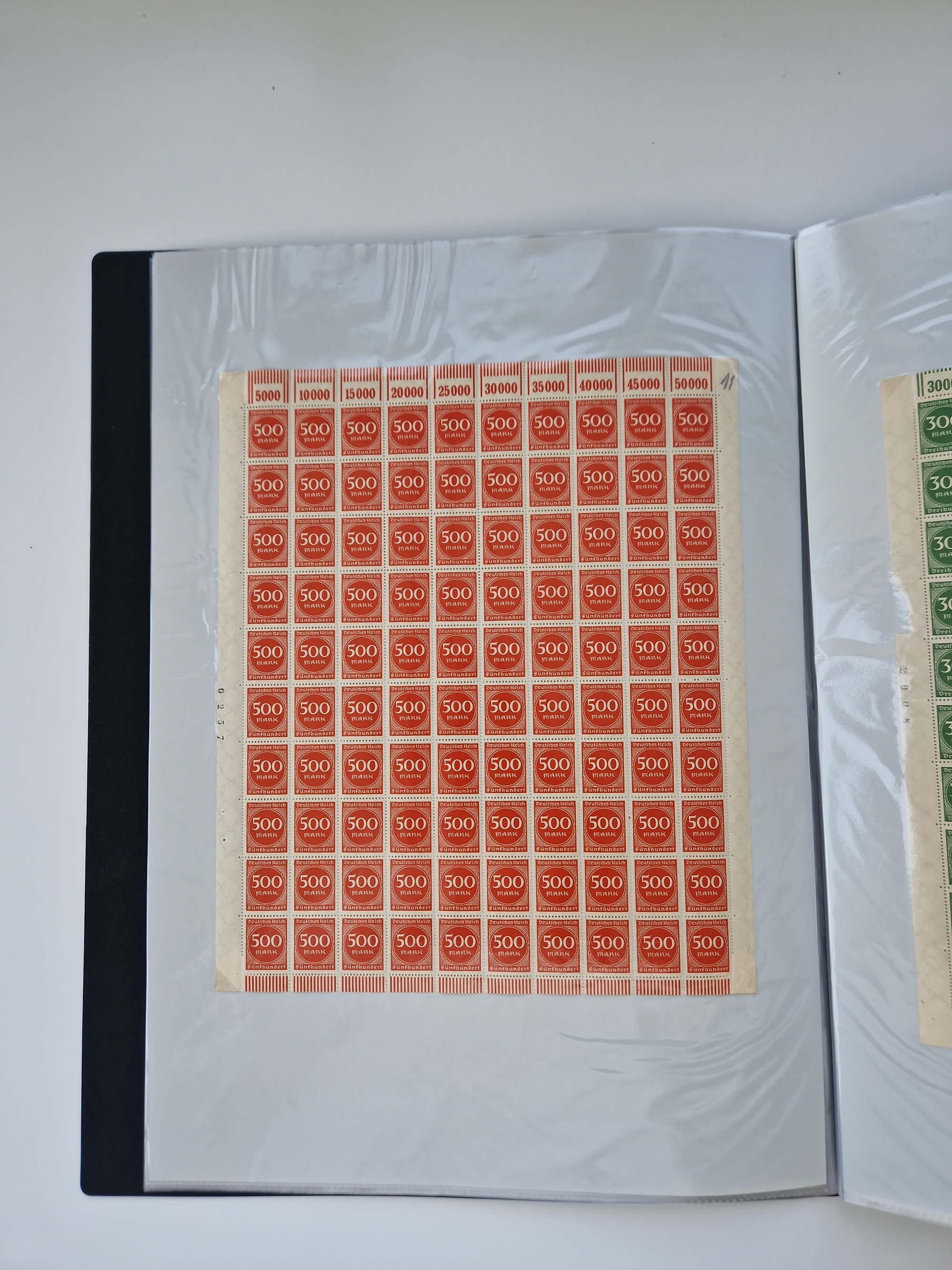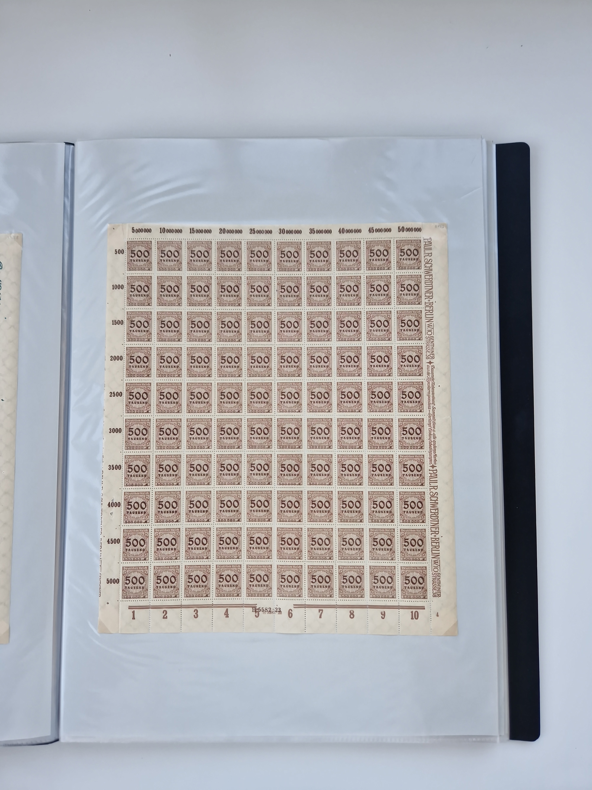 1921/22, postfrischer und ungebrauchter Bestand mit etwas über 200 Bogen und Bogenteilen, dabei Walzen- und Plattenbogen, HAN, Druckereizeichen, Pl.-Nr., auch Wz. Waffeln und Bogentaschen, teils sign. INFLA Berlin, etwas unterschiedliche Erhaltung, in zwei Ordnern