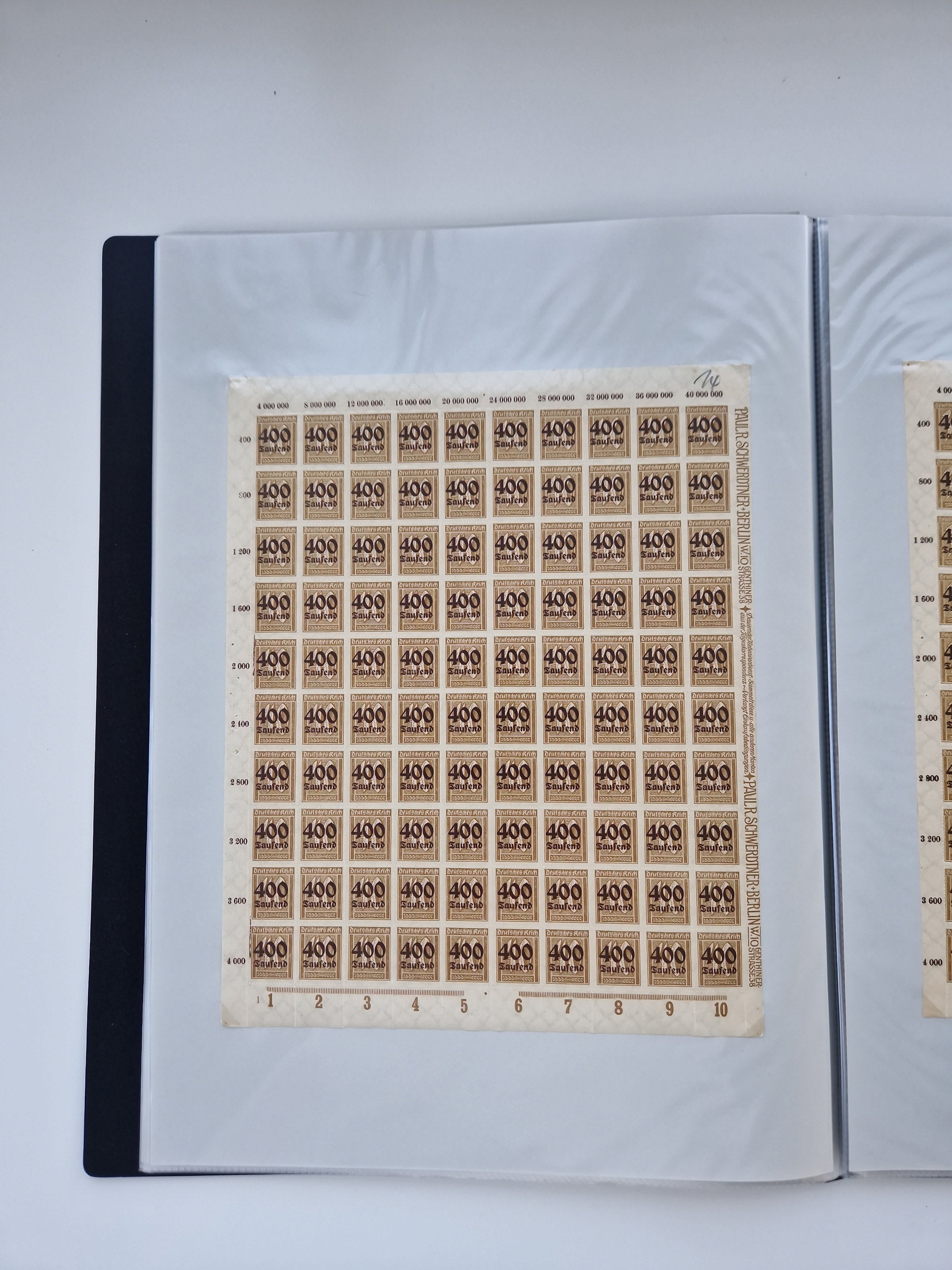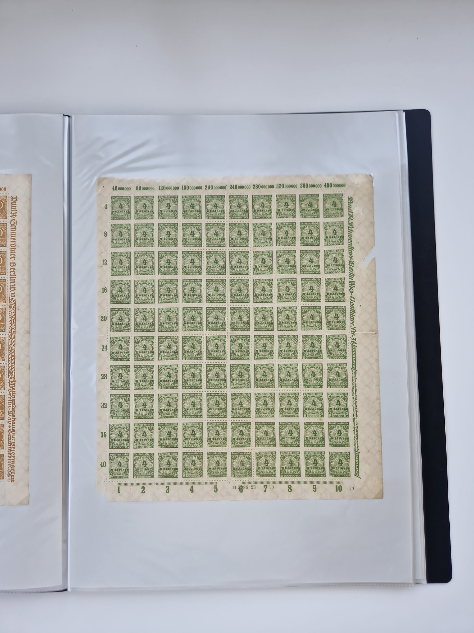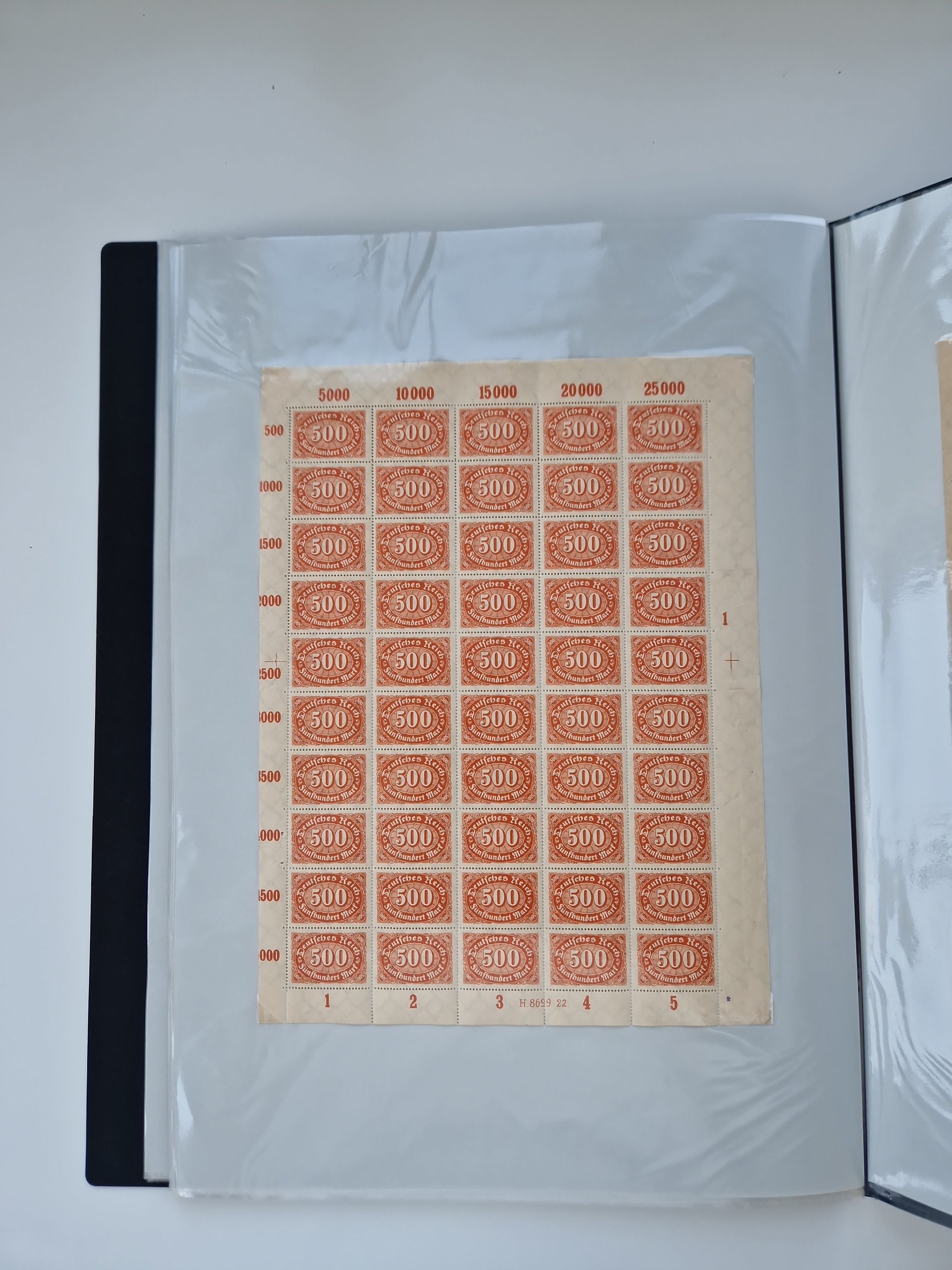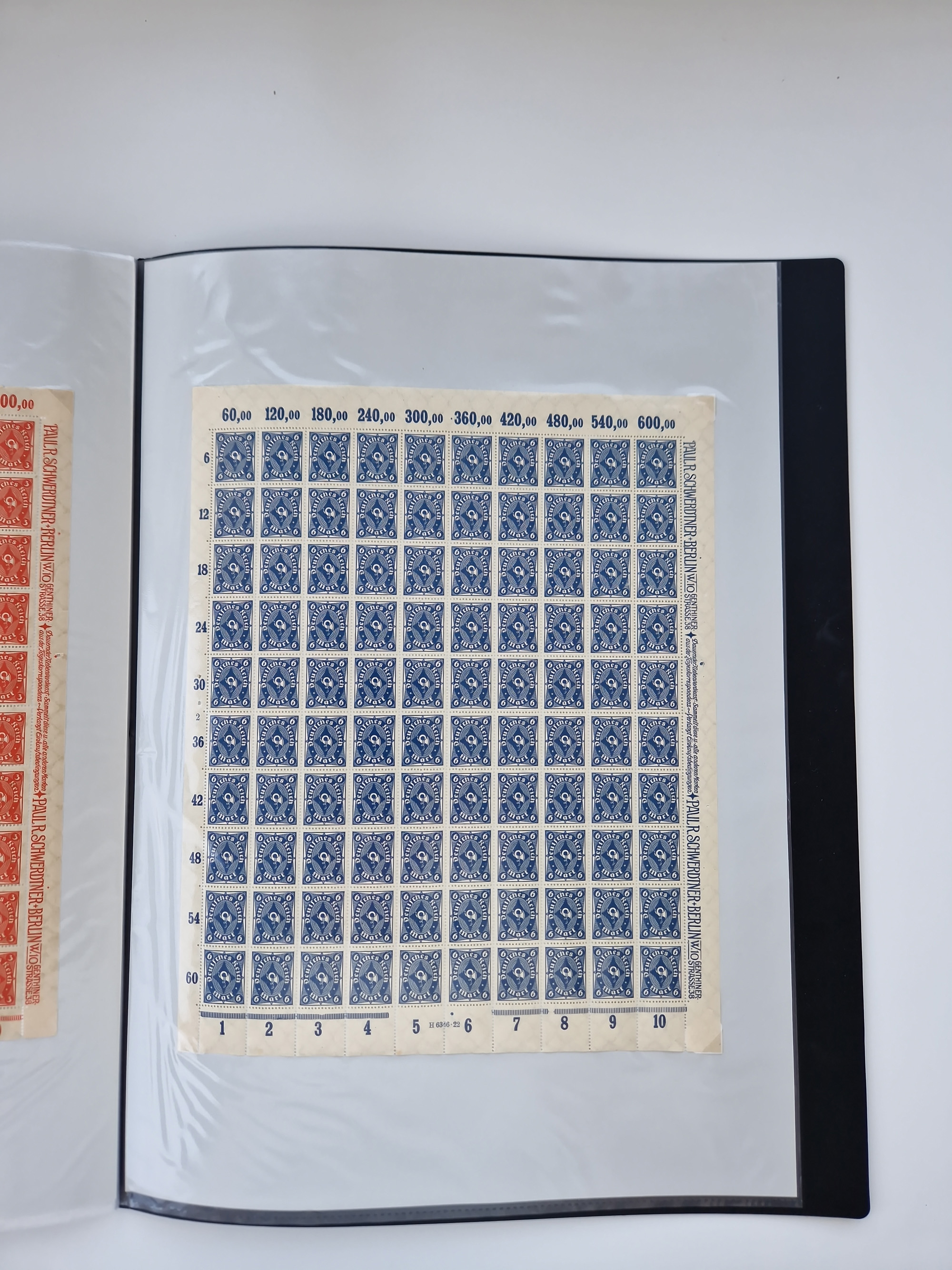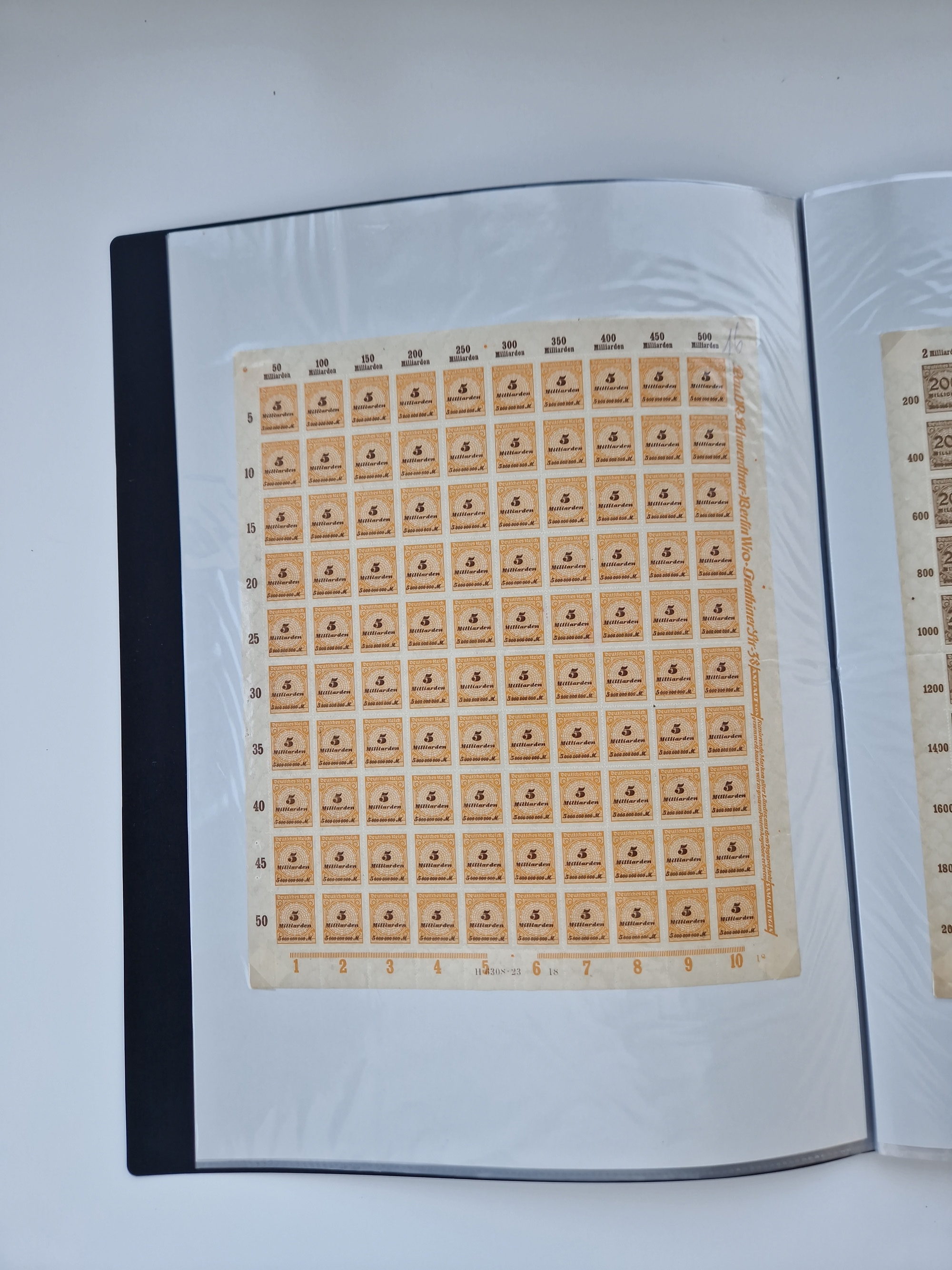 1921/22, postfrischer und ungebrauchter Bestand mit etwas über 200 Bogen und Bogenteilen, dabei Walzen- und Plattenbogen, HAN, Druckereizeichen, Pl.-Nr., auch Wz. Waffeln und Bogentaschen, teils sign. INFLA Berlin, etwas unterschiedliche Erhaltung, in zwei Ordnern