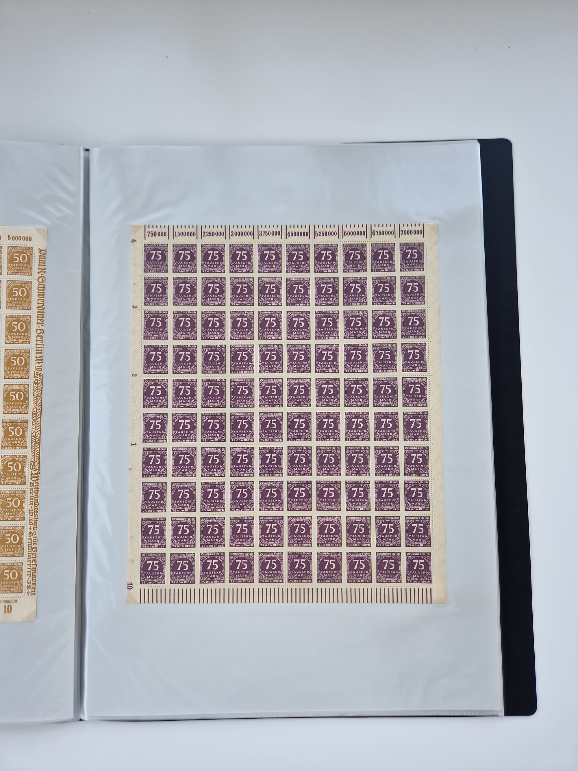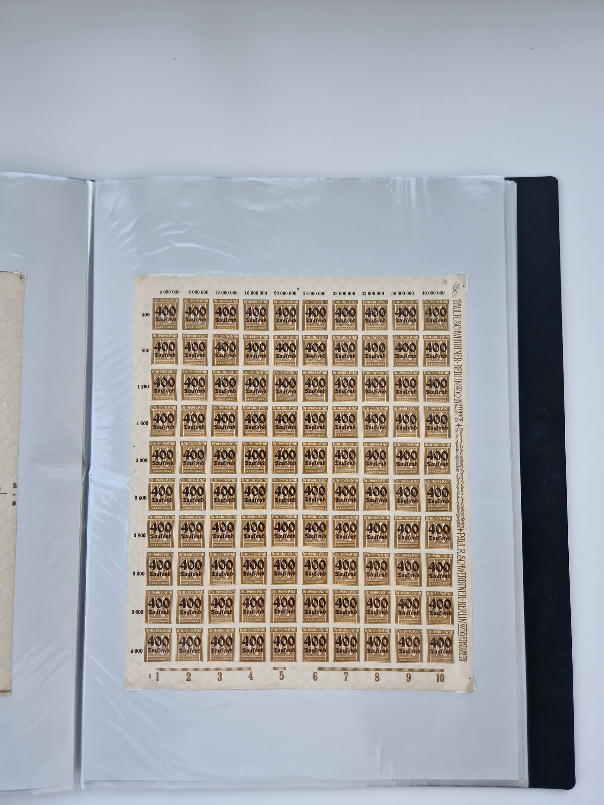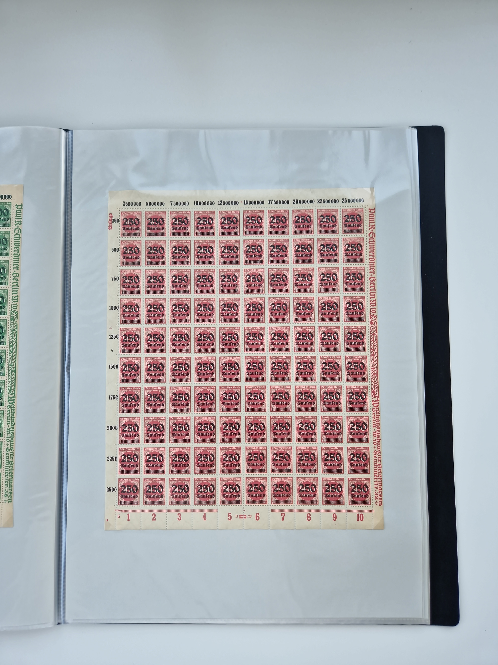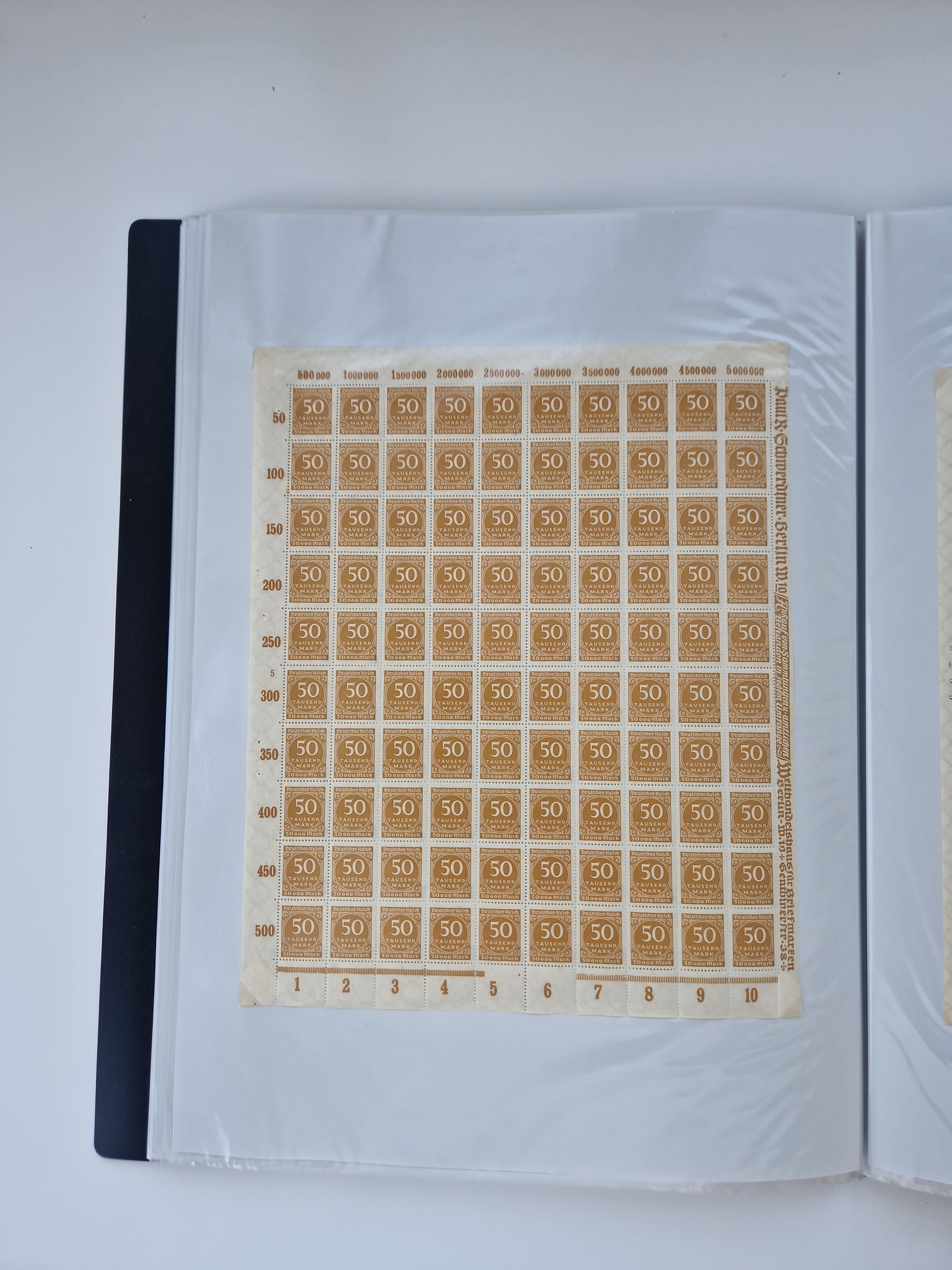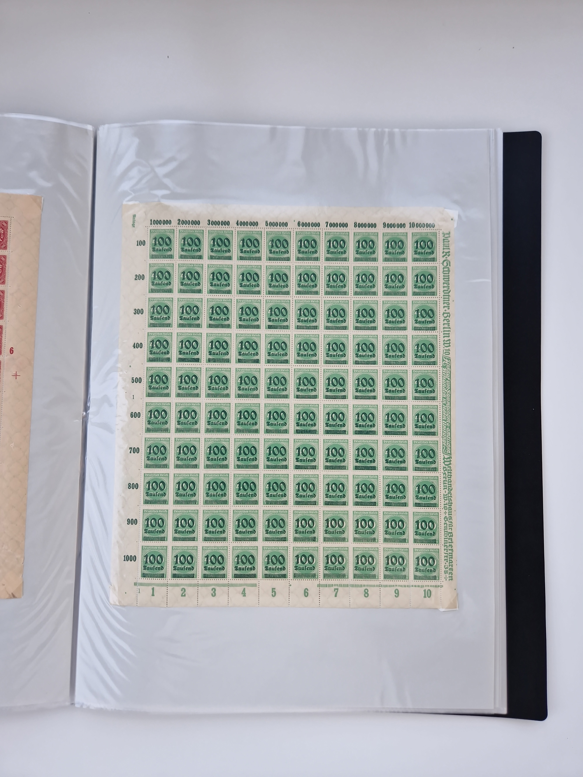 1921/22, postfrischer und ungebrauchter Bestand mit etwas über 200 Bogen und Bogenteilen, dabei Walzen- und Plattenbogen, HAN, Druckereizeichen, Pl.-Nr., auch Wz. Waffeln und Bogentaschen, teils sign. INFLA Berlin, etwas unterschiedliche Erhaltung, in zwei Ordnern