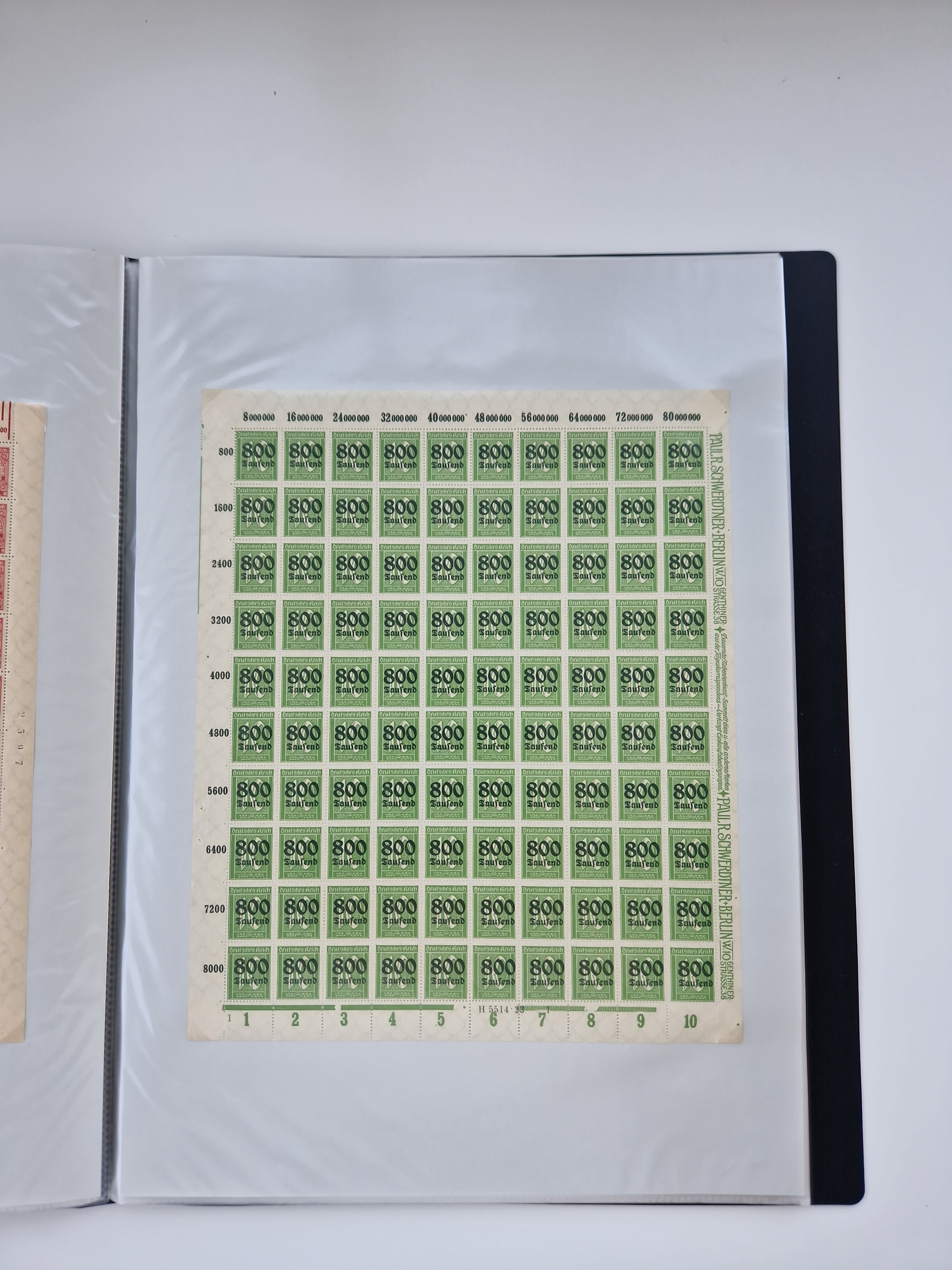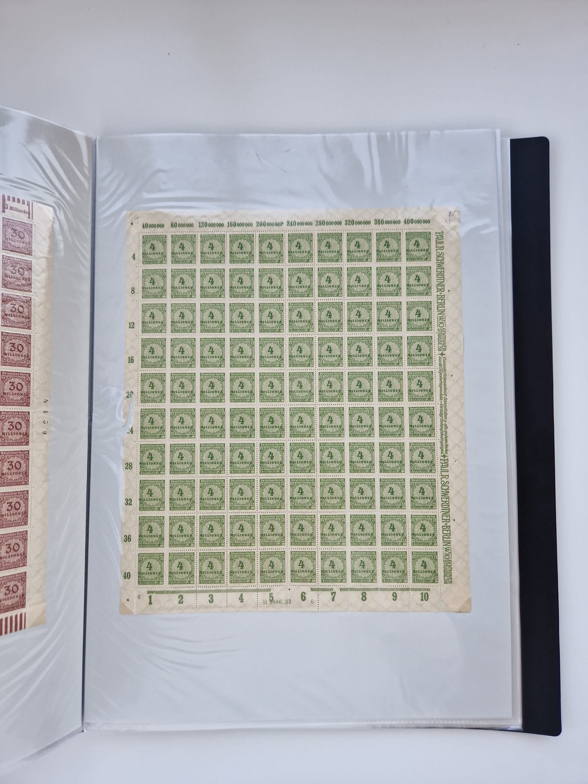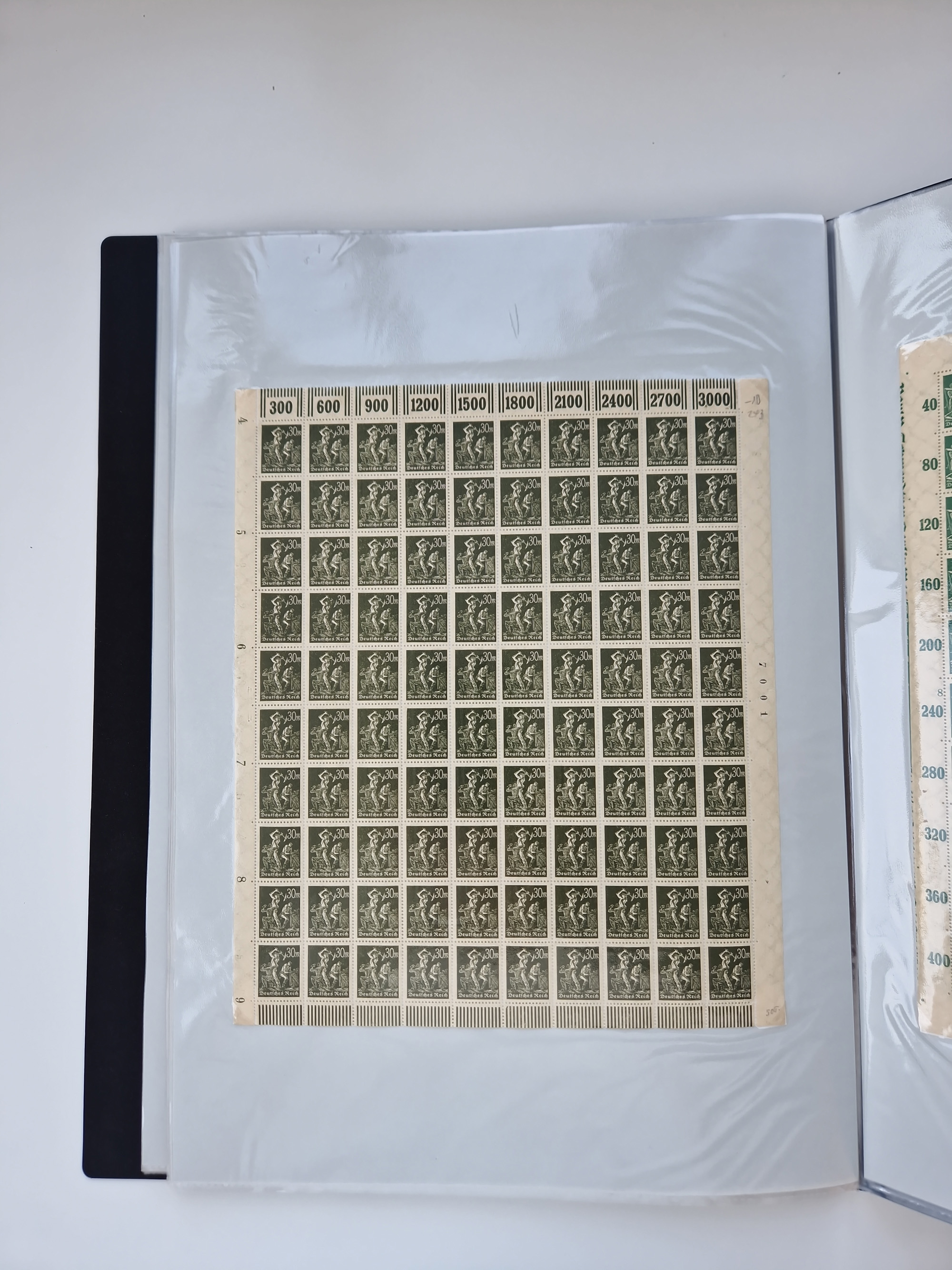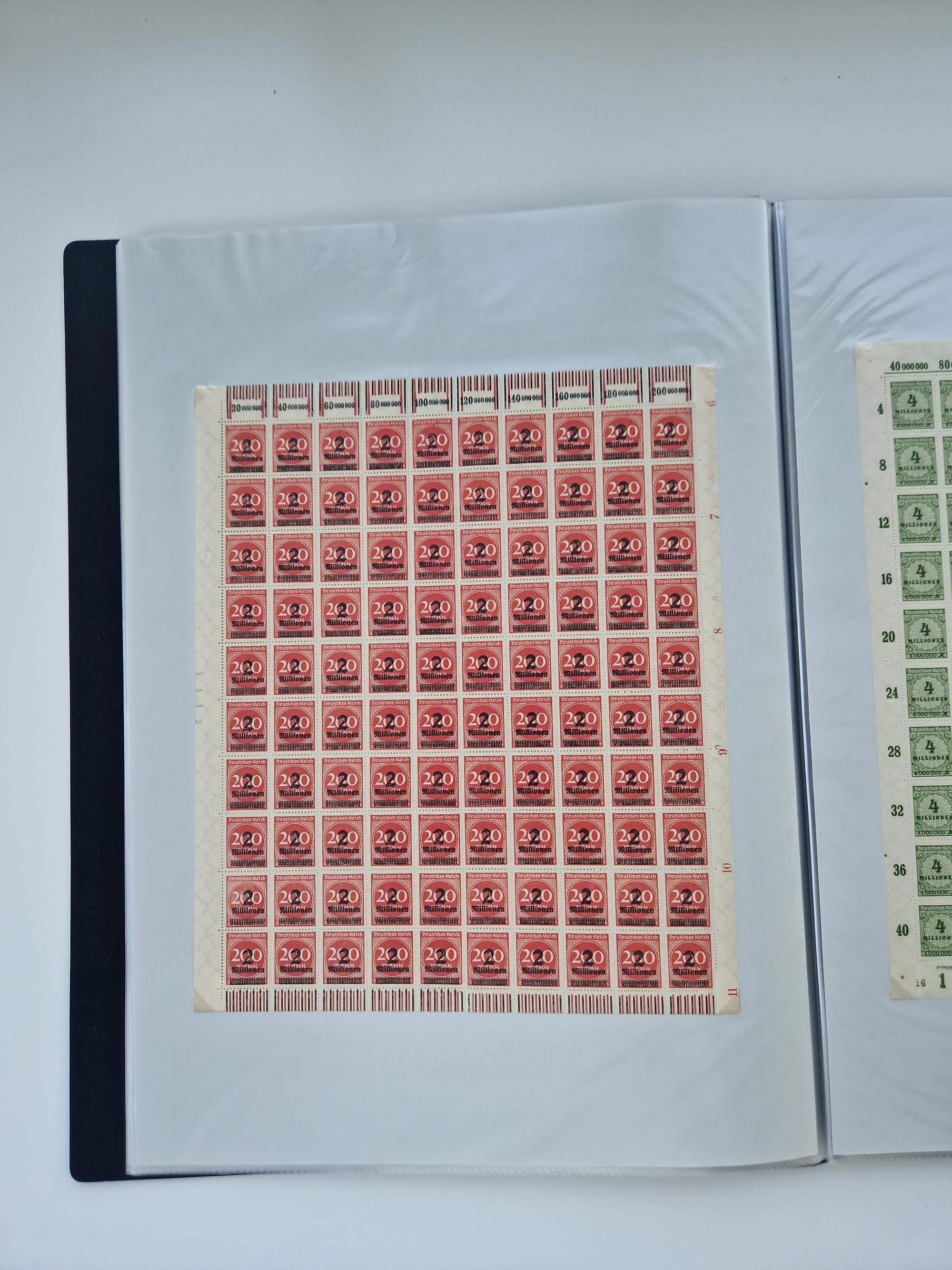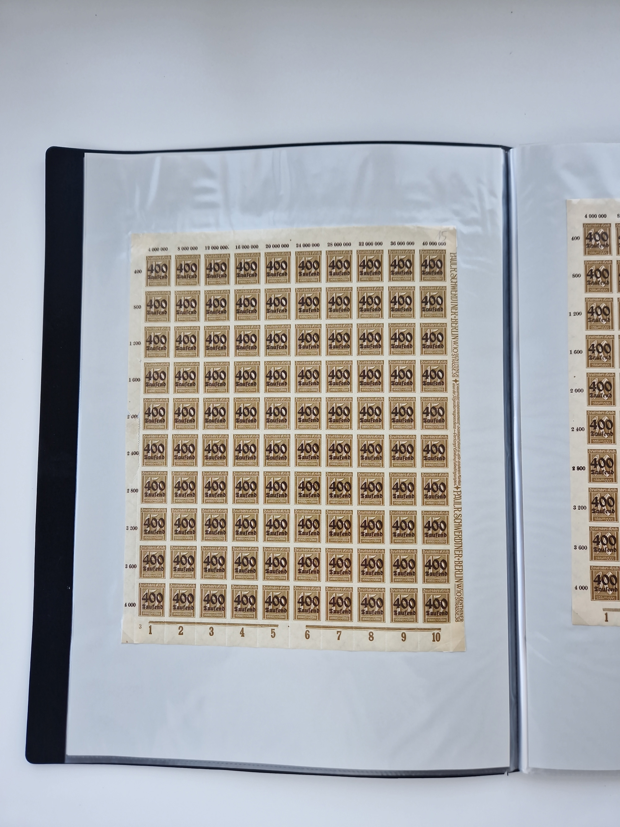 1921/22, postfrischer und ungebrauchter Bestand mit etwas über 200 Bogen und Bogenteilen, dabei Walzen- und Plattenbogen, HAN, Druckereizeichen, Pl.-Nr., auch Wz. Waffeln und Bogentaschen, teils sign. INFLA Berlin, etwas unterschiedliche Erhaltung, in zwei Ordnern