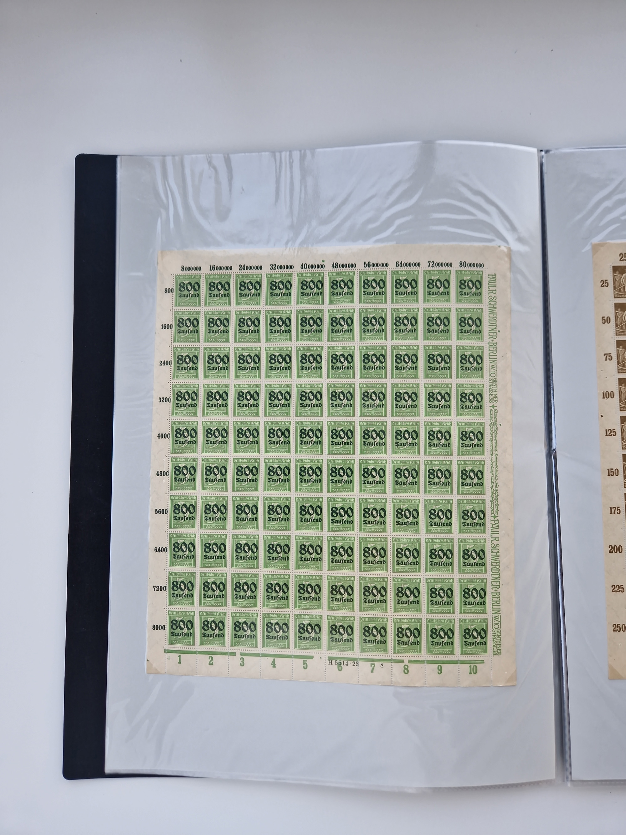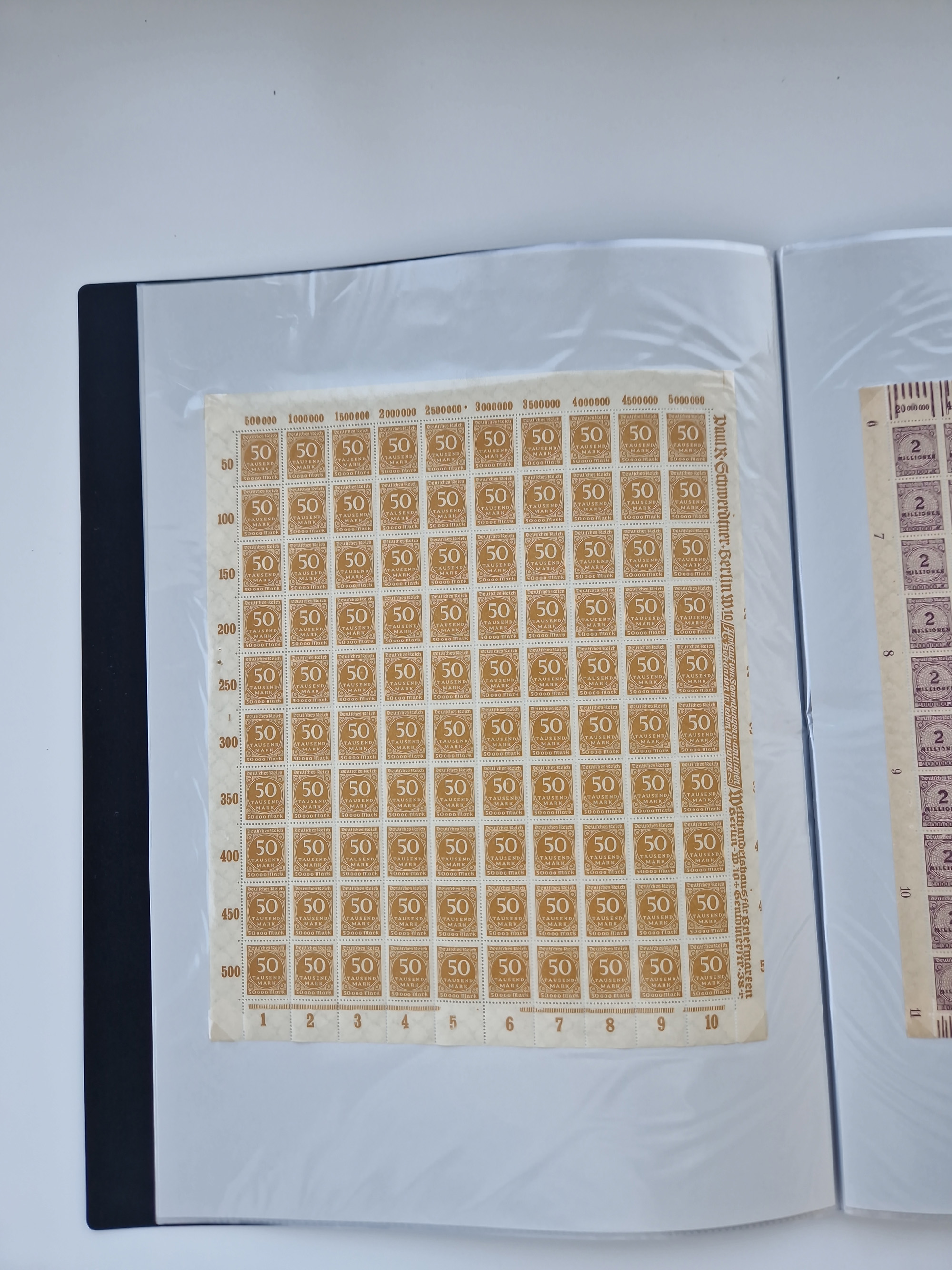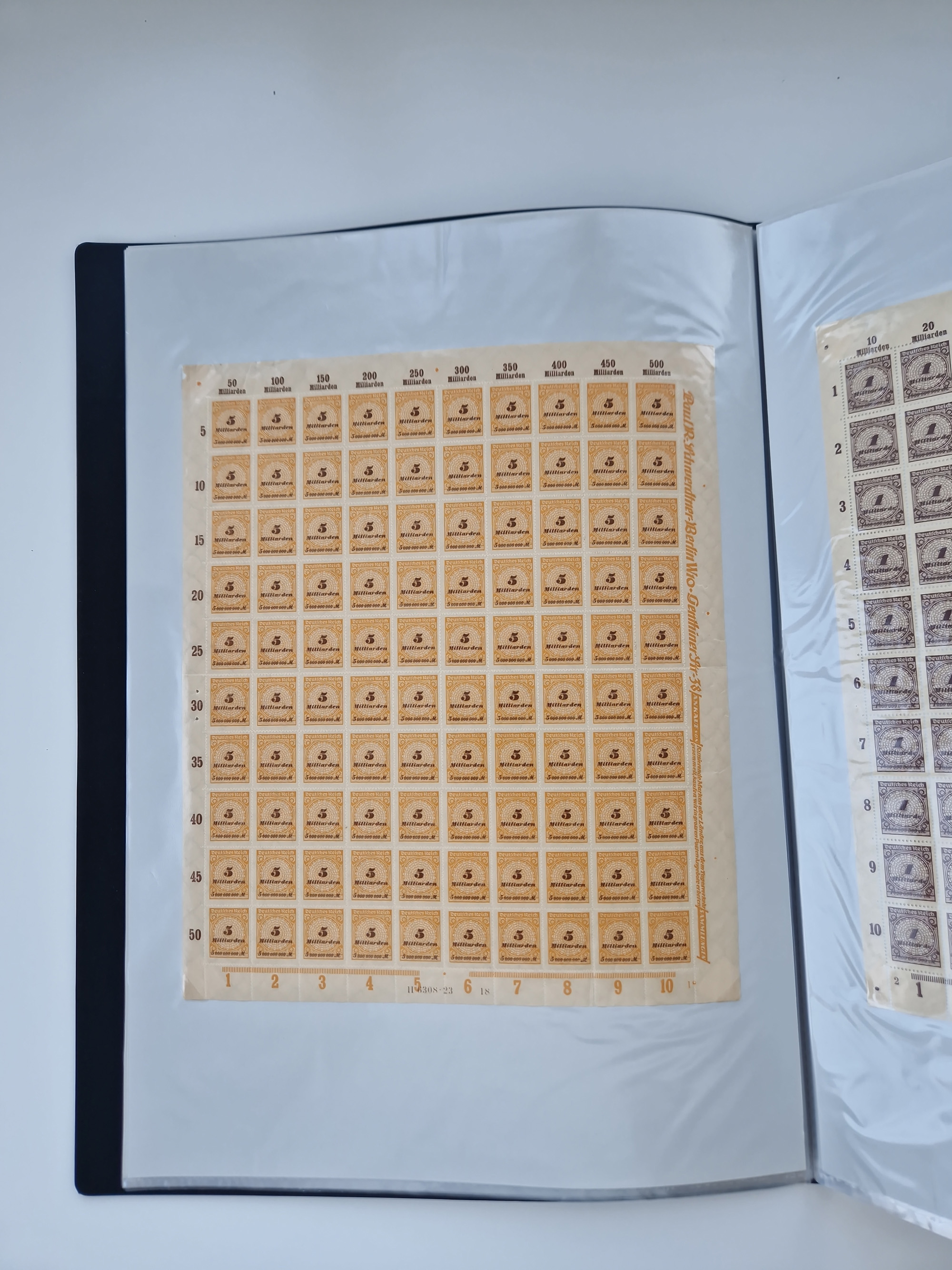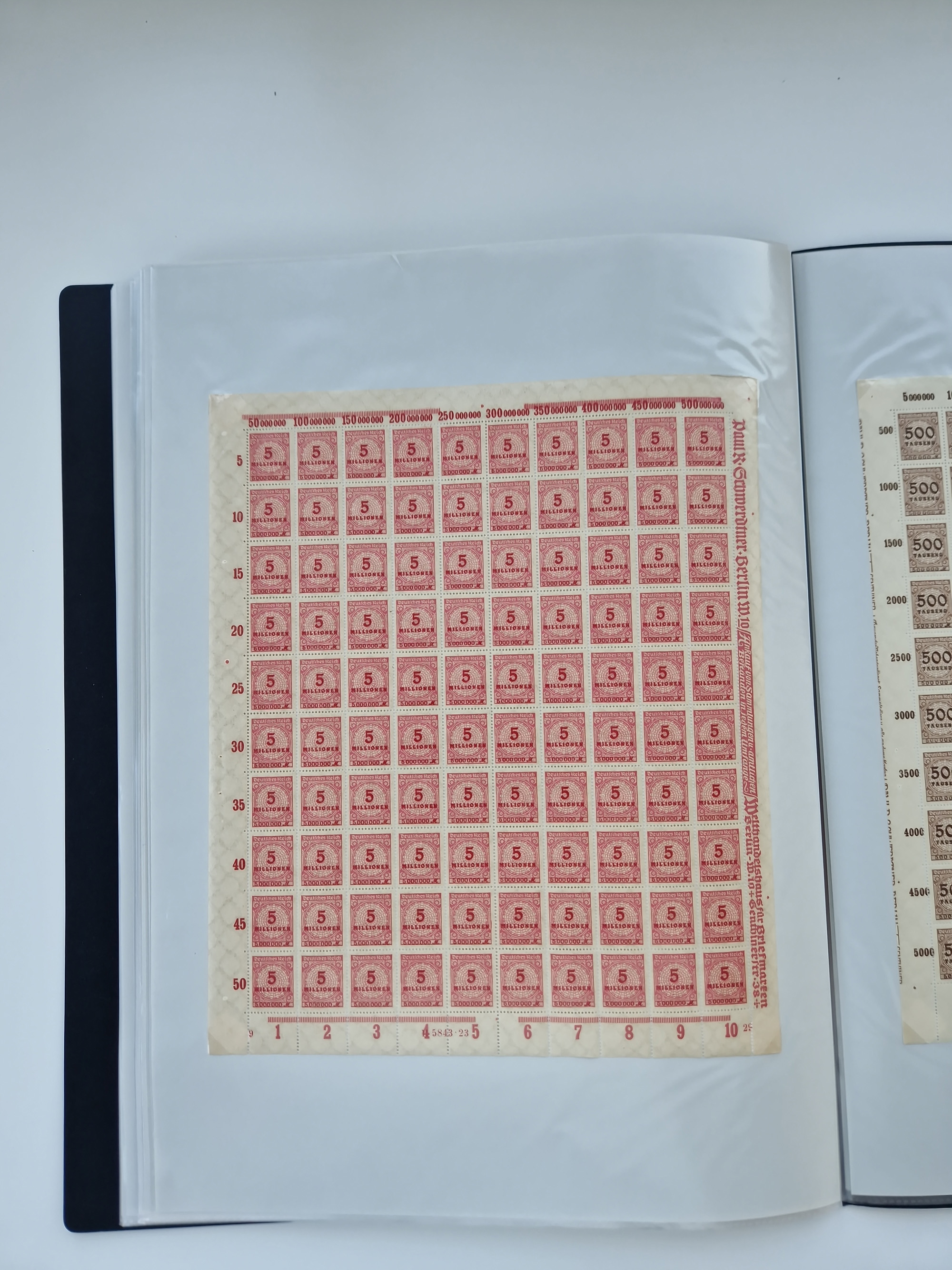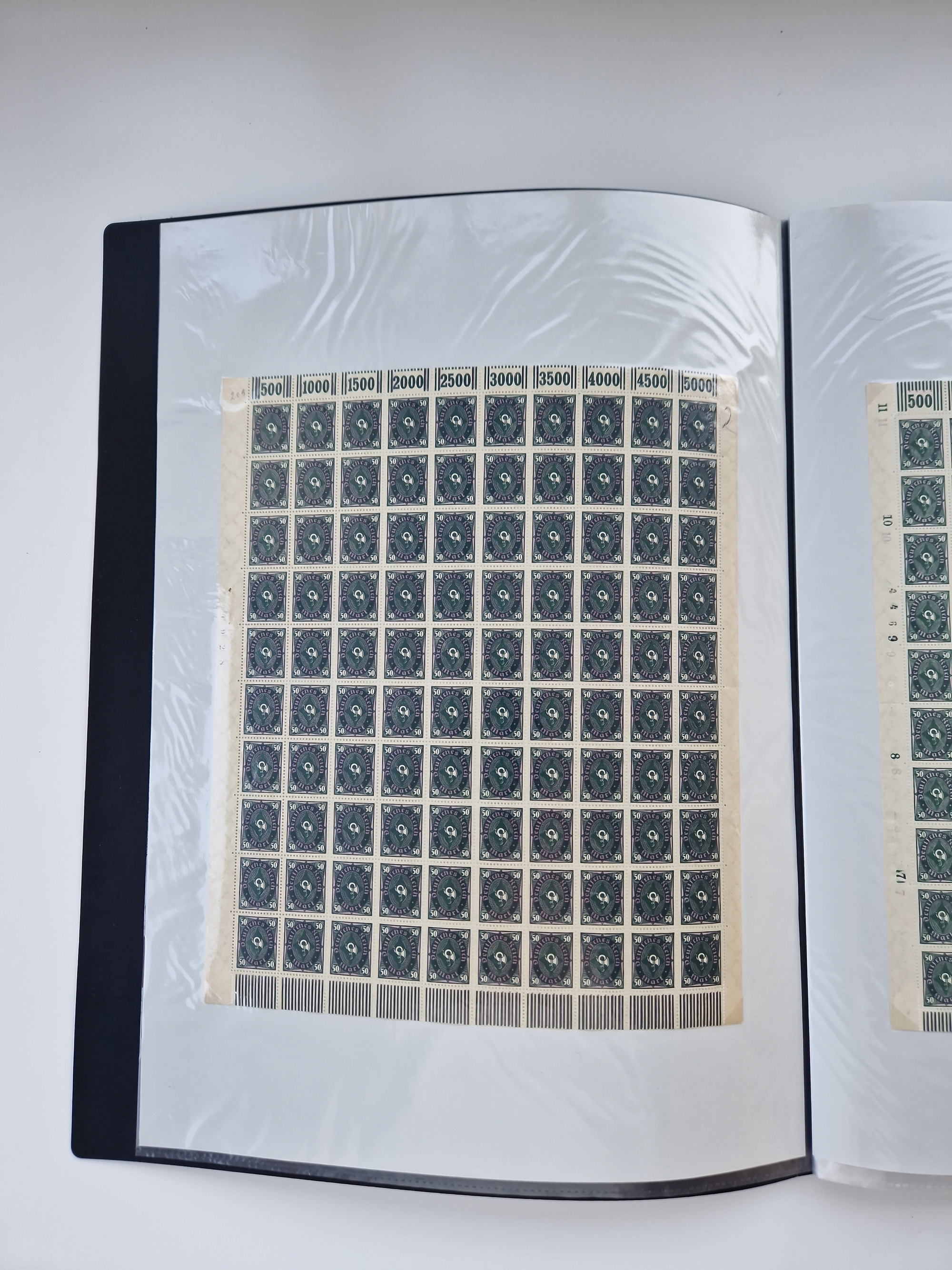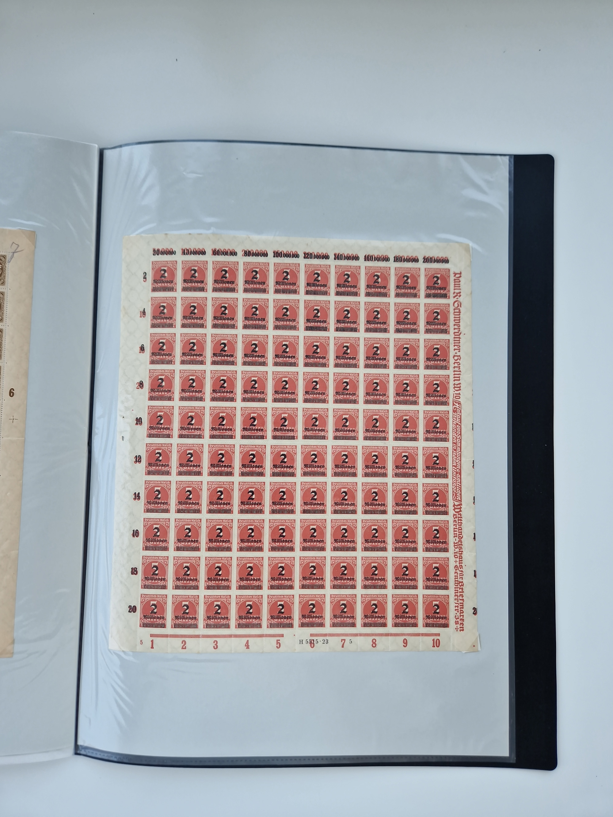 1921/22, postfrischer und ungebrauchter Bestand mit etwas über 200 Bogen und Bogenteilen, dabei Walzen- und Plattenbogen, HAN, Druckereizeichen, Pl.-Nr., auch Wz. Waffeln und Bogentaschen, teils sign. INFLA Berlin, etwas unterschiedliche Erhaltung, in zwei Ordnern
