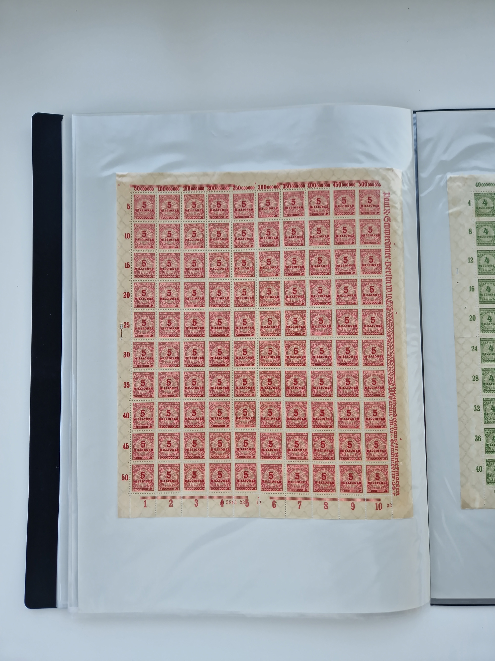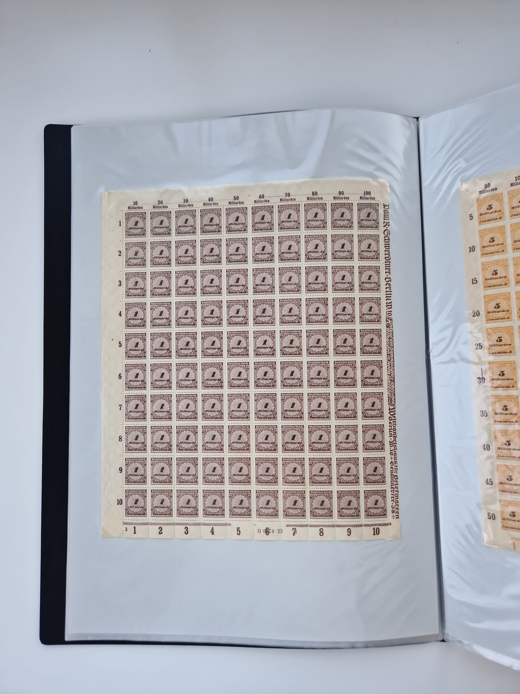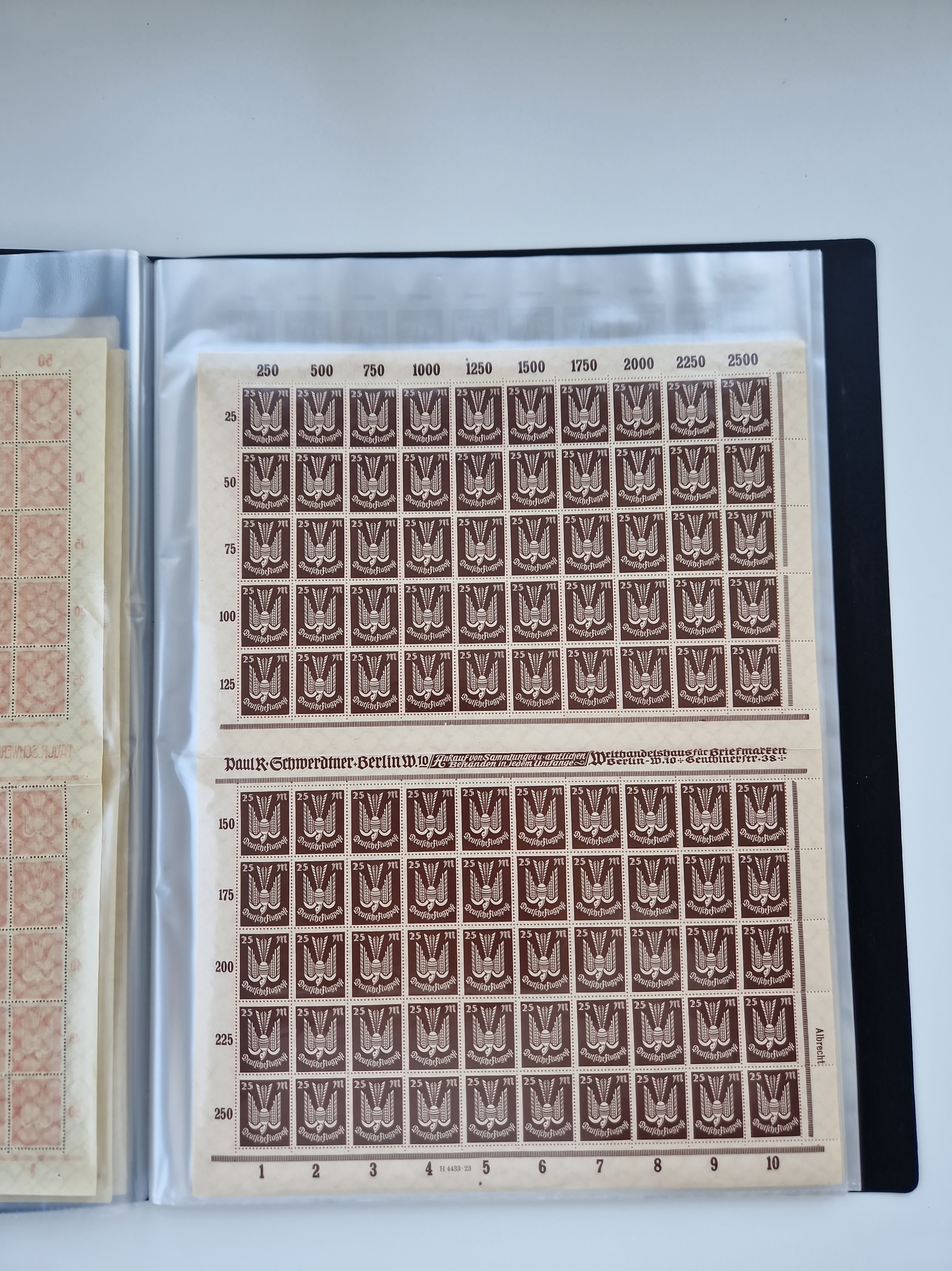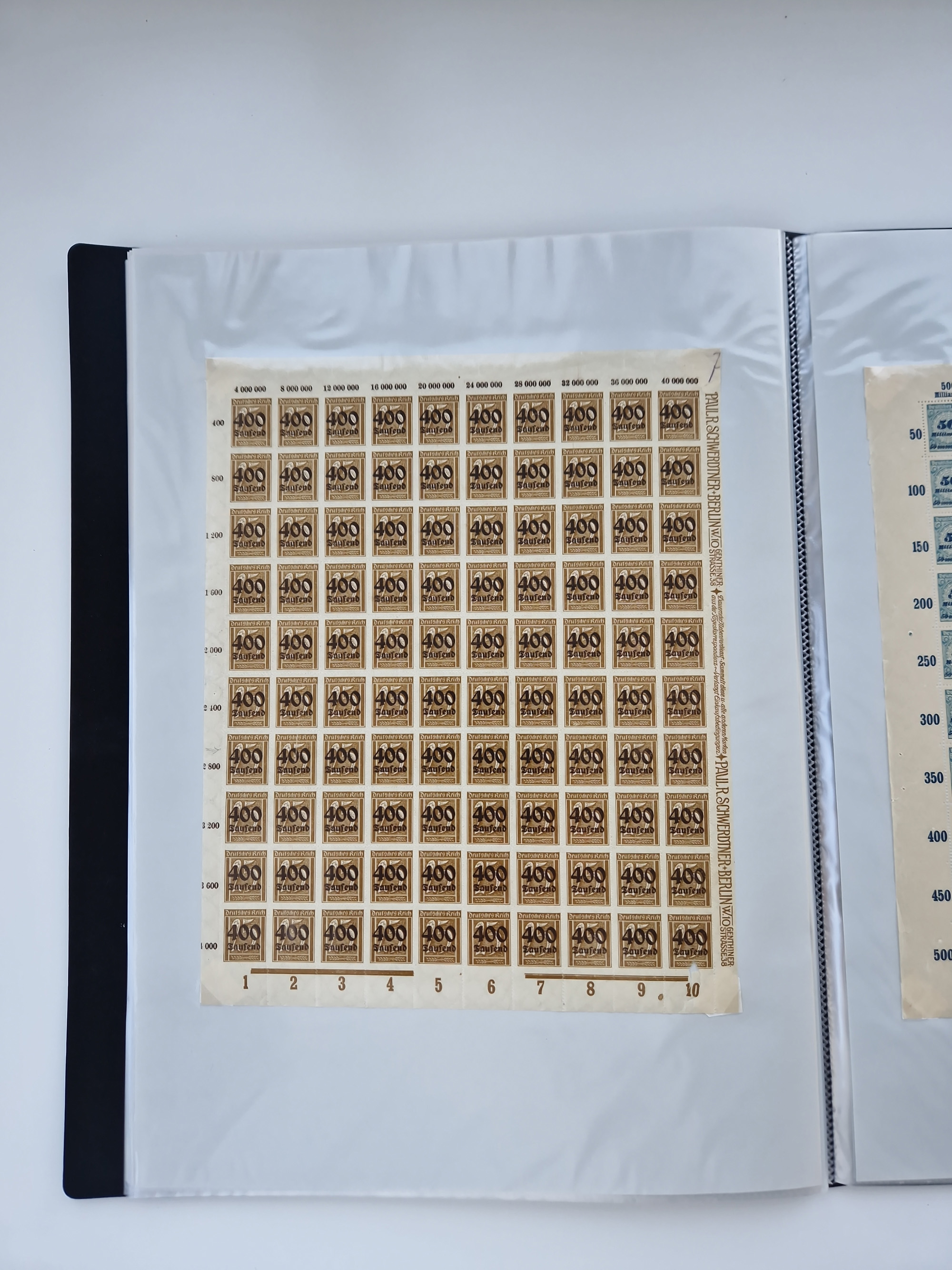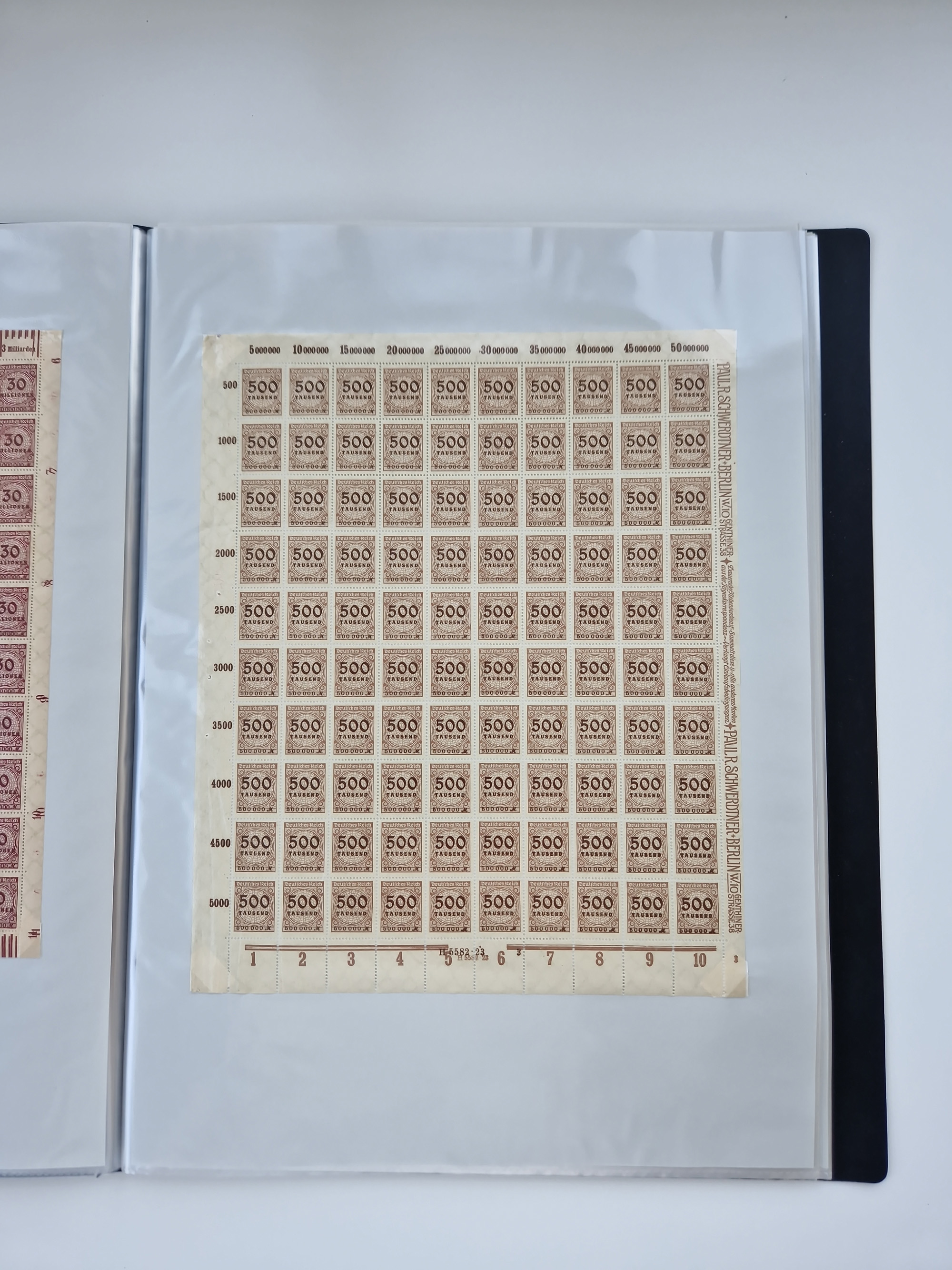 1921/22, postfrischer und ungebrauchter Bestand mit etwas über 200 Bogen und Bogenteilen, dabei Walzen- und Plattenbogen, HAN, Druckereizeichen, Pl.-Nr., auch Wz. Waffeln und Bogentaschen, teils sign. INFLA Berlin, etwas unterschiedliche Erhaltung, in zwei Ordnern
