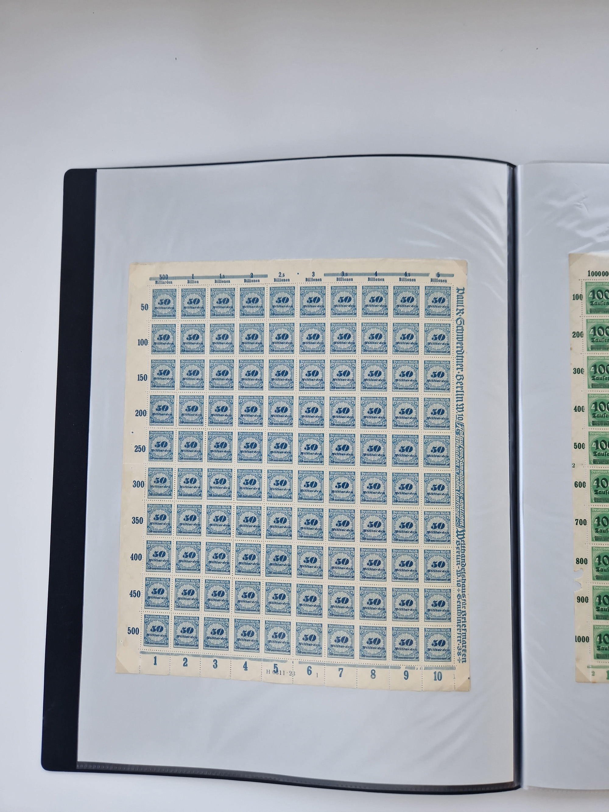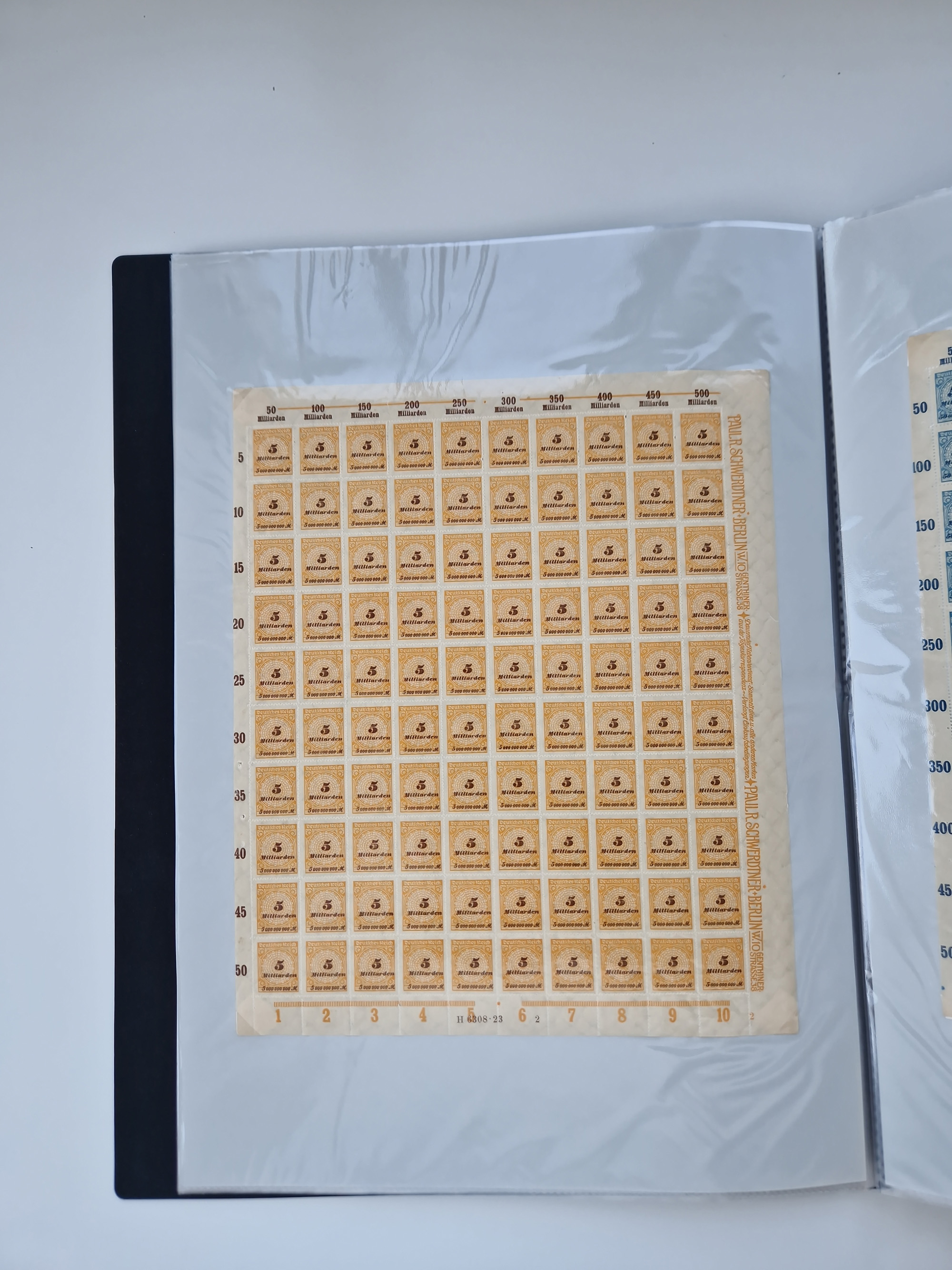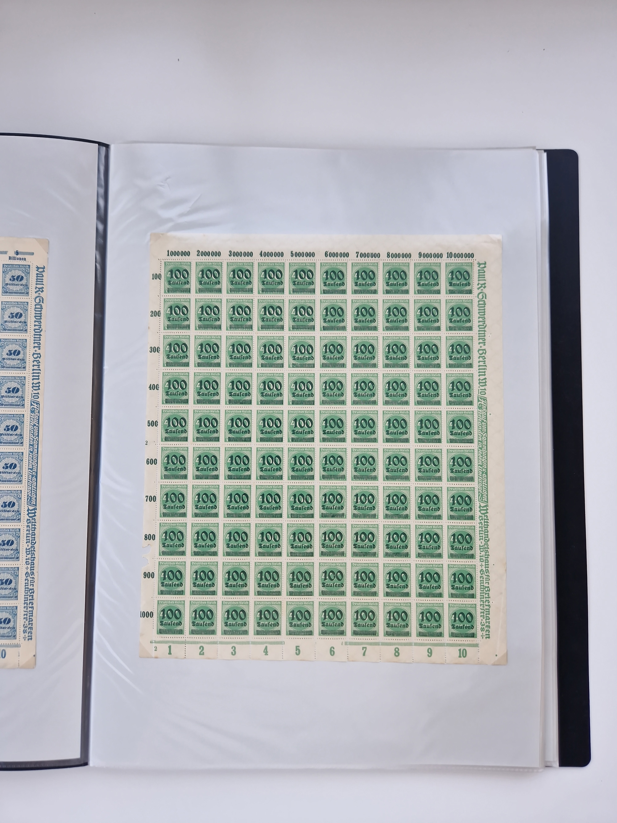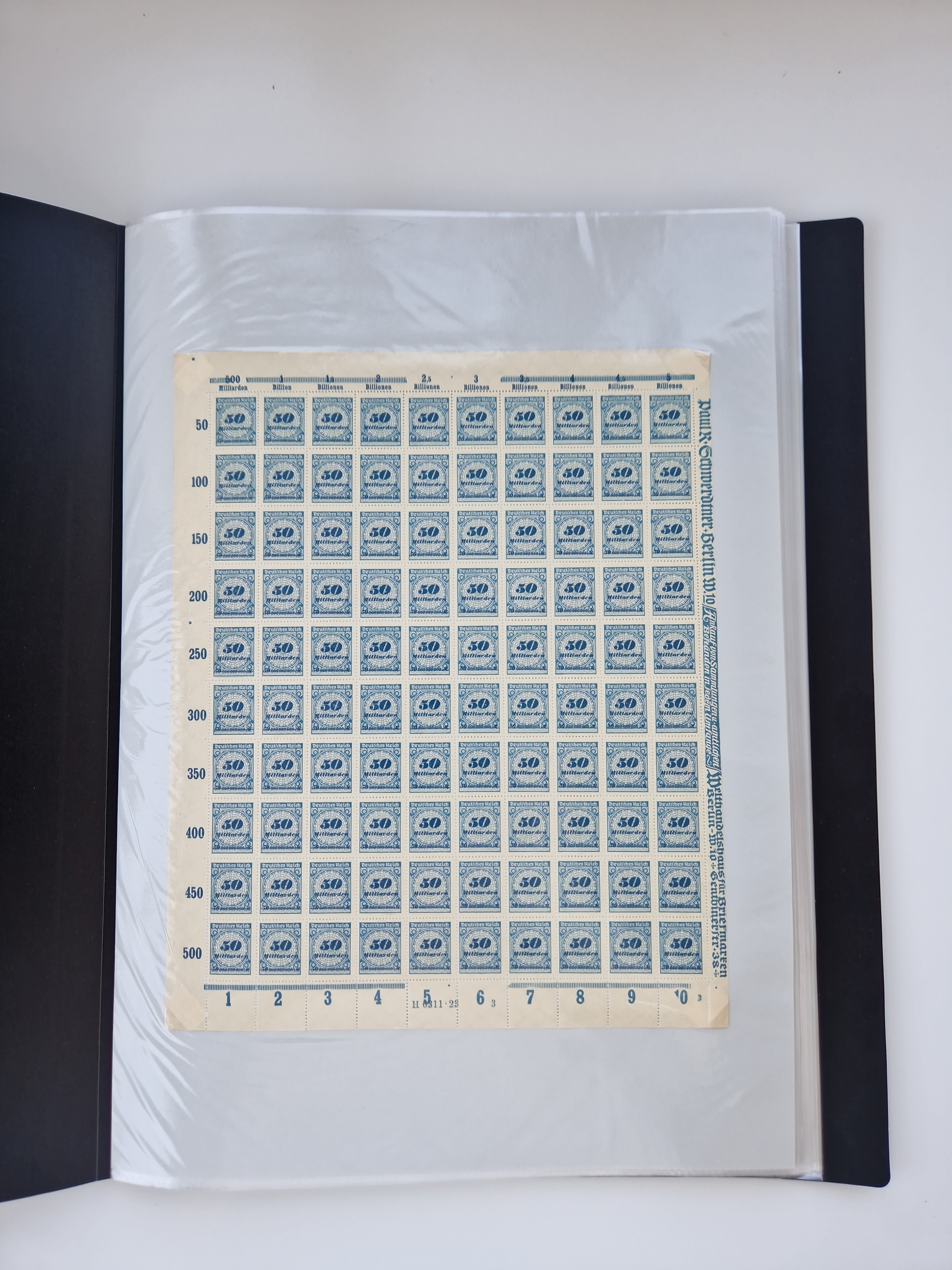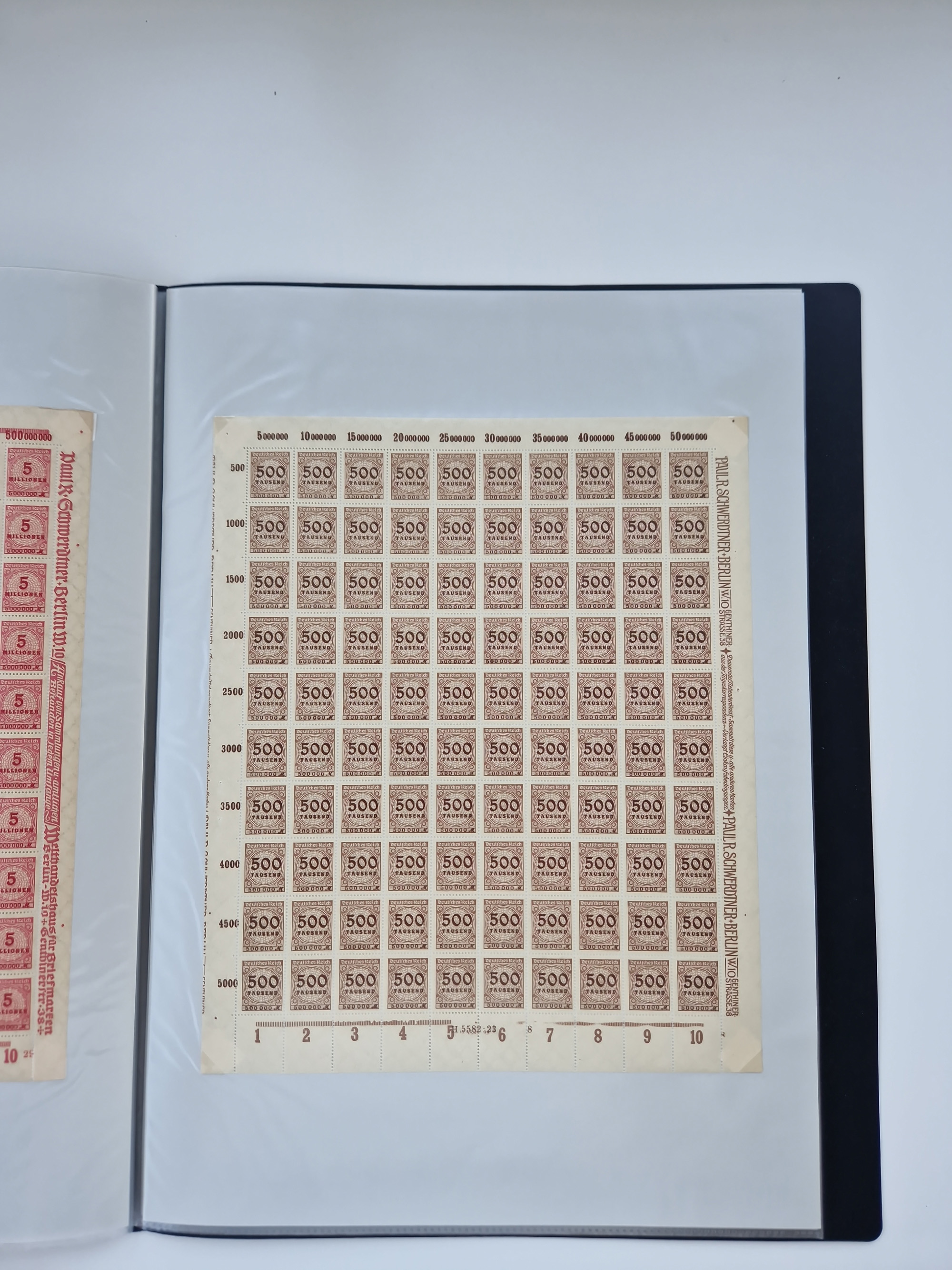1921/22, postfrischer und ungebrauchter Bestand mit etwas über 200 Bogen und Bogenteilen, dabei Walzen- und Plattenbogen, HAN, Druckereizeichen, Pl.-Nr., auch Wz. Waffeln und Bogentaschen, teils sign. INFLA Berlin, etwas unterschiedliche Erhaltung, in zwei Ordnern