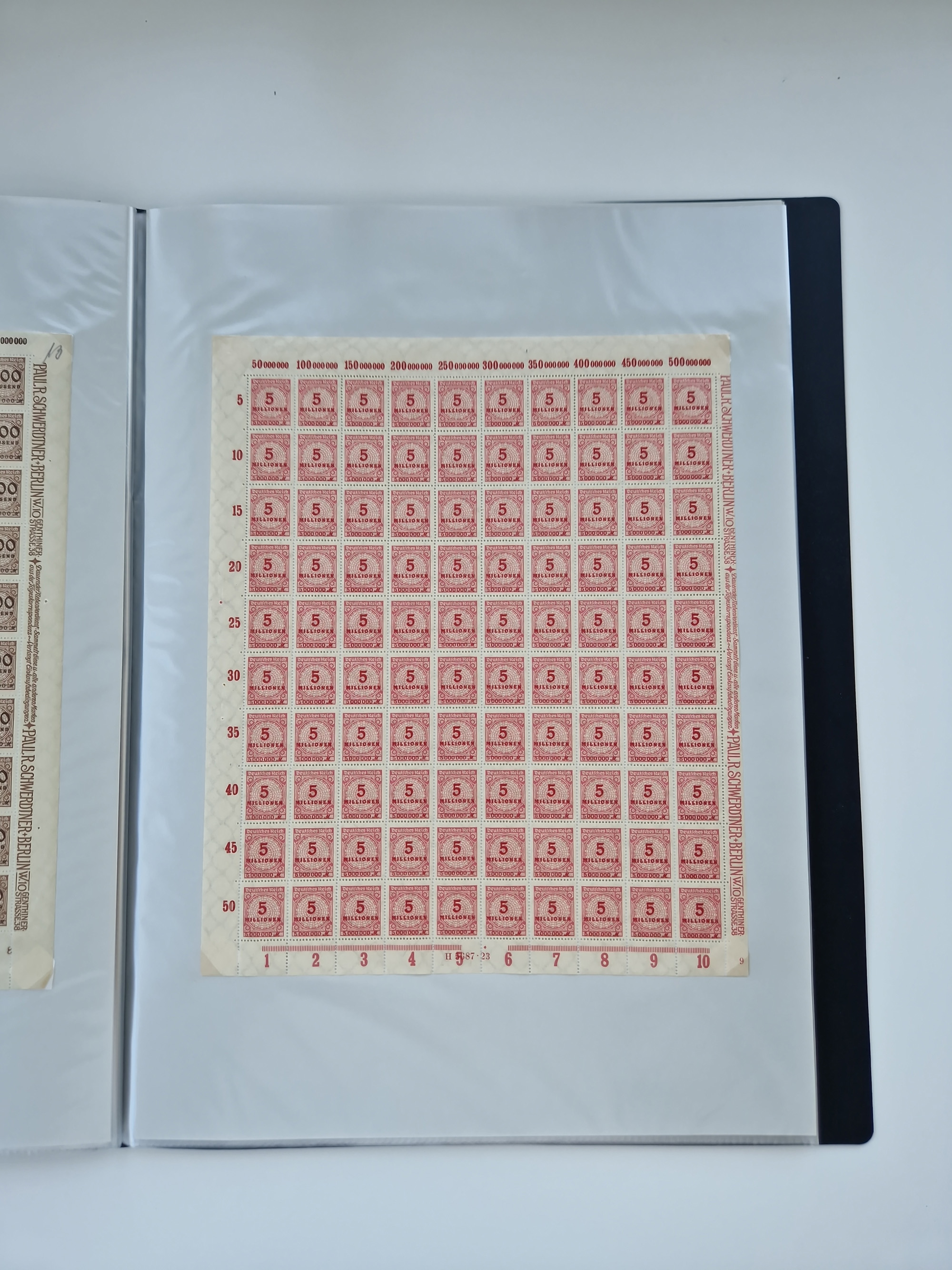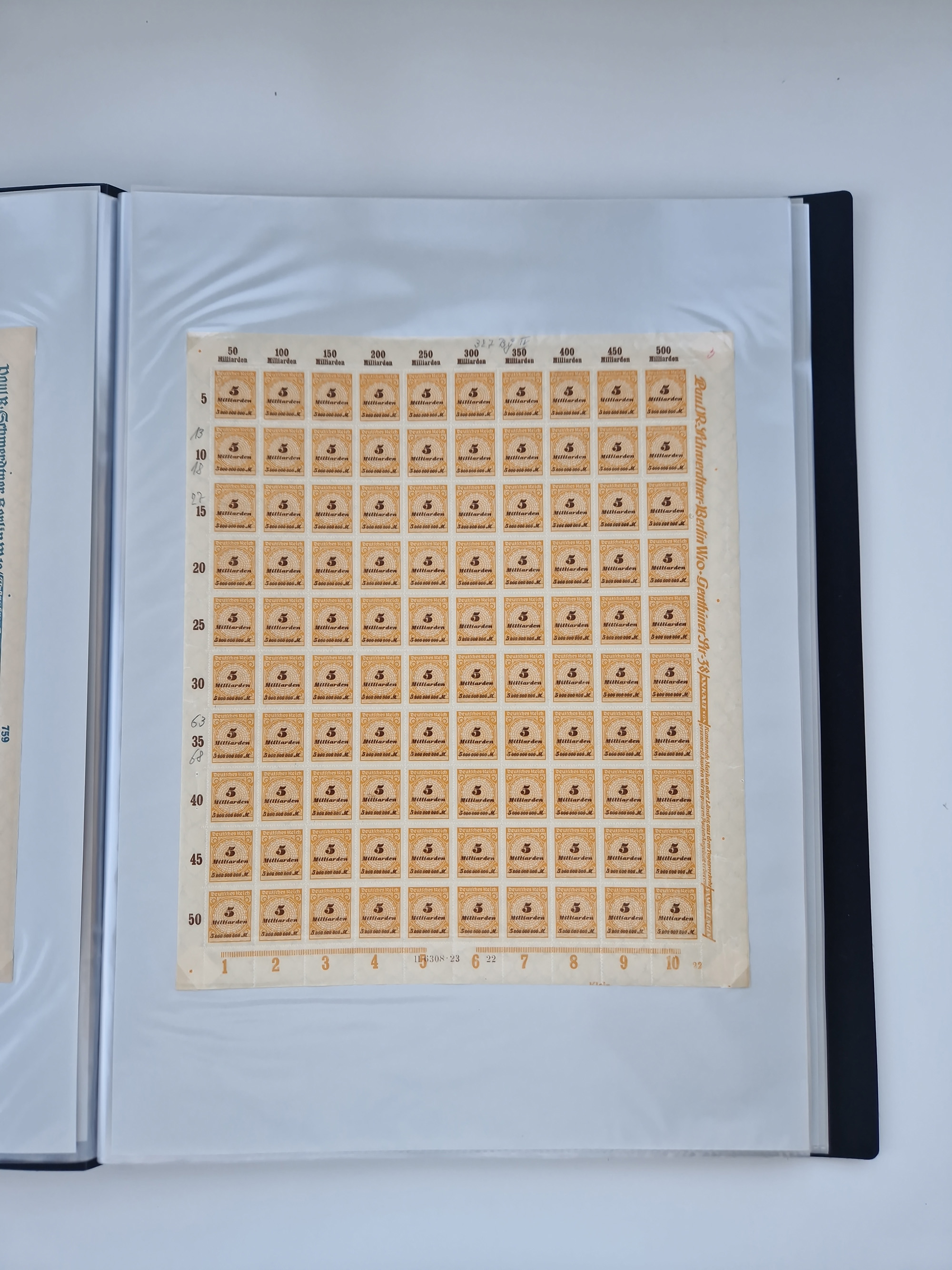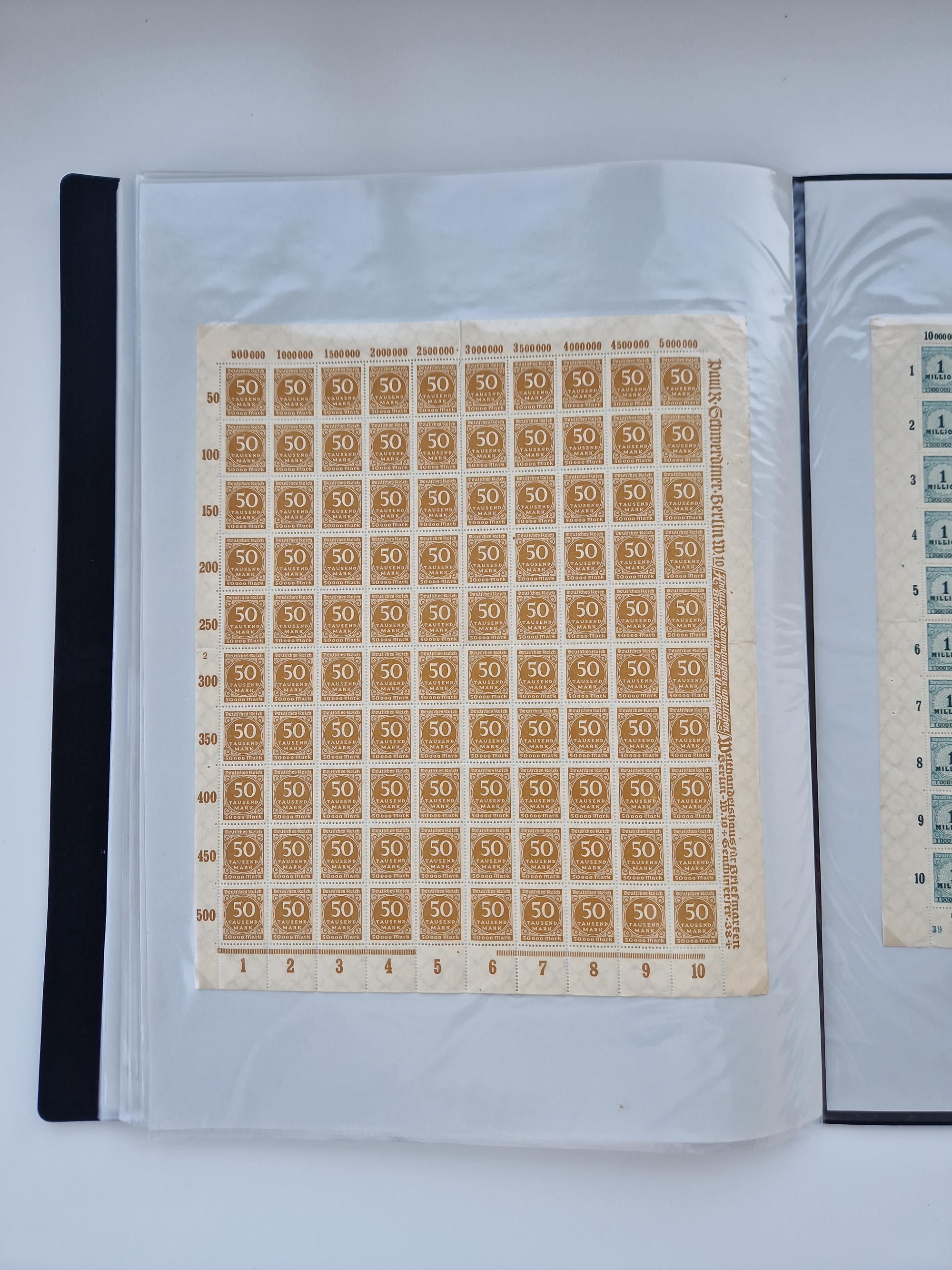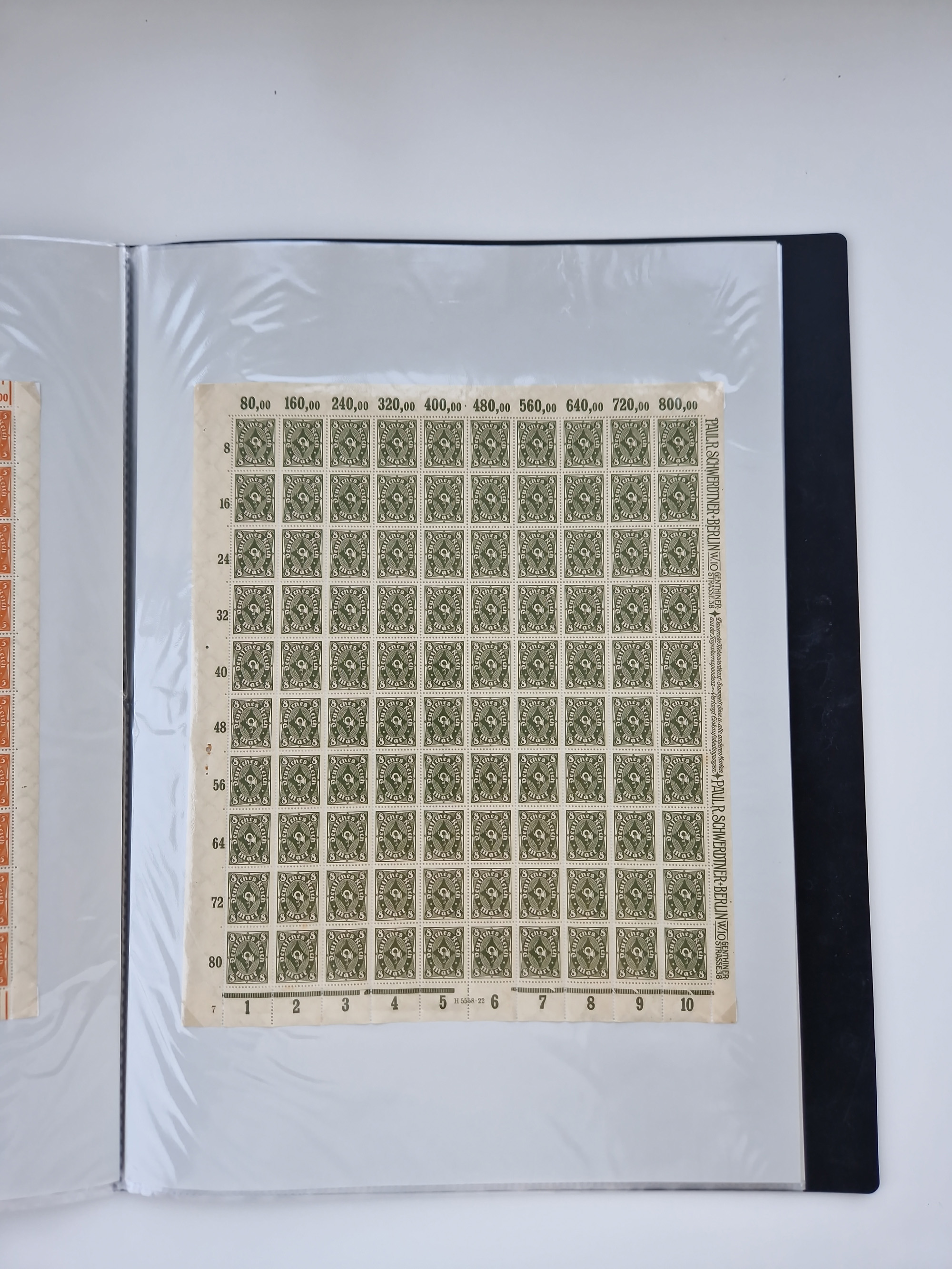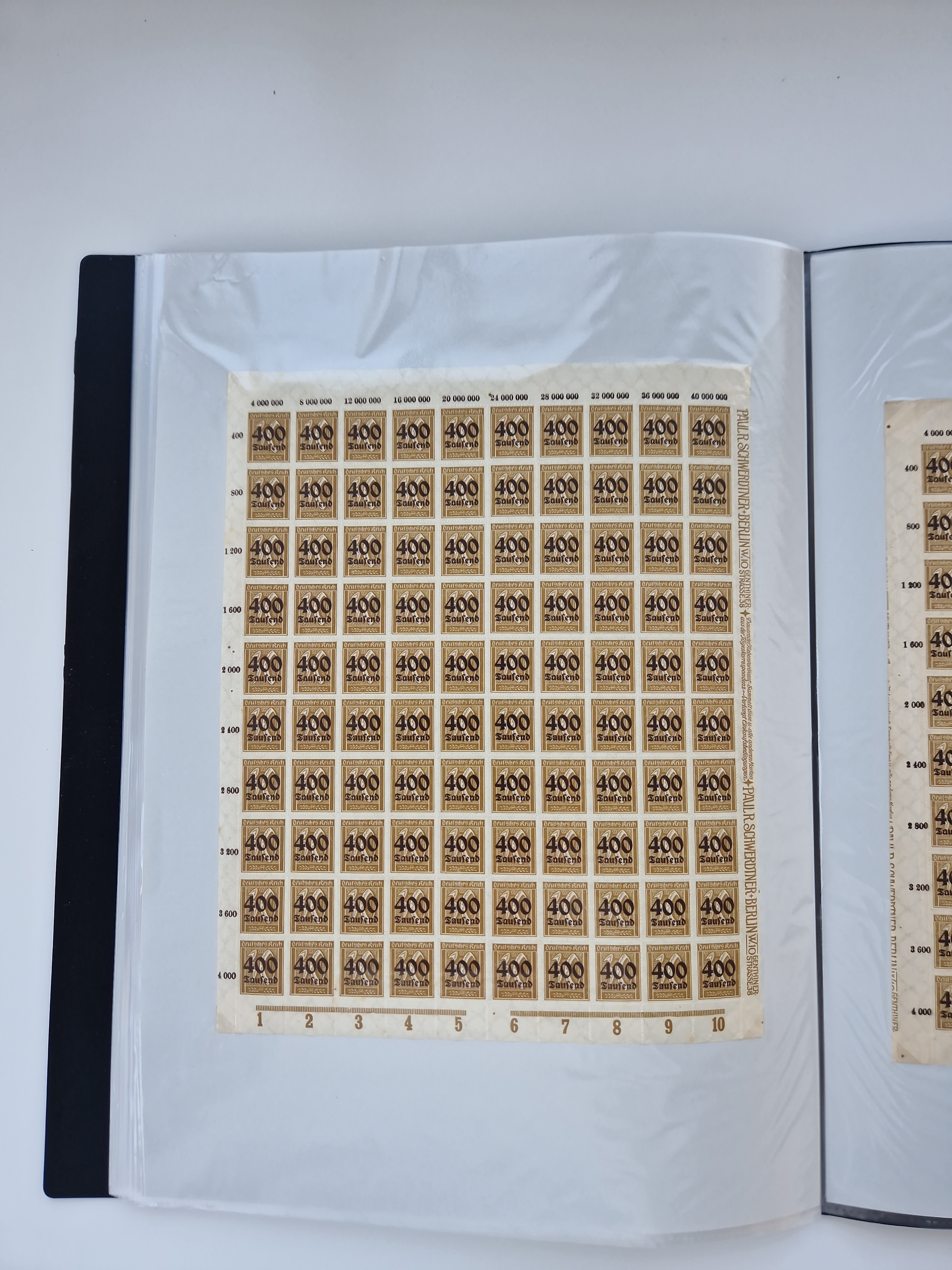 1921/22, postfrischer und ungebrauchter Bestand mit etwas über 200 Bogen und Bogenteilen, dabei Walzen- und Plattenbogen, HAN, Druckereizeichen, Pl.-Nr., auch Wz. Waffeln und Bogentaschen, teils sign. INFLA Berlin, etwas unterschiedliche Erhaltung, in zwei Ordnern