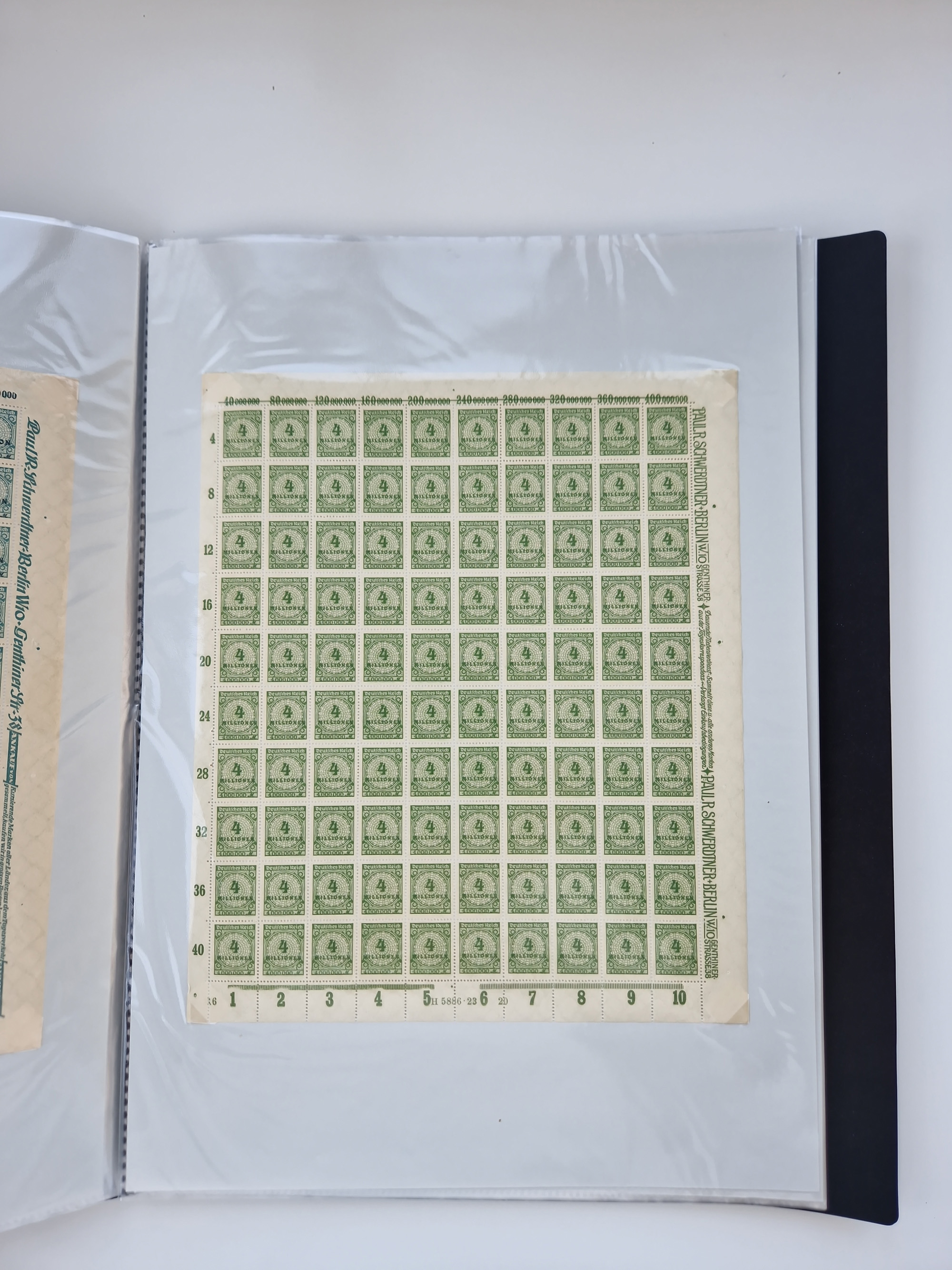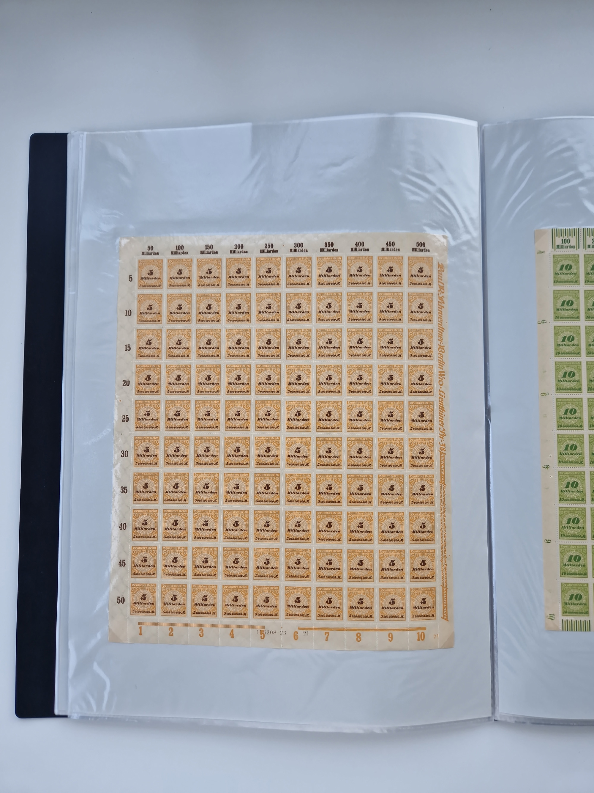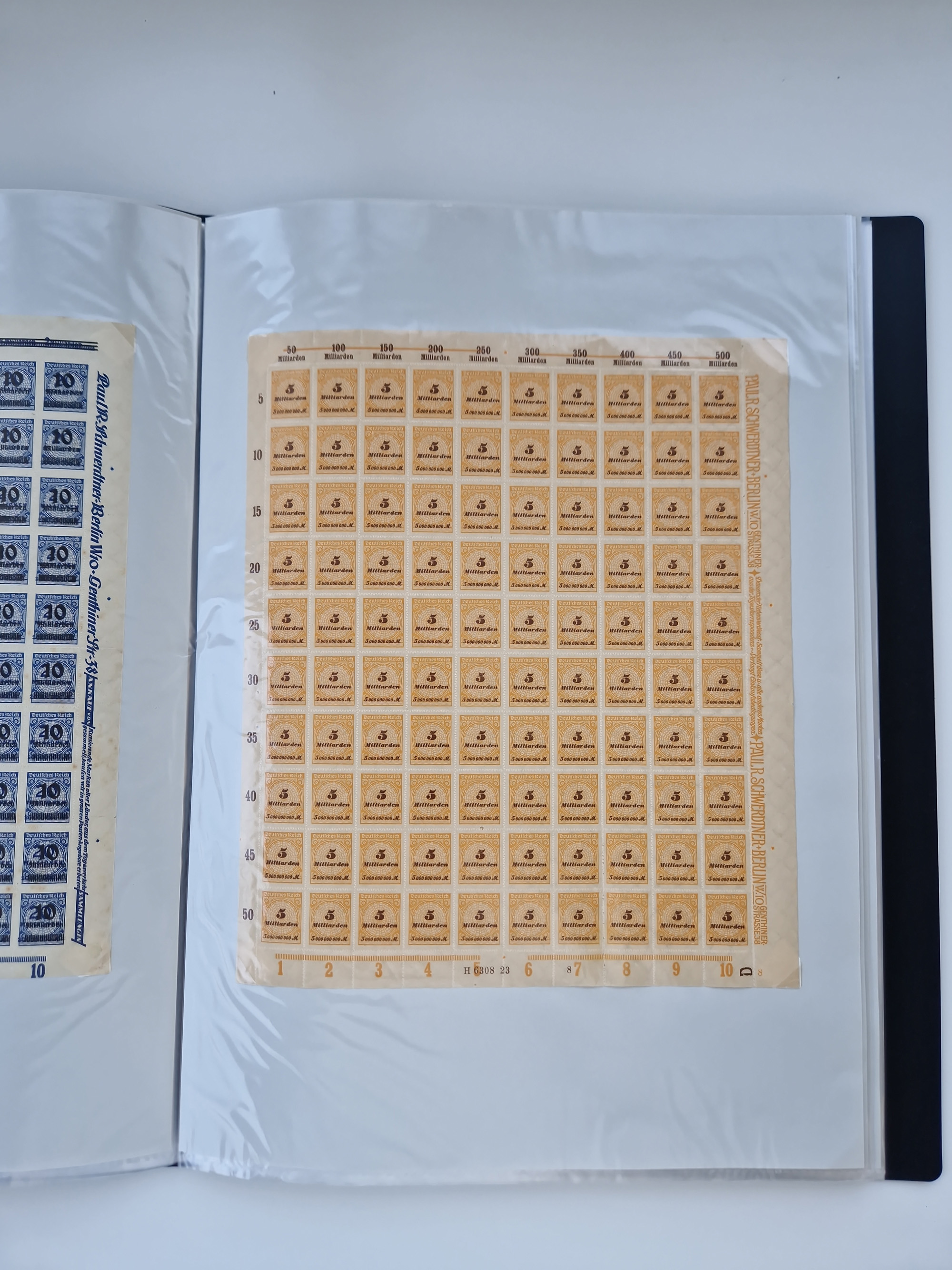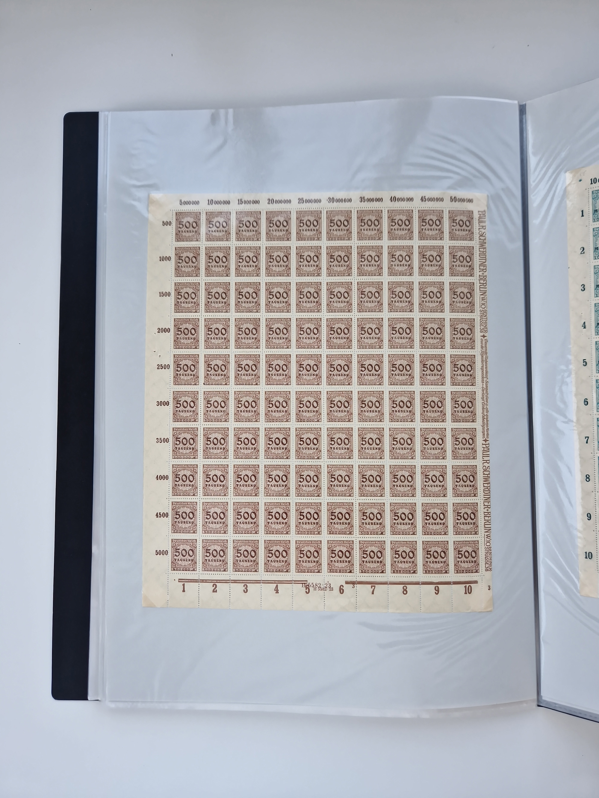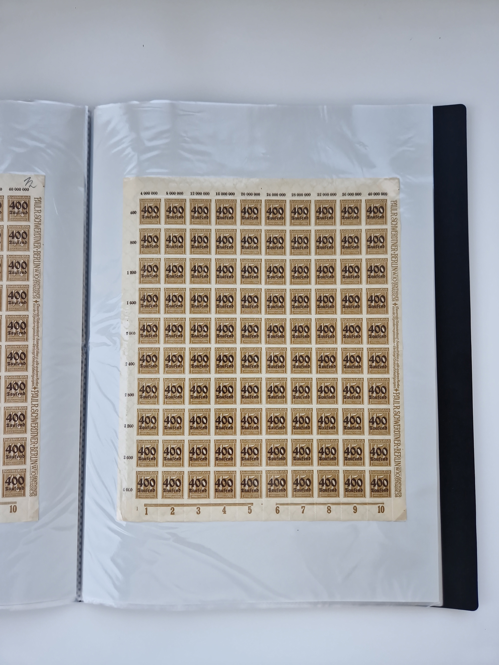 1921/22, postfrischer und ungebrauchter Bestand mit etwas über 200 Bogen und Bogenteilen, dabei Walzen- und Plattenbogen, HAN, Druckereizeichen, Pl.-Nr., auch Wz. Waffeln und Bogentaschen, teils sign. INFLA Berlin, etwas unterschiedliche Erhaltung, in zwei Ordnern