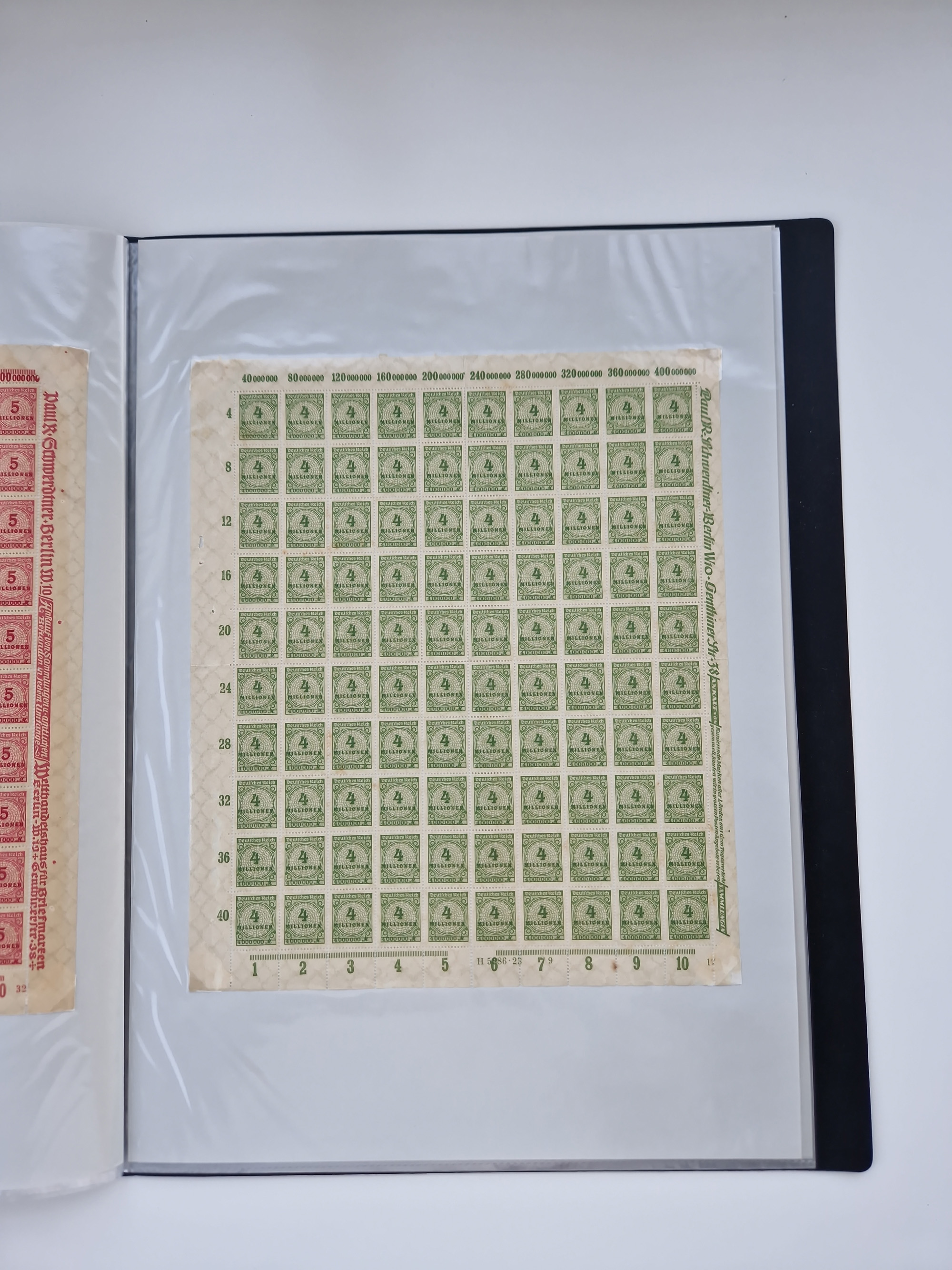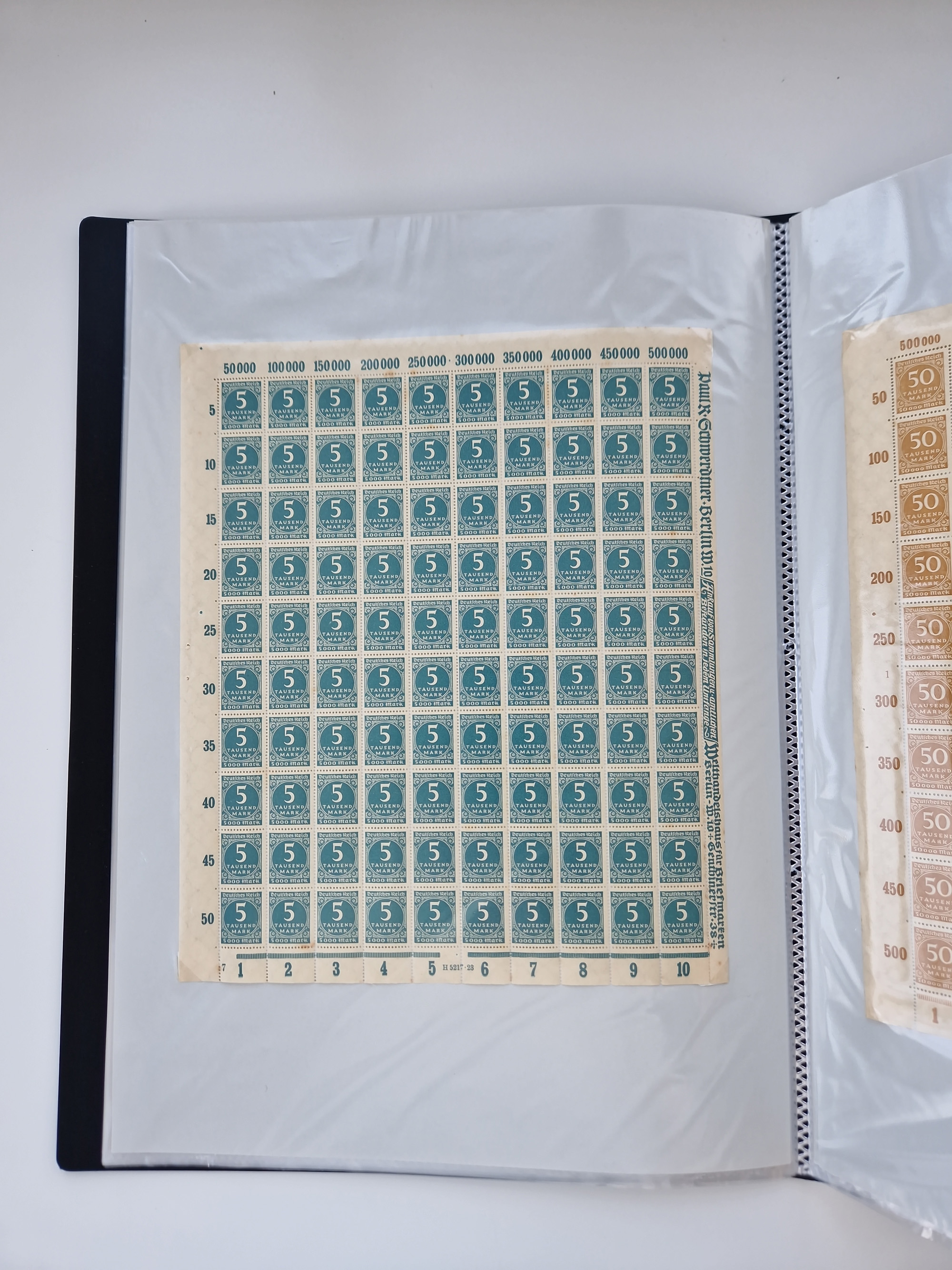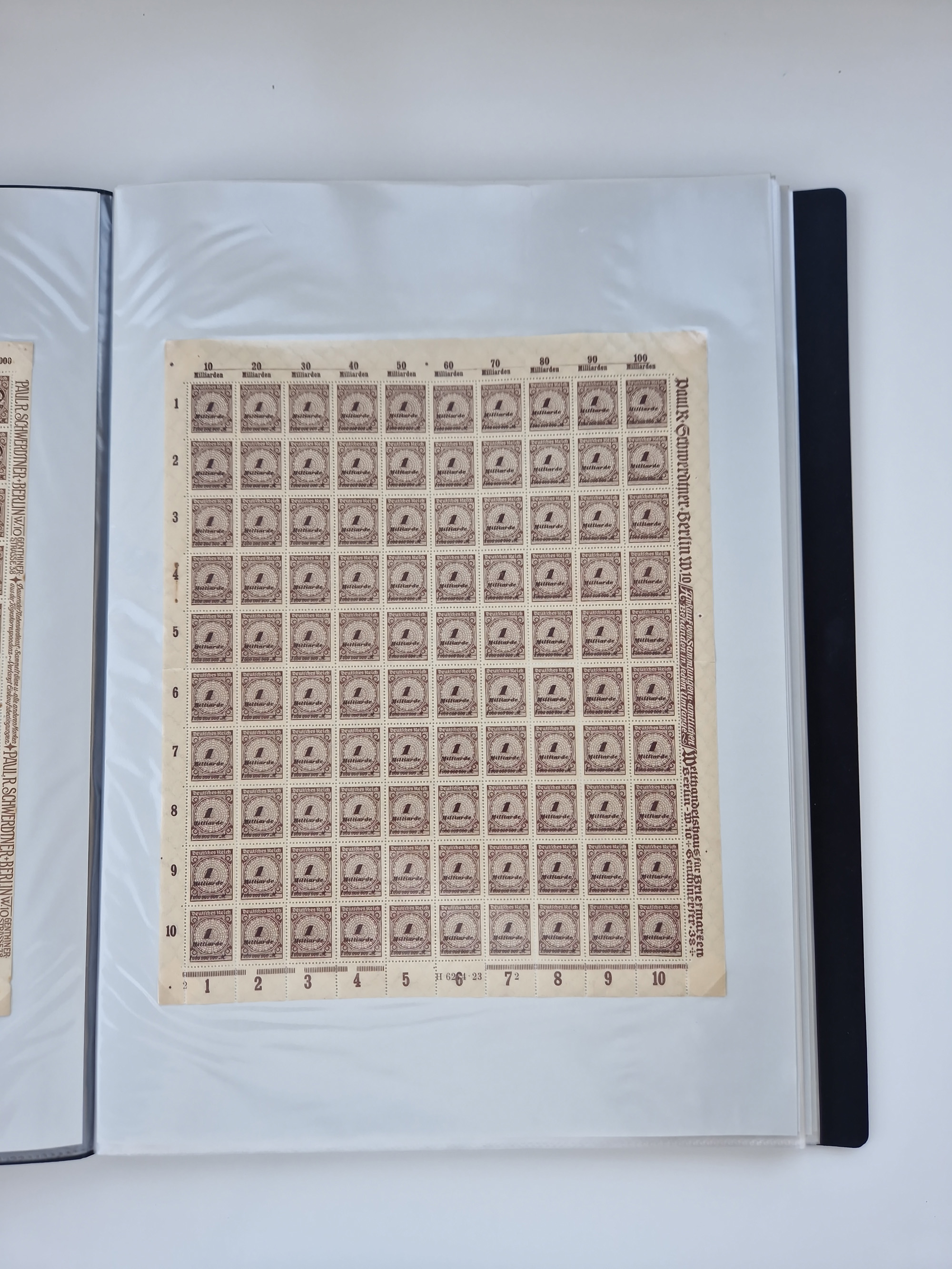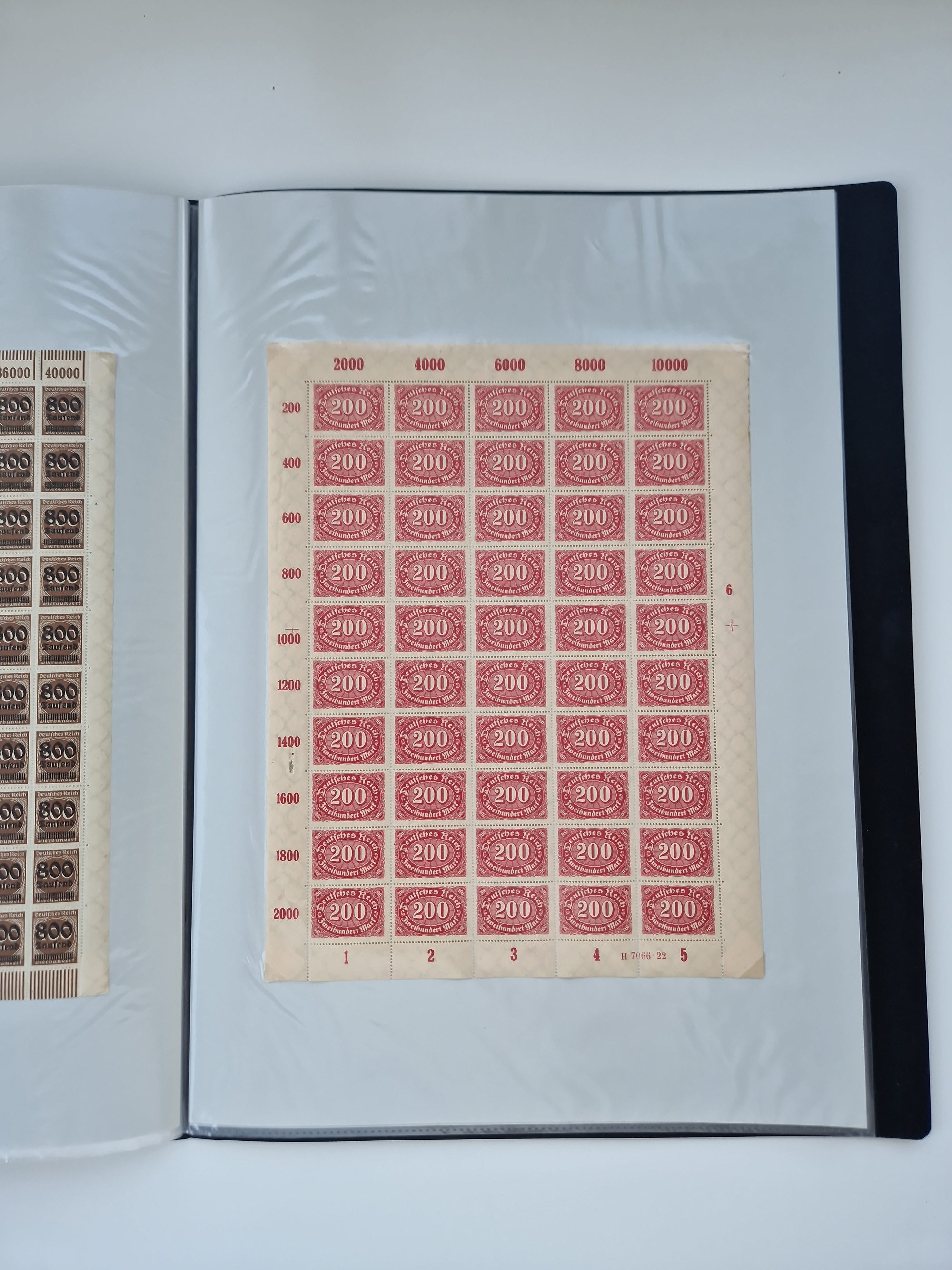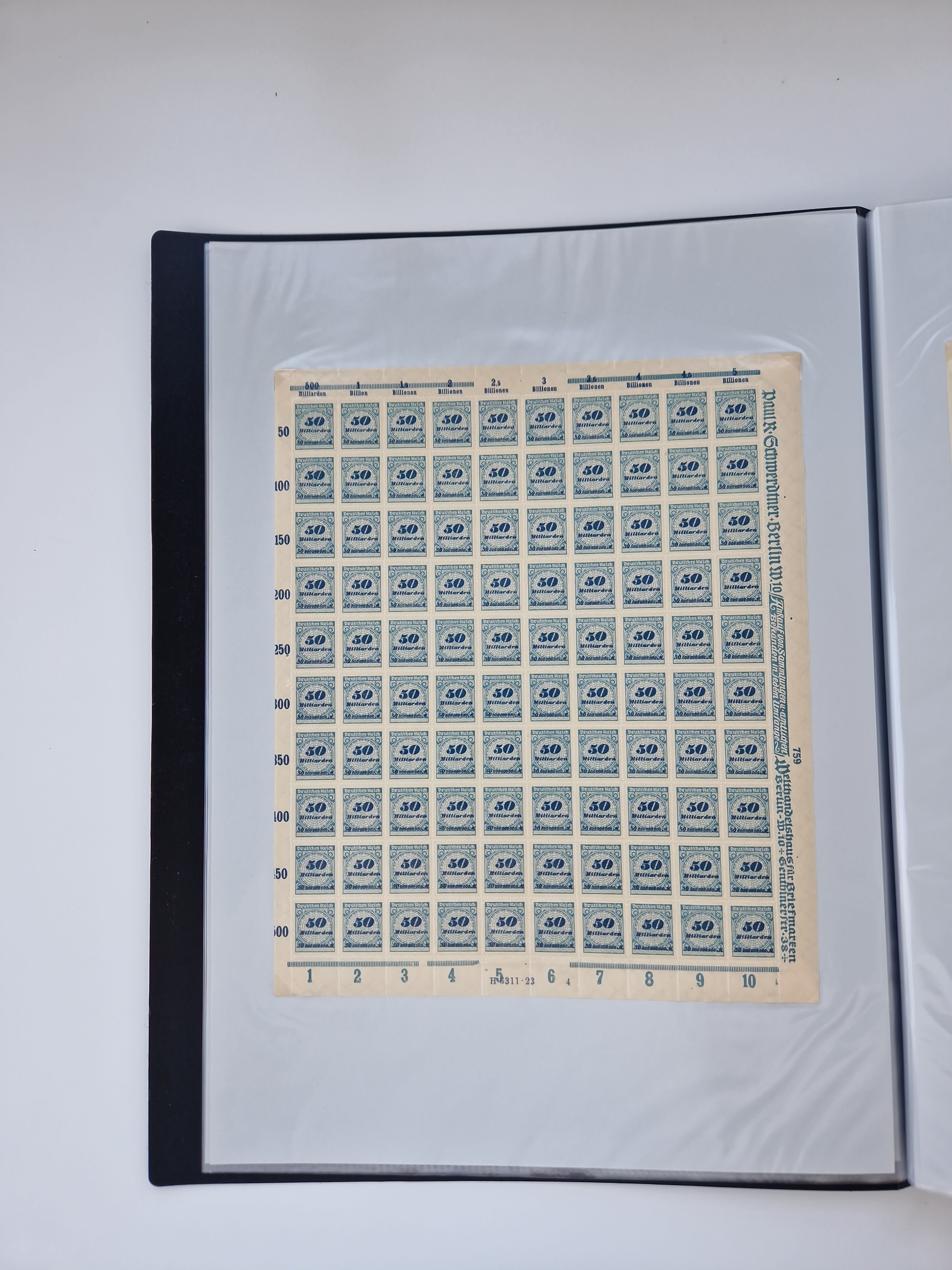 1921/22, postfrischer und ungebrauchter Bestand mit etwas über 200 Bogen und Bogenteilen, dabei Walzen- und Plattenbogen, HAN, Druckereizeichen, Pl.-Nr., auch Wz. Waffeln und Bogentaschen, teils sign. INFLA Berlin, etwas unterschiedliche Erhaltung, in zwei Ordnern