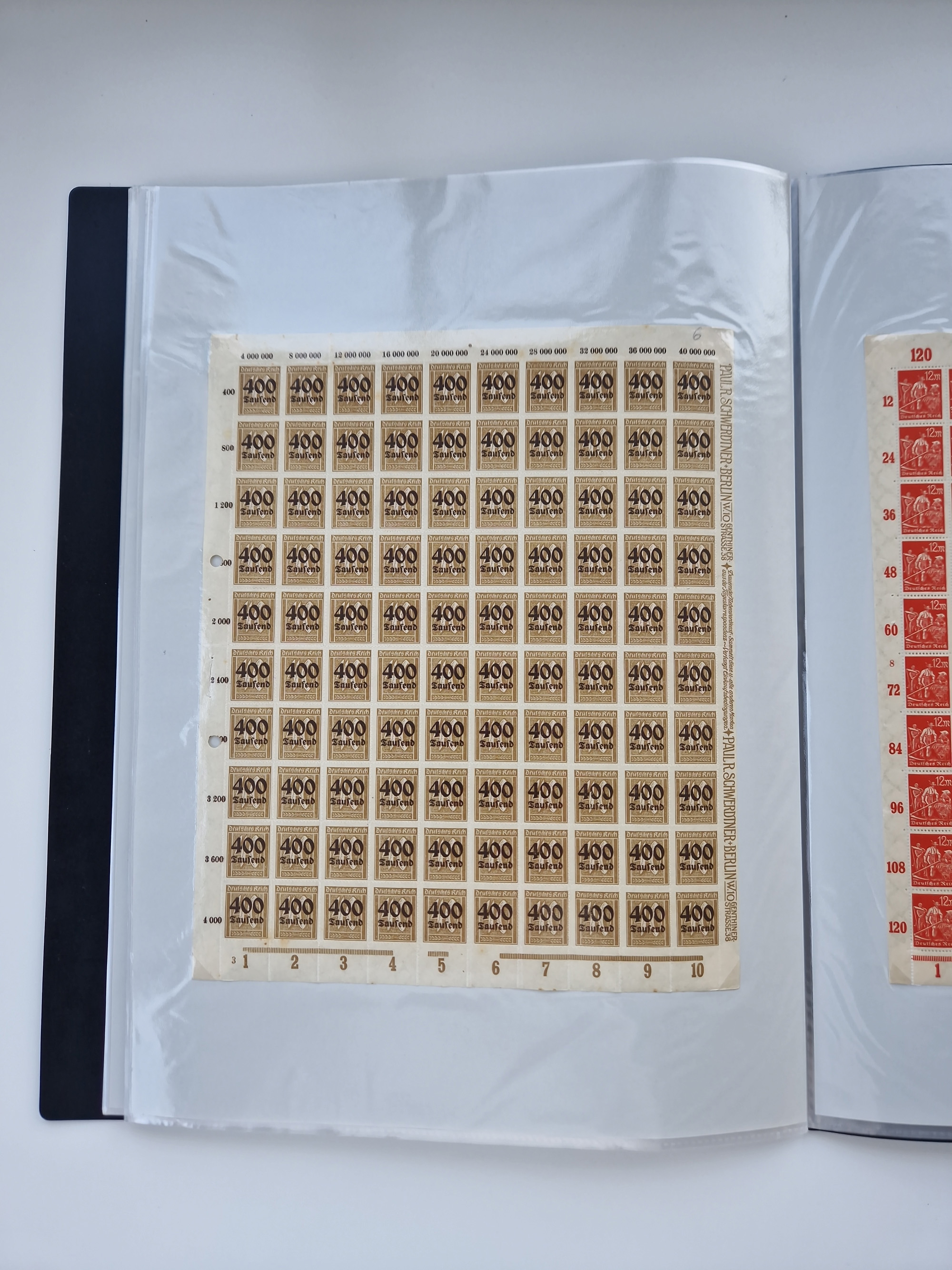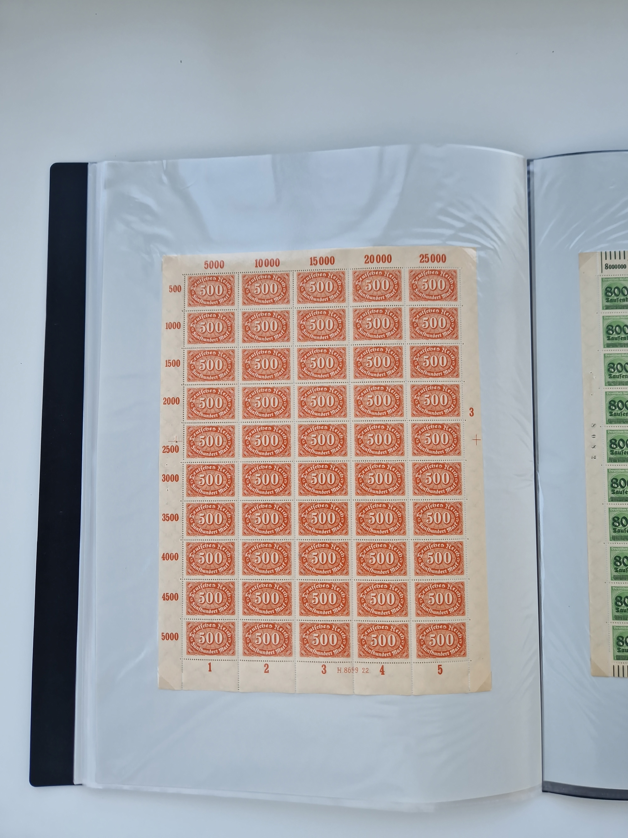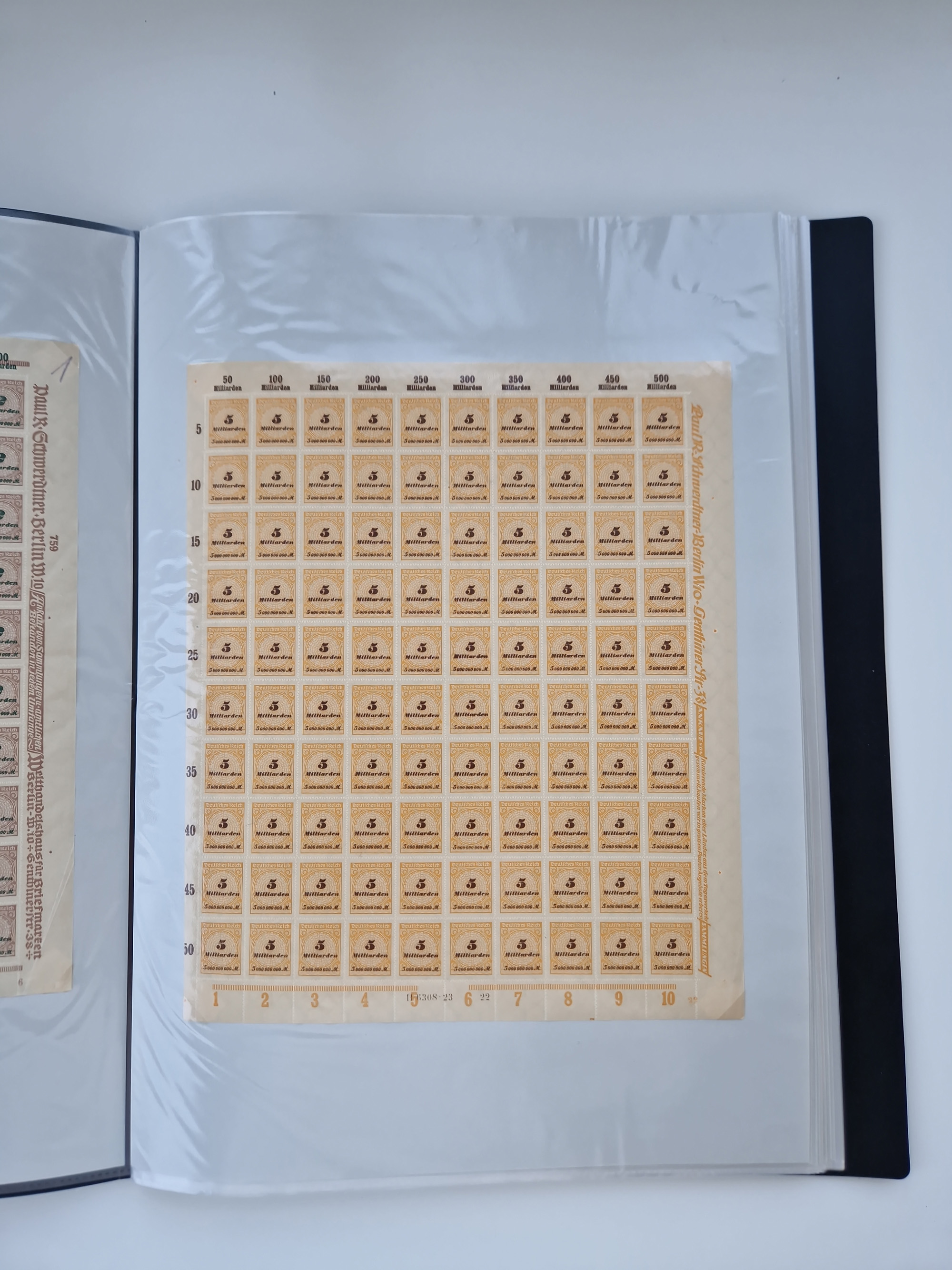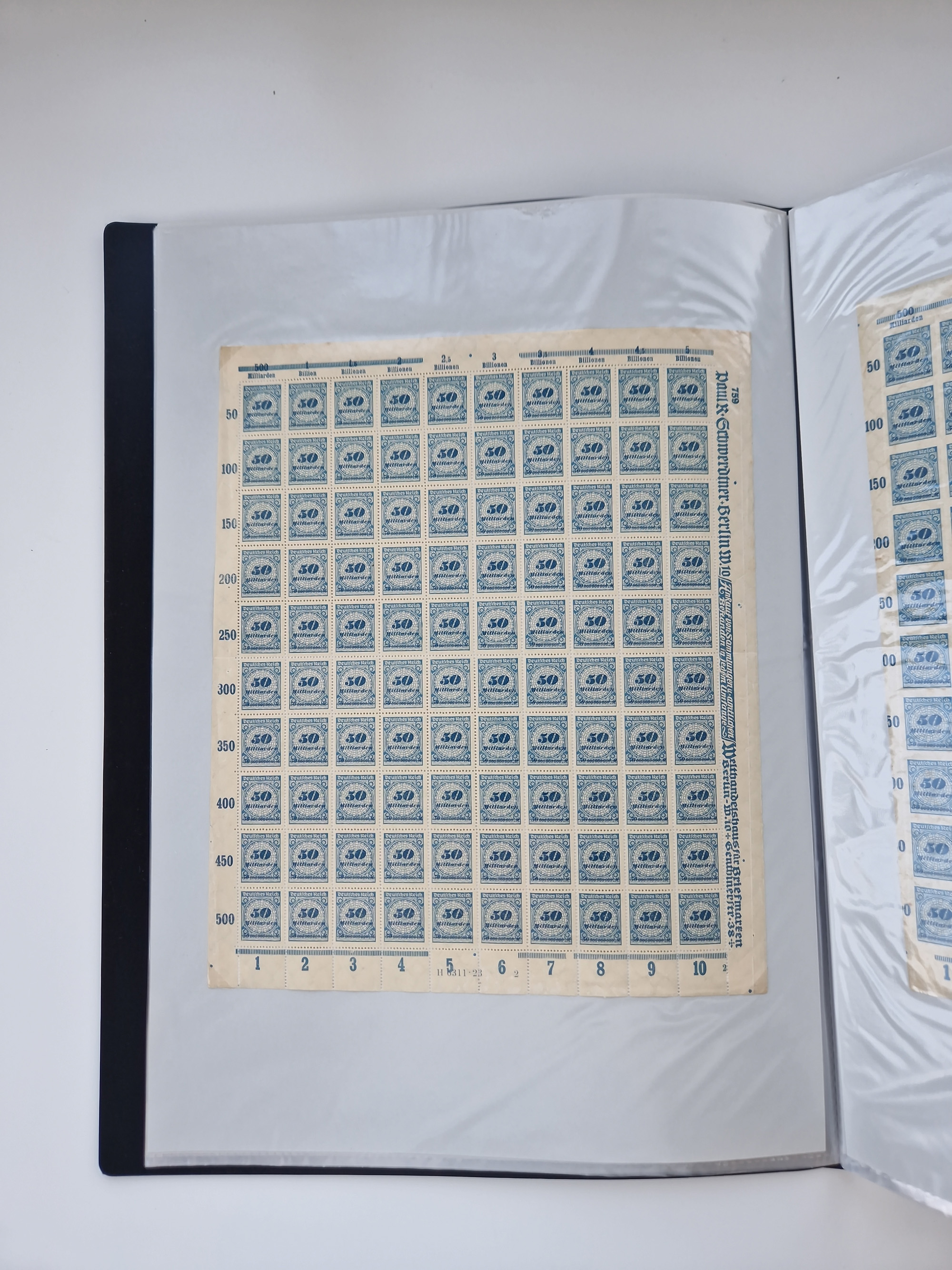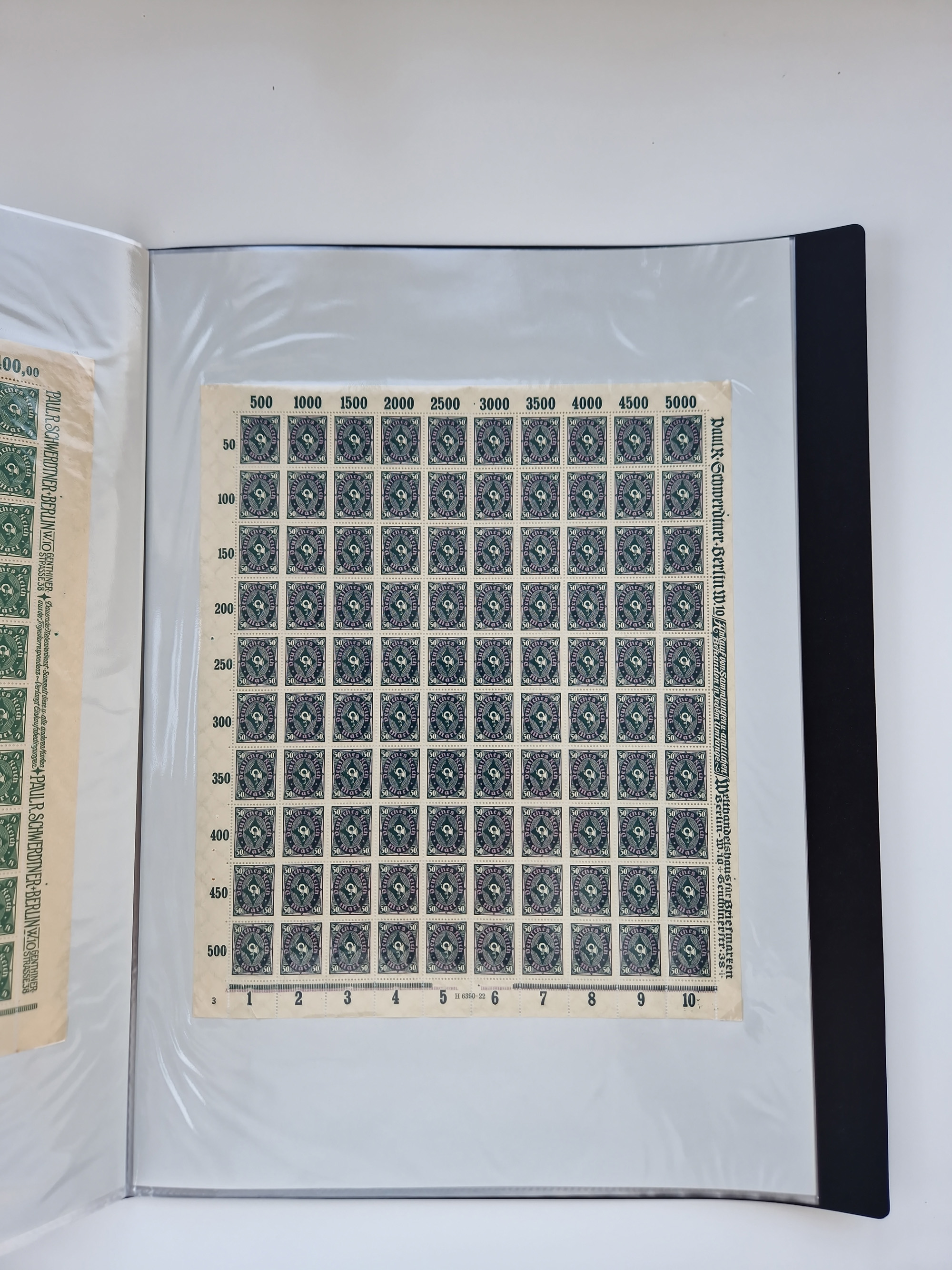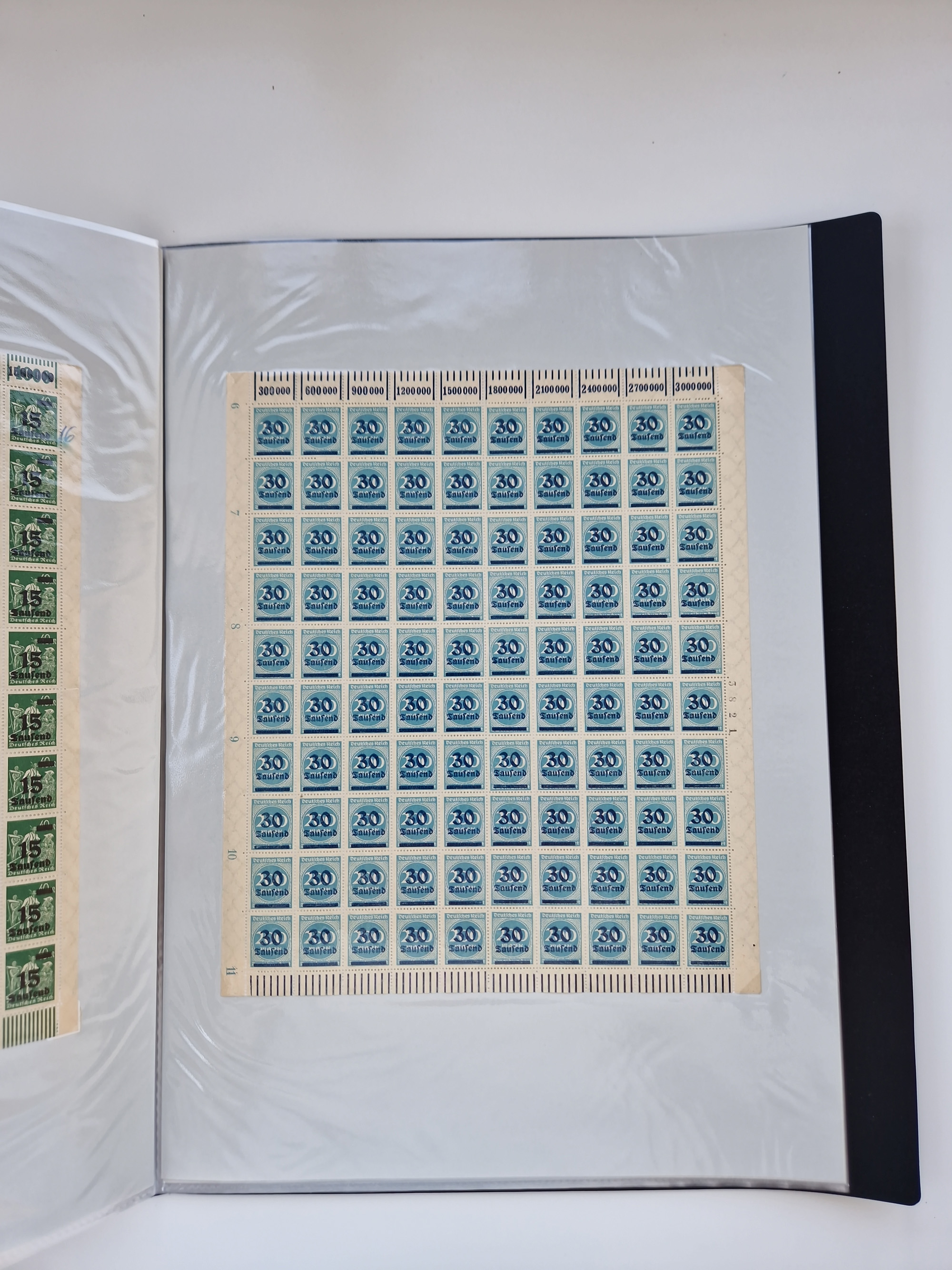 1921/22, postfrischer und ungebrauchter Bestand mit etwas über 200 Bogen und Bogenteilen, dabei Walzen- und Plattenbogen, HAN, Druckereizeichen, Pl.-Nr., auch Wz. Waffeln und Bogentaschen, teils sign. INFLA Berlin, etwas unterschiedliche Erhaltung, in zwei Ordnern